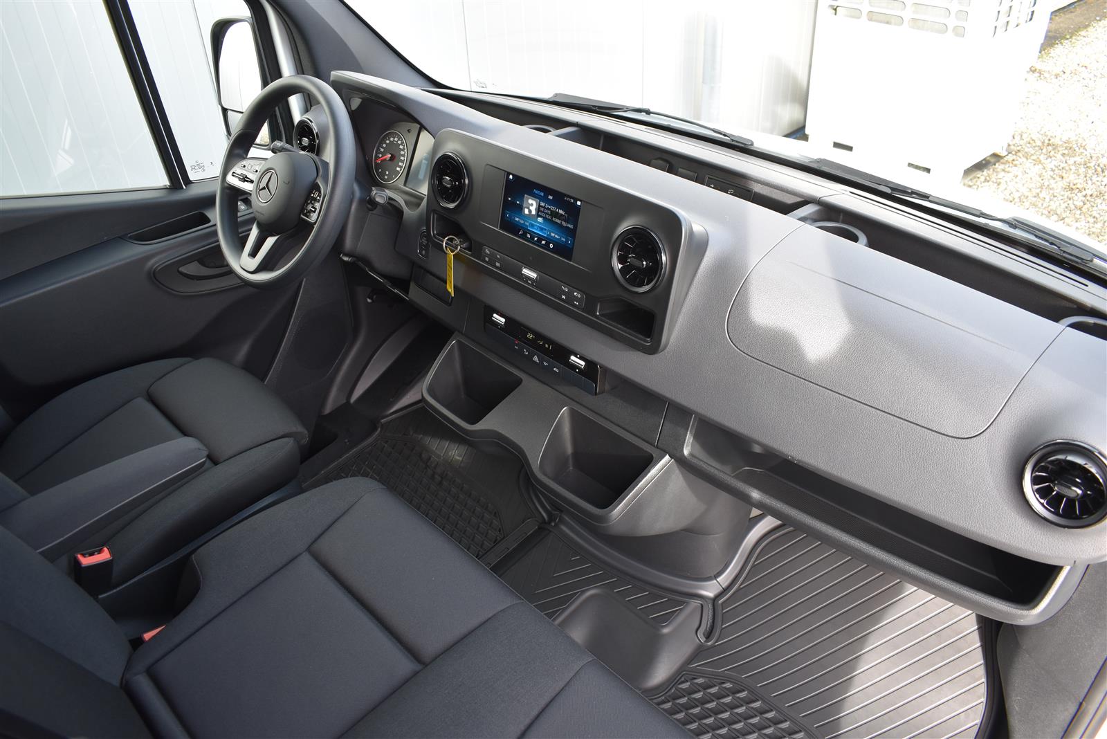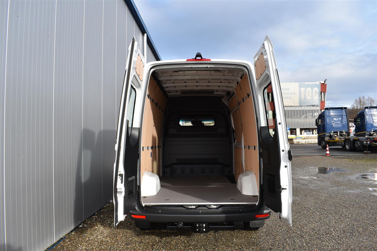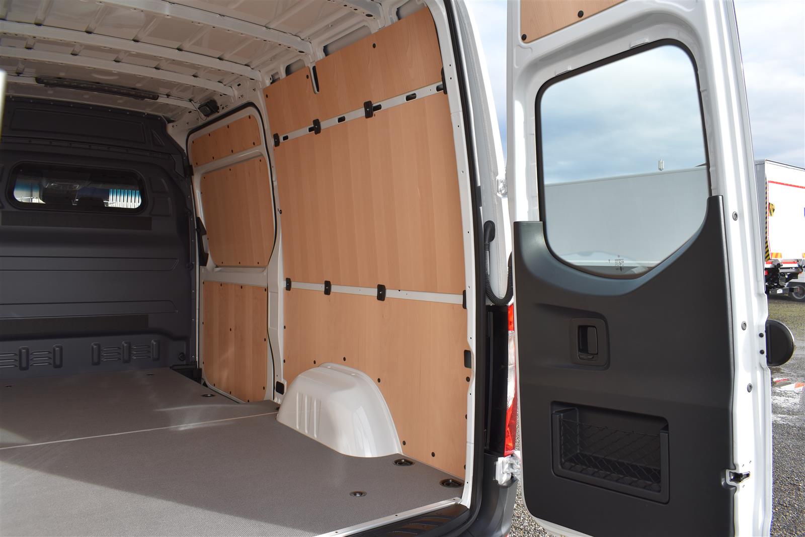 Tempomat, Klimaanlage, ABS, ASR, elektrische Fensterheber, Spiegel elektrisch verstellbar, Spiegelheizung, Scheibenbremsen, Zentralverriegelung (mit Funkfernbedienung), 3 Sitze vorne, Airbag Fahrer, Anhängerkupplung (mit 3'500 kg Anhängelast), ESP, Fenster in Kabinenrückwand, Heckflügeltüren (mit Fenster bis Seitenwand öffnend), Hochdach, Holzfussboden, Licht- und Regensensor, Multifunktionslenkrad, Navigationssystem, Radio Media mit Bluetooth (DAB), Rückfahrkamera, Schiebetüre rechts, Seitenverkleidung im Laderaum (bis Dachhöhe) |