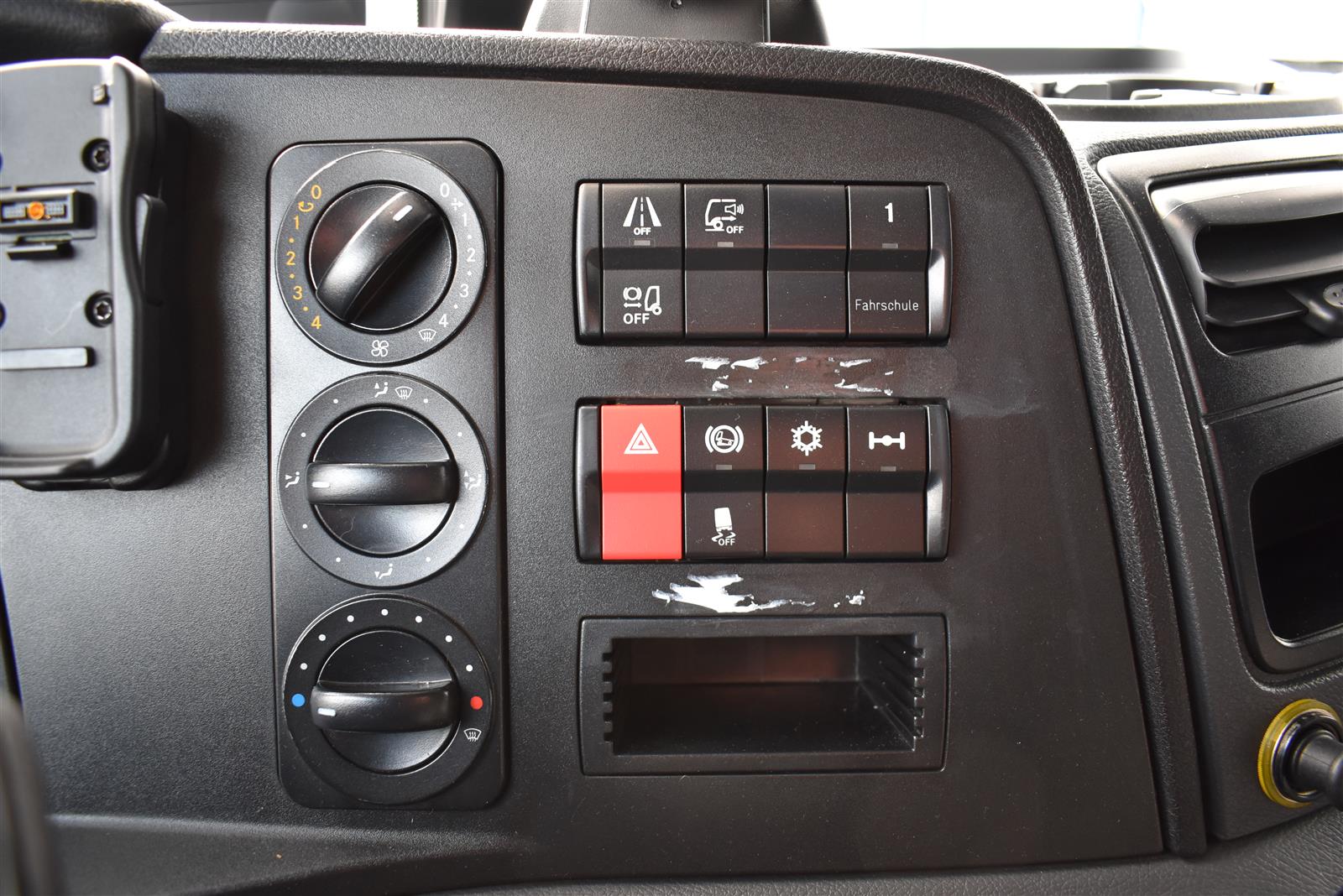 Tempomat, Klimaanlage, ABS, ASR, Radio/CD (mit Bluetooth), elektrische Fensterheber, Spiegel elektrisch verstellbar, Spiegelheizung, Motorbremse, Luftfederung Hinterachse, HB-Blatt (2'450mm), Scheibenbremsen, Differentialsperre, Dachspoiler, Zentralverriegelung, - (Fahrschulpedalerie Vorrüstung), AdBlue-Tank, Airbag Fahrer, Anfahrassistent, Beifahrersitz (luftgefedert), Digital-Tacho, ESP, Hebebühne (Bär mit 1'500 kg Tragkraft), Holzfussboden, Multifunktionslenkrad, Navigationssystem, Sitzheizung, Spurassistent, Werkzeugkiste |