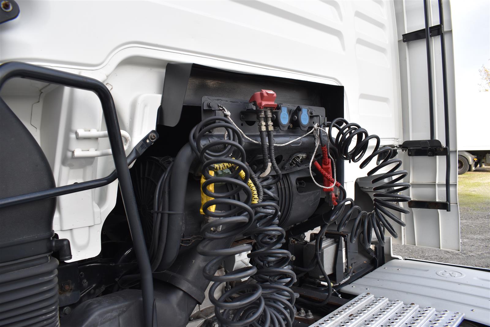 Retarder, Klimaautomatik, Standheizung, EU-Bremsen, Duomatic-Anschluss, ABS, ASR, elektrische Fensterheber, Spiegel elektrisch verstellbar, Spiegelheizung, Luftfederung Hinterachse, Scheibenbremsen, Differentialsperre, Zentralverriegelung, 1 Liege, Abstandsregeltempomat, AdBlue-Tank, Alufelgen, Aluminiumtank, Anfahrassistent, Digital-Tacho, Kühlbox, Multifunktionslenkrad, Navigationssystem, Notausschalter , Radio Media mit Bluetooth, Sitzheizung, Spurassistent |
