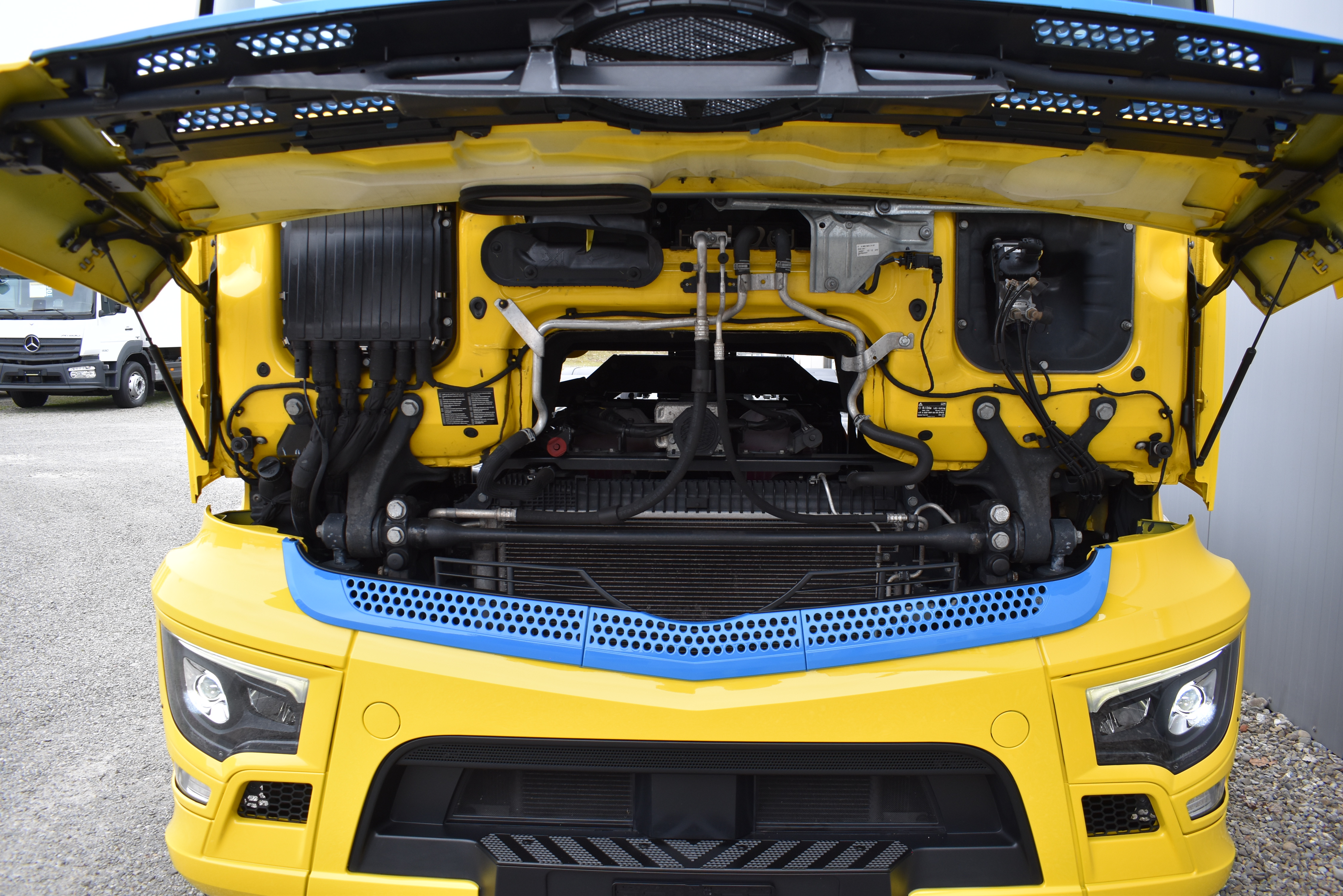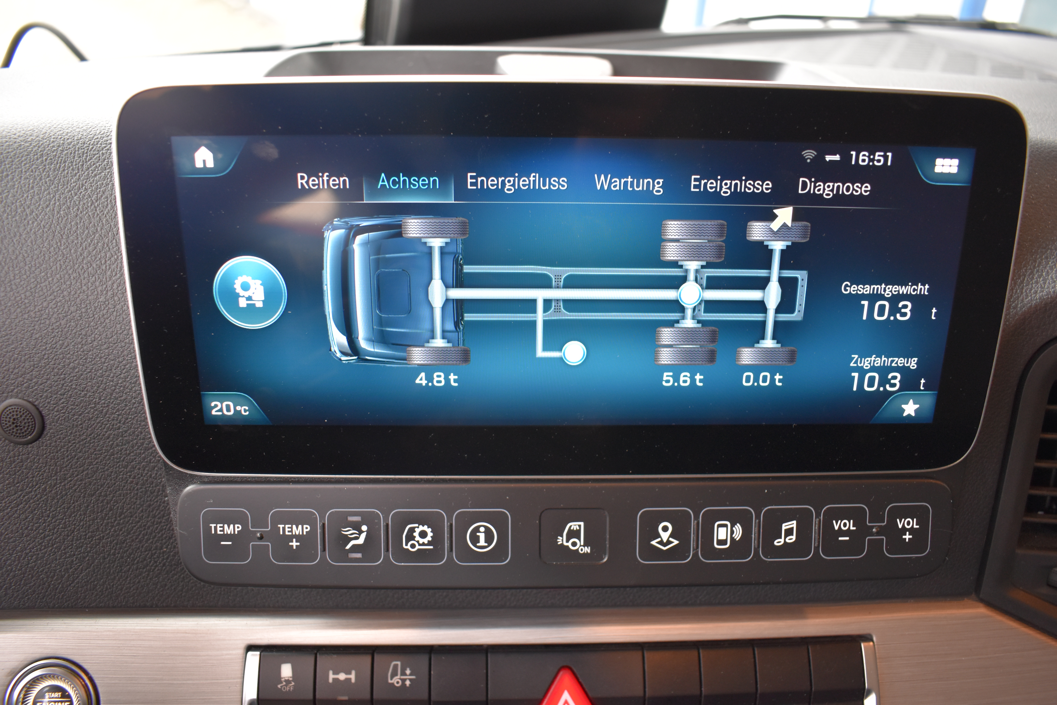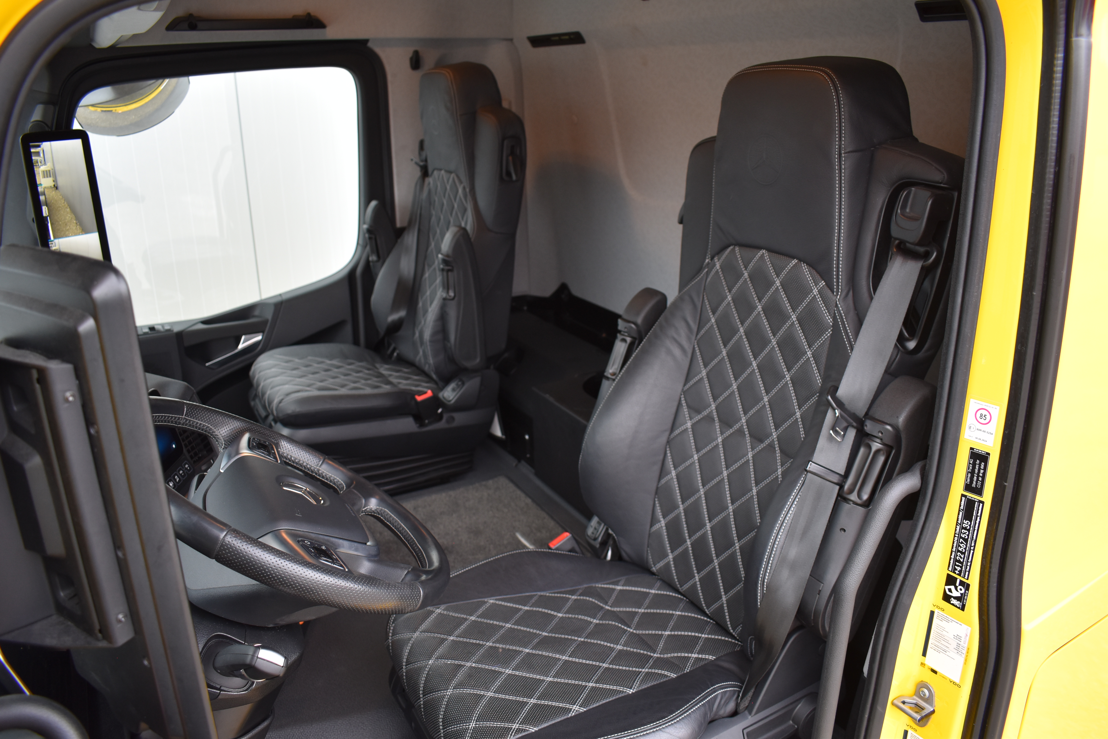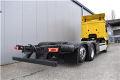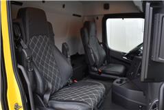 Klimaautomatik, ABS, ASR, elektrische Fensterheber, Spiegel elektrisch verstellbar, Spiegelheizung, Vollluftfederung, Scheibenbremsen, Zentralverriegelung (mit Funkfernbedienung), - (MirrorCam, LED-Scheinwerfer), Abstandsregeltempomat, Airbag Fahrer, Anfahrassistent, Anhängerkupplung (Rockinger), Beifahrersitz (Komfort luftgefedert), Digital-Tacho, ESP, Ledersitze, Licht- und Regensensor, Nachlaufachse liftbar-gelenkt, Navigationssystem, Radio Media mit Bluetooth (DAB), Spurassistent |