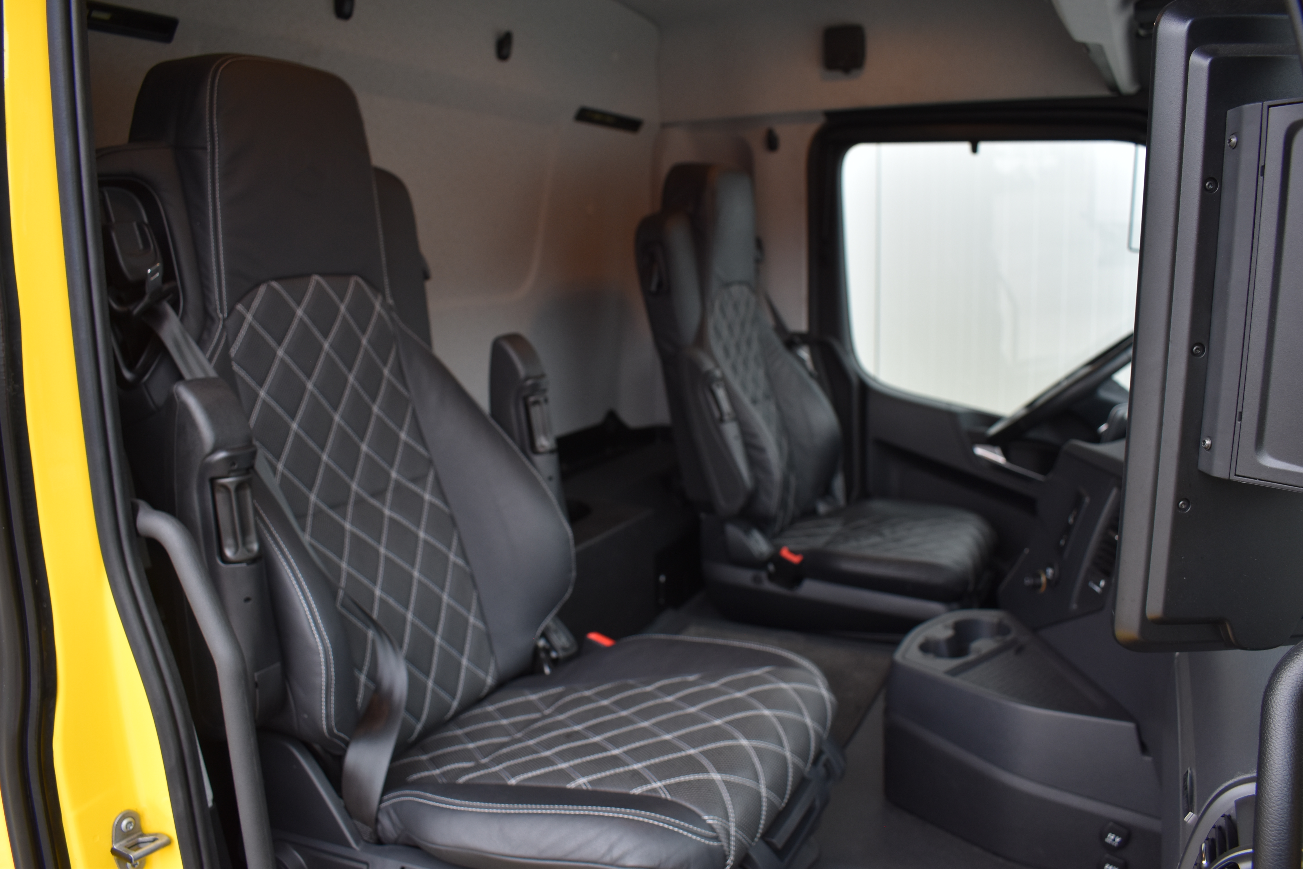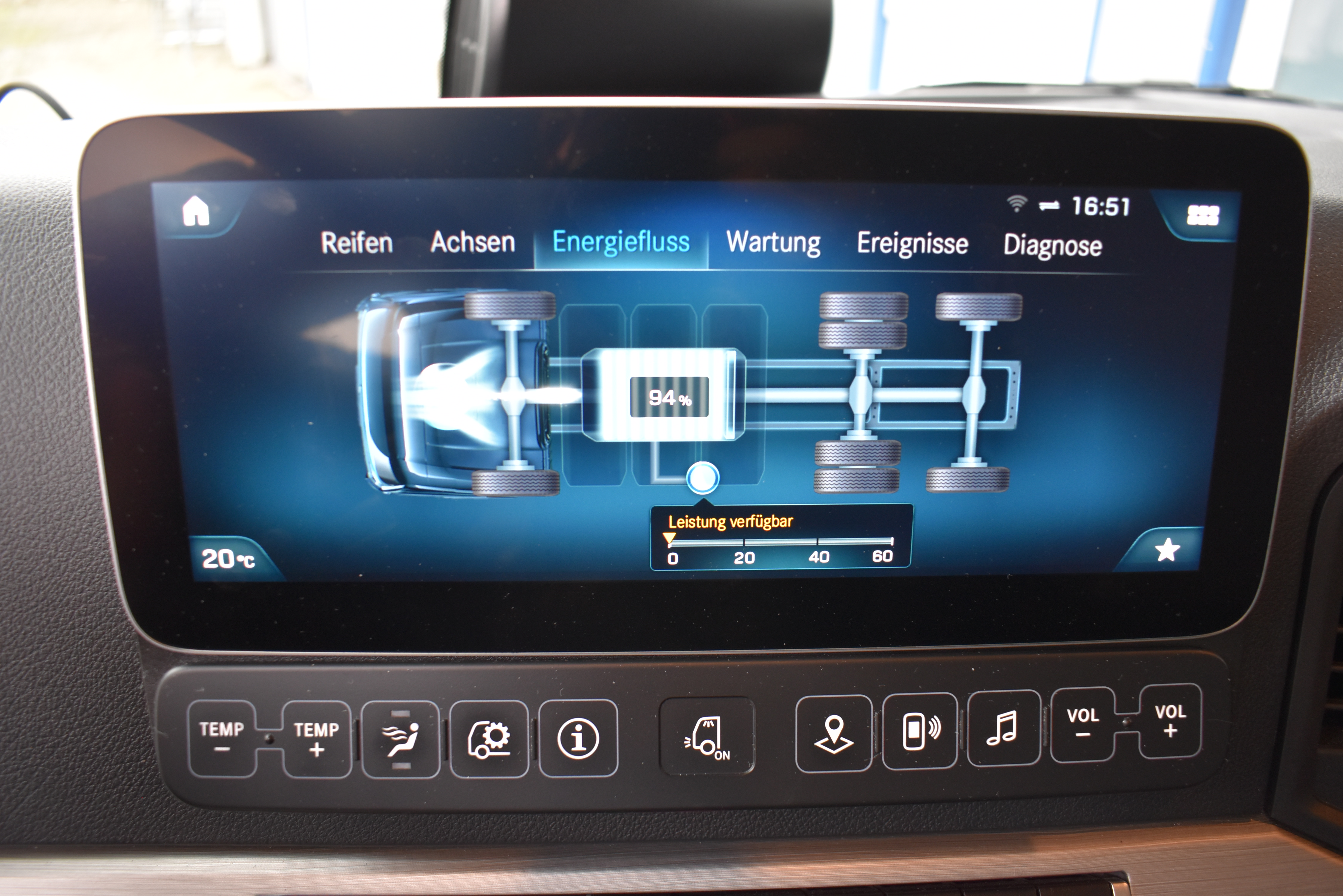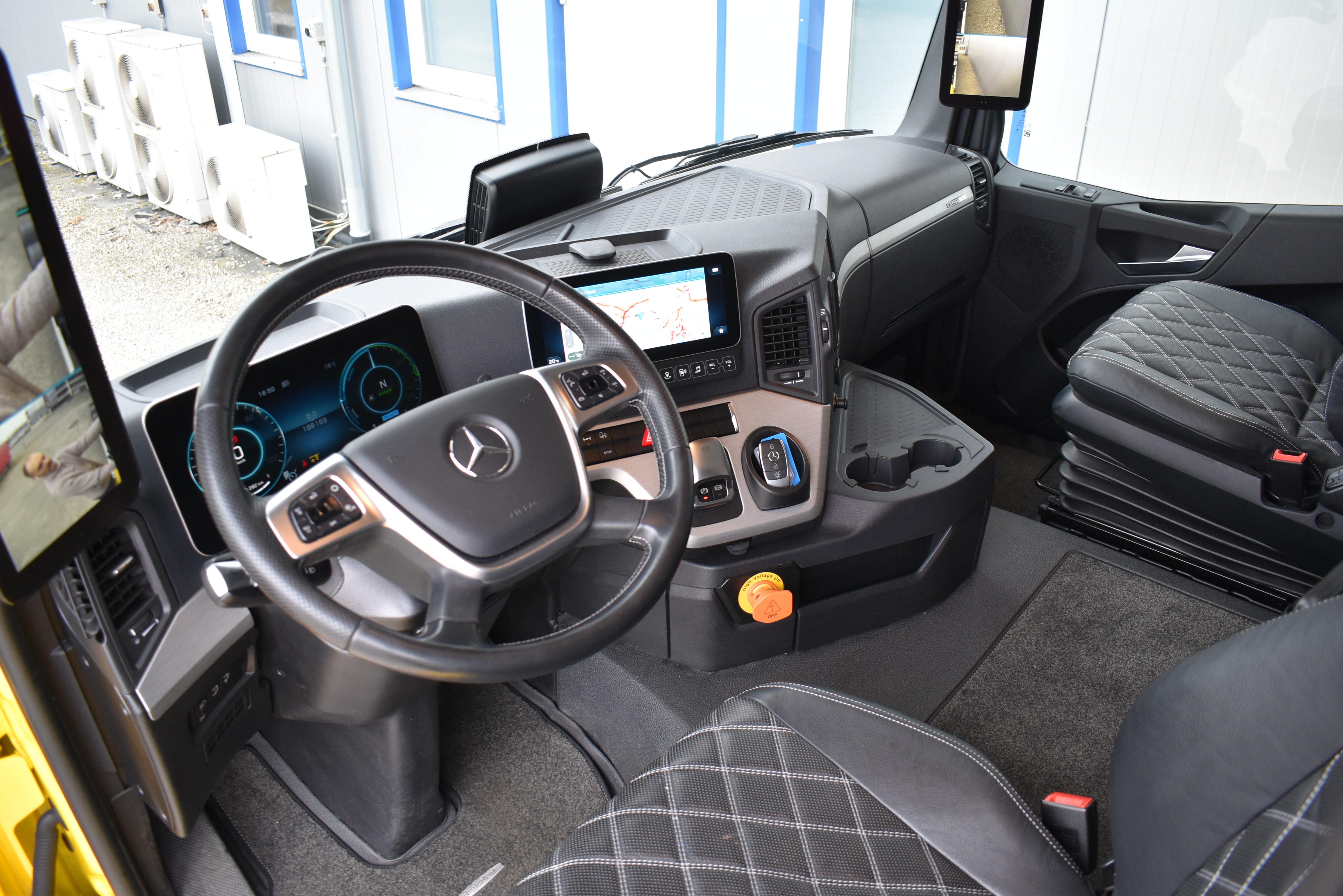 Klimaautomatik, ABS, ASR, elektrische Fensterheber, Spiegel elektrisch verstellbar, Spiegelheizung, Vollluftfederung, Scheibenbremsen, Zentralverriegelung (mit Funkfernbedienung), - (MirrorCam, LED-Scheinwerfer), Abstandsregeltempomat, Airbag Fahrer, Anfahrassistent, Anhängerkupplung (Rockinger), Beifahrersitz (Komfort luftgefedert), Digital-Tacho, ESP, Ledersitze, Licht- und Regensensor, Nachlaufachse liftbar-gelenkt, Navigationssystem, Radio Media mit Bluetooth (DAB), Spurassistent |