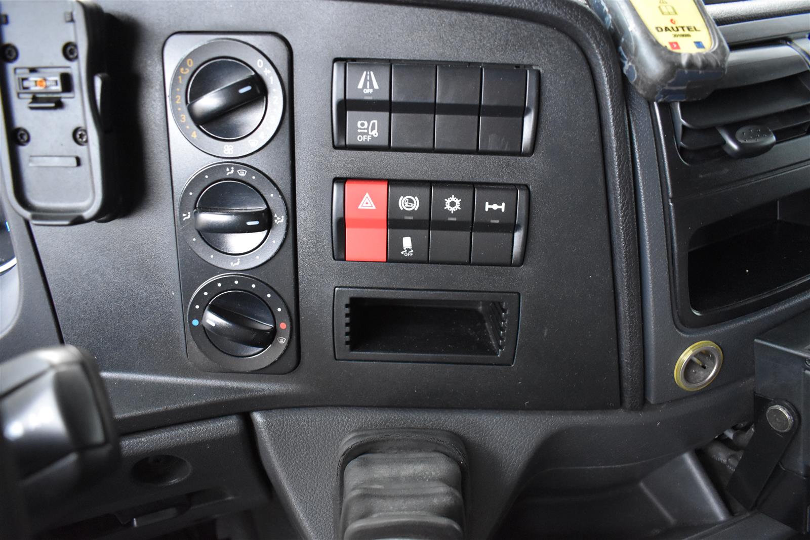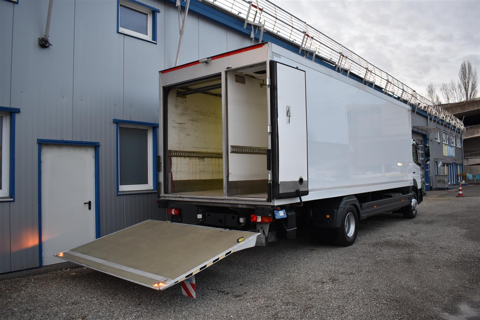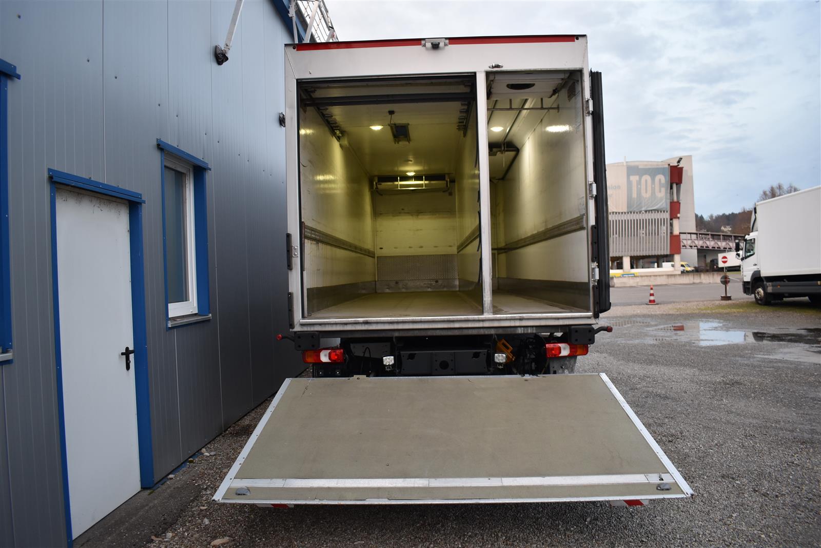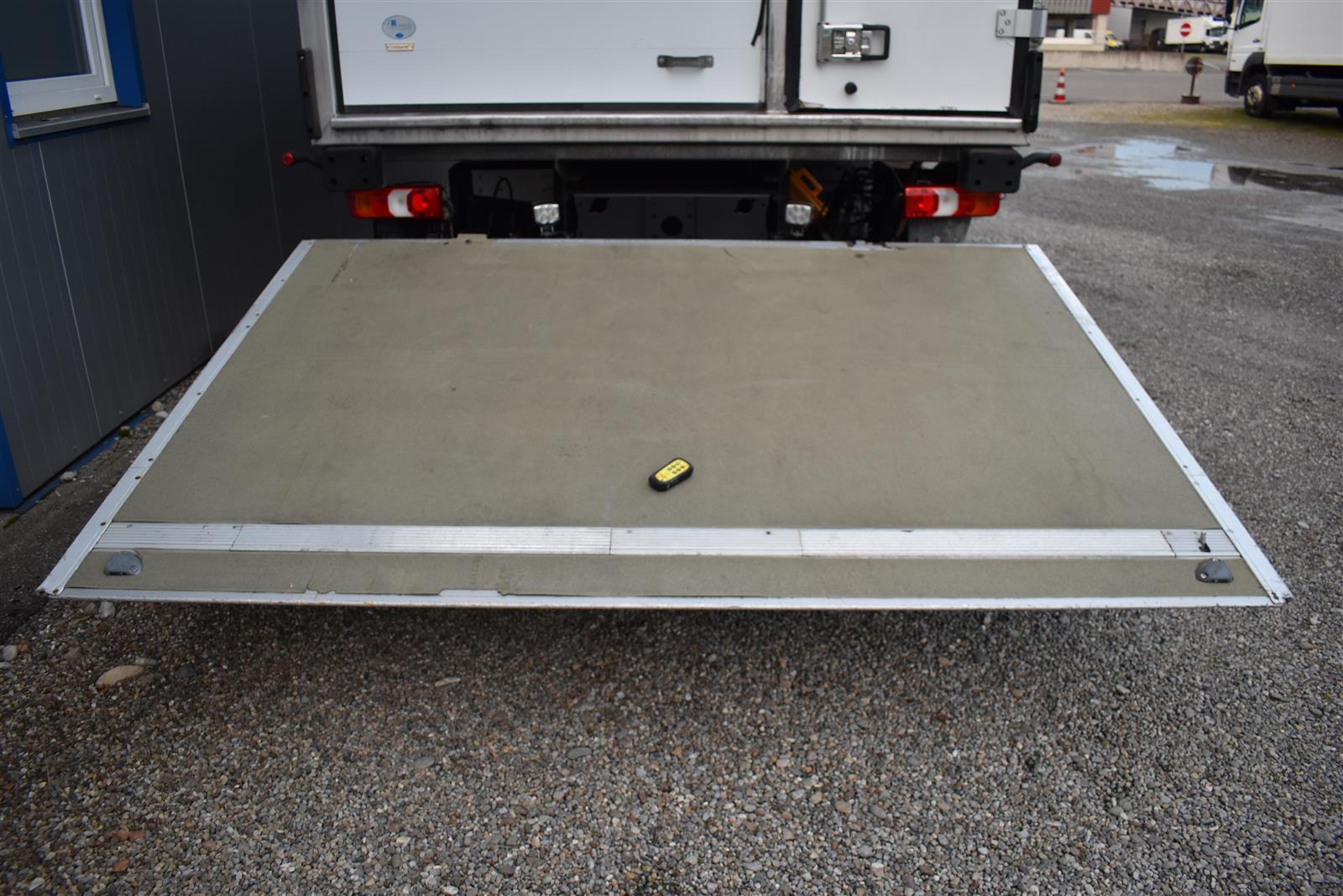 Klimaanlage, ABS, ASR, Radio/CD (mit Bluetooth), elektrische Fensterheber, Spiegel elektrisch verstellbar, Spiegelheizung, Luftfederung Hinterachse, HB-Blatt (1'800 mm mit Anti-Rutsch Belag und Funkfernbedienung), Kühlaggregat (Carrier Supra 1'250 Mt, Diesel- und Netzbetrieb), Scheibenbremsen, Differentialsperre, Dachspoiler, Zentralverriegelung (mit Funkfernbedienung), Wandstärke (50 mm), " (längs verschiebbare Trennwand in der kleinen Zone), 2-Zonen-Tiefkühlkasten mit 2 Verdampfern und verschiebbarer Trennwand , AdBlue-Tank, Anfahrassistent, Digital-Tacho, ESP, Hebebühne (Dautel mit 1'500 kg Tragkraft), je 1 Zurrschiene seitlich, Kunststoffboden, Multifunktionslenkrad, Rolltor (links, zusätzlich 1 Flügeltüre rechts), Rückfahrkamera, Sitzheizung |