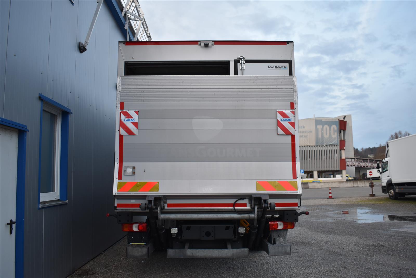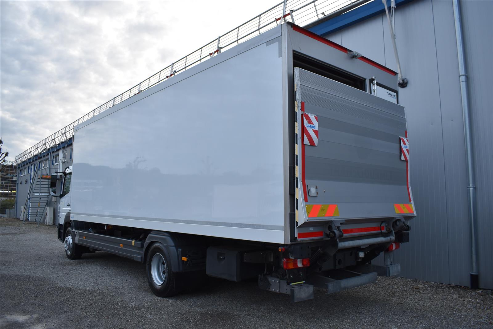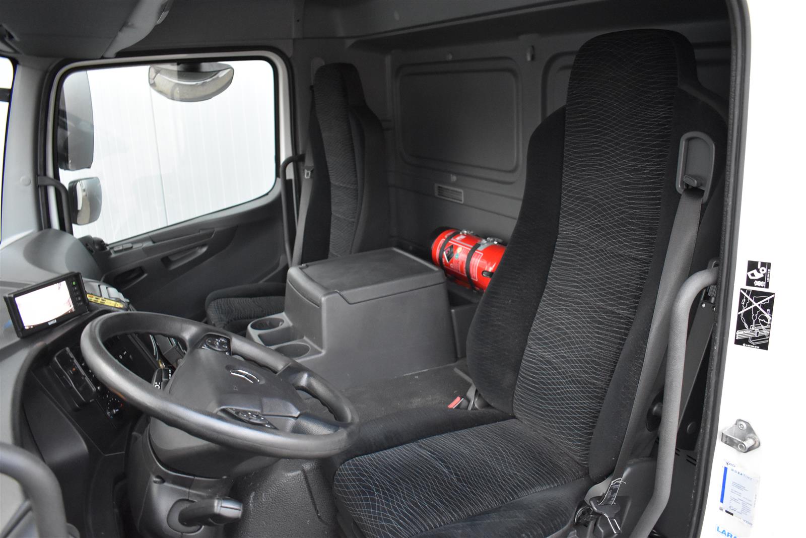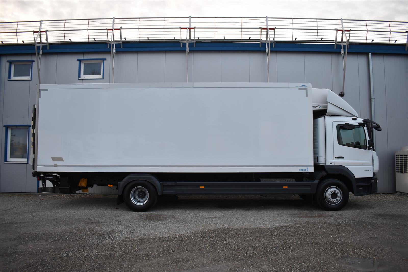 Klimaanlage, ABS, ASR, Radio/CD (mit Bluetooth), elektrische Fensterheber, Spiegel elektrisch verstellbar, Spiegelheizung, Luftfederung Hinterachse, HB-Blatt (1'800 mm mit Anti-Rutsch Belag und Funkfernbedienung), Kühlaggregat (Carrier Supra 1'250 Mt, Diesel- und Netzbetrieb), Scheibenbremsen, Differentialsperre, Dachspoiler, Zentralverriegelung (mit Funkfernbedienung), Wandstärke (50 mm), " (längs verschiebbare Trennwand in der kleinen Zone), 2-Zonen-Tiefkühlkasten mit 2 Verdampfern und verschiebbarer Trennwand , AdBlue-Tank, Anfahrassistent, Digital-Tacho, ESP, Hebebühne (Dautel mit 1'500 kg Tragkraft), je 1 Zurrschiene seitlich, Kunststoffboden, Multifunktionslenkrad, Rolltor (links, zusätzlich 1 Flügeltüre rechts), Rückfahrkamera, Sitzheizung |