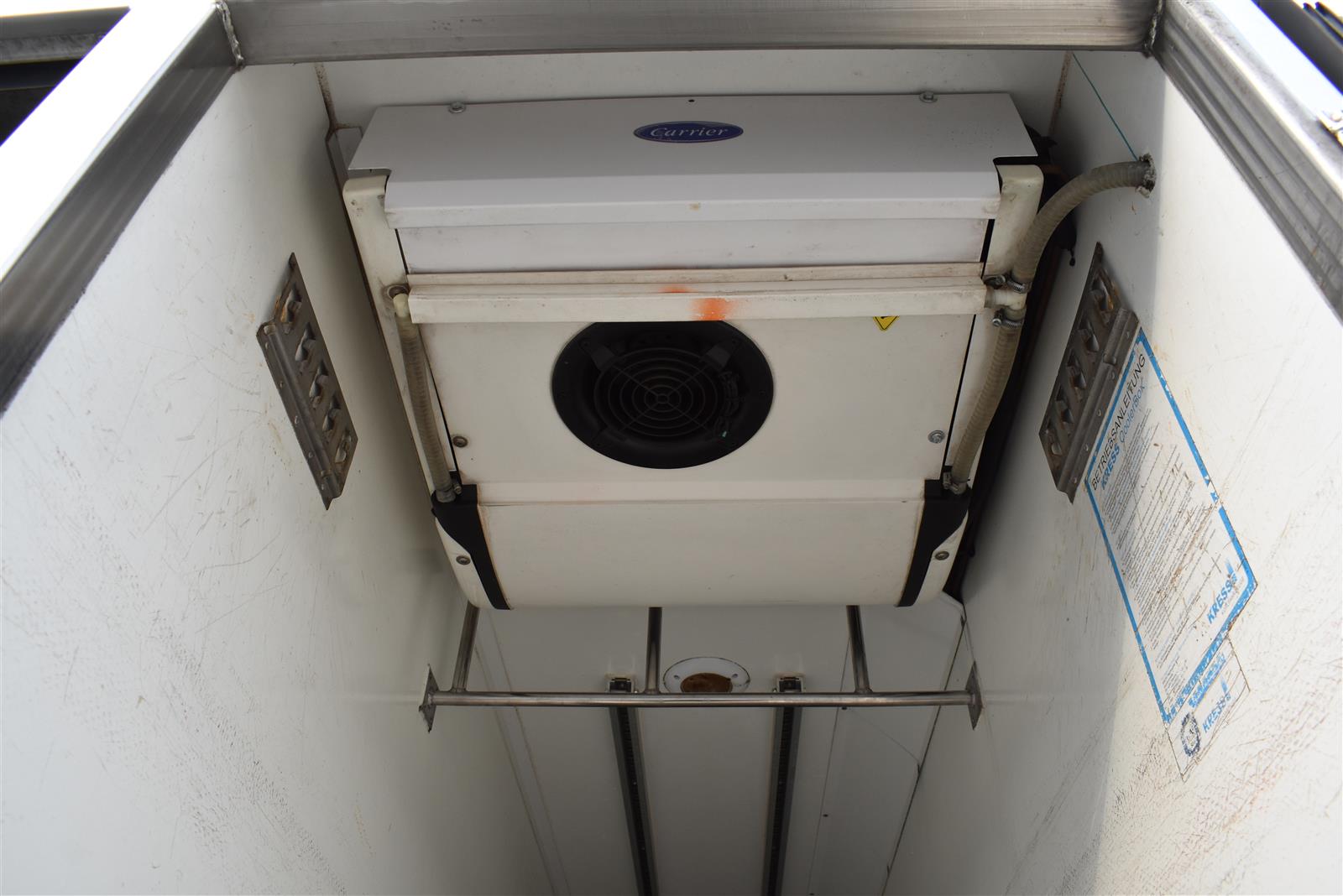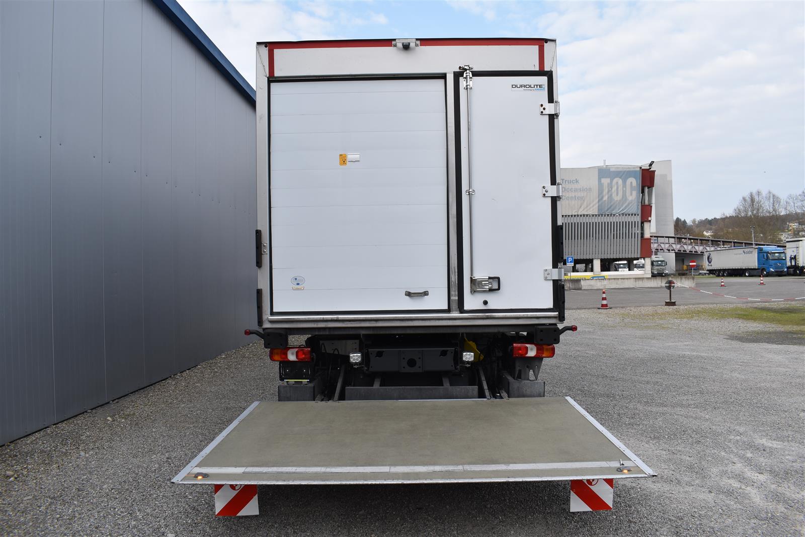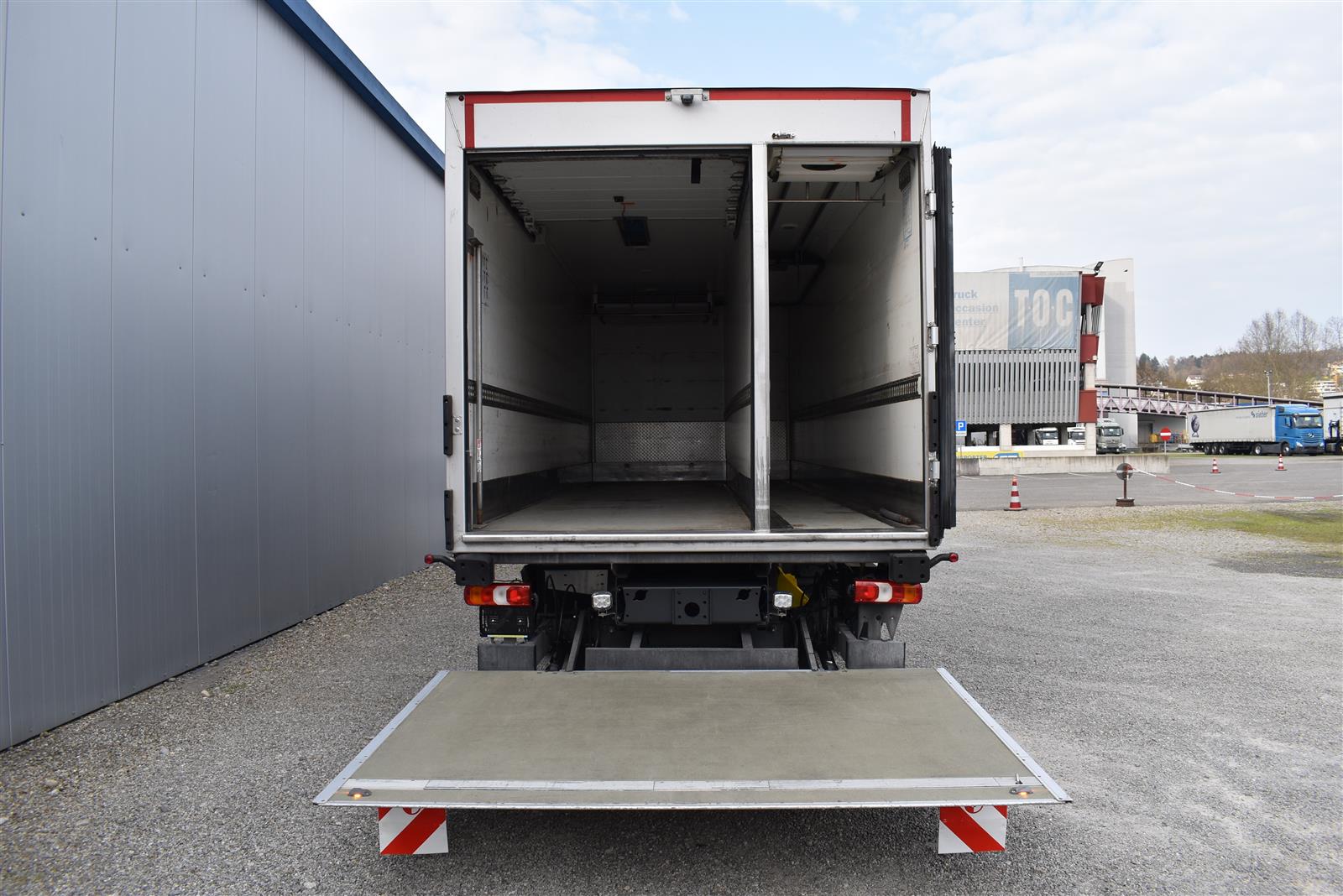 Klimaanlage, ABS, ASR, Radio/CD (mit Bluetooth), elektrische Fensterheber, Spiegel elektrisch verstellbar, Spiegelheizung, Luftfederung Hinterachse, HB-Blatt (1'800 mm mit Anti-Rutsch Belag und Funkfernbedienung), Kühlaggregat (Carrier Supra 1'250 Mt, Diesel- und Netzbetrieb), Scheibenbremsen, Differentialsperre, Dachspoiler, Zentralverriegelung (mit Funkfernbedienung), - (längs verschiebbare Trennwand in der kleinen Zone), 2-Zonen-Tiefkühlkasten mit 2 Verdampfern und verschiebbarer Trennwand , AdBlue-Tank, Anfahrassistent, Digital-Tacho, ESP, Hebebühne (Dautel mit 1'500 kg Tragkraft), je 1 Zurrschiene seitlich, Kunststoffboden, Multifunktionslenkrad, Rolltor (links pneumatisch öffnend, zusätzlich 1 Flügeltüre rechts), Rückfahrkamera, Sitzheizung |