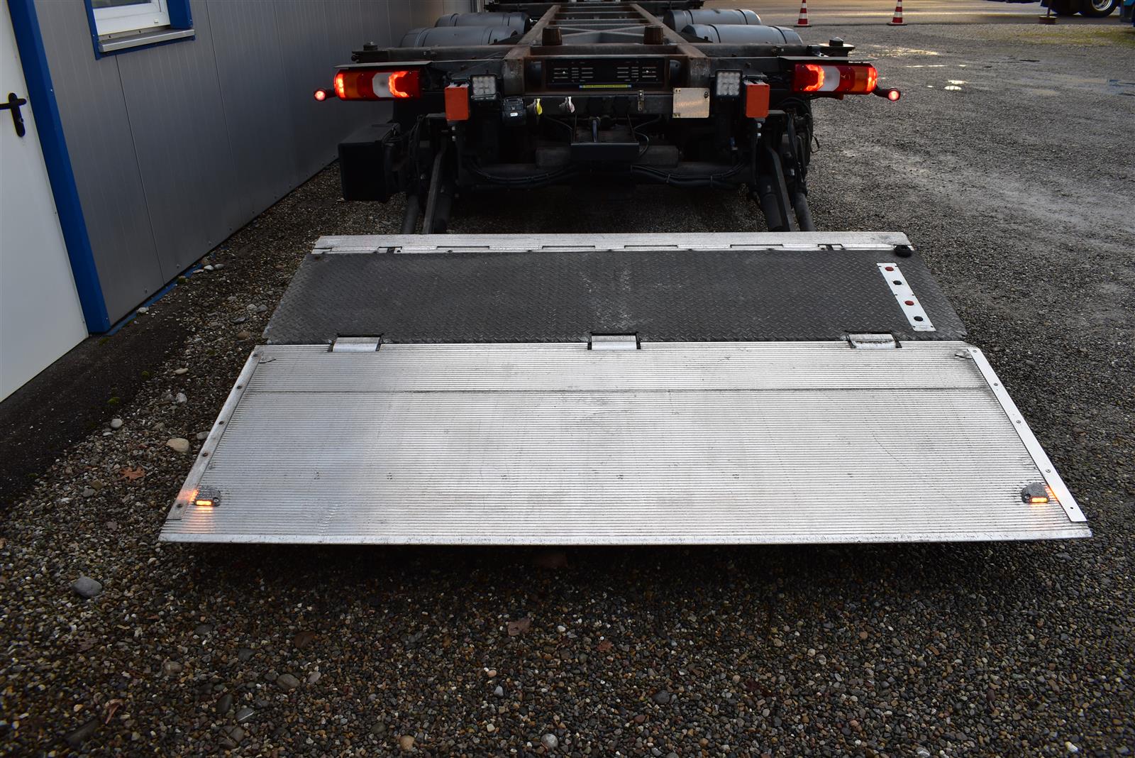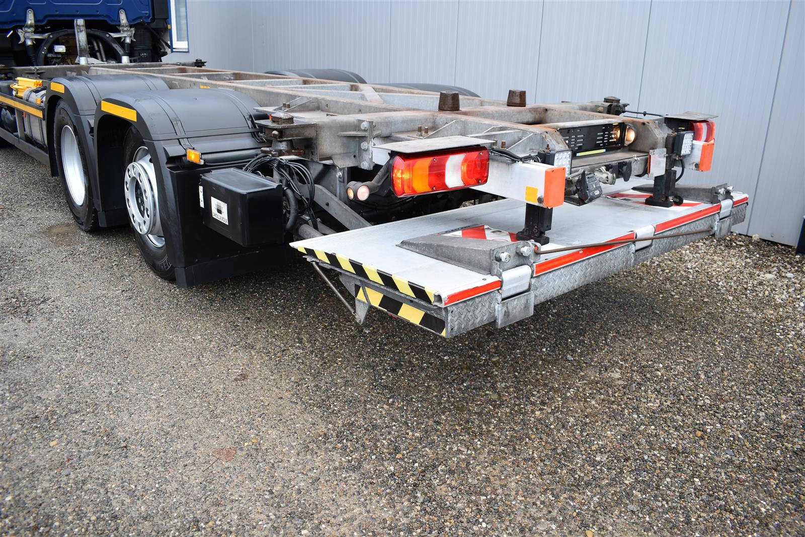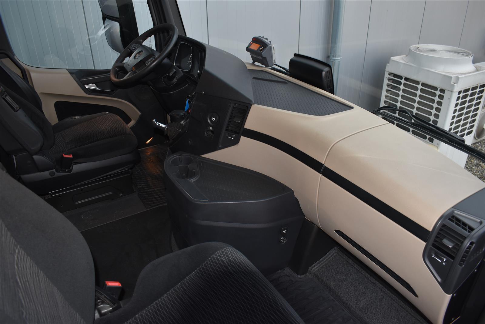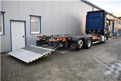 Retarder, Klimaanlage, Standheizung, EU-Bremsen, Duomatic-Anschluss, ABS, ASR, elektrische Fensterheber, Spiegel elektrisch verstellbar, Spiegelheizung, Vollluftfederung, Scheibenbremsen, Differentialsperre, Zentralverriegelung (mit Funkfernbedienung), Abstandsregeltempomat, AdBlue-Tank, Airbag Fahrer, Aluminiumtank, Anfahrassistent, Anhängerkupplung (Rockinger), Beifahrersitz (klappbar), Digital-Tacho, ESP, Hebebühne (Dhollandia mit 1'500kg Tragkraft), Kühlbox, Licht- und Regensensor, Multifunktionslenkrad, Nachlaufachse liftbar-gelenkt, Spurassistent, Xenonscheinwerfer |