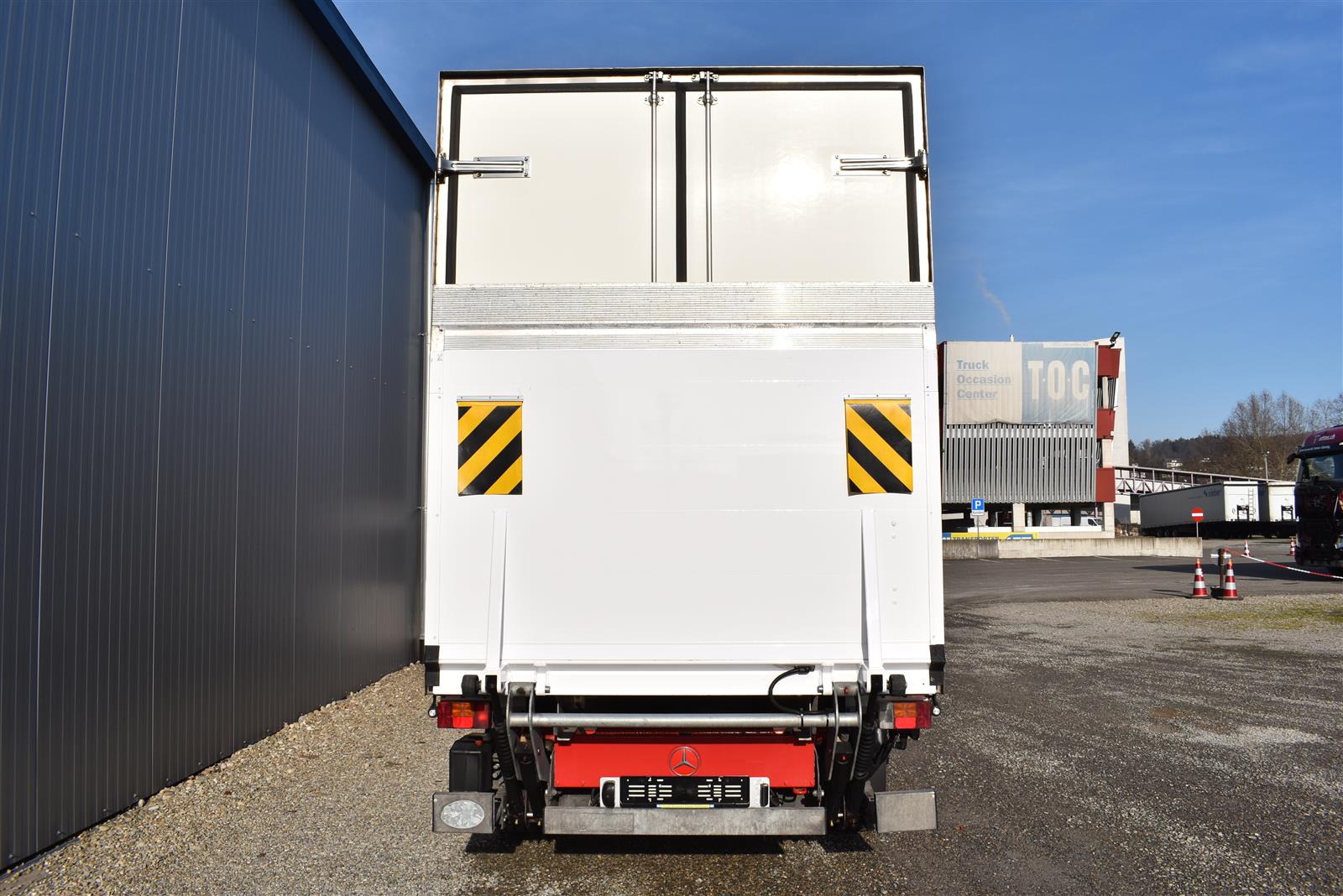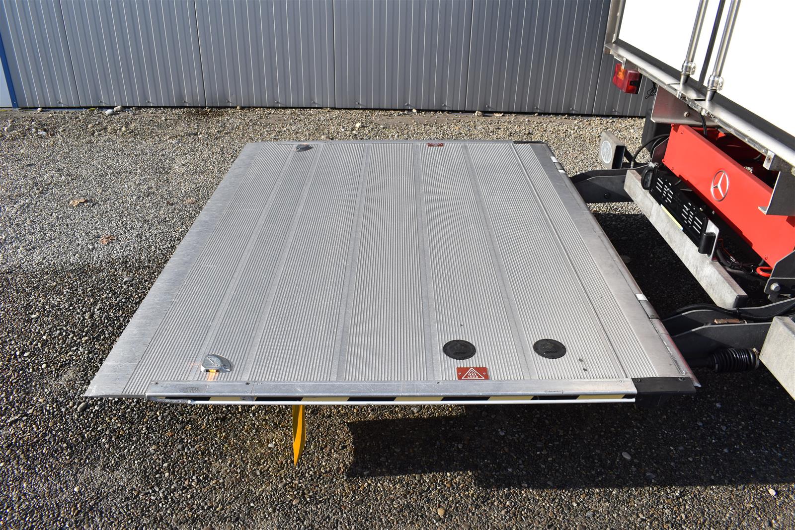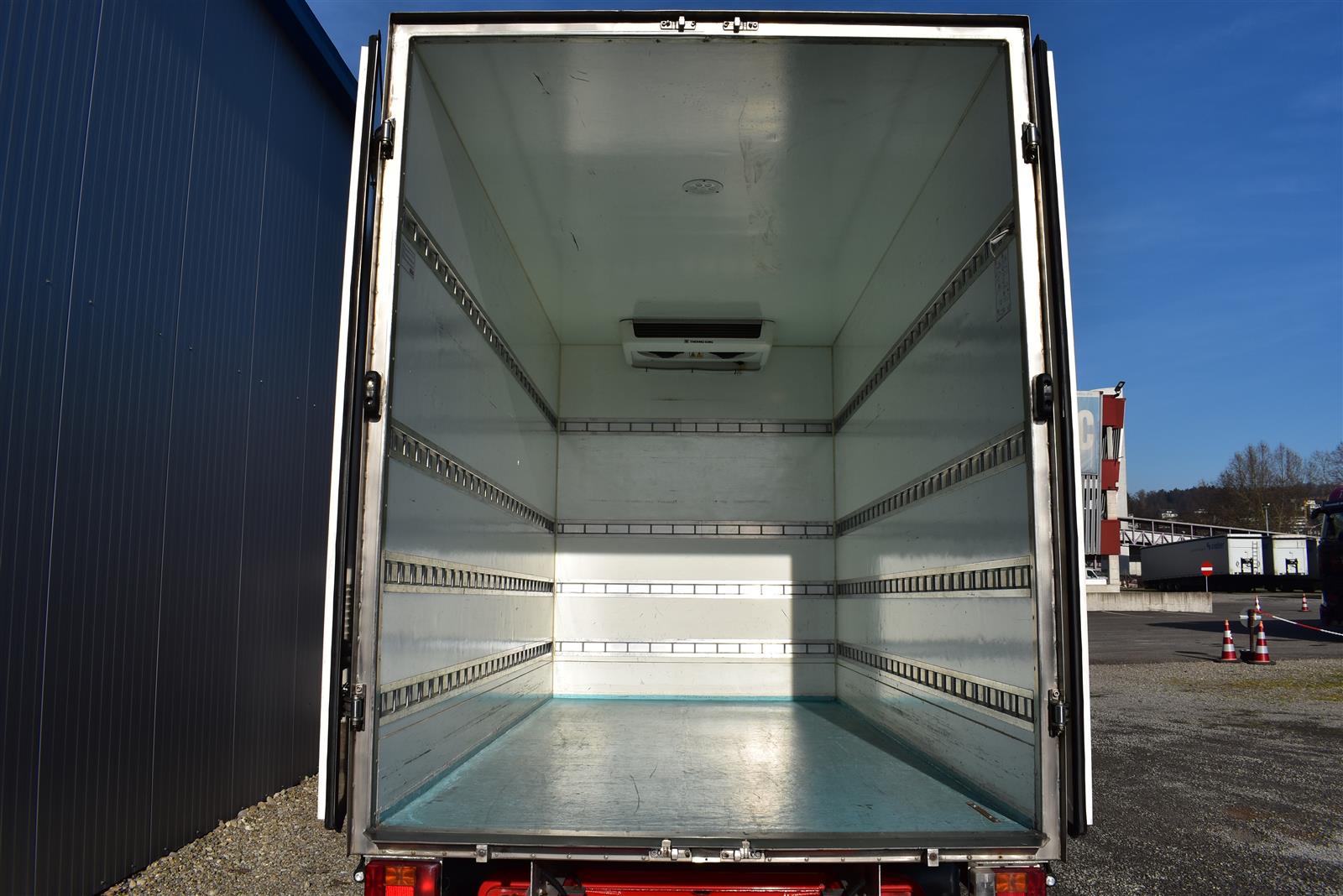 Tempomat, Klimaanlage, ABS, ASR, elektrische Fensterheber, Spiegel elektrisch verstellbar, Spiegelheizung, Luftfederung Hinterachse, HB-Blatt (1'550 mm), Kühlaggregat (Thermoking V-300 M), Dachspoiler, Zentralverriegelung (mit Funkfernbedienung), - (Diebstahlwarnanlage mit Abschleppschutz), 3 Sitze vorne, Airbag Fahrer, Digital-Tacho, ESP, Hebebühne (Dautel mit 750 kg Tragkraft), Heckflügeltüren, Kunststoffboden, Radio Media mit Bluetooth, Zurrschienen