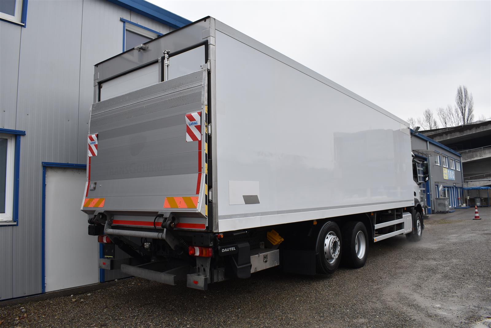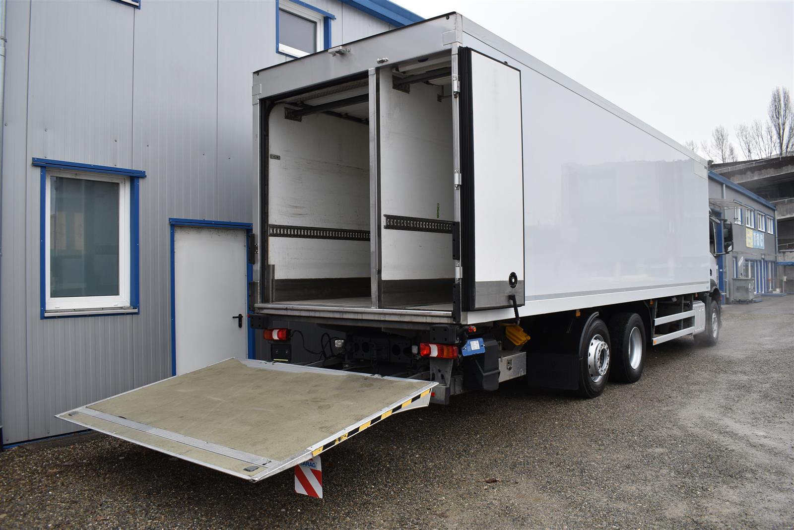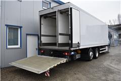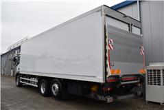 Retarder, Klimaanlage, ABS, ASR, Radio/CD (mit Bluetooth), elektrische Fensterheber, Spiegel elektrisch verstellbar, Spiegelheizung, Vollluftfederung, HB-Blatt (1'800 mm mit Funkfernbedienung), Kühlaggregat (Carrier Supra 1'250 Mt, Diesel- und Netzbetrieb), Scheibenbremsen, Differentialsperre, Dachspoiler, Zentralverriegelung, - (längs verschiebbare Trennwand in der kleinen Zone), Abstandsregeltempomat, AdBlue-Tank, Aluminiumtank, Anfahrassistent, Beifahrersitz (klappbar), Digital-Tacho, ESP, Hebebühne (Dautel mit 1'500 kg Tragkraft), je 1 Zurrschiene seitlich, Kunststoffboden, Multifunktionslenkrad, Nachlaufachse liftbar-gelenkt, Rolltor (links pneumatisch öffnend, zusätzlich 1 Flügeltüre rechts), Rückfahrkamera, Sitzheizung, Spurassistent, Werkzeugkiste |
