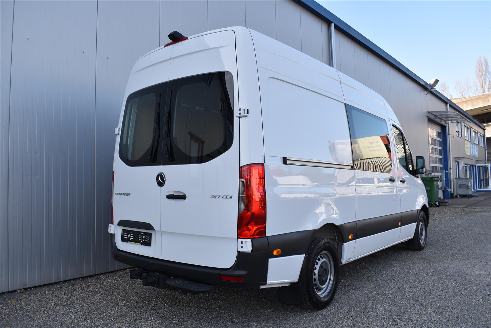 Tempomat, Klimaanlage, ABS, ASR, elektrische Fensterheber, Spiegel elektrisch verstellbar, Spiegelheizung, Scheibenbremsen, Zentralverriegelung (mit Funkfernbedienung), 3 Sitze vorne, Airbag Fahrer, Anhängerkupplung (mit 3'500 kg Anhängelast), Auftritt hinten, ESP, Fenster in Kabinenrückwand, Heckflügeltüren (mit Fenster), Hochdach, Holzfussboden, Licht- und Regensensor, Multifunktionslenkrad, Radio Media mit Bluetooth, Rückfahrkamera, Schiebetüre rechts (mit Fenster), Seitenverkleidung im Laderaum (bis Dachhöhe) |