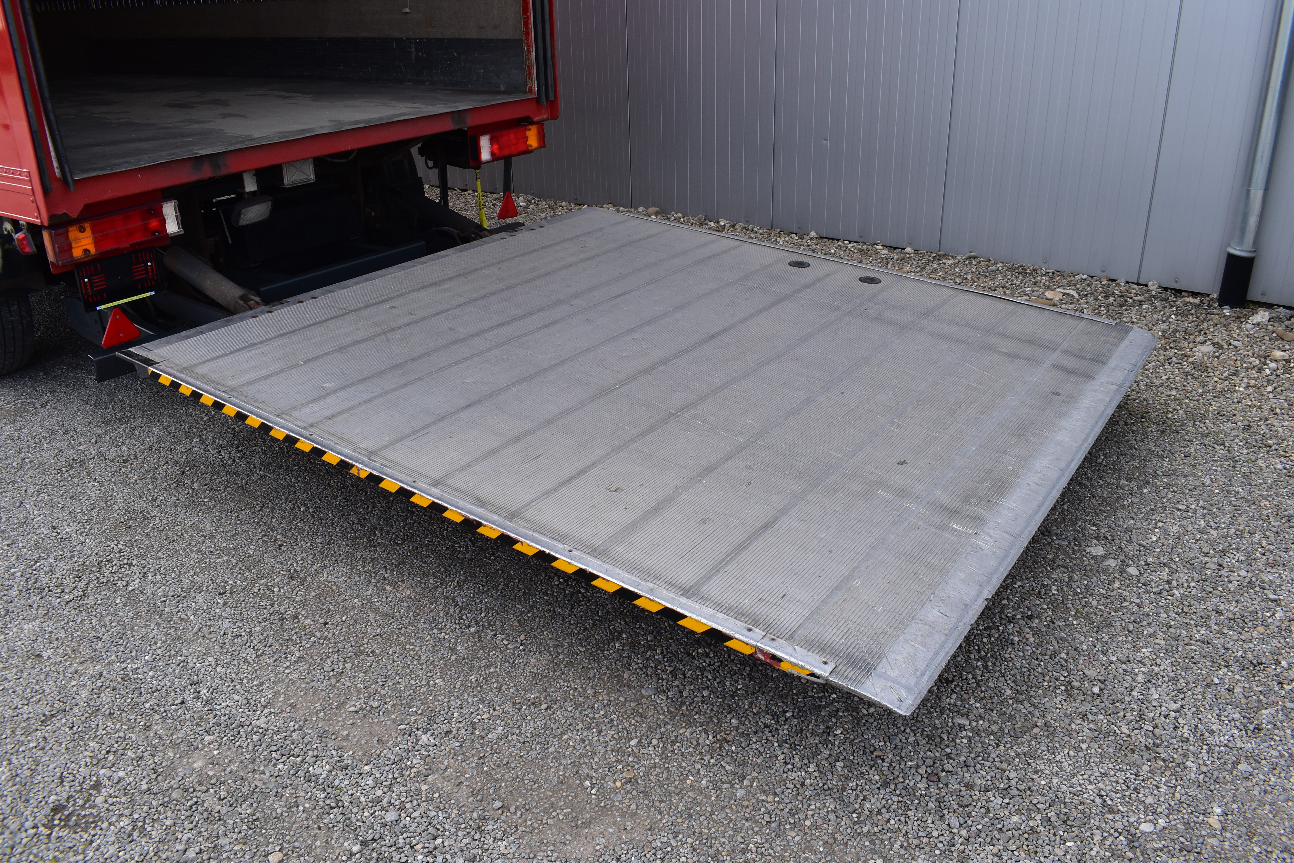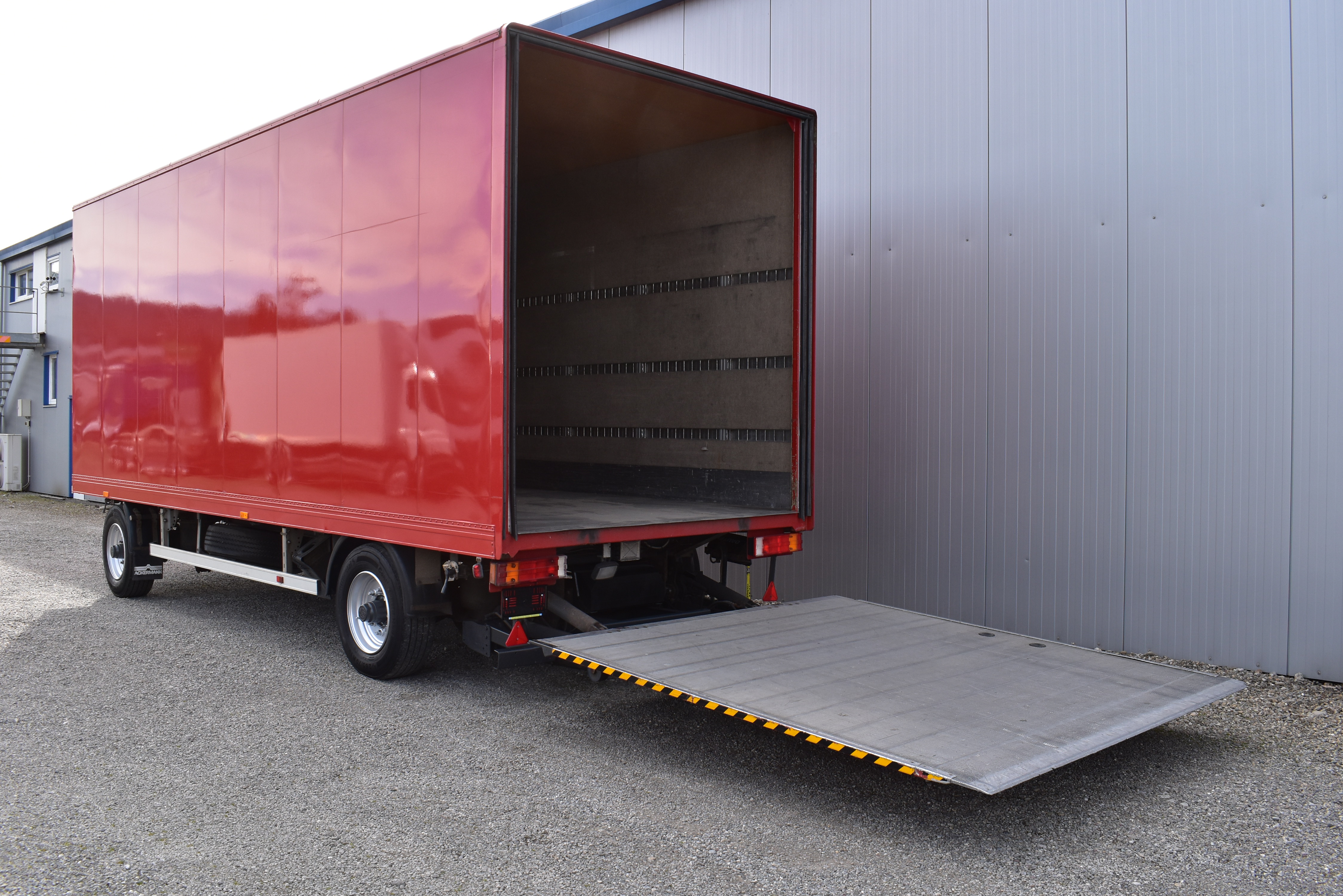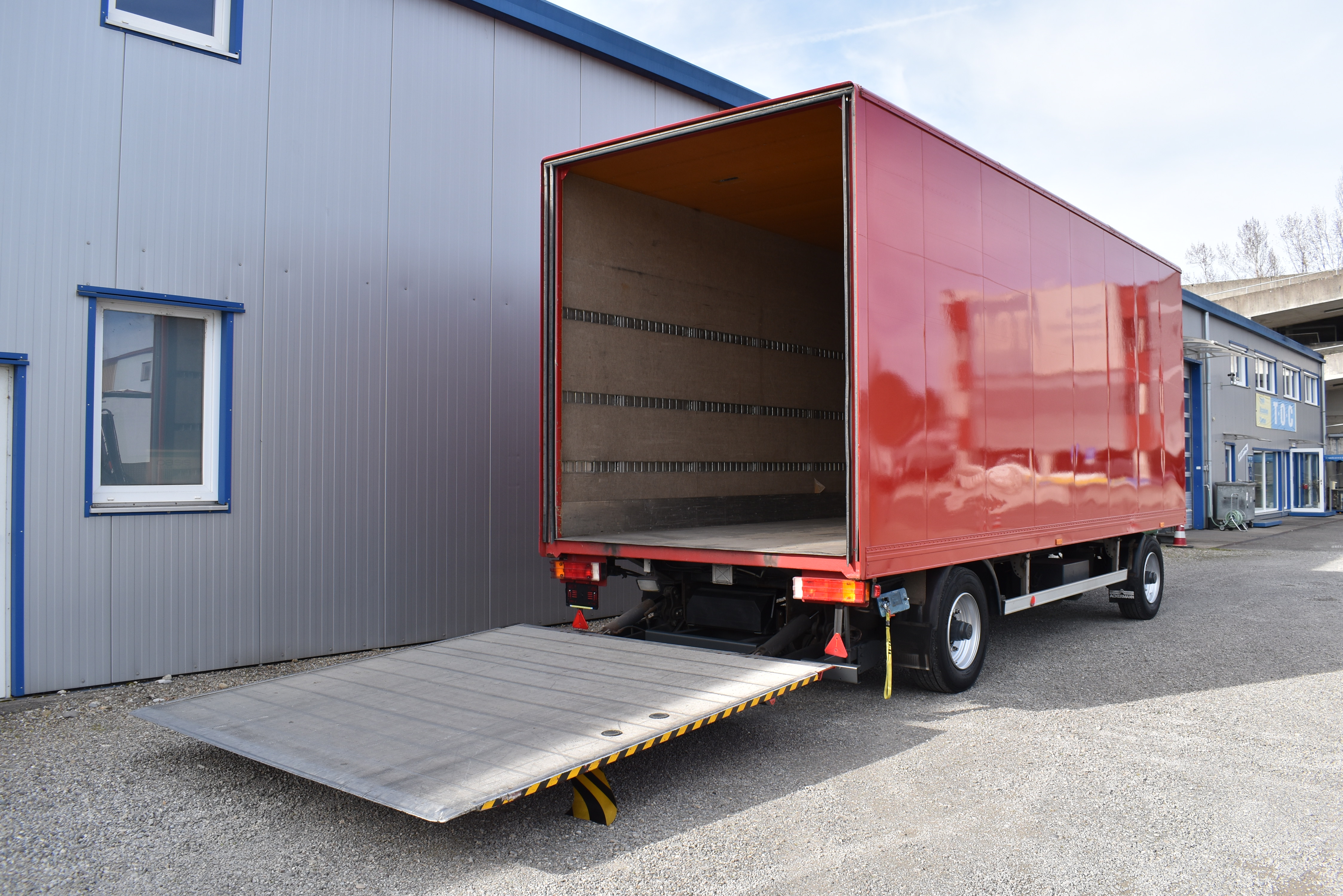 EU-Bremsen, ABS, HB-Blatt (2'600 mm), Scheibenbremsen, BPW-Achsen, Bremsanlage EBS, Hebebühne (Dautel mit 2'000 kg Tragkraft), Holzfussboden