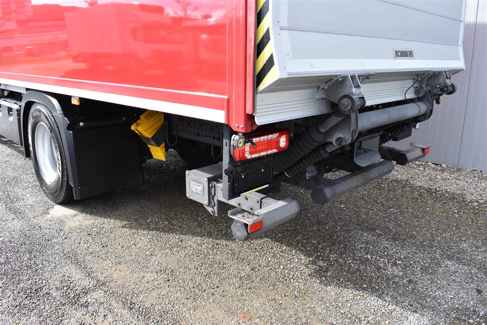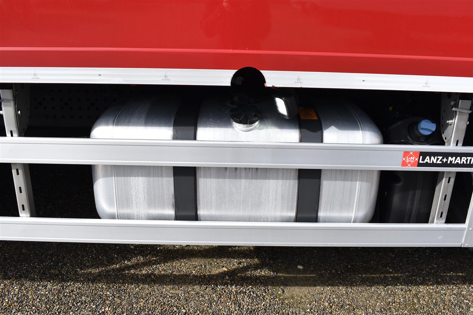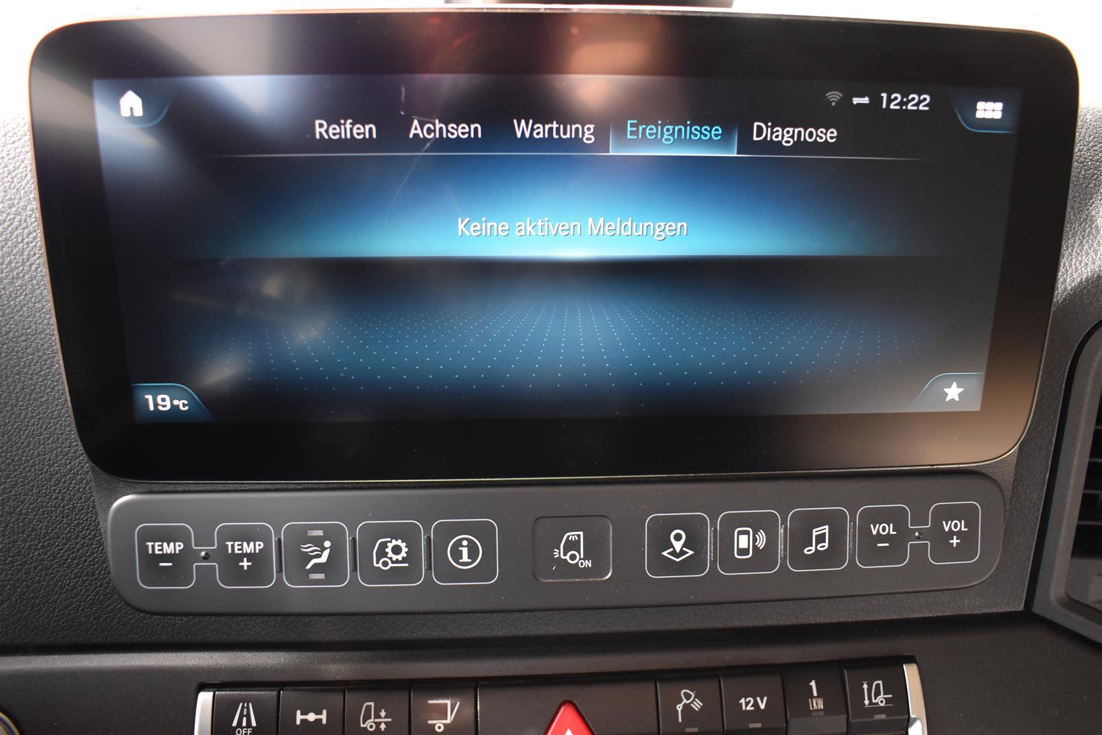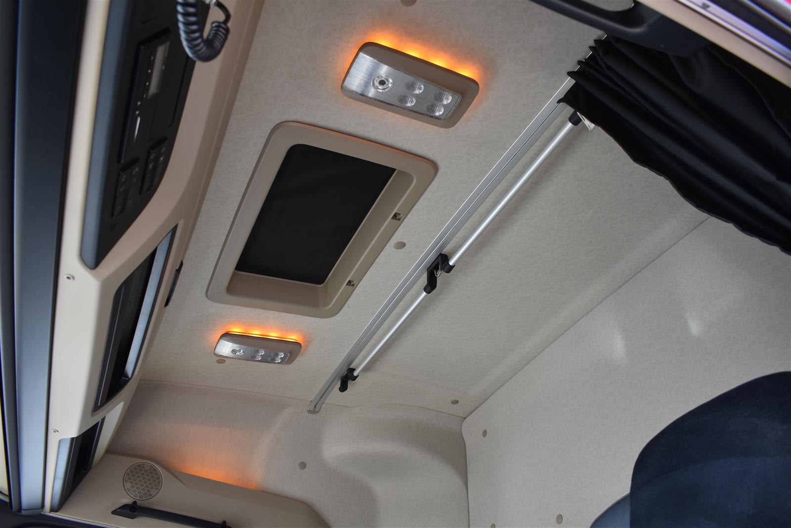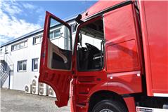 Klimaautomatik, Standheizung, EU-Bremsen, Duomatic-Anschluss, ABS, ASR, elektrische Fensterheber, Motorbremse, Vollluftfederung, HB-Blatt (1'600 mm mit Funkfernbedienung), Scheibenbremsen, Zentralverriegelung (mit Funkfernbedienung), 1 Liege, Abstandsregeltempomat, AdBlue-Tank, Airbag Fahrer, Aluminiumtank, Anfahrassistent, Anhängerkupplung (Rockinger), Beifahrersitz (klappbar), Digital-Tacho, ESP, Hebebühne (Mammut mit 2'000 kg Tragkraft), Holzfussboden, Licht- und Regensensor, Lochschienen (5 Stück in Reihe längsgerichtet unter dem Dach), Multifunktionslenkrad, Navigationssystem, Sitzheizung, Spurassistent, Werkzeugkiste, Xenonscheinwerfer |