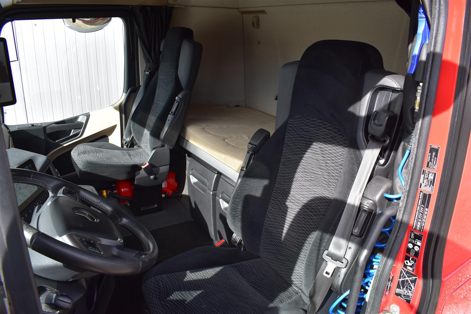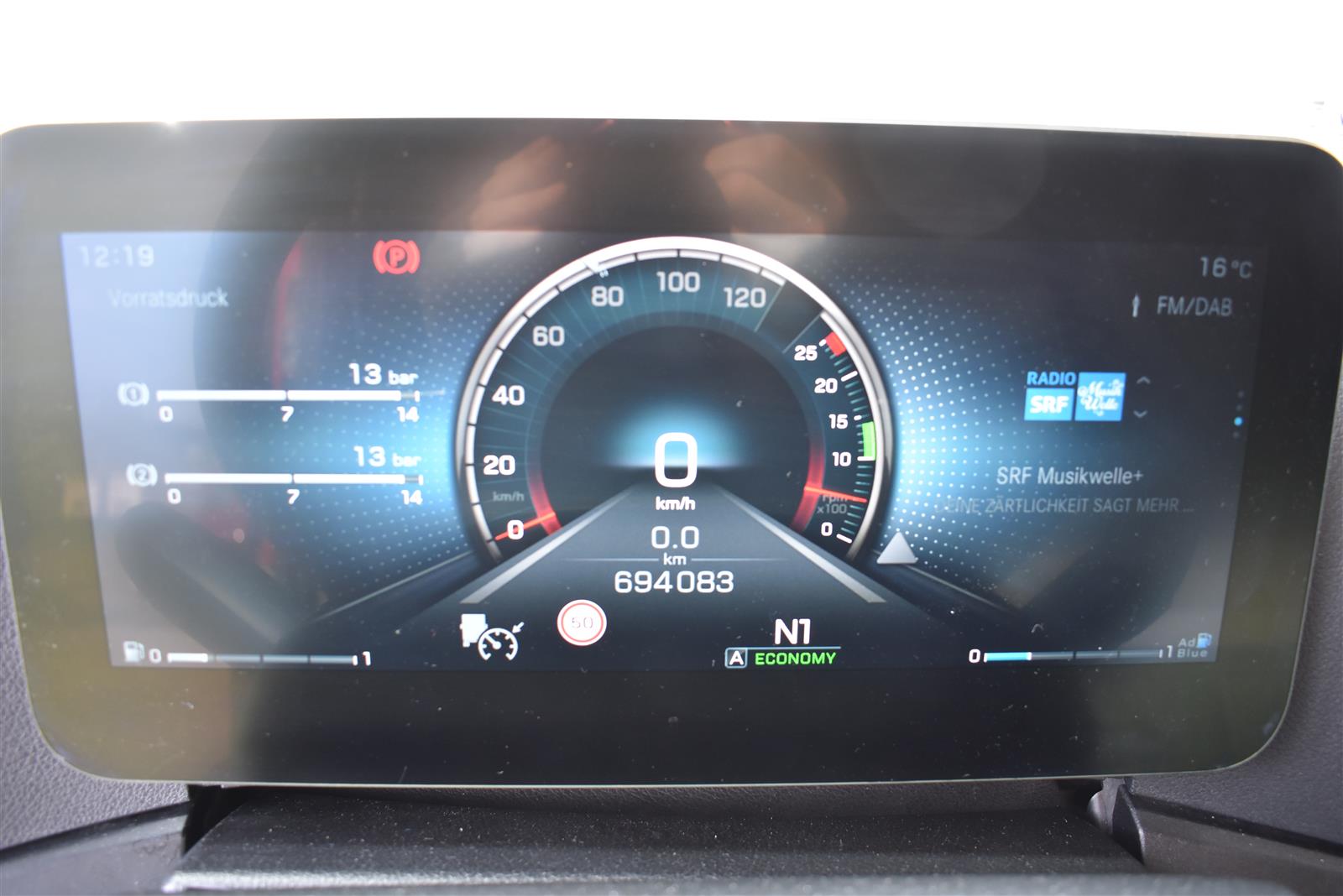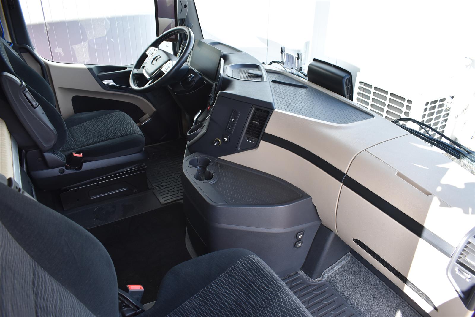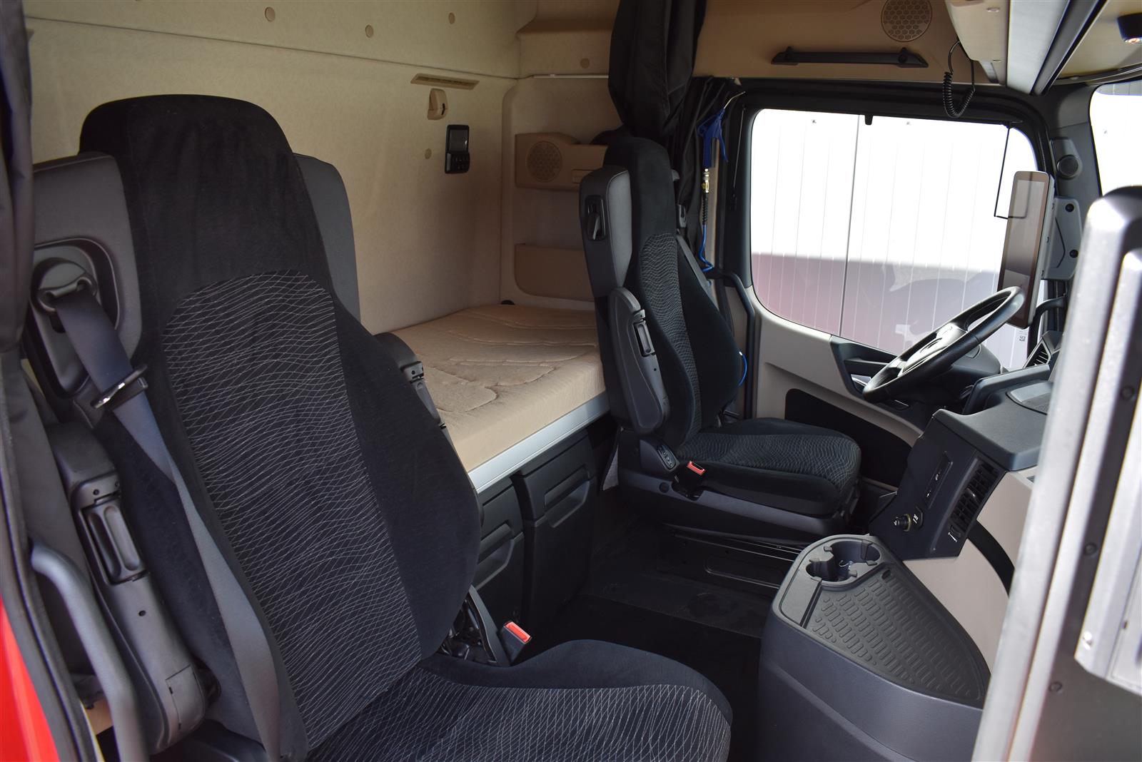 Klimaautomatik, Standheizung, EU-Bremsen, Duomatic-Anschluss, ABS, ASR, elektrische Fensterheber, Motorbremse, Vollluftfederung, HB-Blatt (1'600 mm mit Funkfernbedienung), Scheibenbremsen, Zentralverriegelung (mit Funkfernbedienung), 1 Liege, Abstandsregeltempomat, AdBlue-Tank, Airbag Fahrer, Aluminiumtank, Anfahrassistent, Anhängerkupplung (Rockinger), Beifahrersitz (klappbar), Digital-Tacho, ESP, Hebebühne (Mammut mit 2'000 kg Tragkraft), Holzfussboden, Licht- und Regensensor, Lochschienen (5 Stück in Reihe längsgerichtet unter dem Dach), Multifunktionslenkrad, Navigationssystem, Sitzheizung, Spurassistent, Werkzeugkiste, Xenonscheinwerfer |