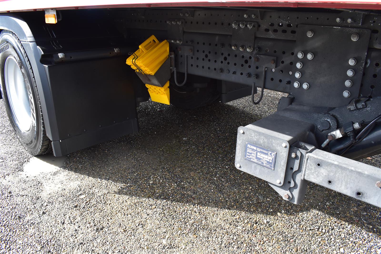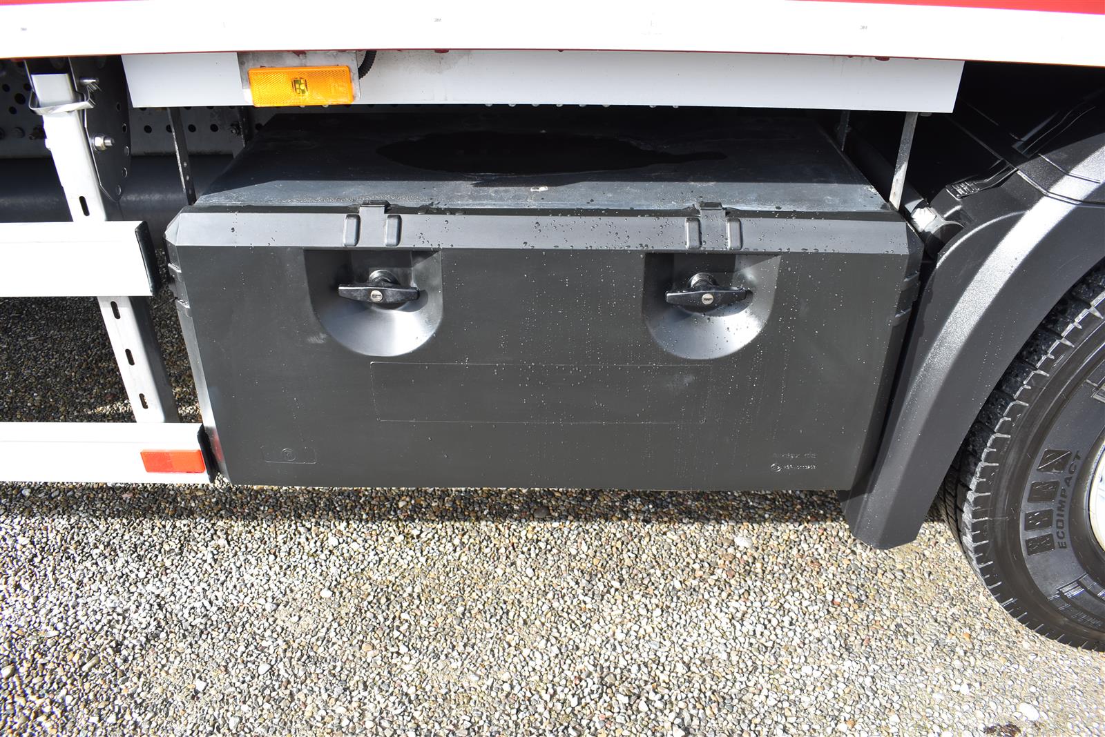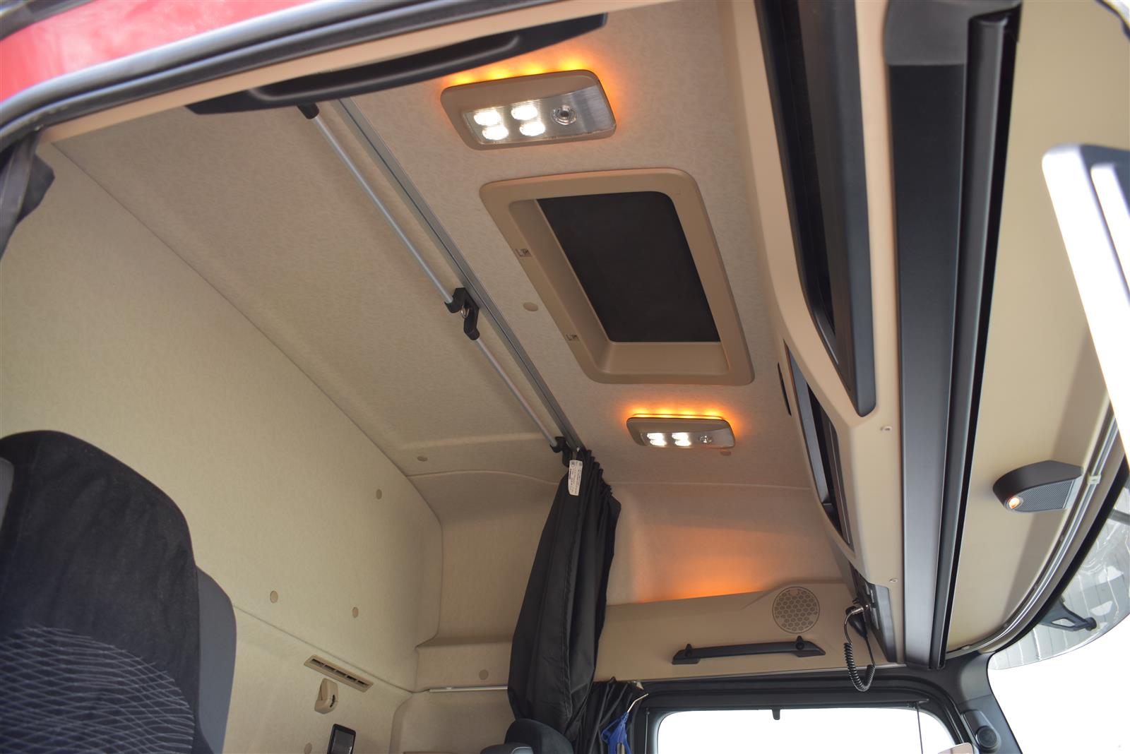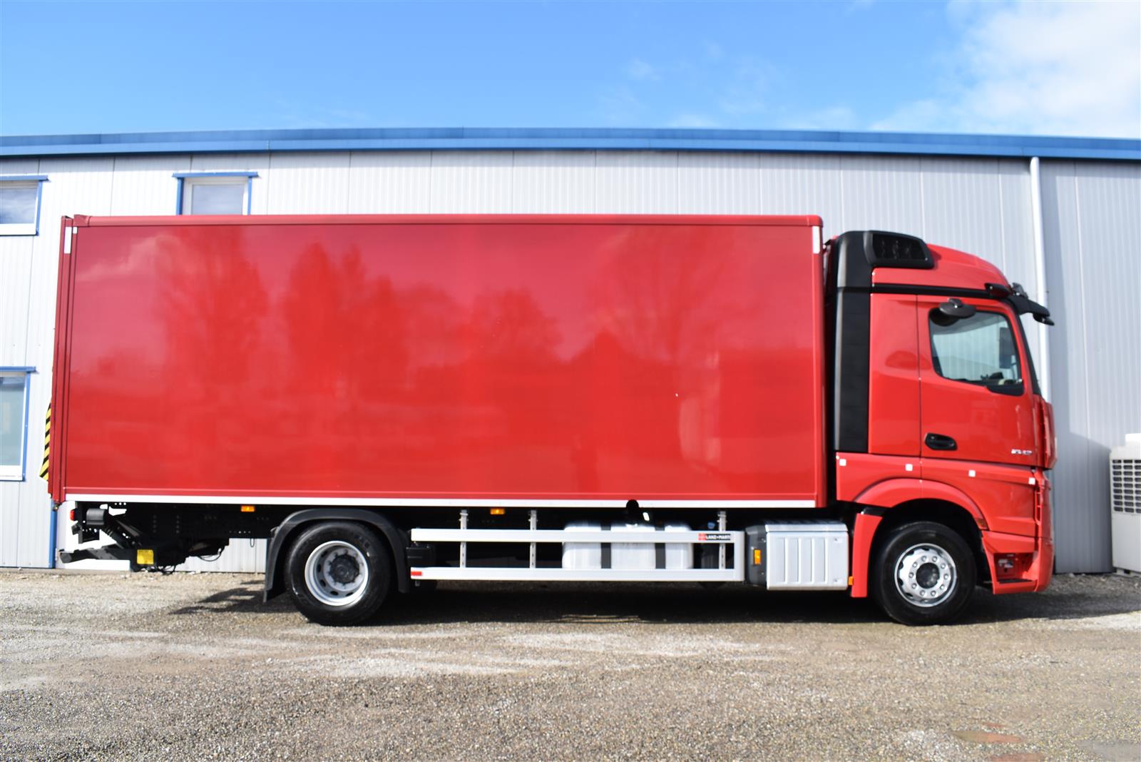 Klimaautomatik, Standheizung, EU-Bremsen, Duomatic-Anschluss, ABS, ASR, elektrische Fensterheber, Motorbremse, Vollluftfederung, HB-Blatt (1'600 mm mit Funkfernbedienung), Scheibenbremsen, Zentralverriegelung (mit Funkfernbedienung), 1 Liege, Abstandsregeltempomat, AdBlue-Tank, Airbag Fahrer, Aluminiumtank, Anfahrassistent, Anhängerkupplung (Rockinger), Beifahrersitz (klappbar), Digital-Tacho, ESP, Hebebühne (Mammut mit 2'000 kg Tragkraft), Holzfussboden, Licht- und Regensensor, Lochschienen (5 Stück in Reihe längsgerichtet unter dem Dach), Multifunktionslenkrad, Navigationssystem, Sitzheizung, Spurassistent, Werkzeugkiste, Xenonscheinwerfer |
