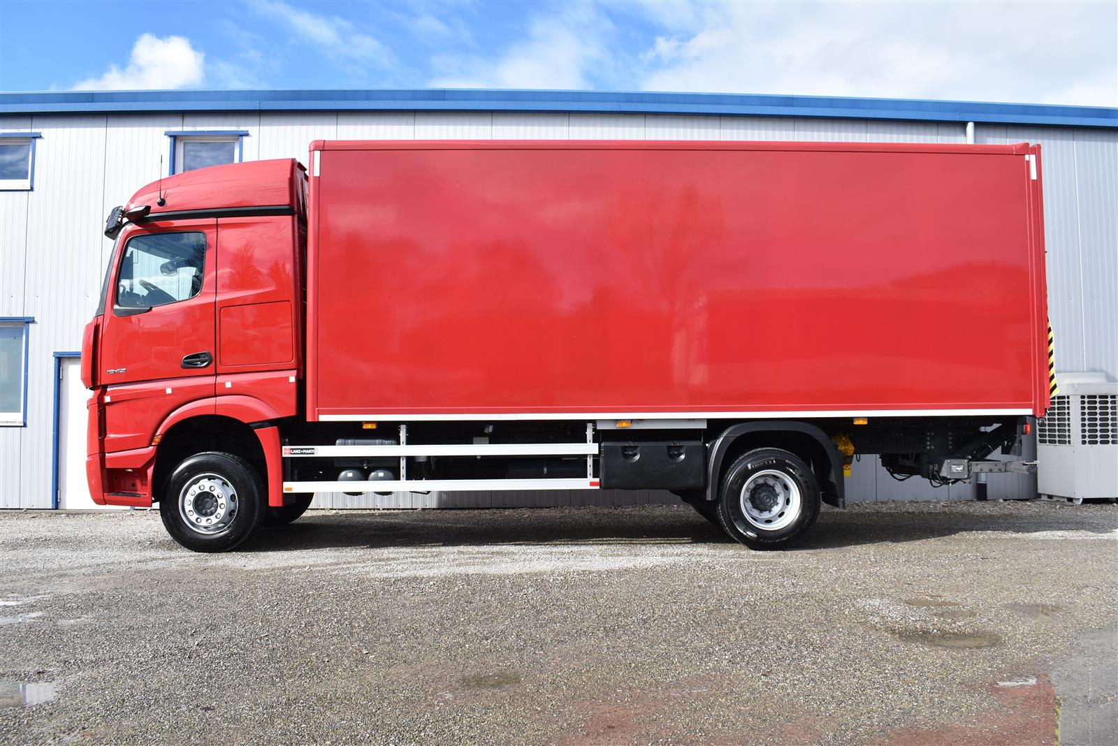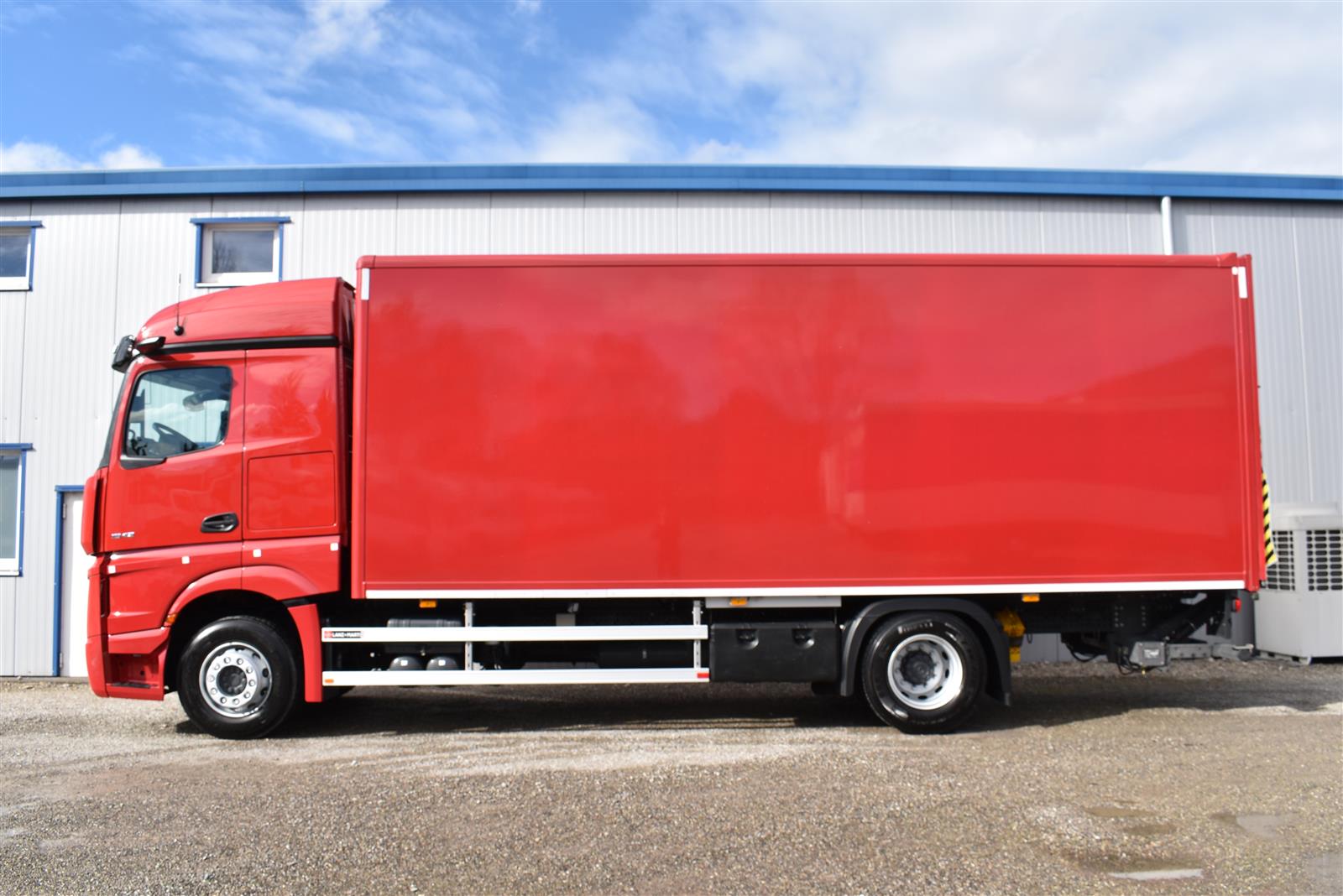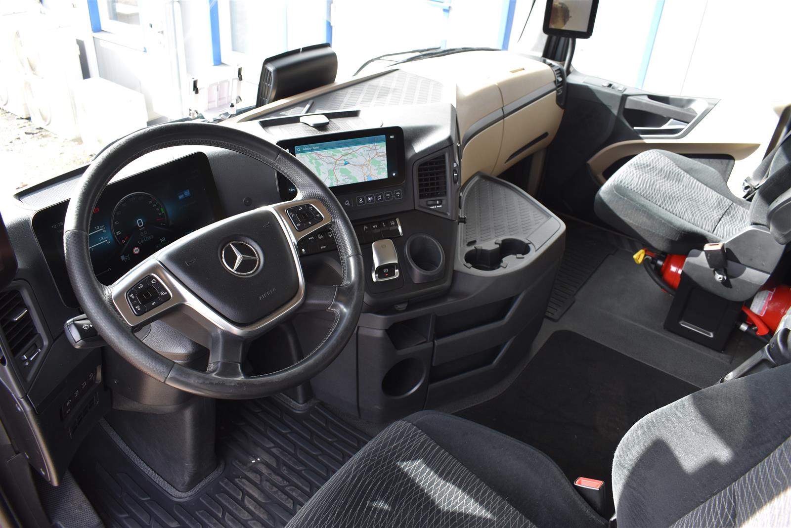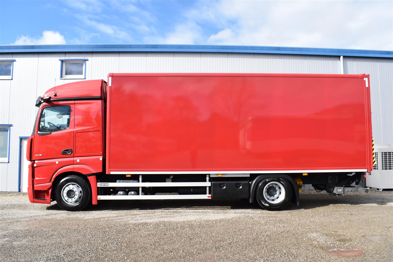 Klimaautomatik, Standheizung, EU-Bremsen, Duomatic-Anschluss, ABS, ASR, elektrische Fensterheber, Motorbremse, Vollluftfederung, HB-Blatt (1'600 mm mit Funkfernbedienung), Scheibenbremsen, Zentralverriegelung (mit Funkfernbedienung), 1 Liege, Abstandsregeltempomat, AdBlue-Tank, Airbag Fahrer, Aluminiumtank, Anfahrassistent, Anhängerkupplung (Rockinger), Beifahrersitz (klappbar), Digital-Tacho, ESP, Hebebühne (Mammut mit 2'000 kg Tragkraft), Holzfussboden, Licht- und Regensensor, Lochschienen (5 Stück in Reihe längsgerichtet unter dem Dach), Multifunktionslenkrad, Navigationssystem, Sitzheizung, Spurassistent, Werkzeugkiste, Xenonscheinwerfer |
