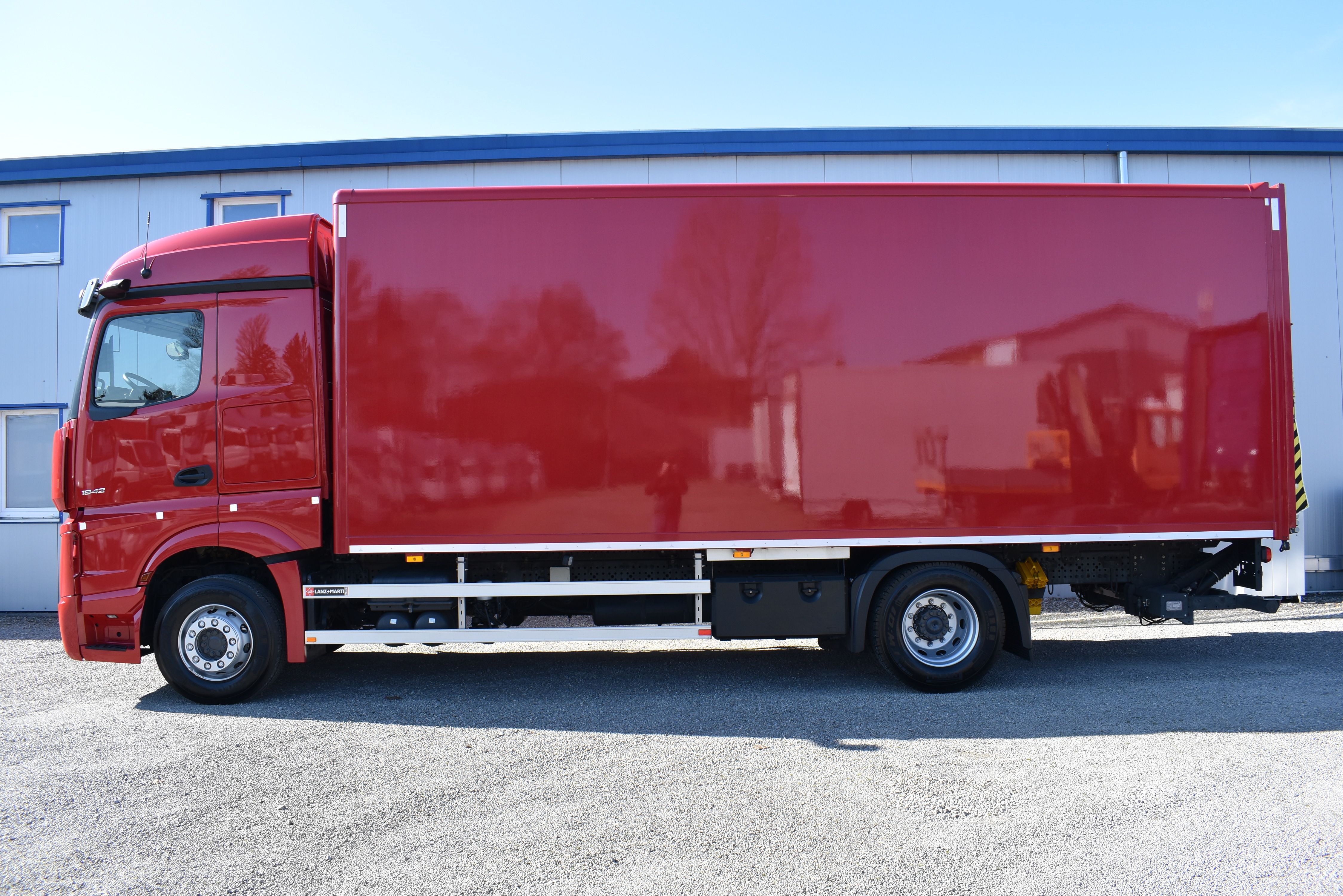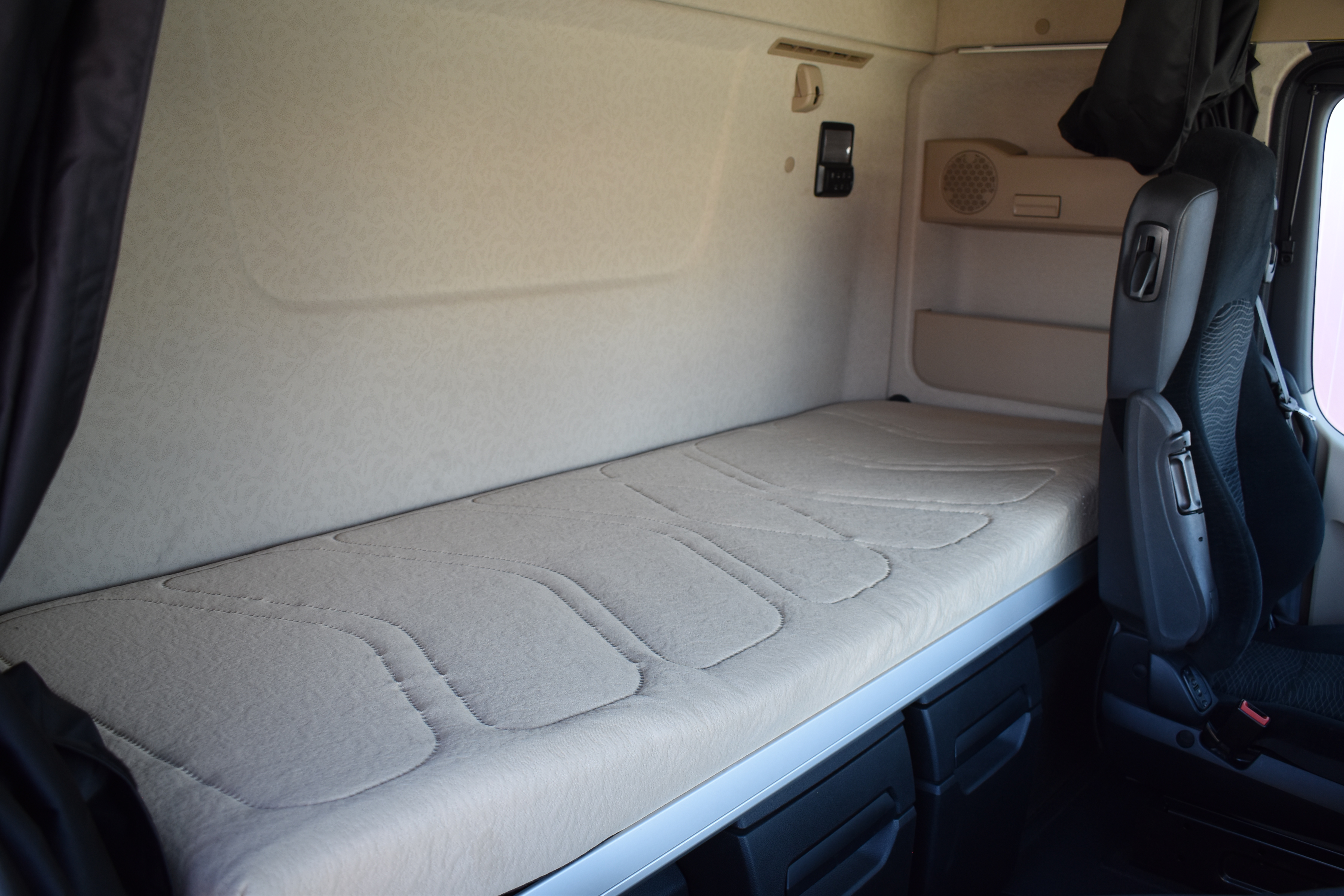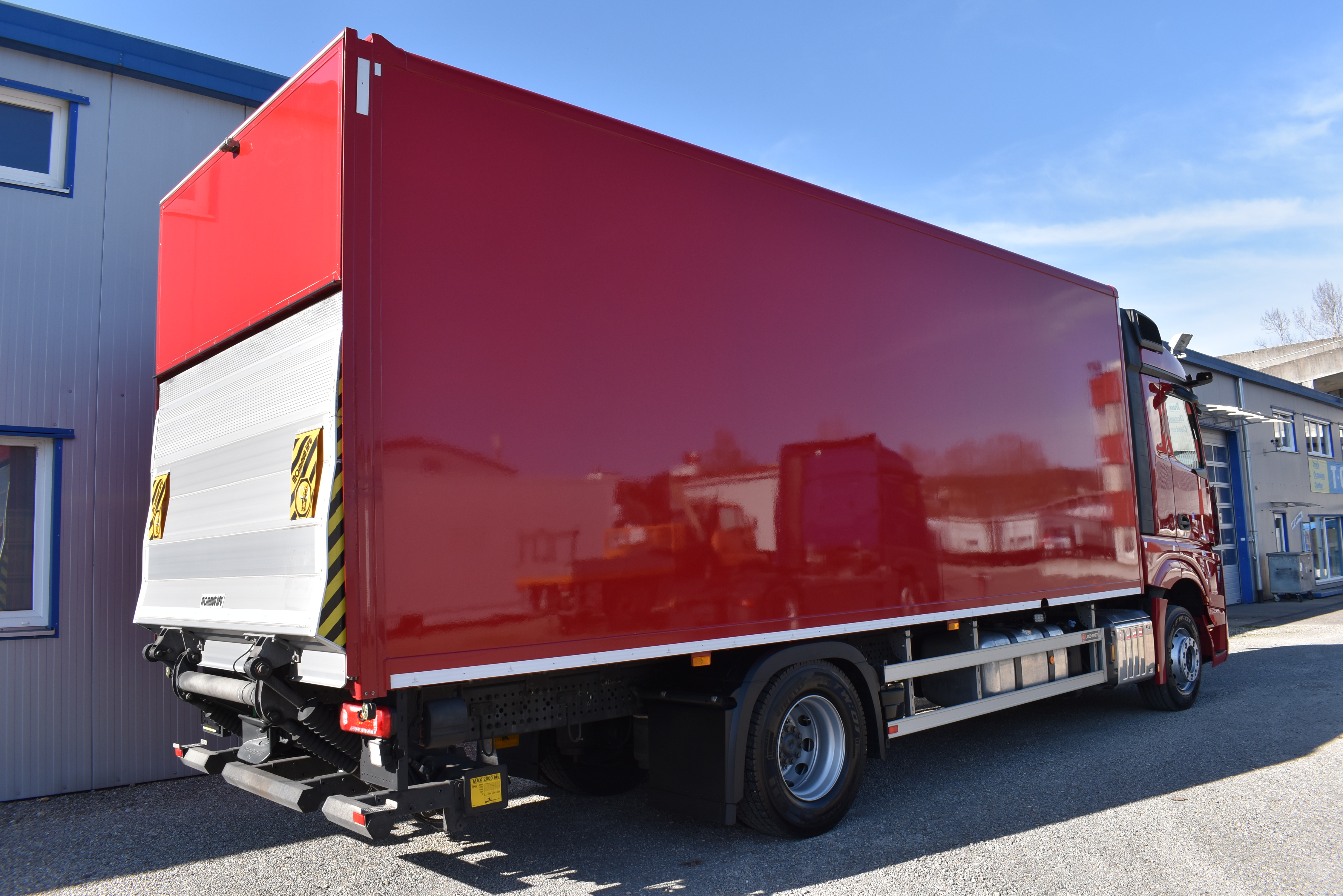 Klimaautomatik, Standheizung, EU-Bremsen, Duomatic-Anschluss, ABS, ASR, elektrische Fensterheber, Motorbremse, Vollluftfederung, Scheibenbremsen, Zentralverriegelung (mit Funkfernbedienung), 1 Liege, Abstandsregeltempomat, AdBlue-Tank, Airbag Fahrer, Aluminiumtank, Anfahrassistent, Anhängerkupplung (Rockinger), Beifahrersitz (klappbar), Digital-Tacho, ESP, Hebebühne, Holzfussboden, Licht- und Regensensor, Multifunktionslenkrad, Navigationssystem, Sitzheizung, Spurassistent, Xenonscheinwerfer |