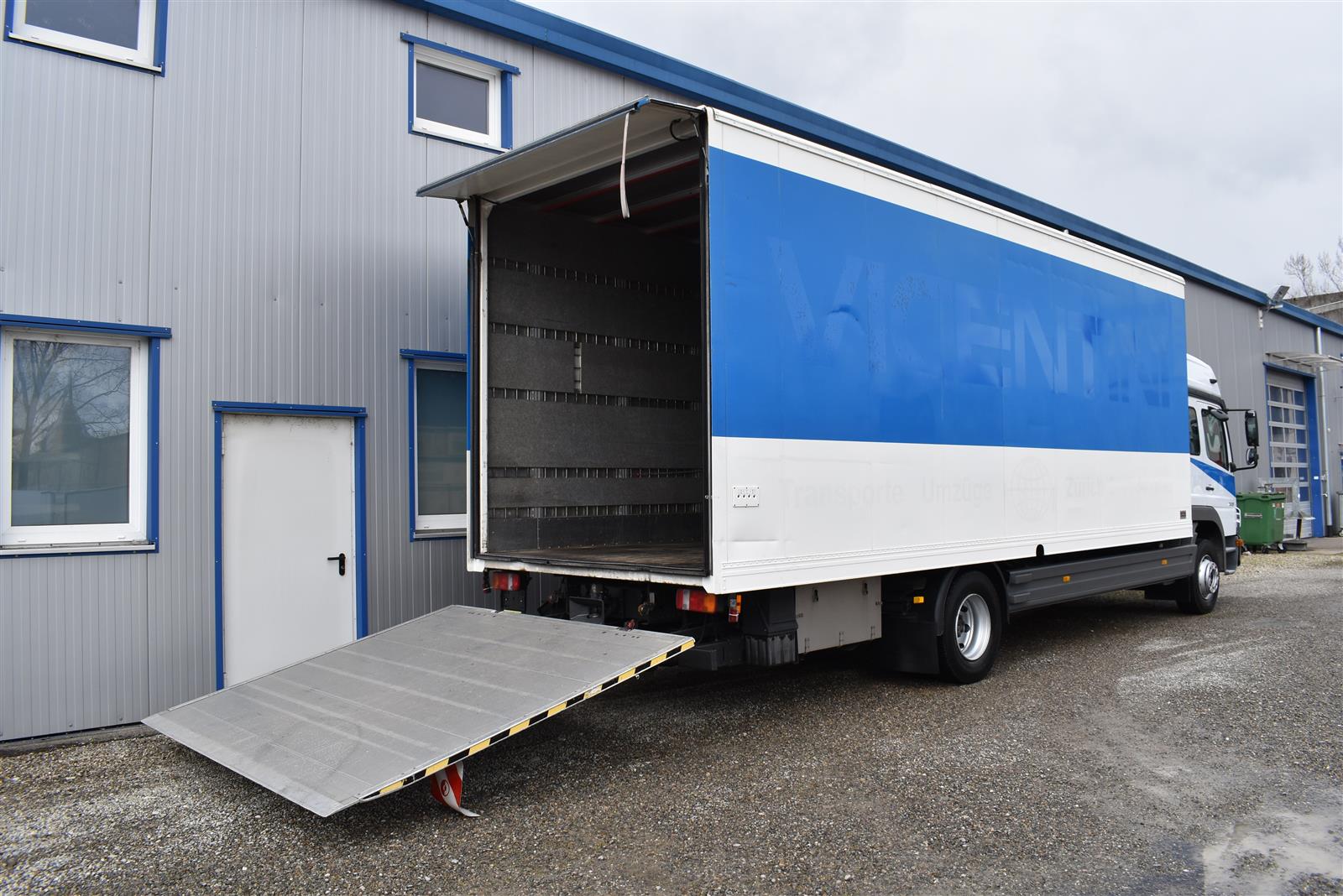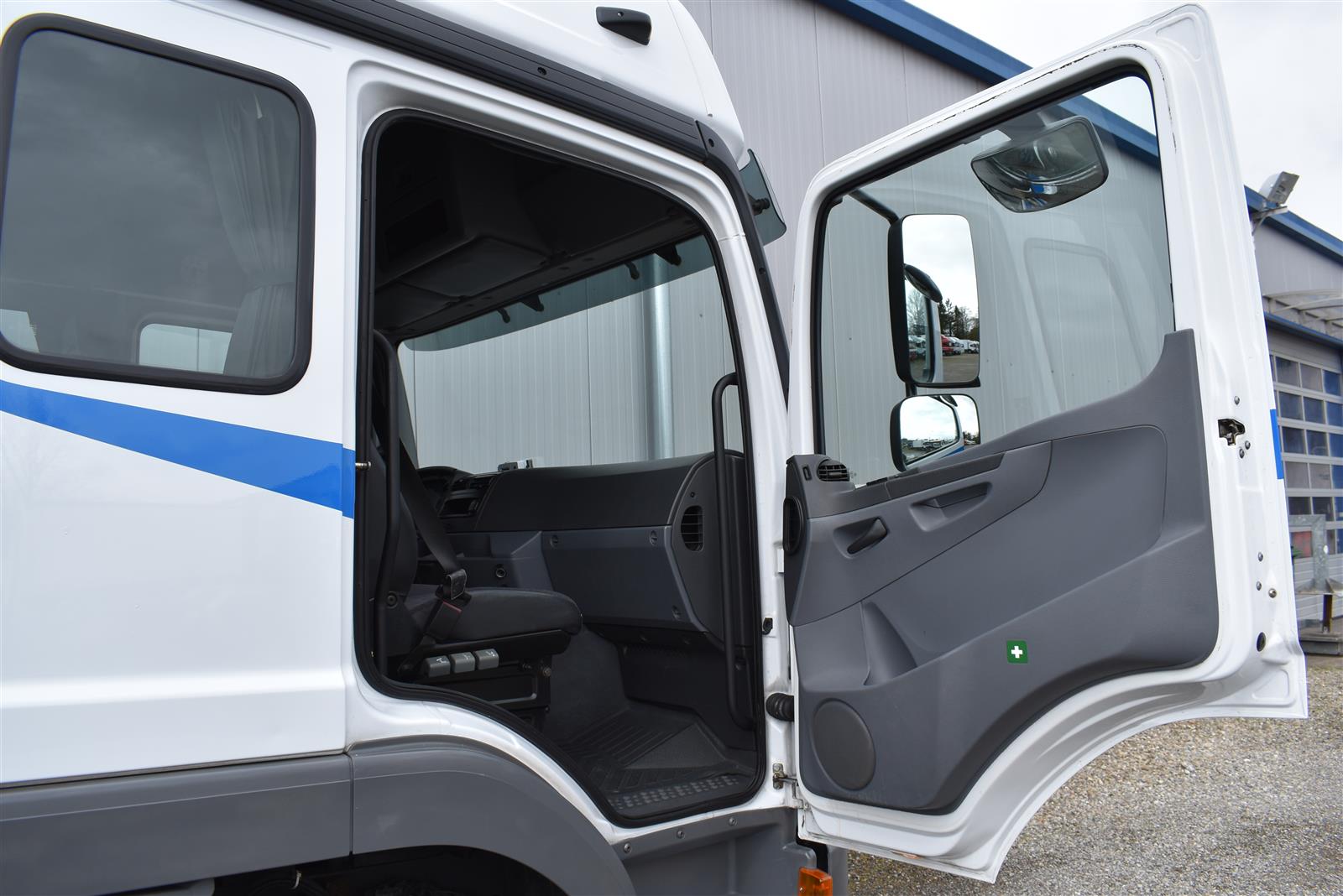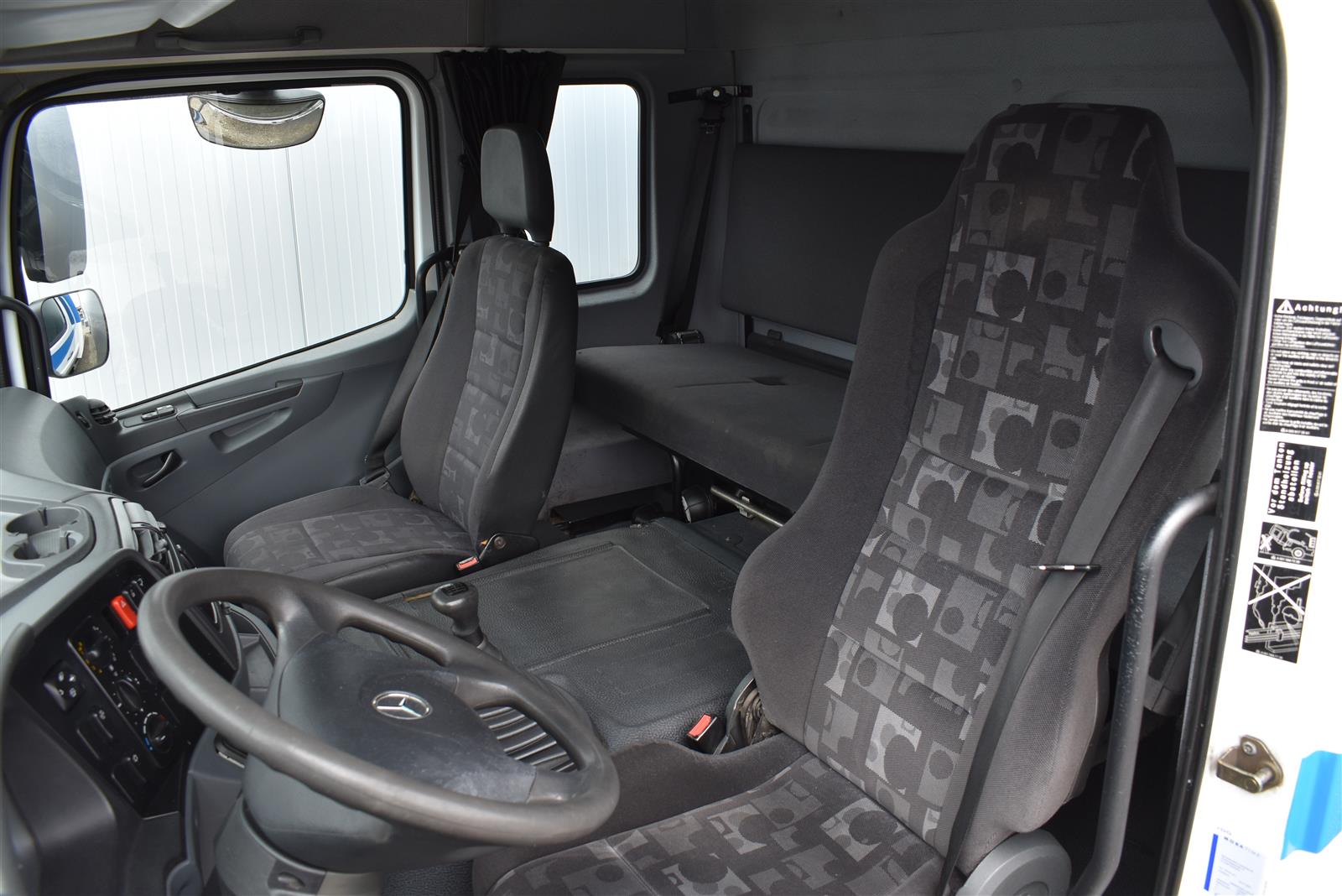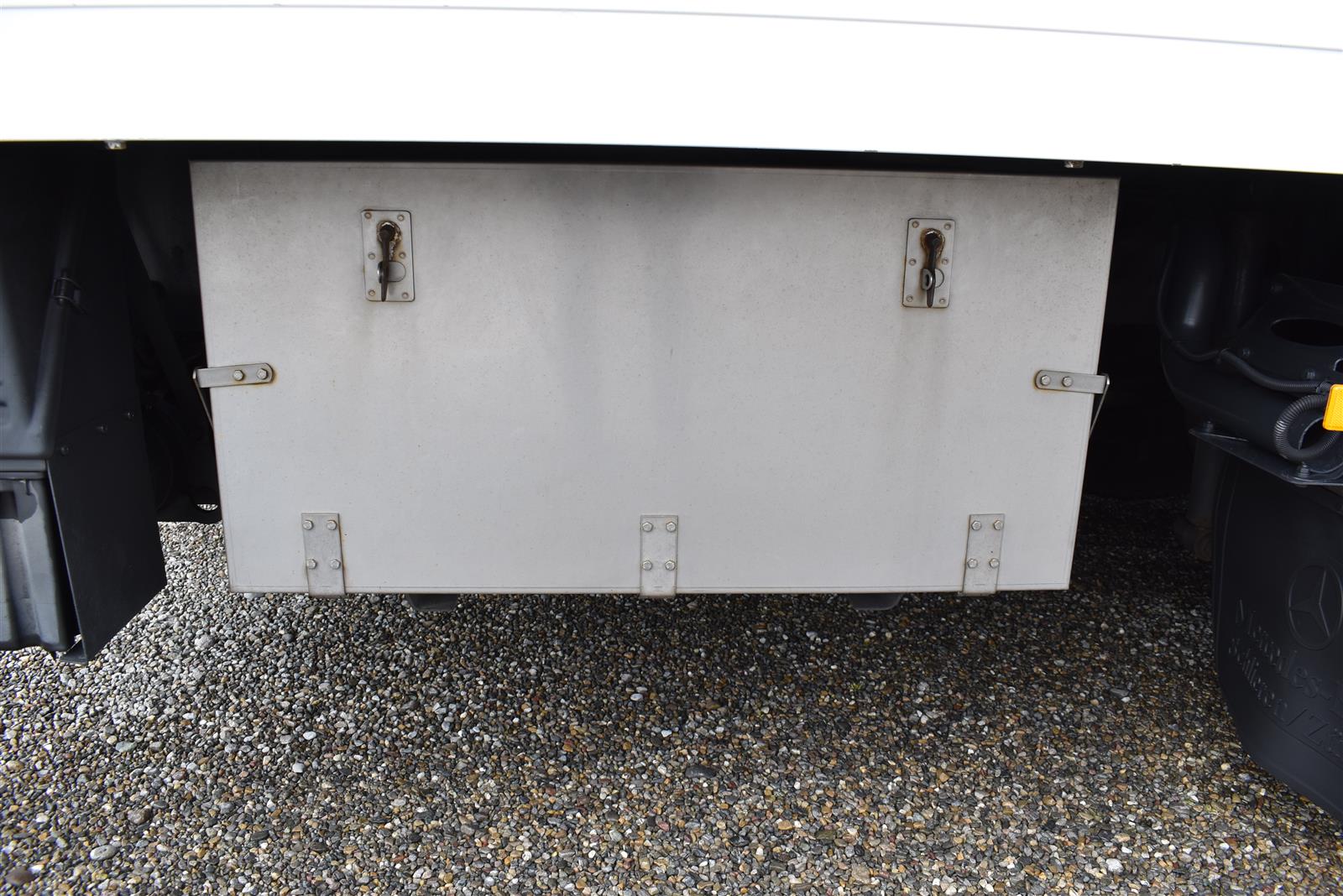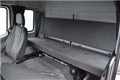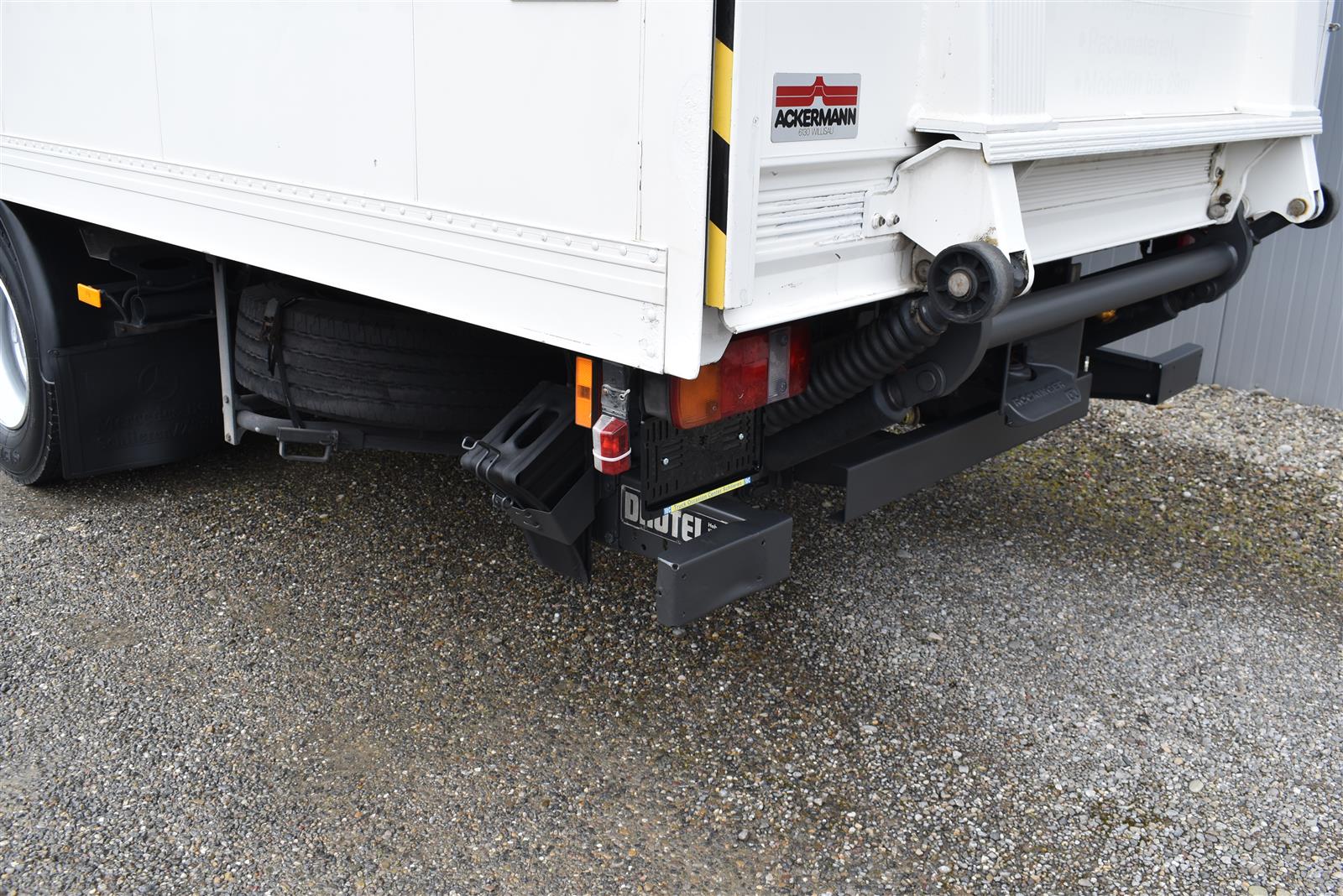 Tempomat, Klimaanlage, Standheizung, CH-Bremsen, EU-Bremsen, ABS, ASR, Radio/CD, elektrische Fensterheber, Spiegel elektrisch verstellbar, Spiegelheizung, Motorbremse, Vollluftfederung, HB-Blatt (2'000 mm), Scheibenbremsen, 1 Liege (Sitz-/Liege-Kombination), 6 Sitzplätze, Anfahrassistent, Anhängerkupplung (Rockinger), Digital-Tacho, Hebebühne (Dautel mit 1'500 kg Tragkraft), Holzfussboden, Sitzheizung, Werkzeugkiste |