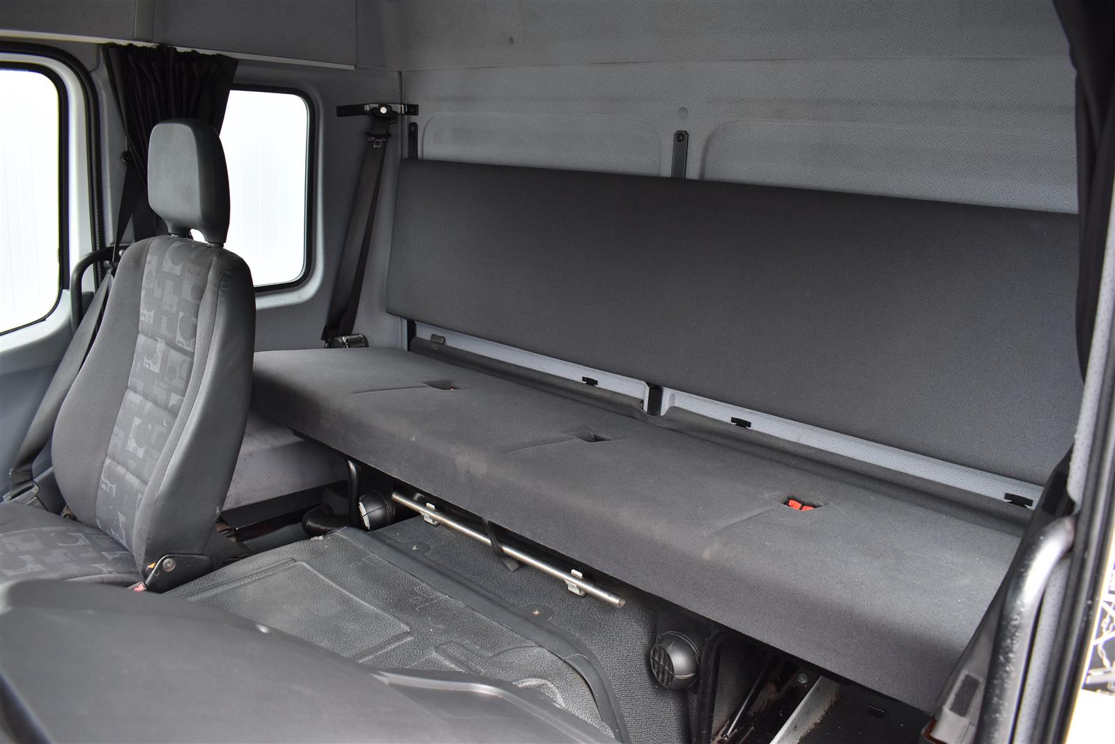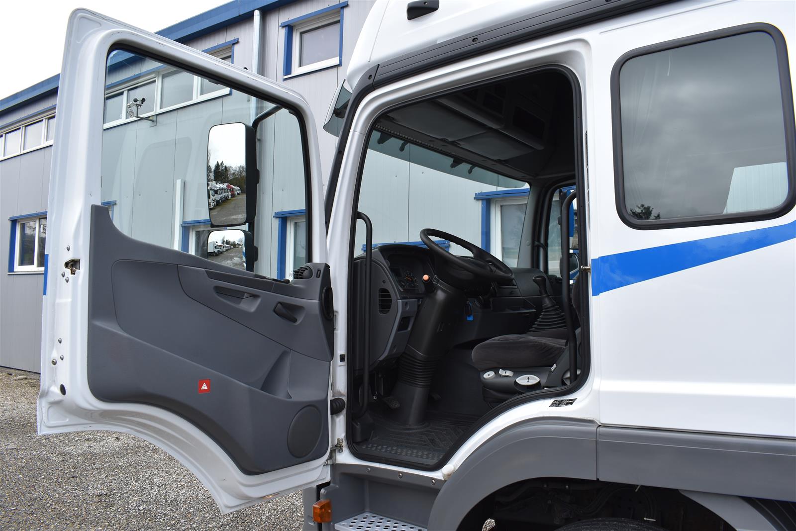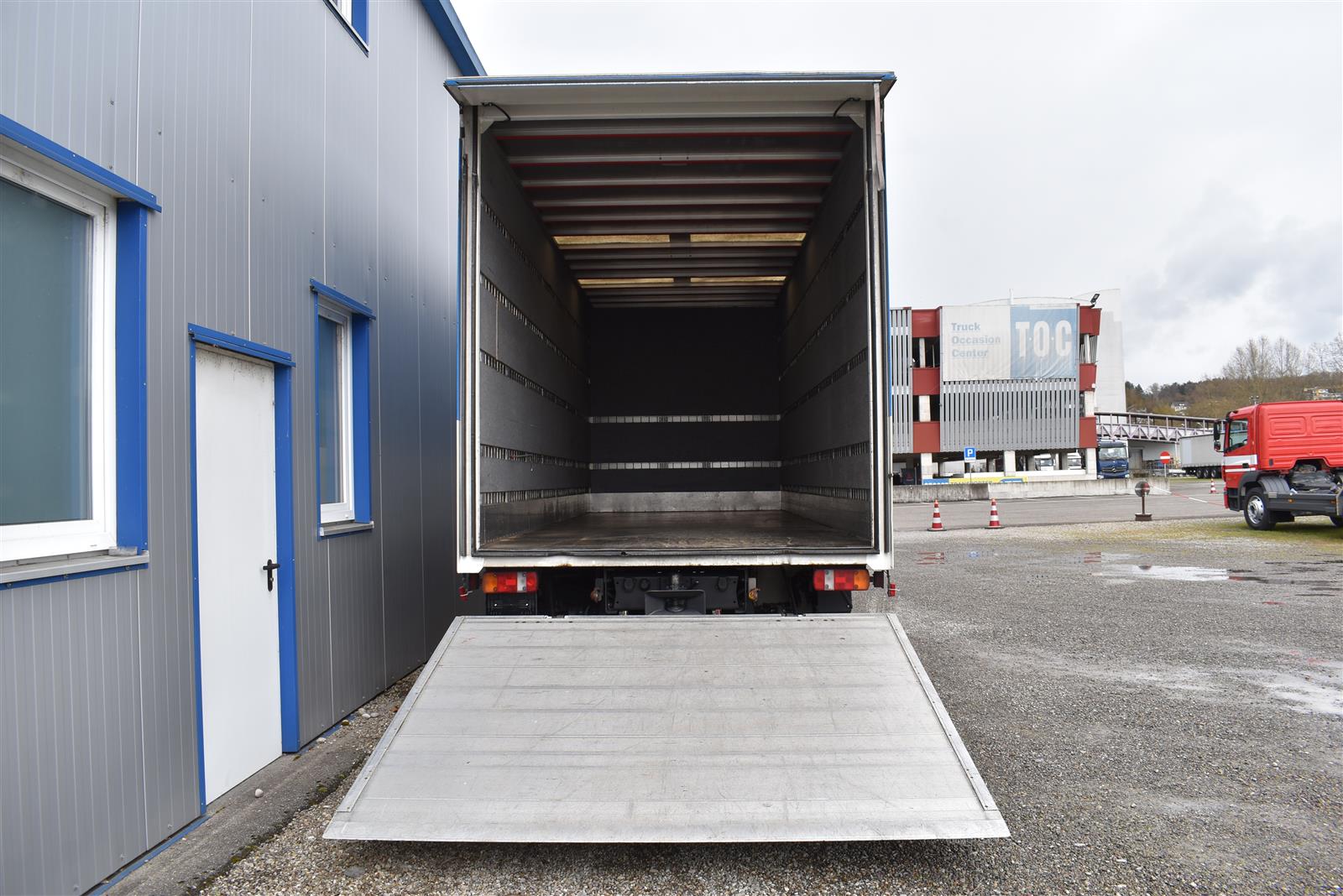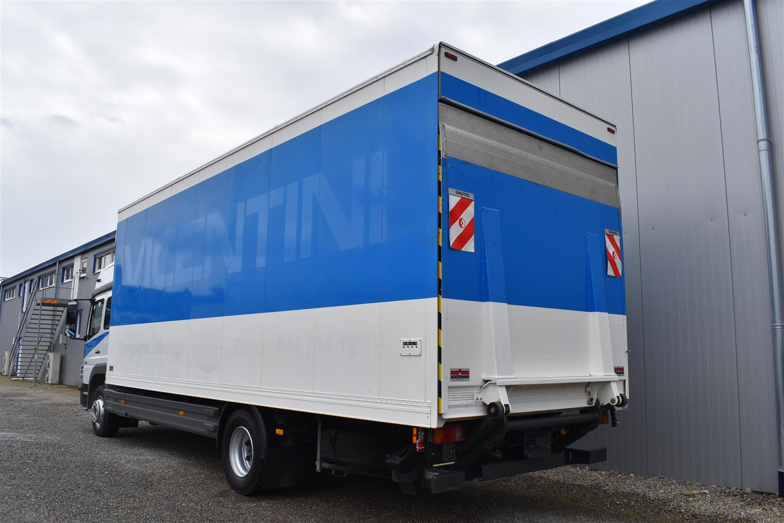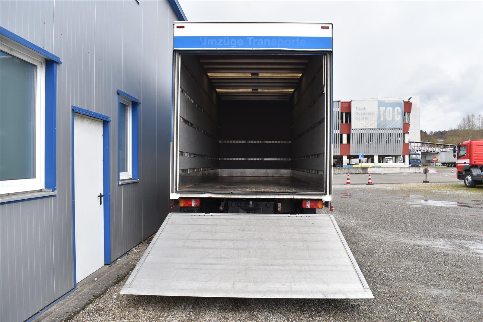 Tempomat, Klimaanlage, Standheizung, CH-Bremsen, EU-Bremsen, ABS, ASR, Radio/CD, elektrische Fensterheber, Spiegel elektrisch verstellbar, Spiegelheizung, Motorbremse, Vollluftfederung, HB-Blatt (2'000 mm), Scheibenbremsen, 1 Liege (Sitz-/Liege-Kombination), 6 Sitzplätze, Anfahrassistent, Anhängerkupplung (Rockinger), Digital-Tacho, Hebebühne (Dautel mit 1'500 kg Tragkraft), Holzfussboden, Sitzheizung, Werkzeugkiste |