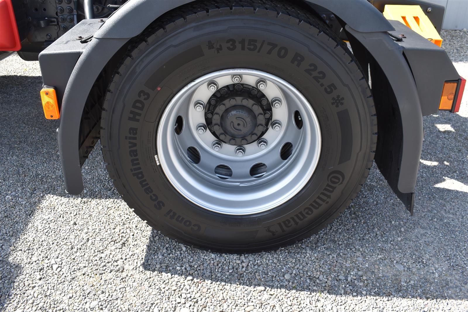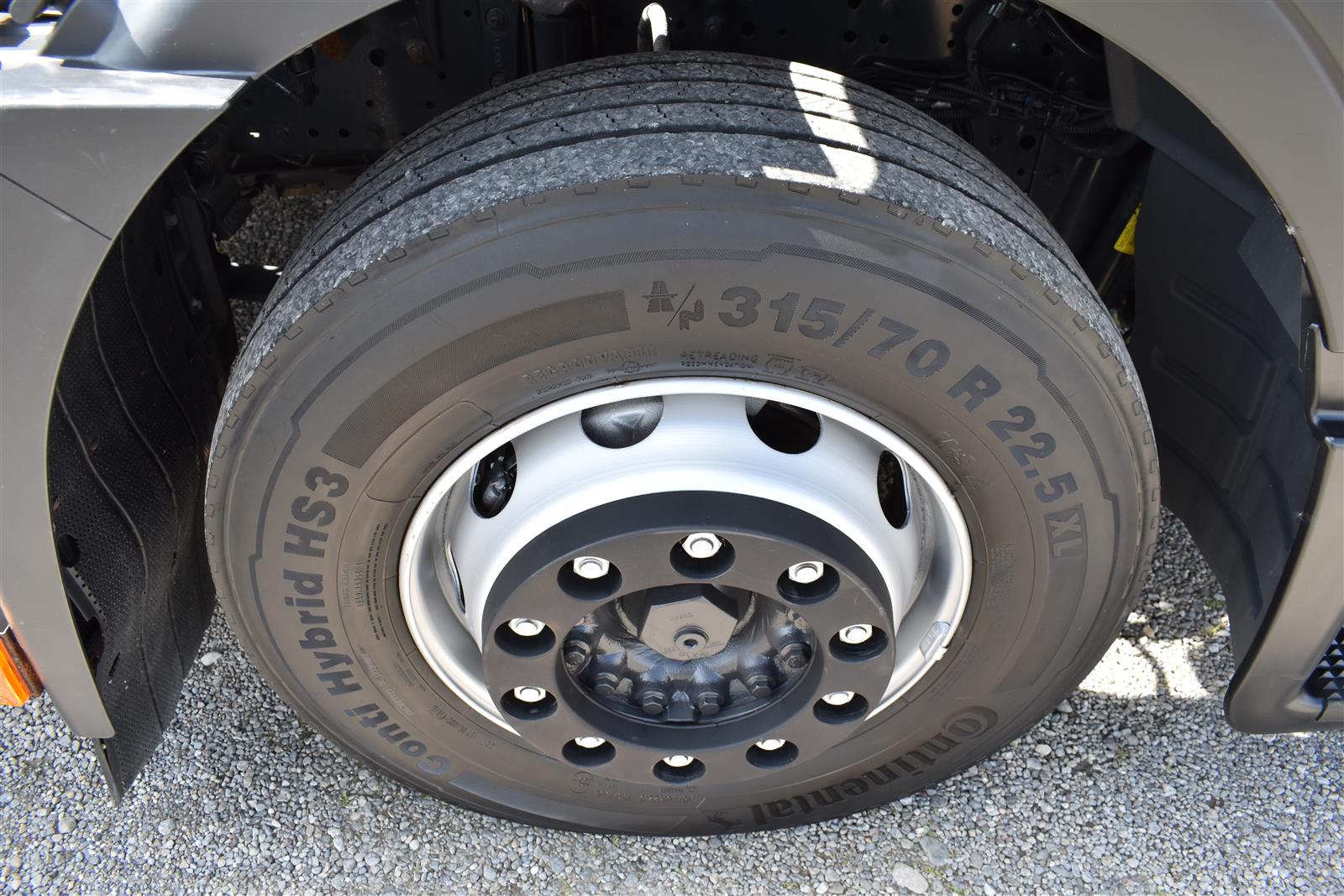 Retarder, Tempomat, Klimaanlage, Duomatic-Anschluss, ABS, ASR, Radio/CD, elektrische Fensterheber, Spiegel elektrisch verstellbar, Spiegelheizung, Luftfederung Hinterachse, Scheibenbremsen, Differentialsperre, AdBlue-Tank, Aluminiumtank, Anfahrassistent, Digital-Tacho, Fenster in Kabinenrückwand, Multifunktionslenkrad, Sitzheizung