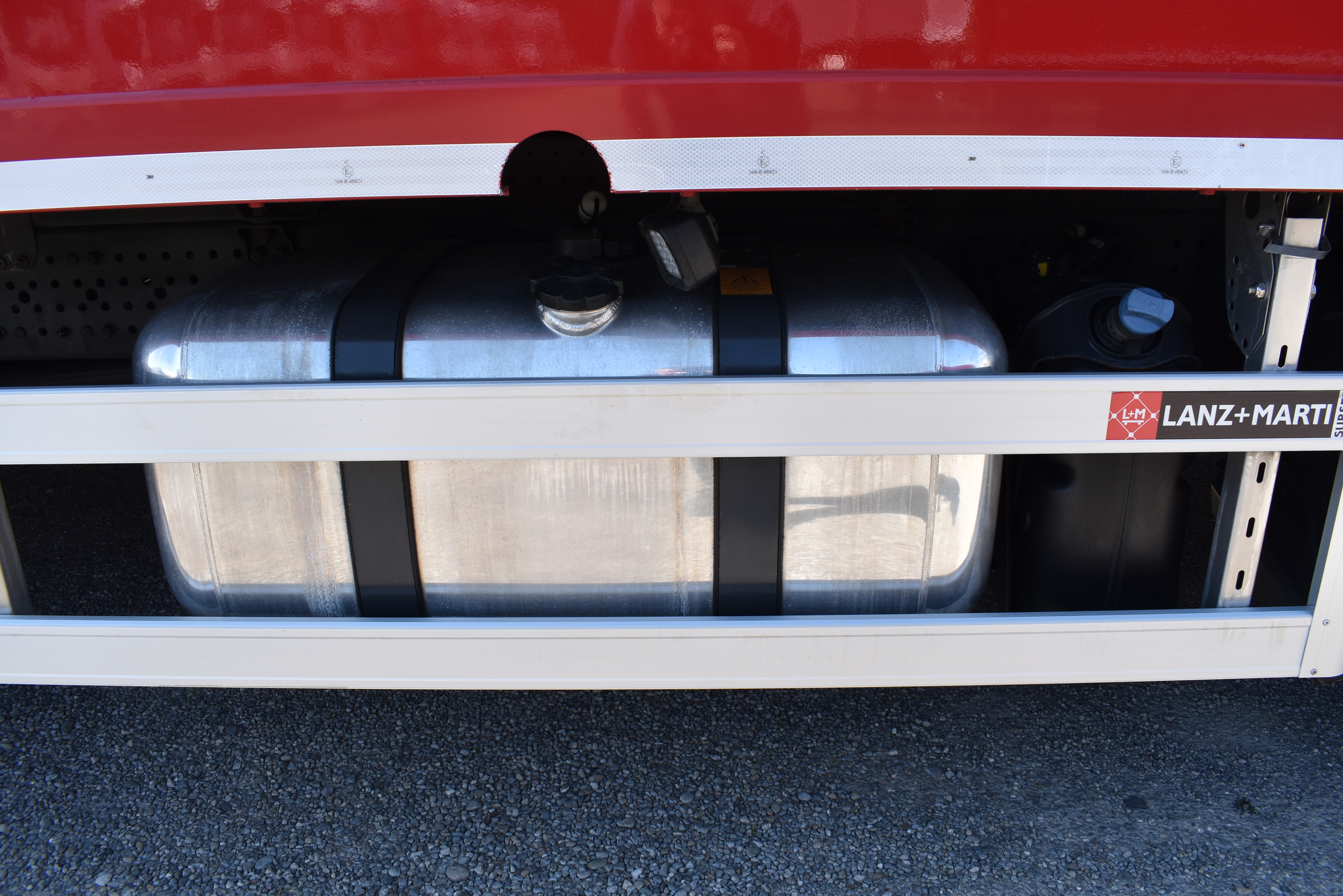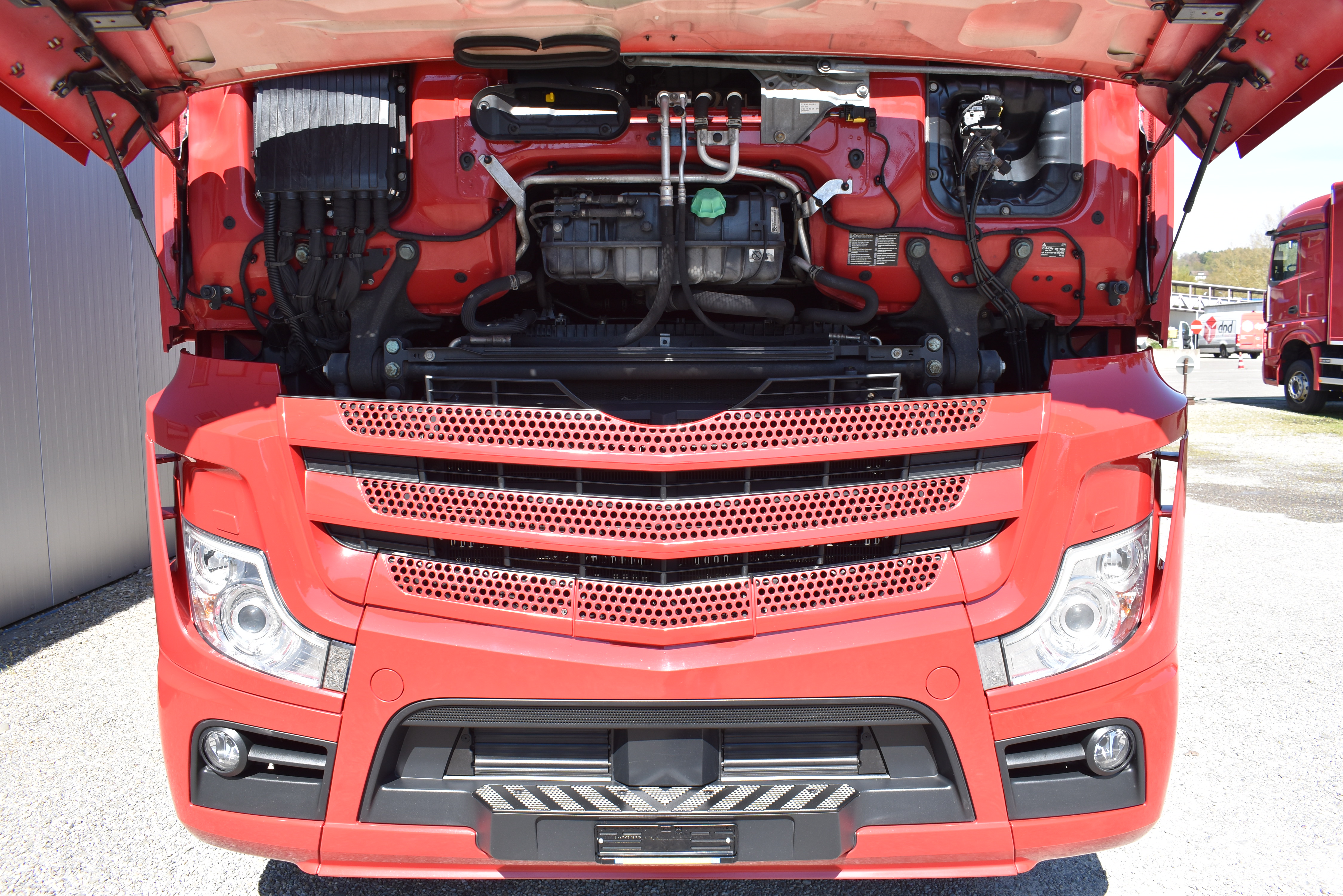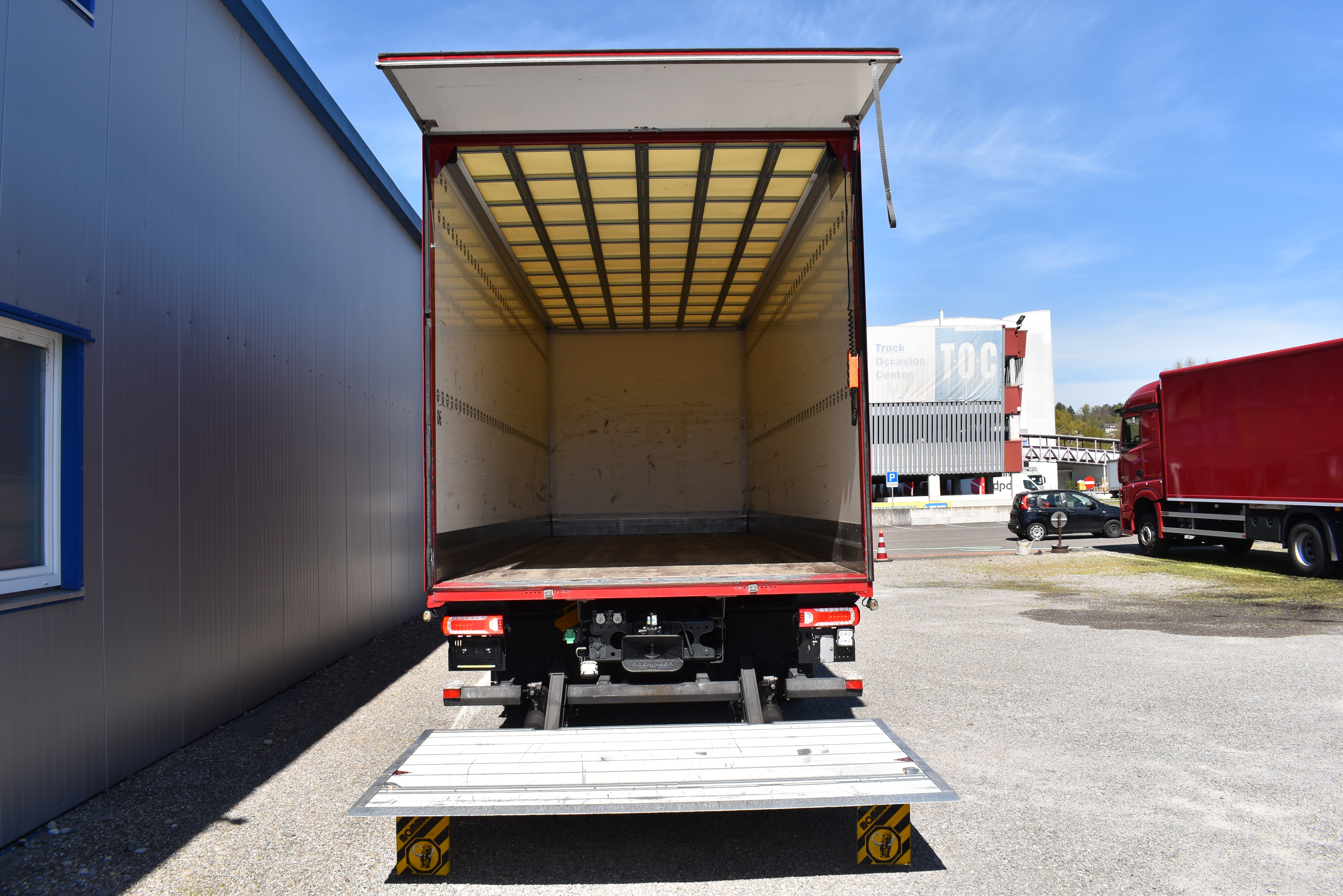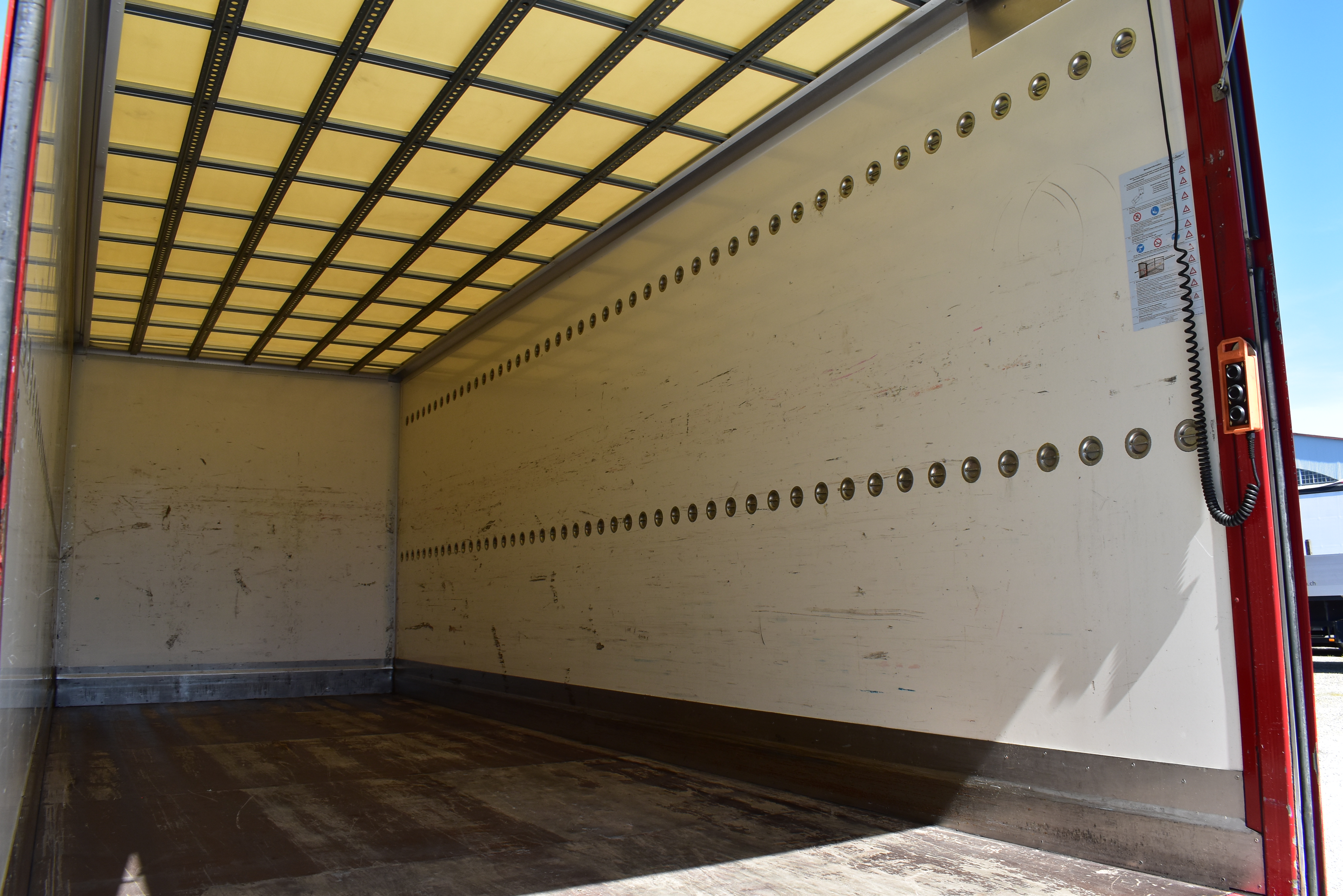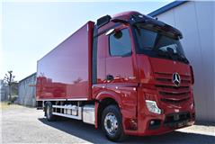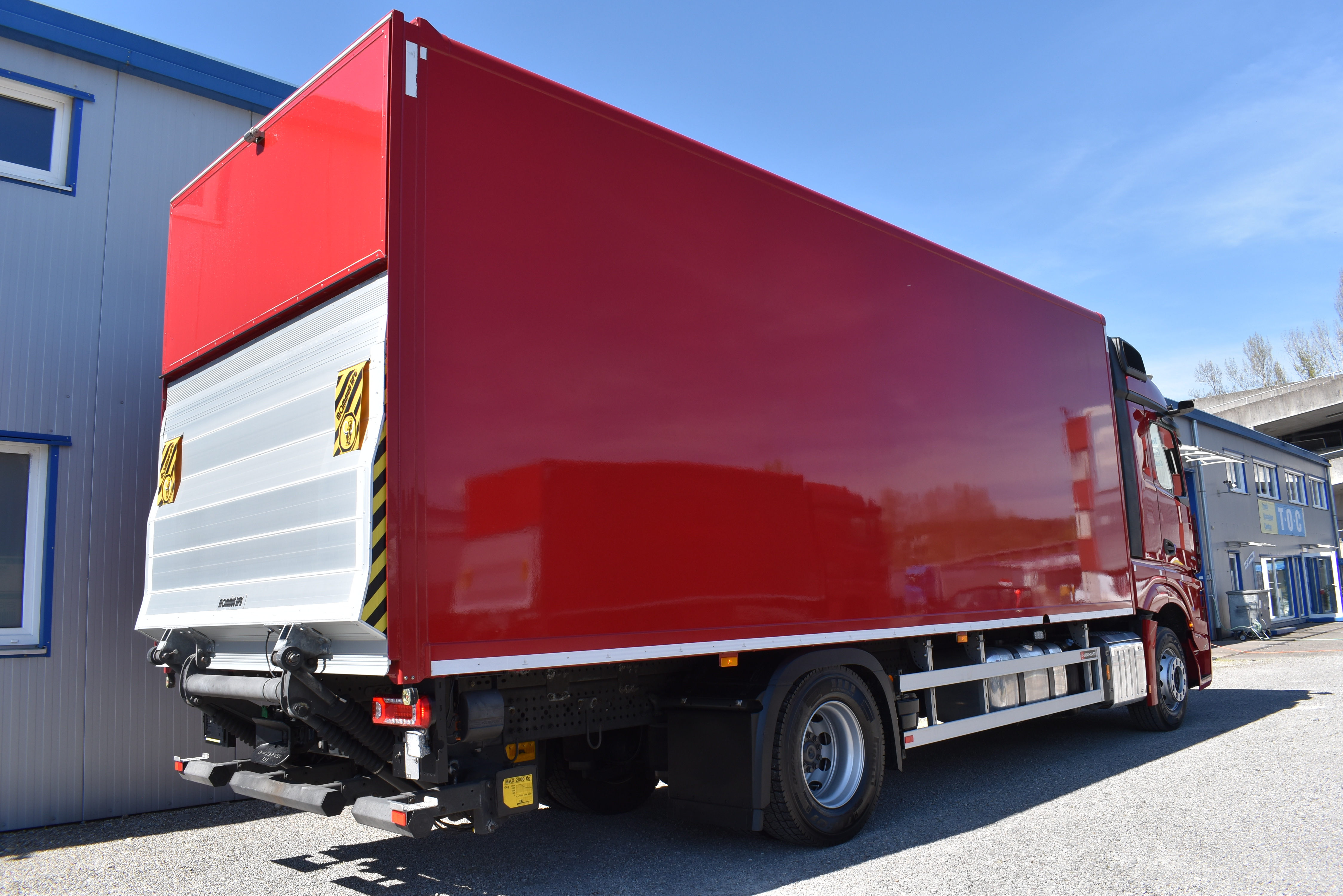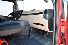 Klimaautomatik, Standheizung, EU-Bremsen, Duomatic-Anschluss, ABS, ASR, elektrische Fensterheber, Motorbremse, Vollluftfederung, HB-Blatt (1'600 mm mit Funkfernbedienung), Scheibenbremsen, Zentralverriegelung (mit Funkfernbedienung), 1 Liege, Abstandsregeltempomat, AdBlue-Tank, Airbag Fahrer, Aluminiumtank, Anfahrassistent, Anhängerkupplung (Rockinger), Beifahrersitz (klappbar), Digital-Tacho, ESP, Hebebühne (Mammut mit 2'000 kg Tragkraft), Holzfussboden, Licht- und Regensensor, Lochschienen (5 Stück in Reihe längsgerichtet unter dem Dach), Multifunktionslenkrad, Navigationssystem, Sitzheizung, Spurassistent, Werkzeugkiste, Xenonscheinwerfer |