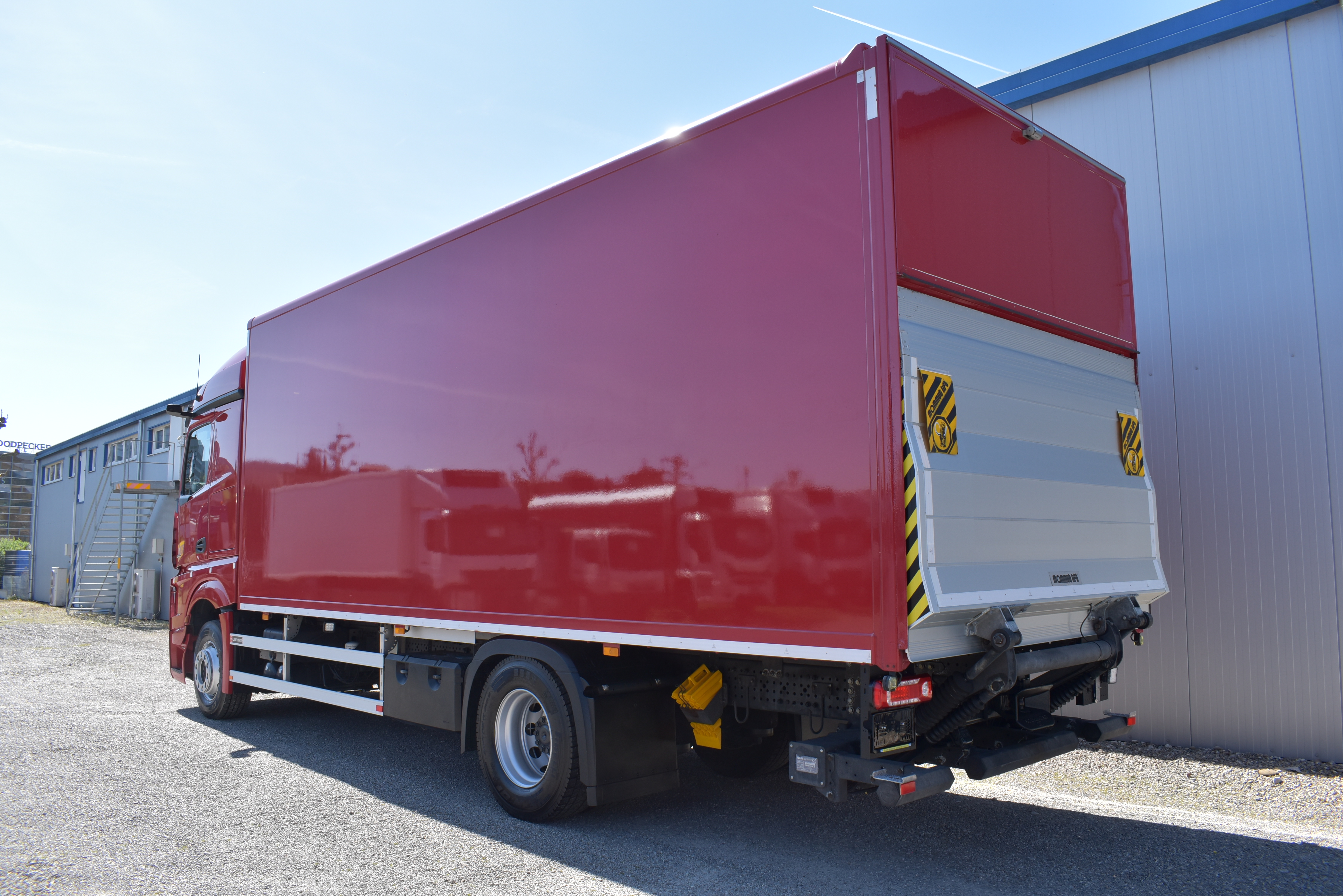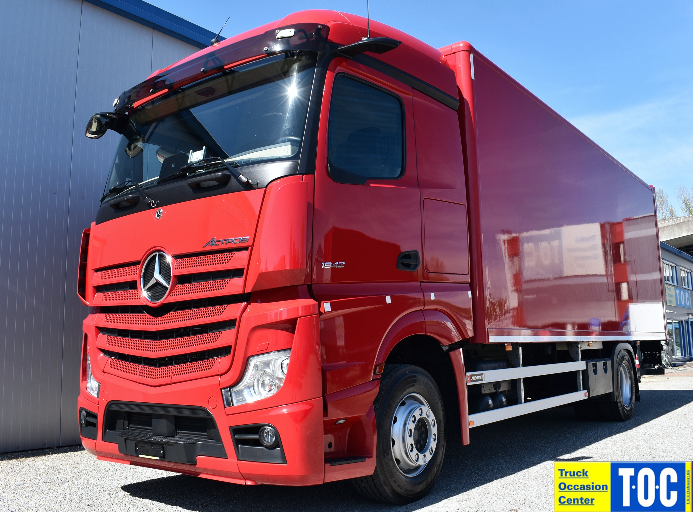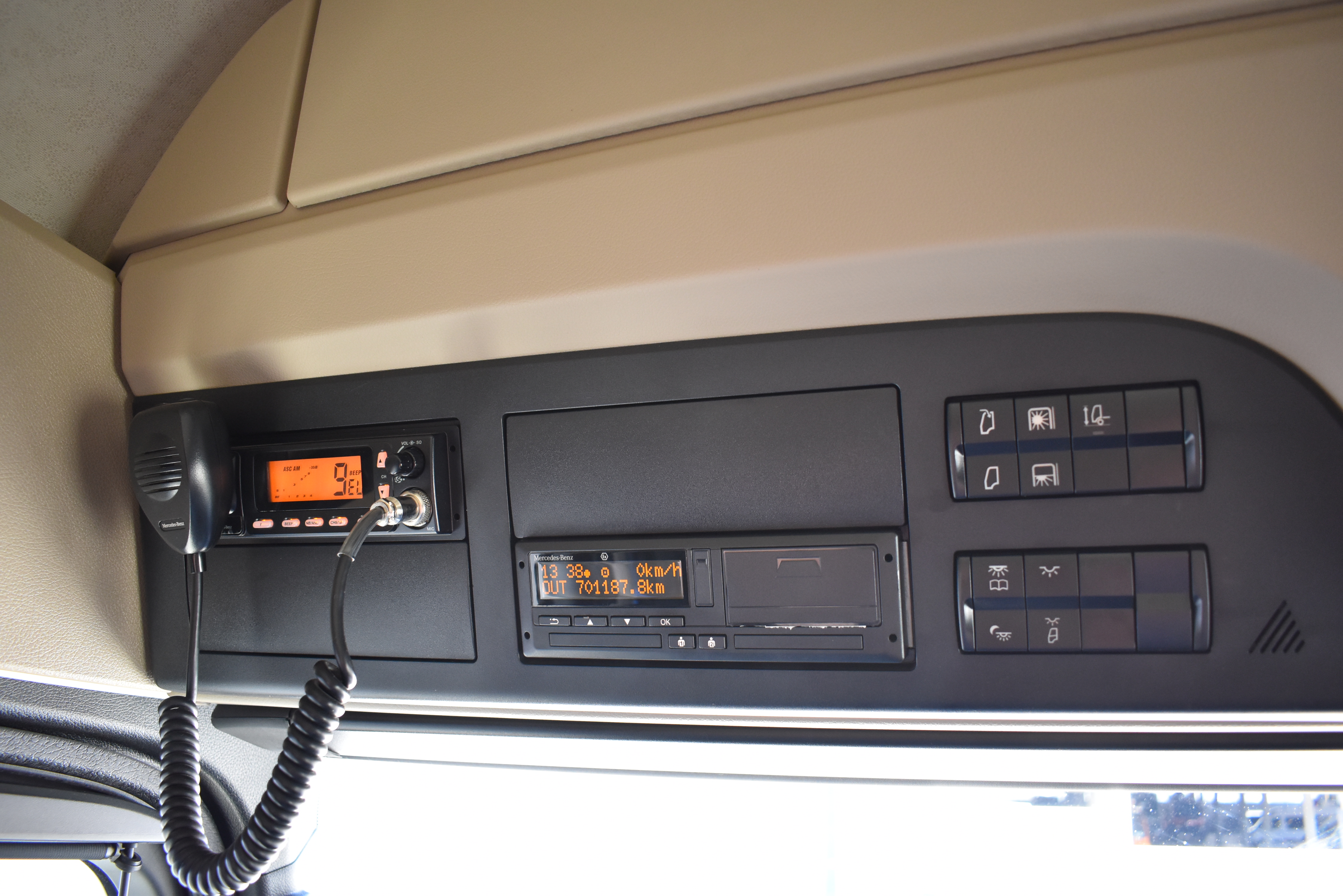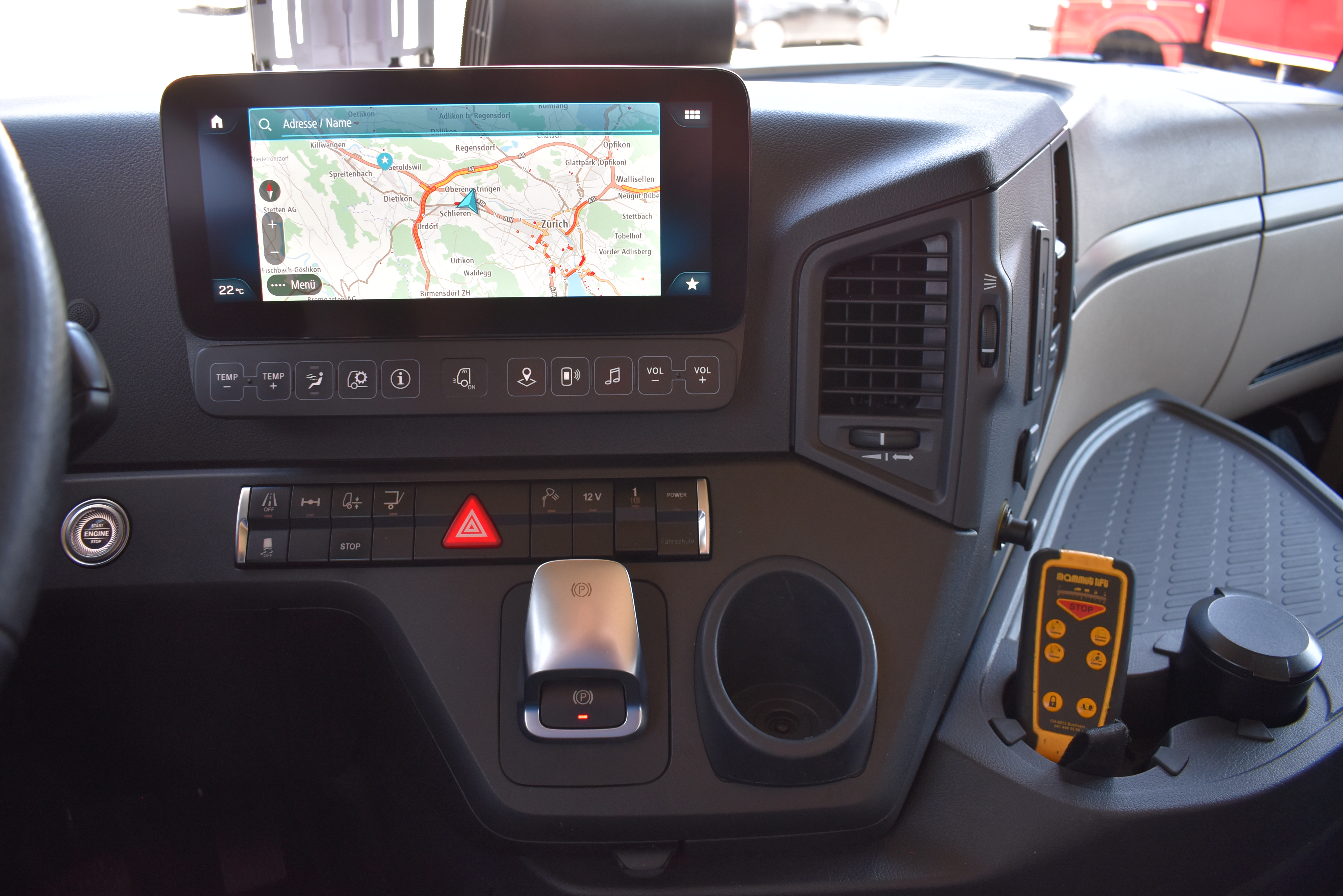Klimaautomatik, Standheizung, EU-Bremsen, Duomatic-Anschluss, ABS, ASR, elektrische Fensterheber, Motorbremse, Vollluftfederung, HB-Blatt (1'600 mm mit Funkfernbedienung), Scheibenbremsen, Zentralverriegelung (mit Funkfernbedienung), 1 Liege, Abstandsregeltempomat, AdBlue-Tank, Airbag Fahrer, Aluminiumtank, Anfahrassistent, Anhängerkupplung (Rockinger), Beifahrersitz (klappbar), Digital-Tacho, ESP, Hebebühne (Mammut mit 2'000 kg Tragkraft), Holzfussboden, Licht- und Regensensor, Lochschienen (5 Stück in Reihe längsgerichtet unter dem Dach), Multifunktionslenkrad, Navigationssystem, Sitzheizung, Spurassistent, Werkzeugkiste, Xenonscheinwerfer |