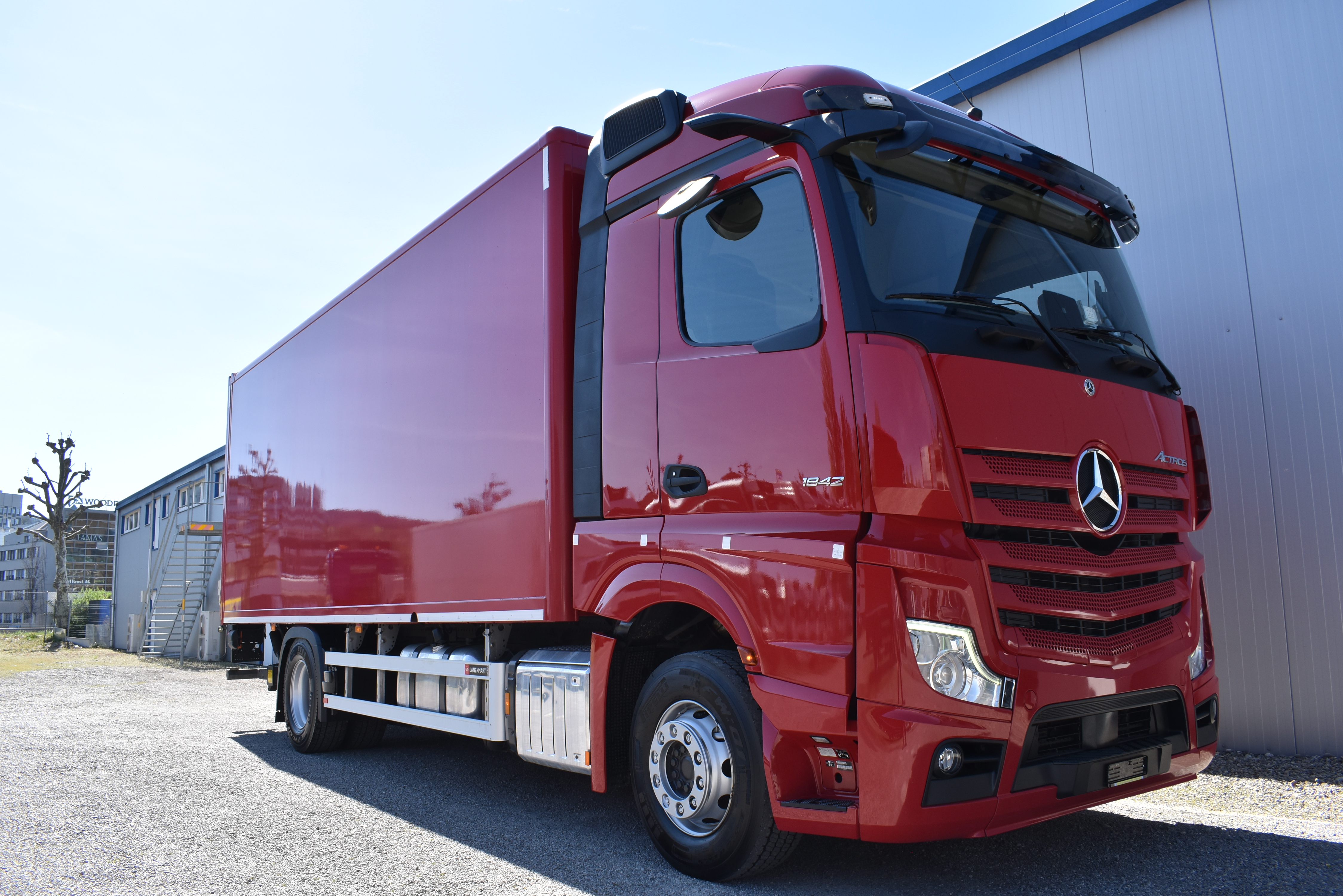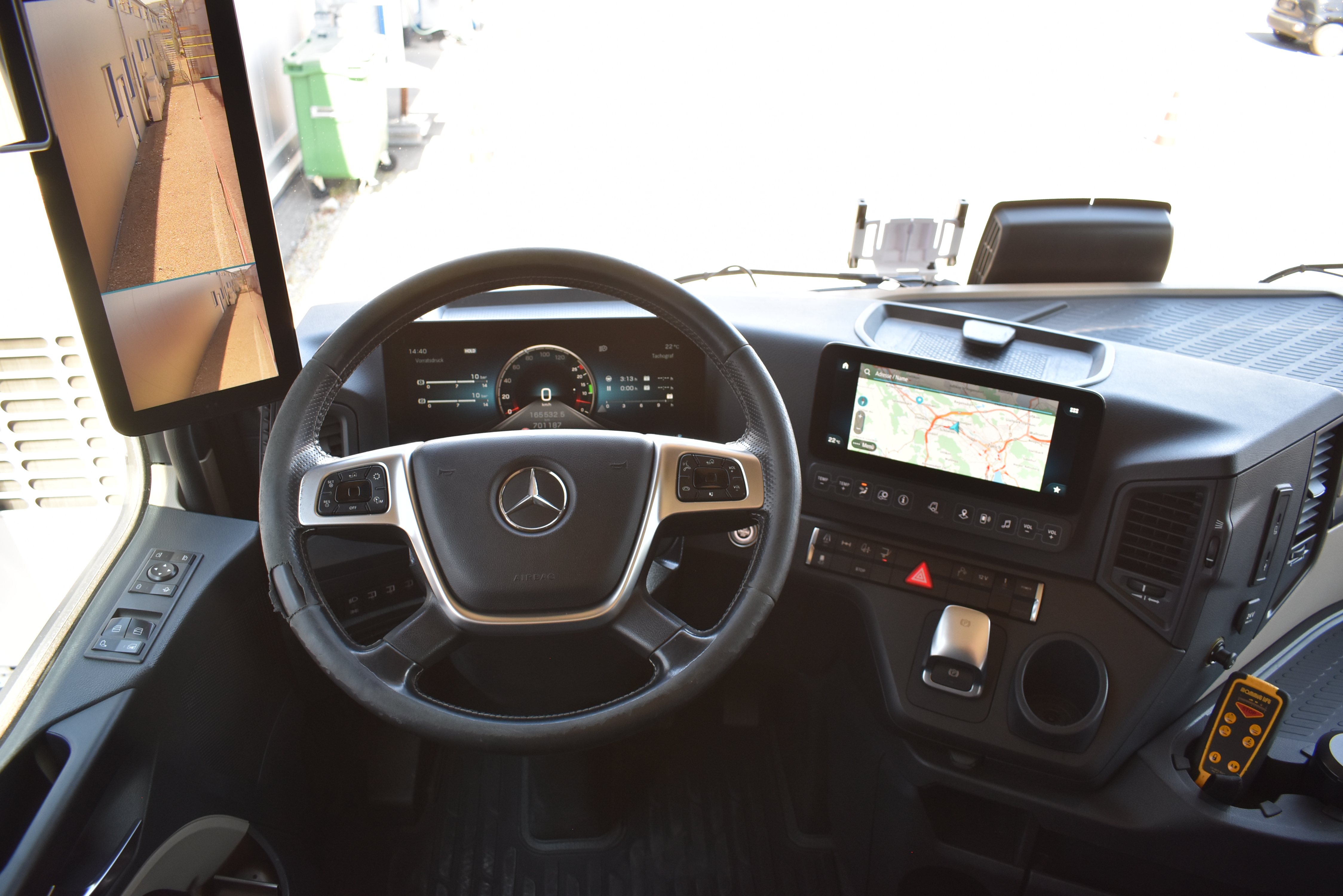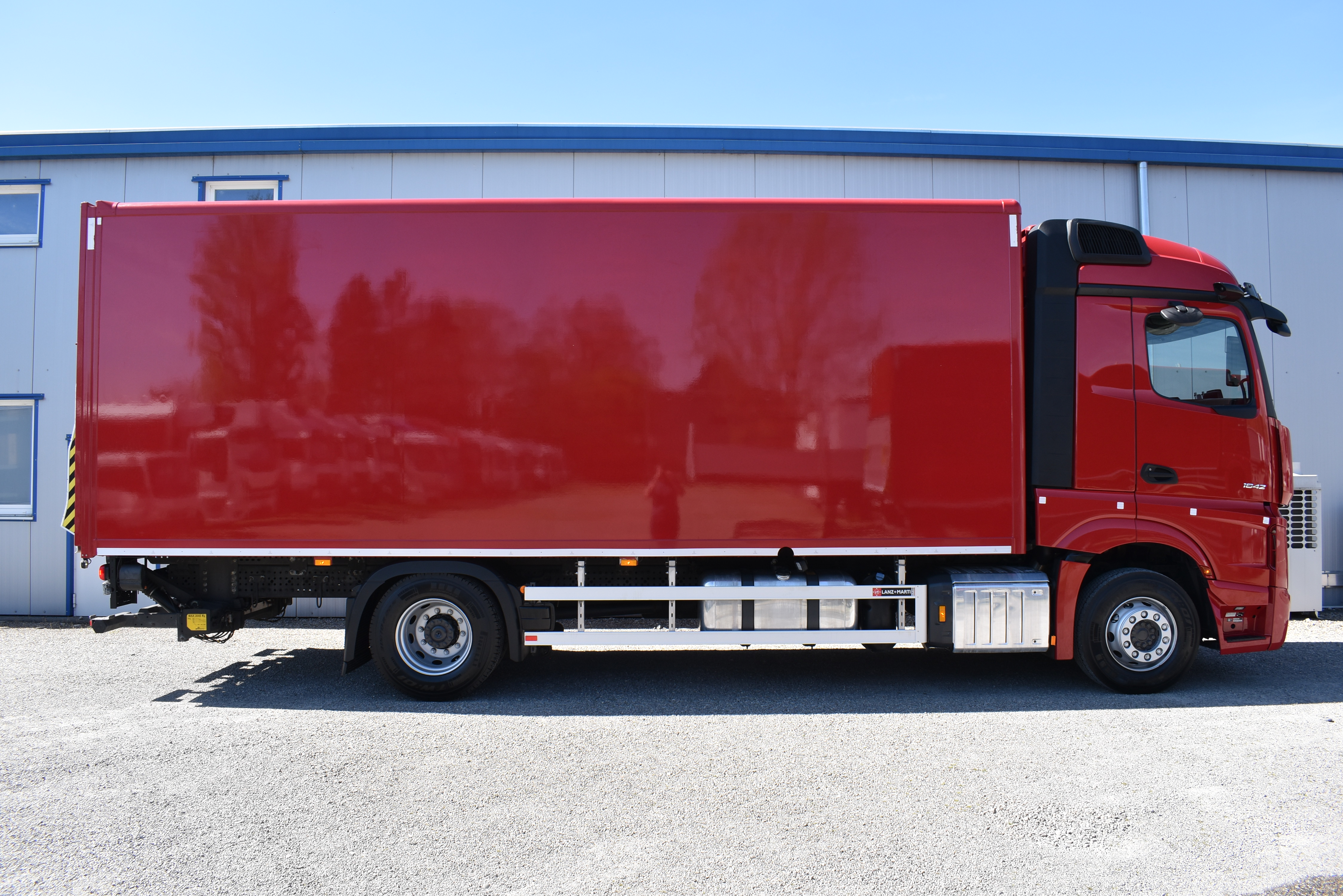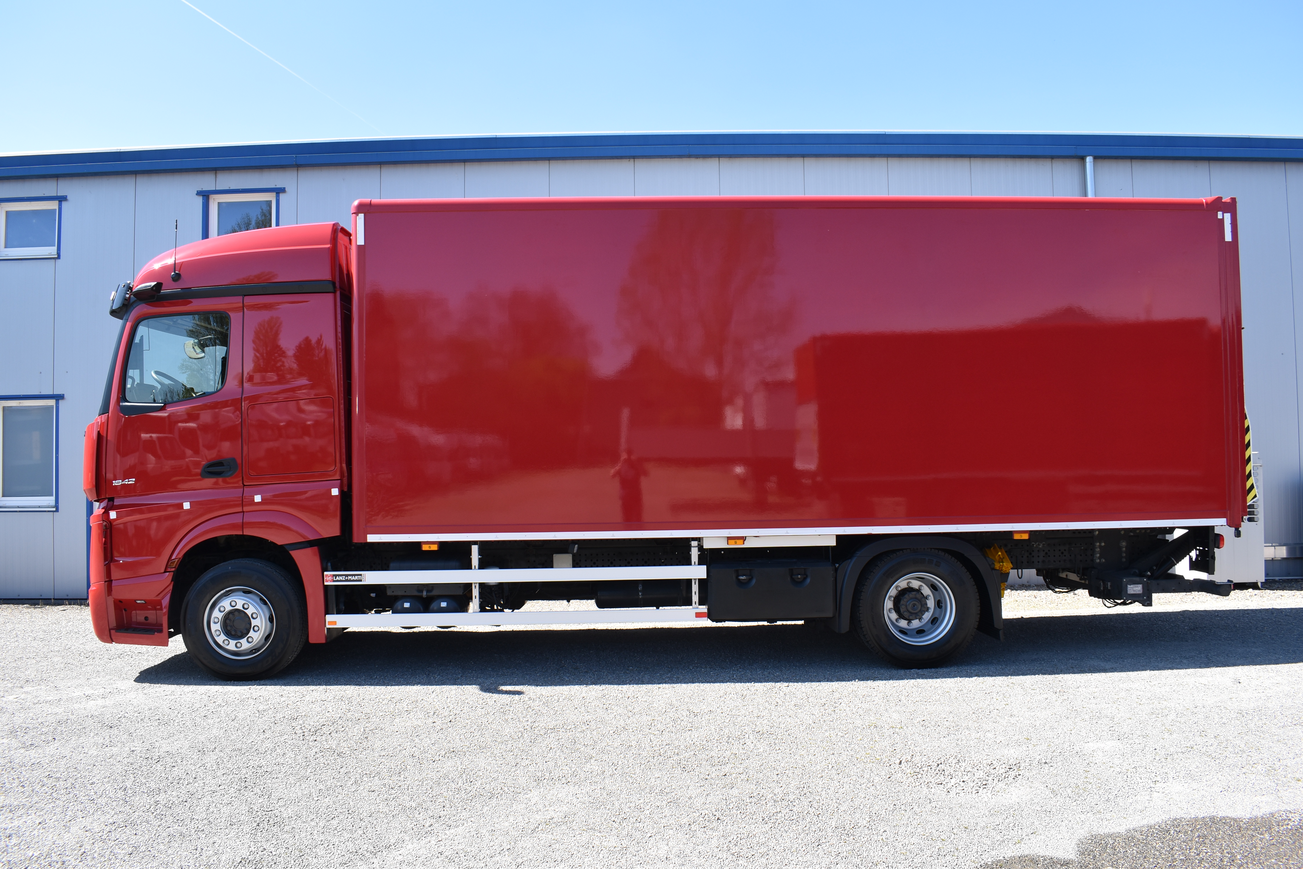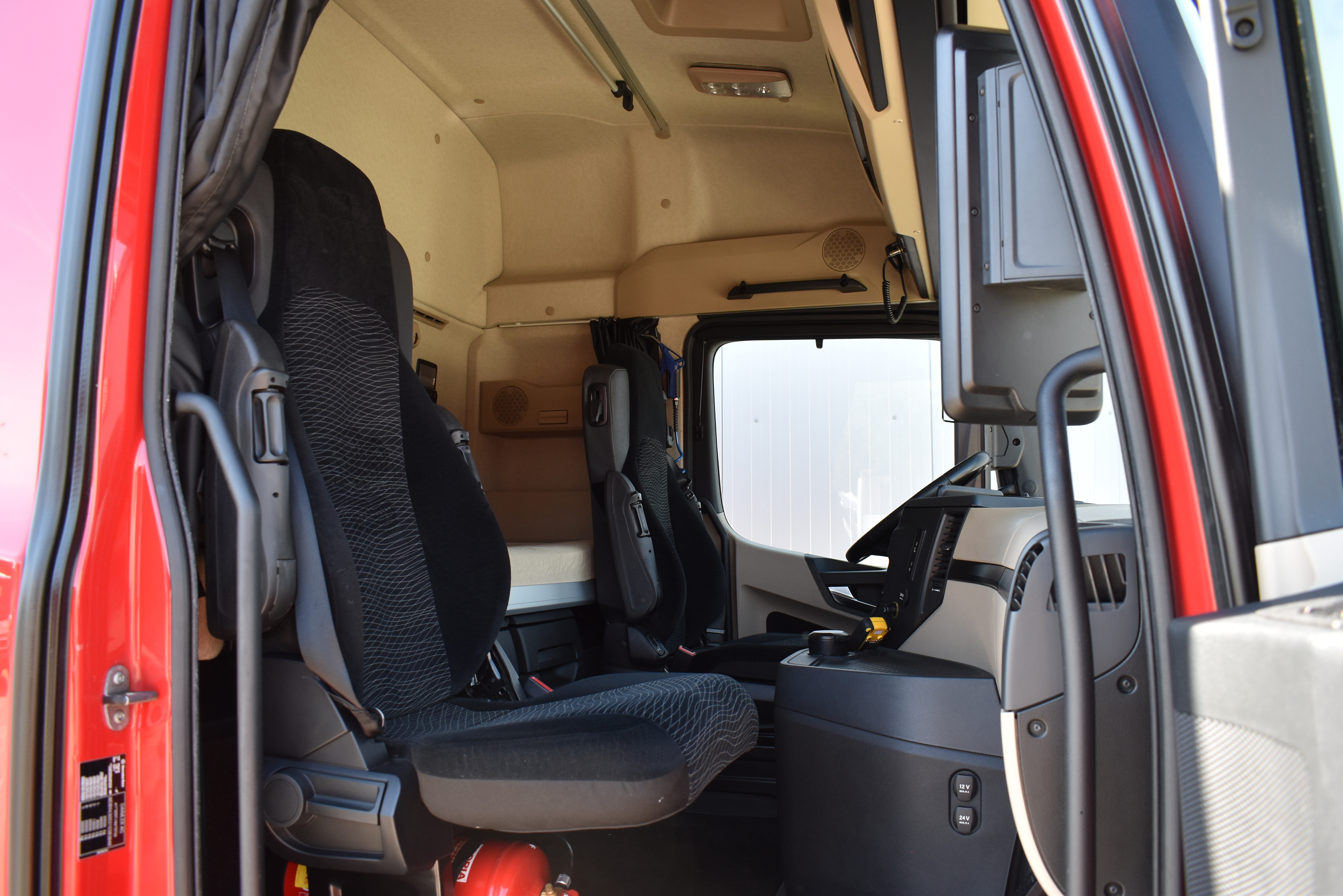 Klimaautomatik, Standheizung, EU-Bremsen, Duomatic-Anschluss, ABS, ASR, elektrische Fensterheber, Motorbremse, Vollluftfederung, HB-Blatt (1'600 mm mit Funkfernbedienung), Scheibenbremsen, Zentralverriegelung (mit Funkfernbedienung), 1 Liege, Abstandsregeltempomat, AdBlue-Tank, Airbag Fahrer, Aluminiumtank, Anfahrassistent, Anhängerkupplung (Rockinger), Beifahrersitz (klappbar), Digital-Tacho, ESP, Hebebühne (Mammut mit 2'000 kg Tragkraft), Holzfussboden, Licht- und Regensensor, Lochschienen (5 Stück in Reihe längsgerichtet unter dem Dach), Multifunktionslenkrad, Navigationssystem, Sitzheizung, Spurassistent, Werkzeugkiste, Xenonscheinwerfer |