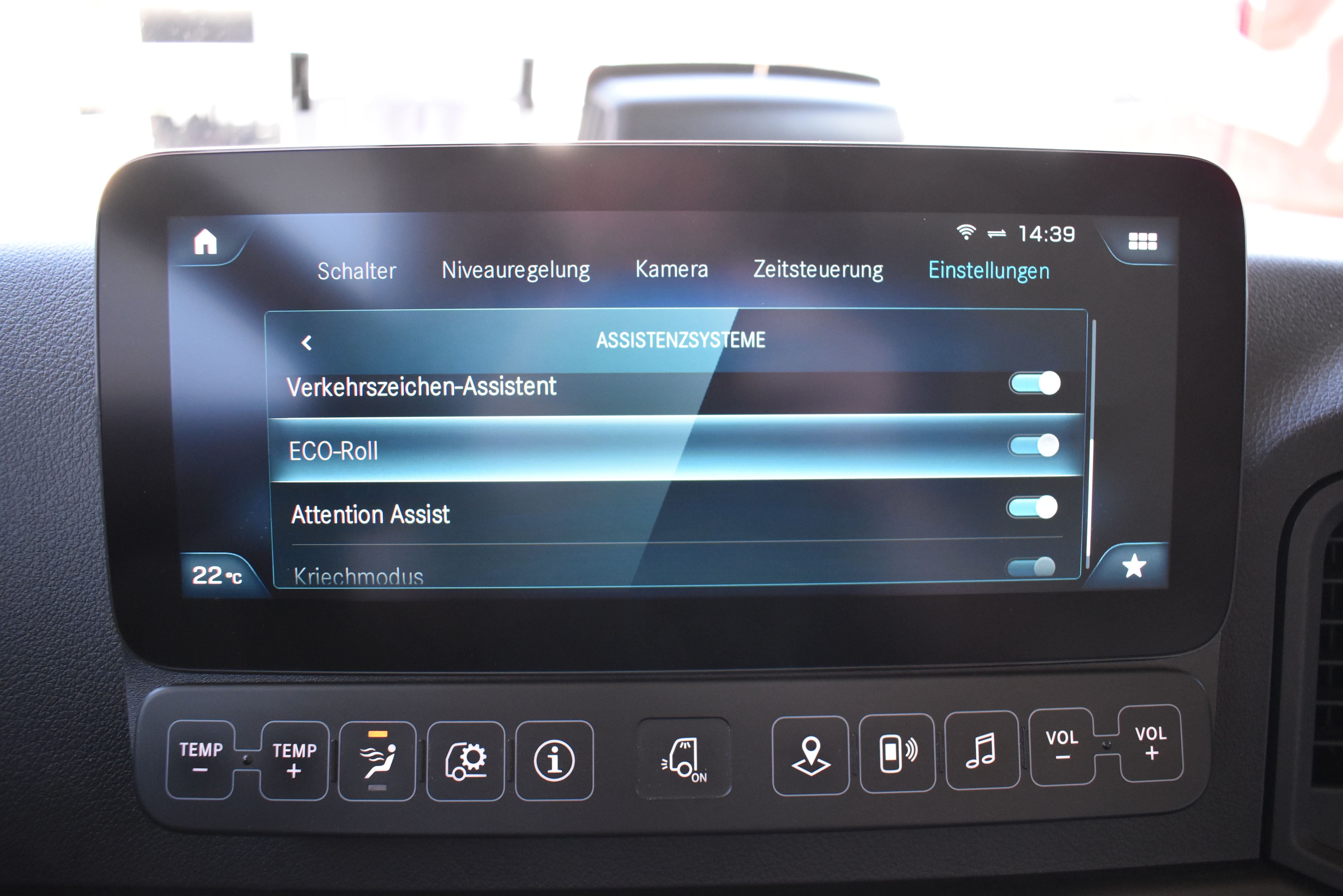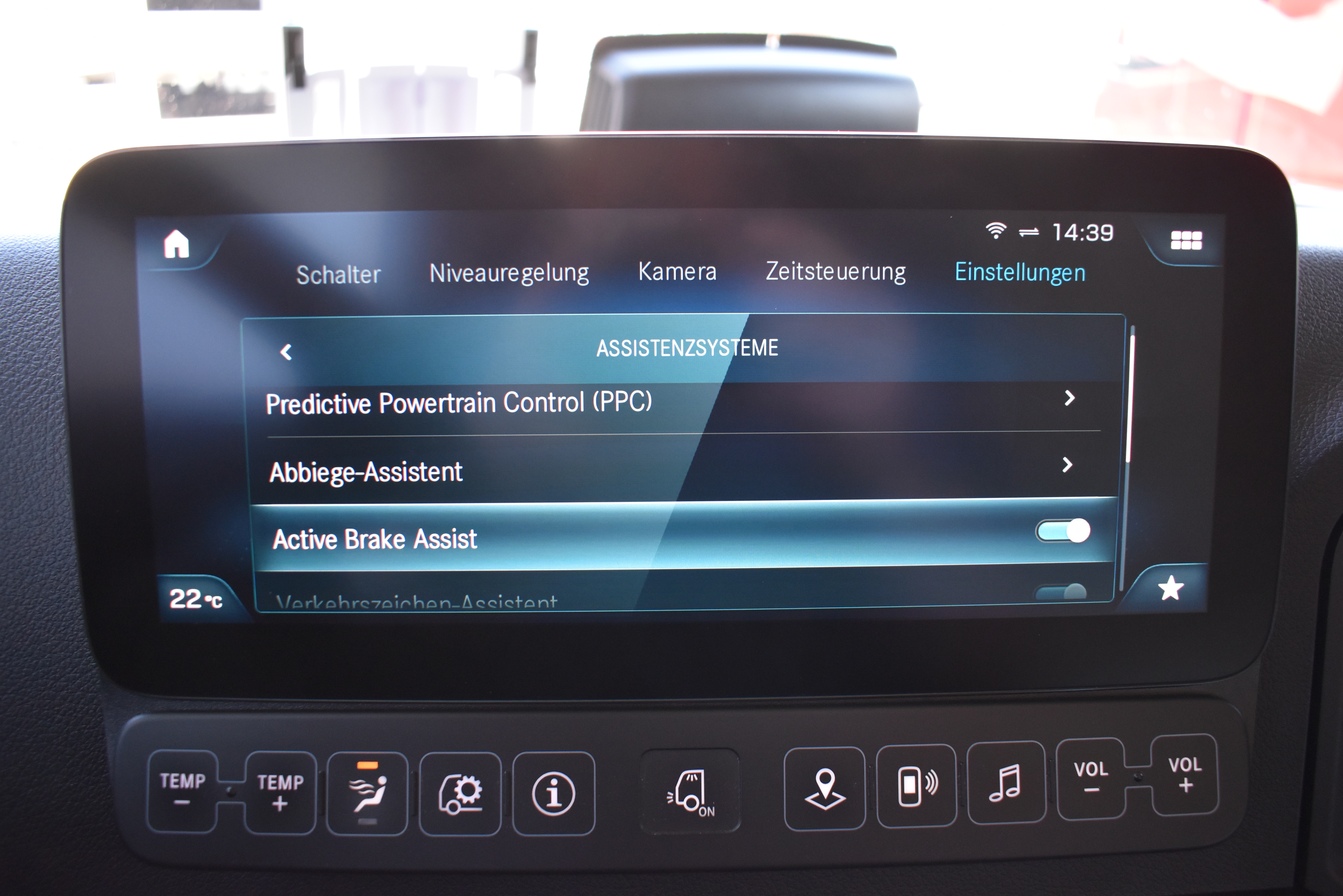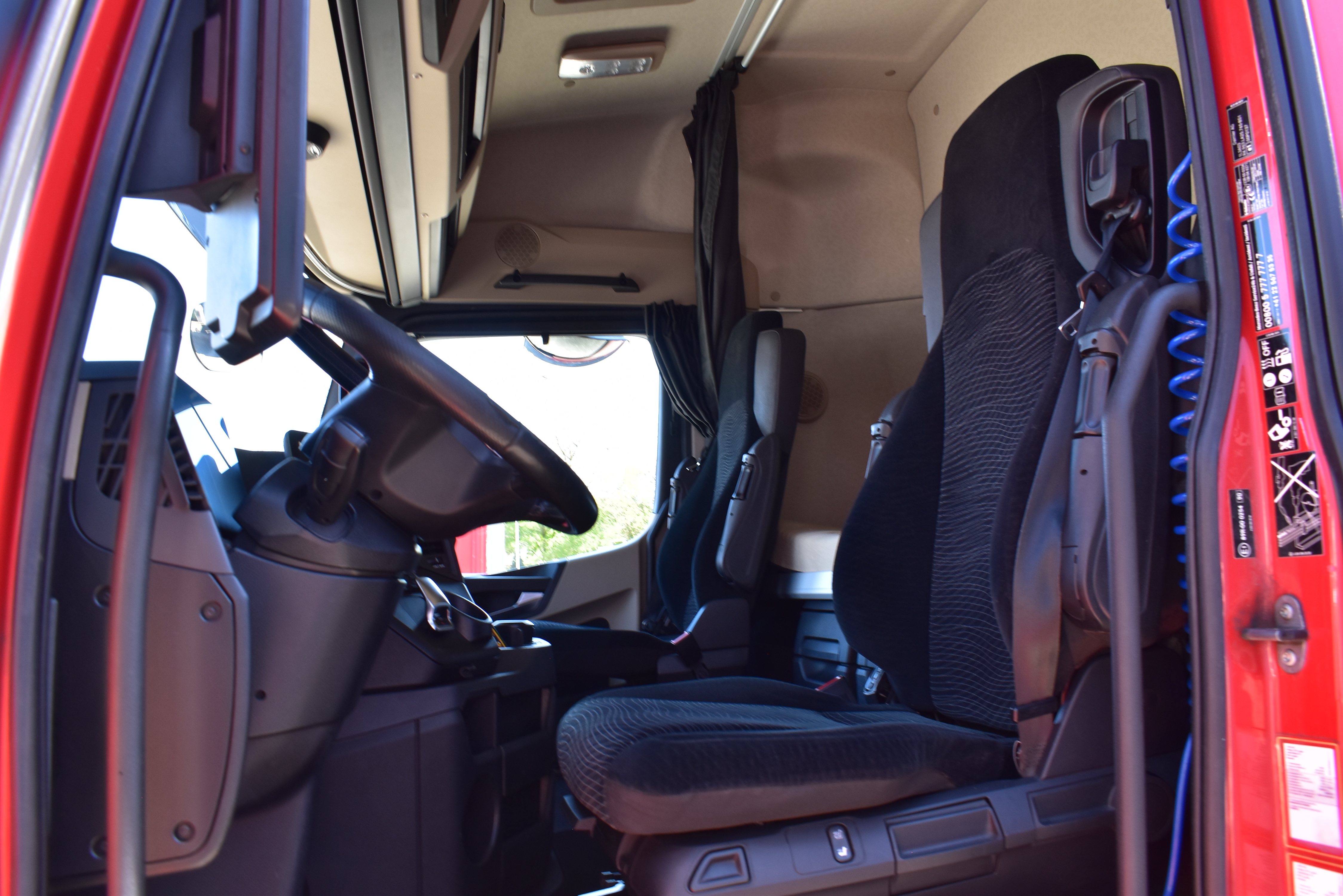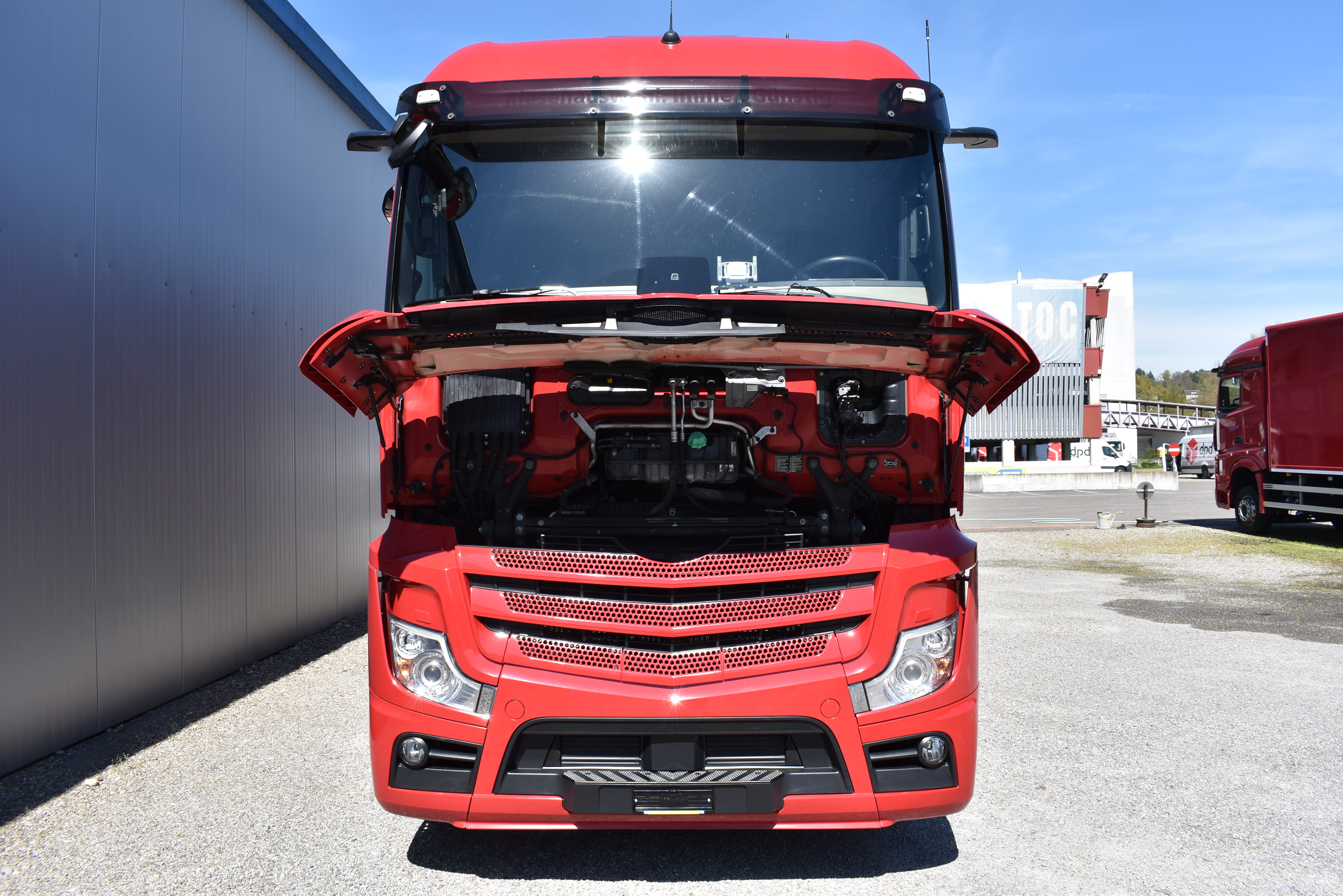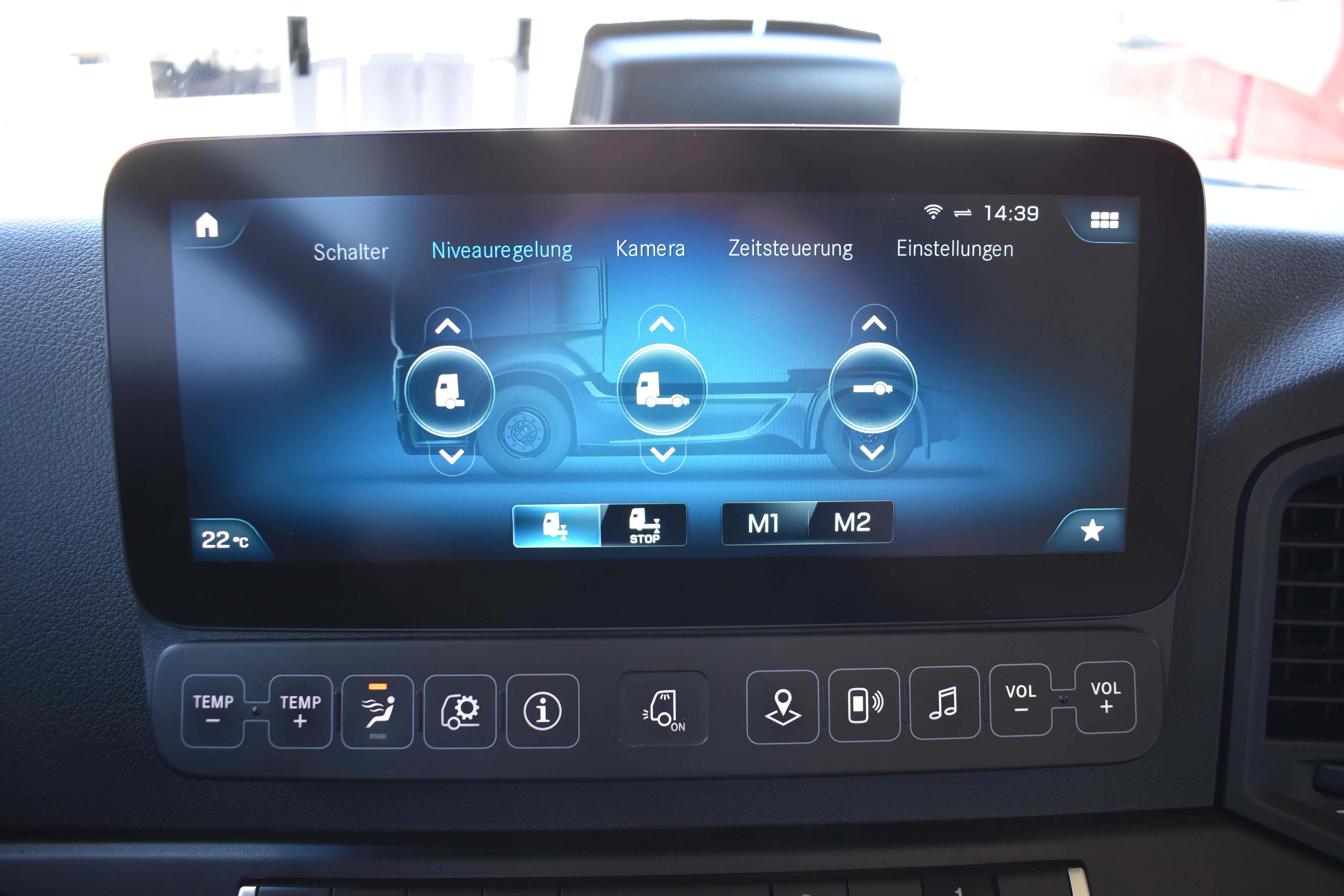 Klimaautomatik, Standheizung, EU-Bremsen, Duomatic-Anschluss, ABS, ASR, elektrische Fensterheber, Motorbremse, Vollluftfederung, HB-Blatt (1'600 mm mit Funkfernbedienung), Scheibenbremsen, Zentralverriegelung (mit Funkfernbedienung), 1 Liege, Abstandsregeltempomat, AdBlue-Tank, Airbag Fahrer, Aluminiumtank, Anfahrassistent, Anhängerkupplung (Rockinger), Beifahrersitz (klappbar), Digital-Tacho, ESP, Hebebühne (Mammut mit 2'000 kg Tragkraft), Holzfussboden, Licht- und Regensensor, Lochschienen (5 Stück in Reihe längsgerichtet unter dem Dach), Multifunktionslenkrad, Navigationssystem, Sitzheizung, Spurassistent, Werkzeugkiste, Xenonscheinwerfer |