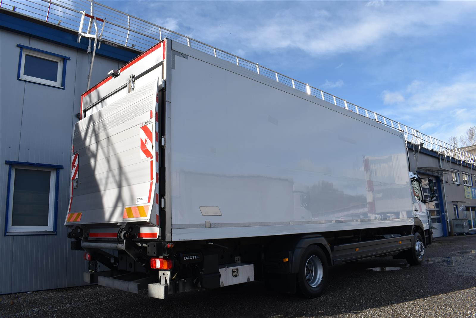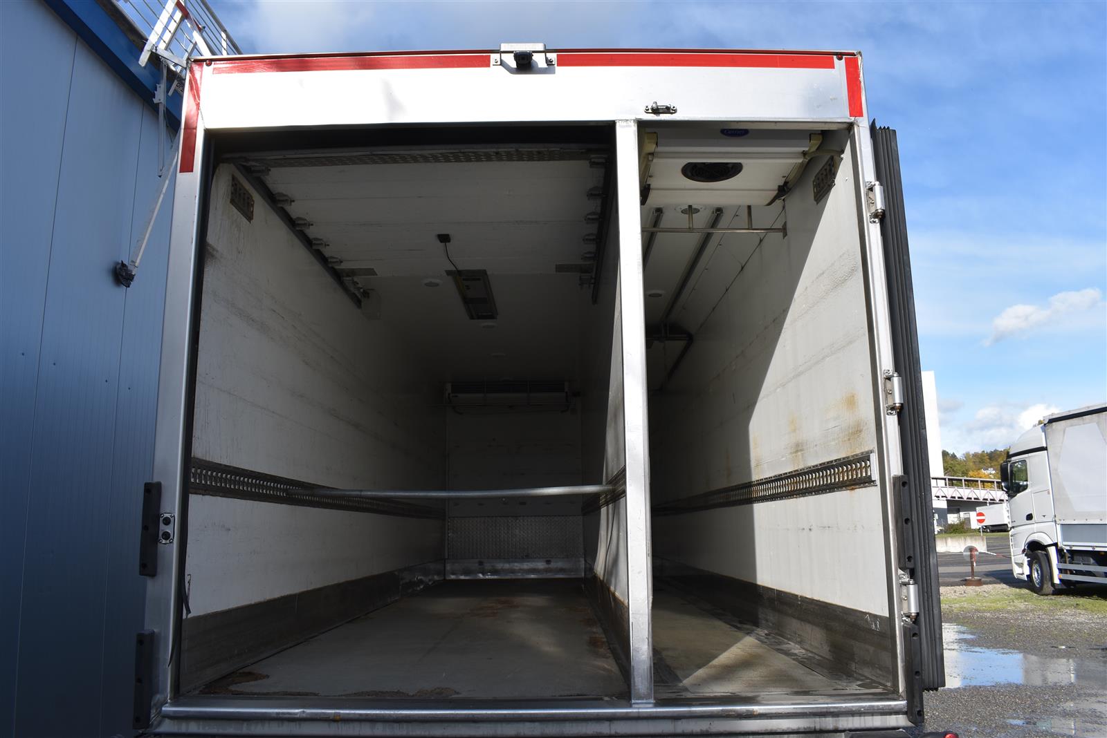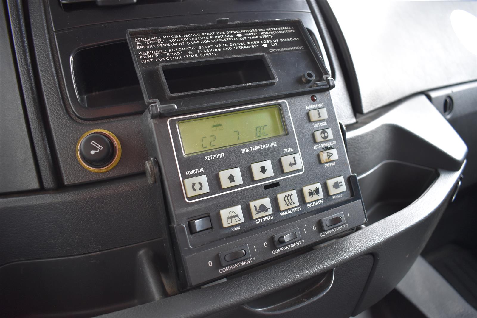 Klimaanlage, ABS, ASR, Radio/CD (mit Bluetooth), elektrische Fensterheber, Spiegel elektrisch verstellbar, Spiegelheizung, Luftfederung Hinterachse, HB-Blatt (1'800 mm mit Anti-Rutsch Belag und Funkfernbedienung), Kühlaggregat (Carrier Supra 1'250 Mt, Diesel- und Netzbetrieb), Scheibenbremsen, Differentialsperre, Dachspoiler, Zentralverriegelung (mit Funkfernbedienung), Wandstärke (50 mm), " (längs verschiebbare Trennwand in der kleinen Zone), 2-Zonen-Tiefkühlkasten mit 2 Verdampfern und verschiebbarer Trennwand , AdBlue-Tank, Anfahrassistent, Digital-Tacho, ESP, Hebebühne (Dautel mit 1'500 kg Tragkraft), je 1 Zurrschiene seitlich, Kunststoffboden, Multifunktionslenkrad, Rolltor (links, zusätzlich 1 Flügeltüre rechts), Rückfahrkamera, Sitzheizung |