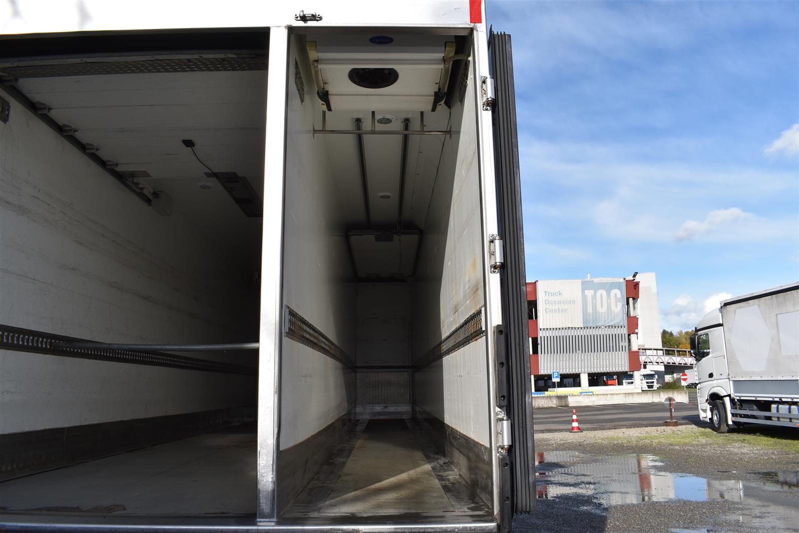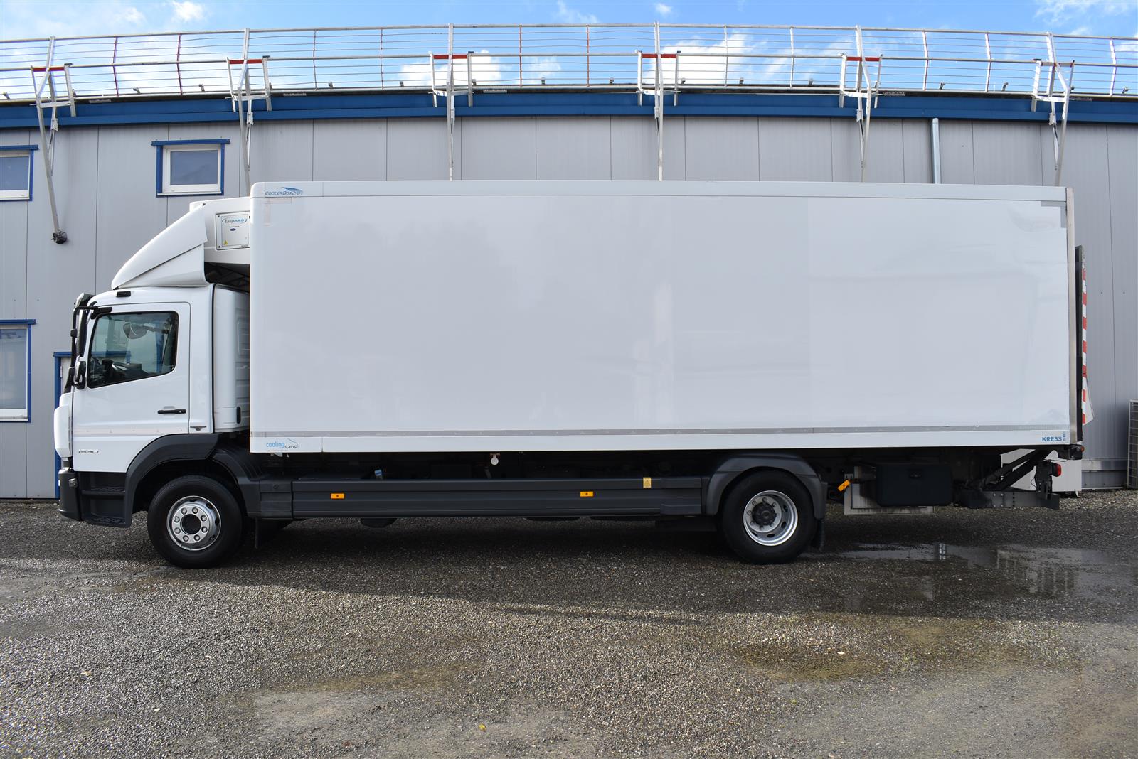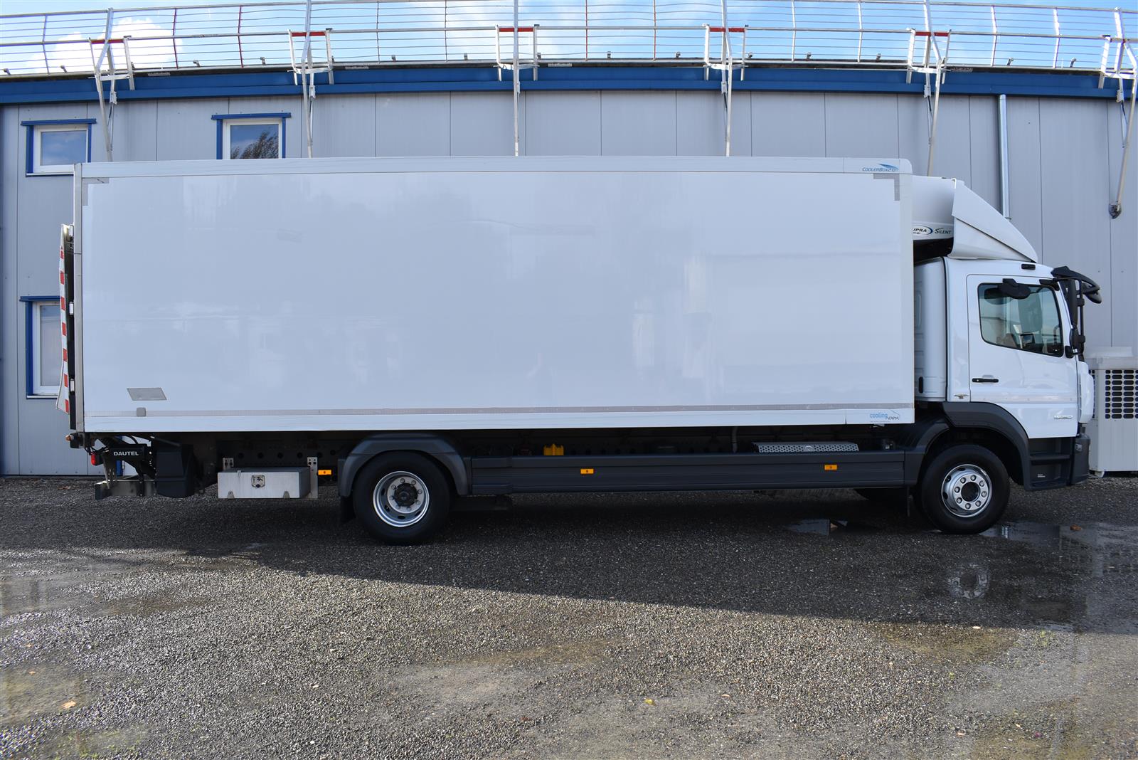 Klimaanlage, ABS, ASR, Radio/CD (mit Bluetooth), elektrische Fensterheber, Spiegel elektrisch verstellbar, Spiegelheizung, Luftfederung Hinterachse, HB-Blatt (1'800 mm mit Anti-Rutsch Belag und Funkfernbedienung), Kühlaggregat (Carrier Supra 1'250 Mt, Diesel- und Netzbetrieb), Scheibenbremsen, Differentialsperre, Dachspoiler, Zentralverriegelung (mit Funkfernbedienung), Wandstärke (50 mm), " (längs verschiebbare Trennwand in der kleinen Zone), 2-Zonen-Tiefkühlkasten mit 2 Verdampfern und verschiebbarer Trennwand , AdBlue-Tank, Anfahrassistent, Digital-Tacho, ESP, Hebebühne (Dautel mit 1'500 kg Tragkraft), je 1 Zurrschiene seitlich, Kunststoffboden, Multifunktionslenkrad, Rolltor (links, zusätzlich 1 Flügeltüre rechts), Rückfahrkamera, Sitzheizung |