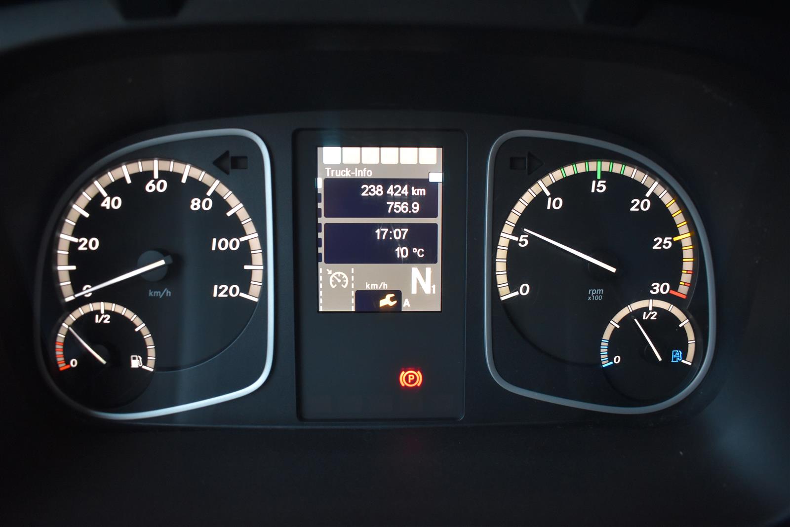 Tempomat, Klimaanlage, ABS, ASR, Radio/CD (mit Bluetooth), elektrische Fensterheber, Spiegel elektrisch verstellbar, Spiegelheizung, Motorbremse, Luftfederung Hinterachse, HB-Blatt (2'450 mm), Scheibenbremsen, Differentialsperre, Zentralverriegelung, AdBlue-Tank, Airbag Fahrer, Digital-Tacho, ESP, Hebebühne (Dautel mit 1'500 kg Tragkraft), Holzfussboden, Multifunktionslenkrad, Rückfahrkamera, Sitzheizung, Spurassistent |