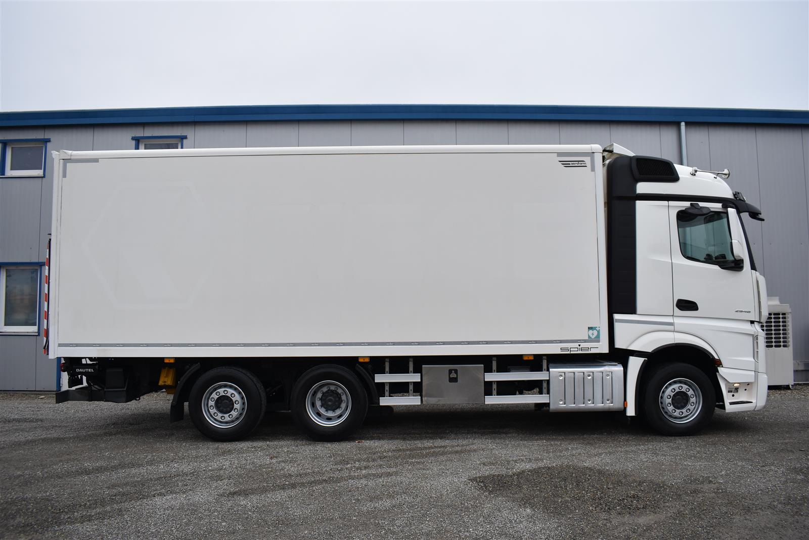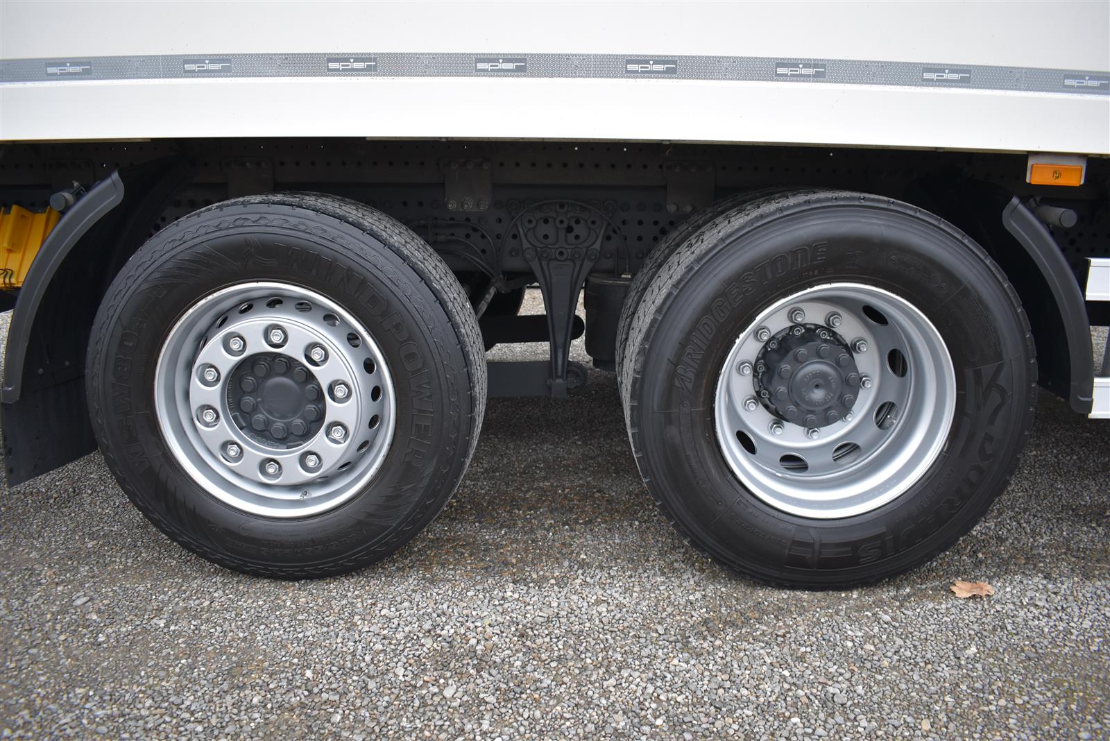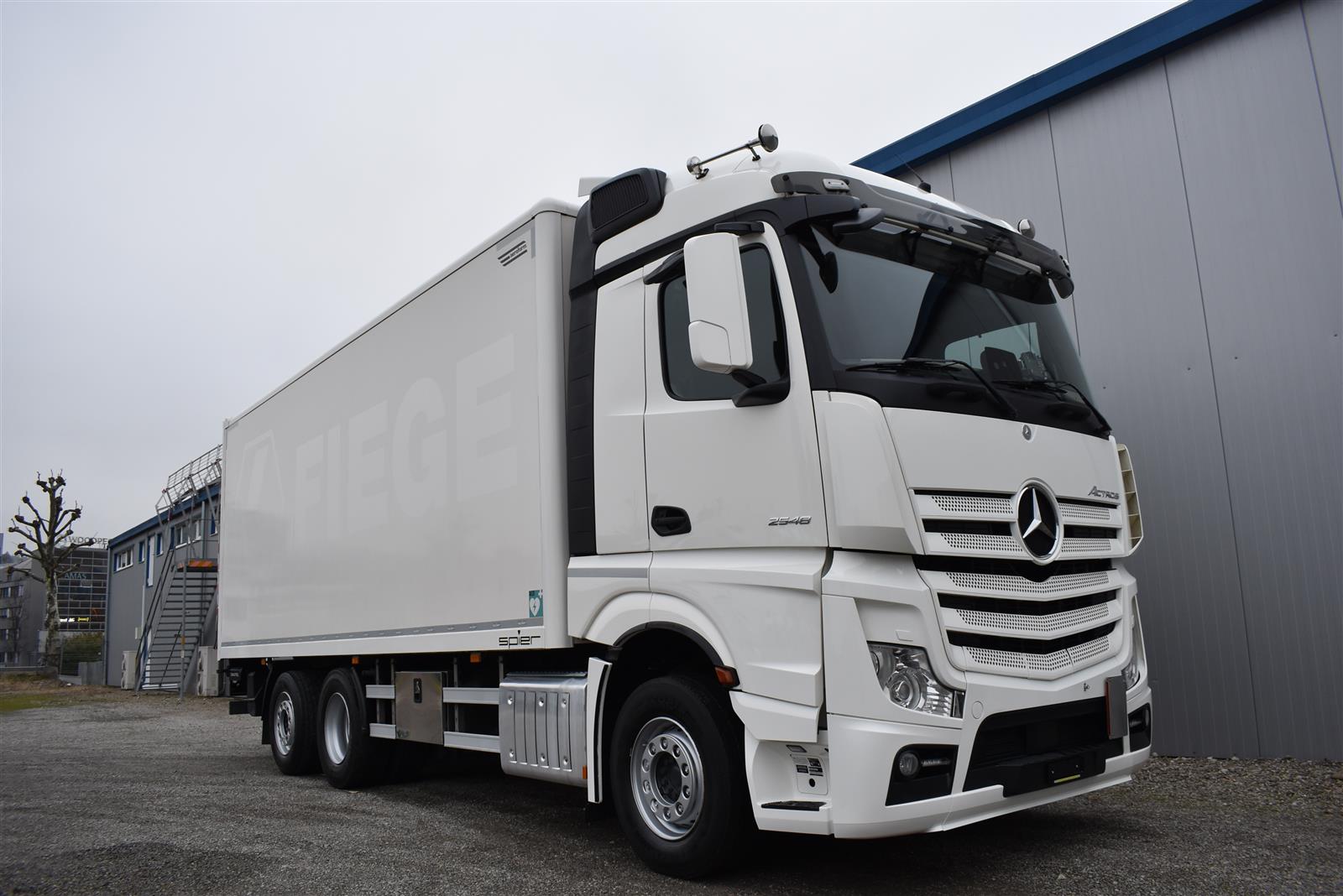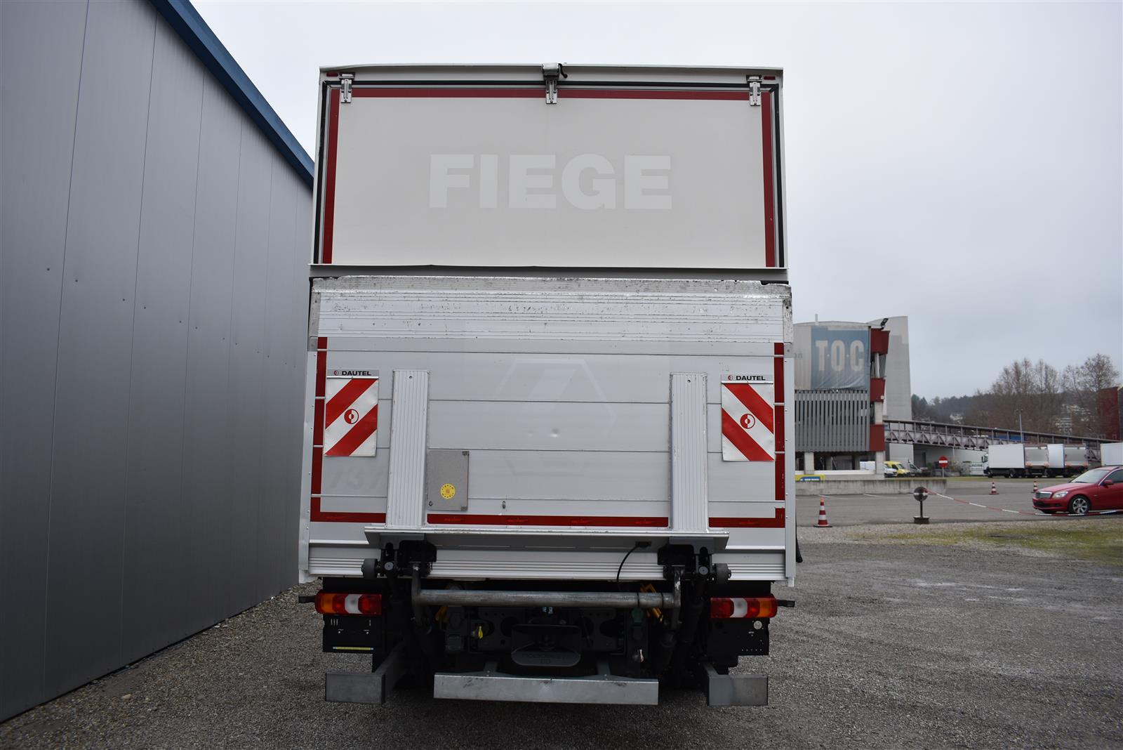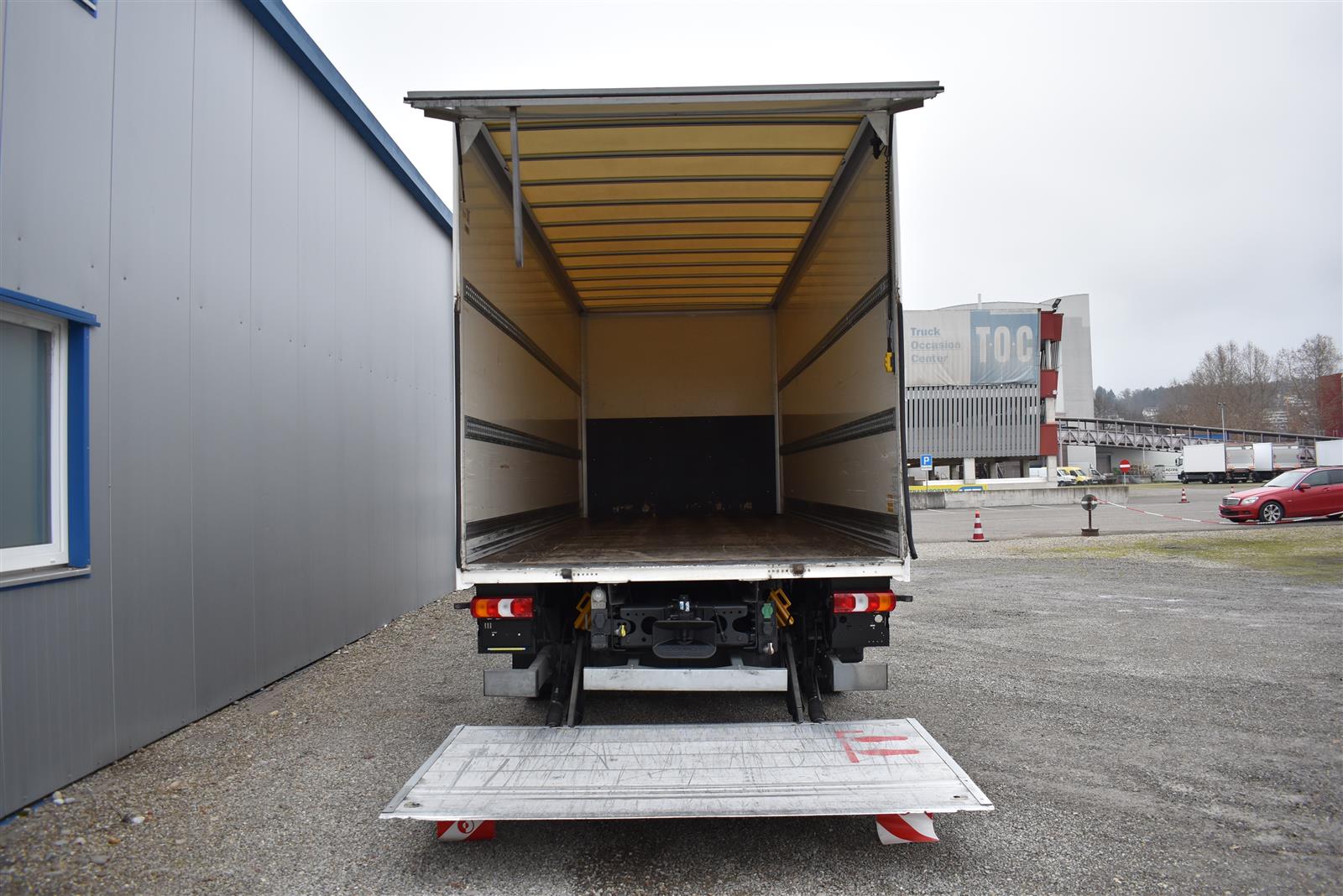Retarder, Standheizung, elektrische Fensterheber, Spiegel elektrisch verstellbar, Spiegelheizung, Vollluftfederung, HB-Blatt (1'600 mm), Scheibenbremsen, Differentialsperre, Zentralverriegelung (mit Funkfernbedienung), 1 Liege, Abstandsregeltempomat, AdBlue-Tank, Aluminiumtank, Anfahrassistent, Beifahrersitz (klappbar), Digital-Tacho, ESP, Hebebühne (Dautel mit 1'500 kg Tragkraft), Holzfussboden, je 2 Zurrschienen seitlich, Licht- und Regensensor, Multifunktionslenkrad, Nachlaufachse liftbar-gelenkt, Navigationssystem, Sitzheizung, Spurassistent, Standklimaanlage, Xenonscheinwerfer |
