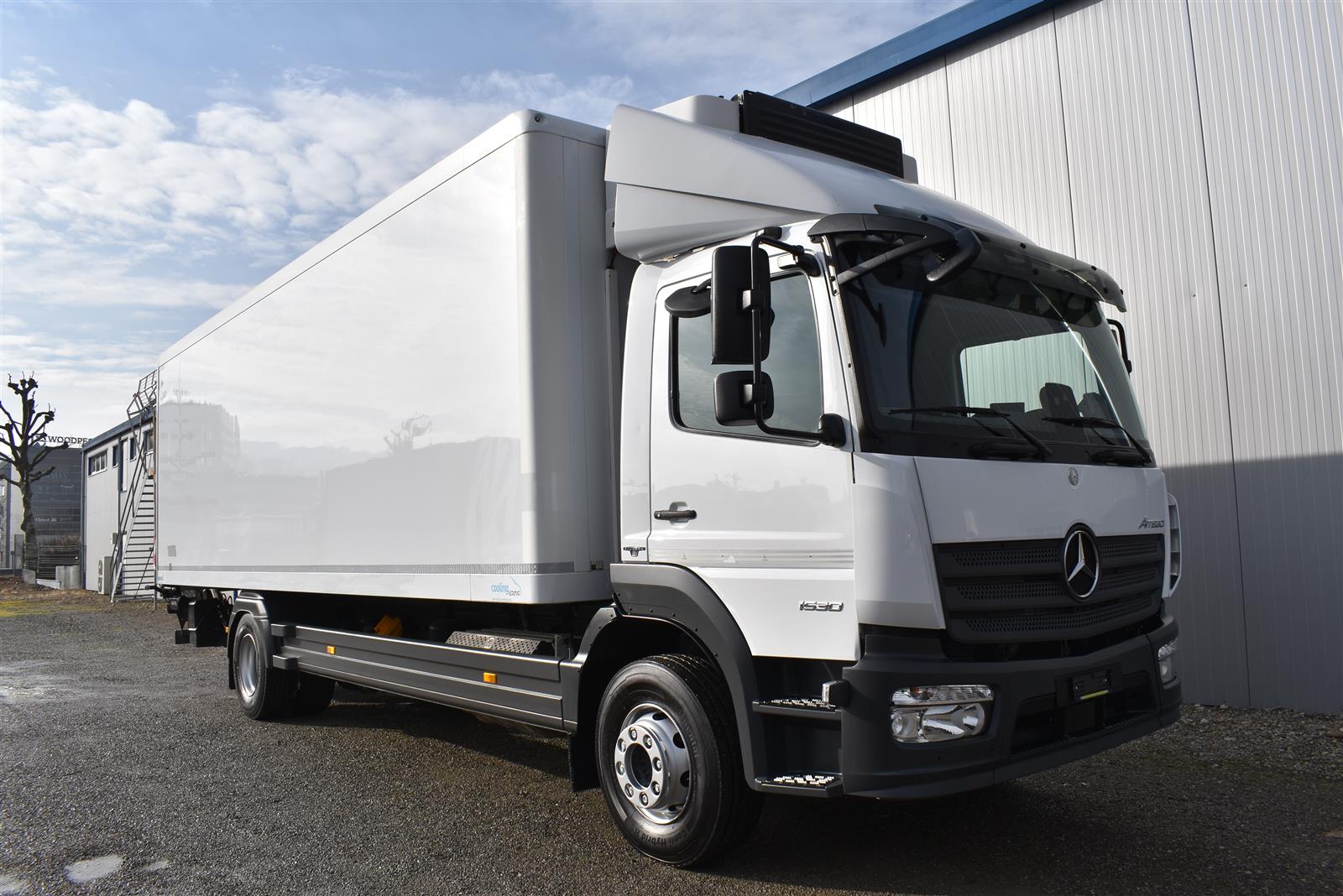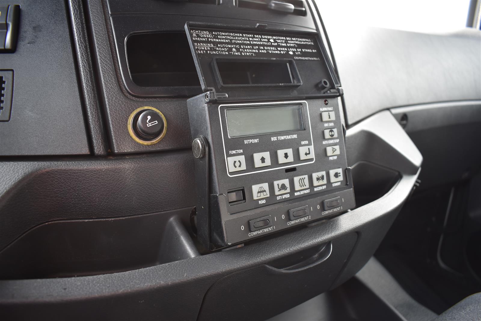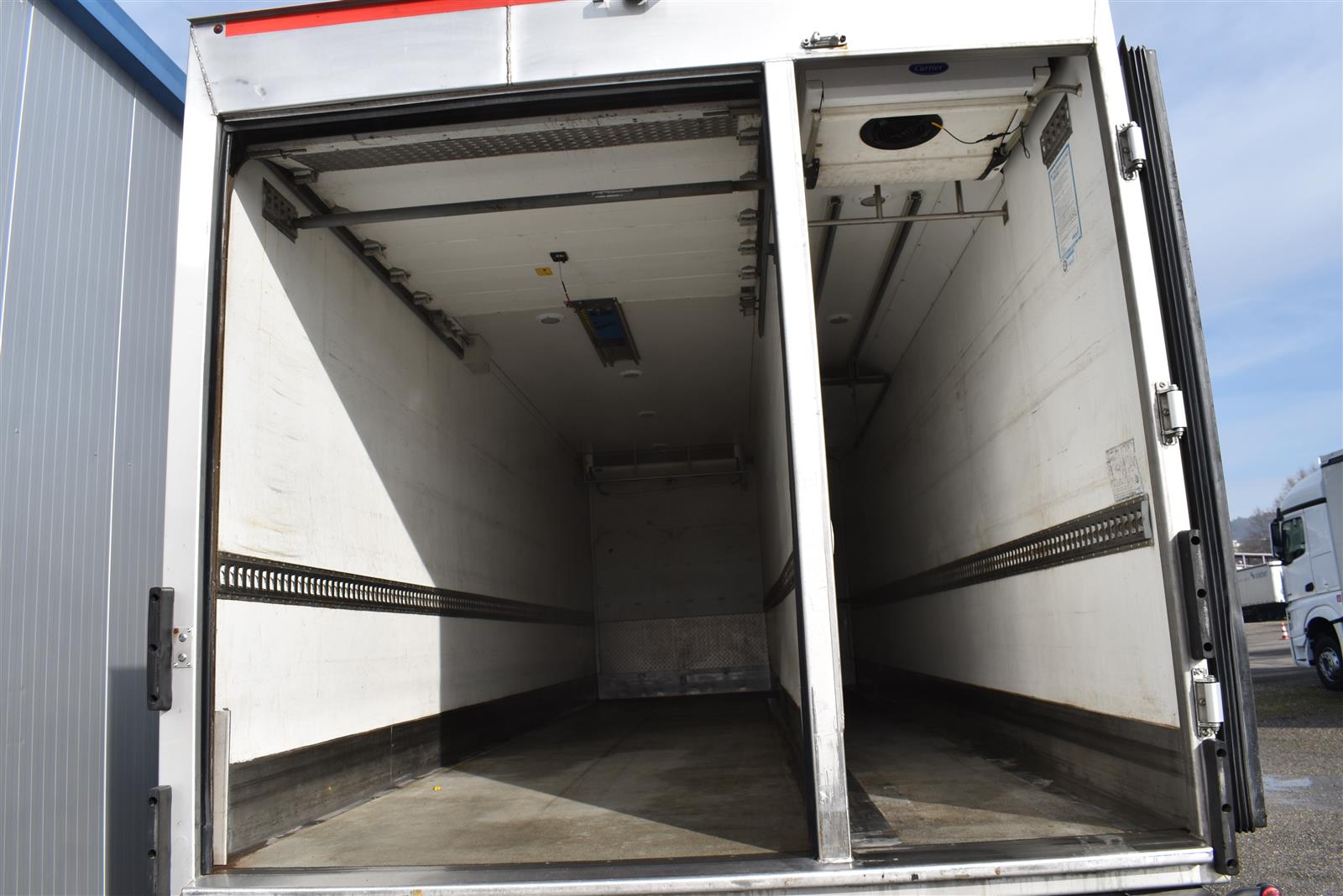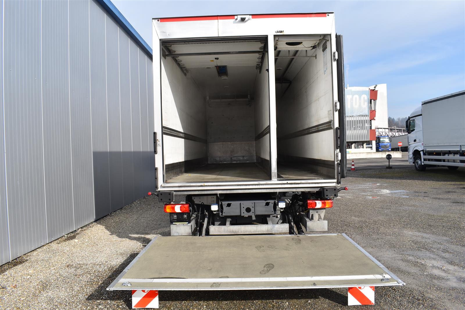 Klimaanlage, ABS, ASR, Radio/CD (mit Bluetooth), elektrische Fensterheber, Spiegel elektrisch verstellbar, Spiegelheizung, Luftfederung Hinterachse, HB-Blatt (1'800 mm mit Anti-Rutsch Belag und Funkfernbedienung), Kühlaggregat (Carrier Supra 1'250 Mt, Diesel- und Netzbetrieb), Scheibenbremsen, Differentialsperre, Dachspoiler, Zentralverriegelung (mit Funkfernbedienung), Wandstärke (50 mm), - (längs verschiebbare Trennwand in der kleinen Zone), 2-Zonen-Tiefkühlkasten mit 2 Verdampfern und verschiebbarer Trennwand , AdBlue-Tank, Anfahrassistent, Digital-Tacho, ESP, Hebebühne (Dautel mit 1'500 kg Tragkraft), je 1 Zurrschiene seitlich, Kunststoffboden, Multifunktionslenkrad, Rolltor, Rückfahrkamera, Sitzheizung |