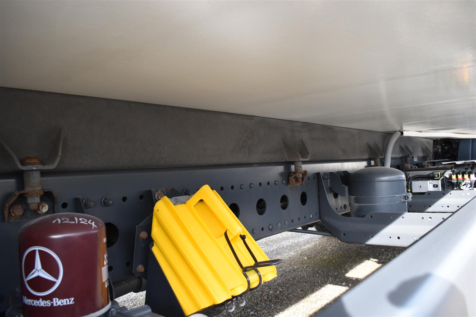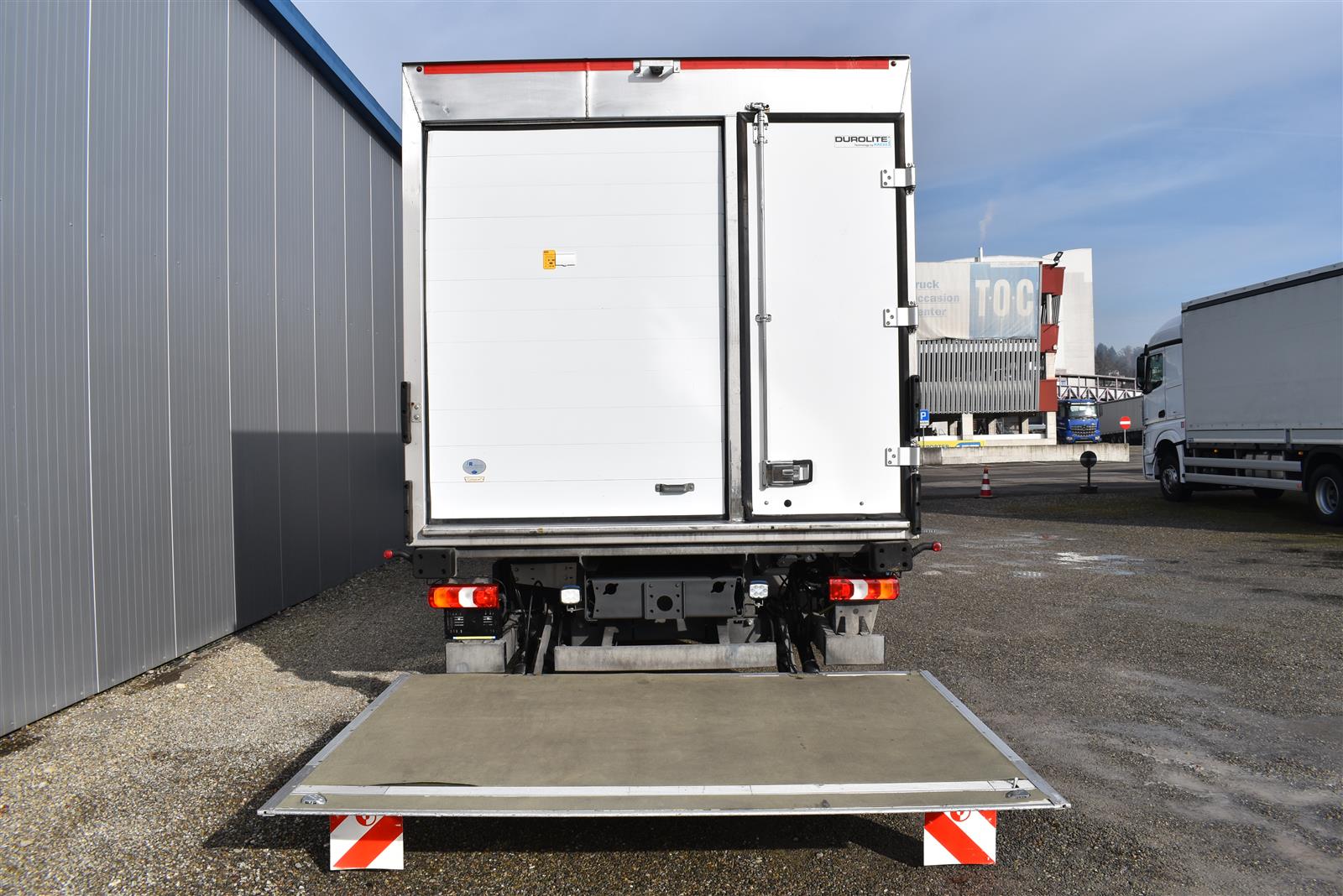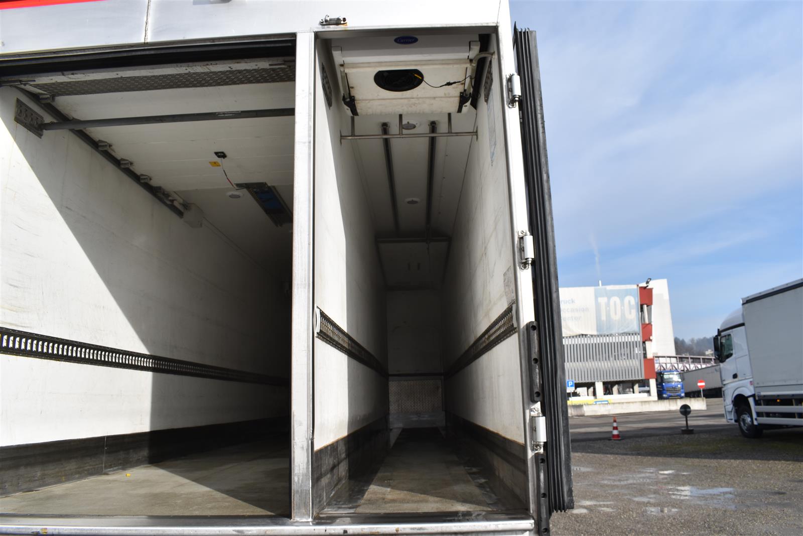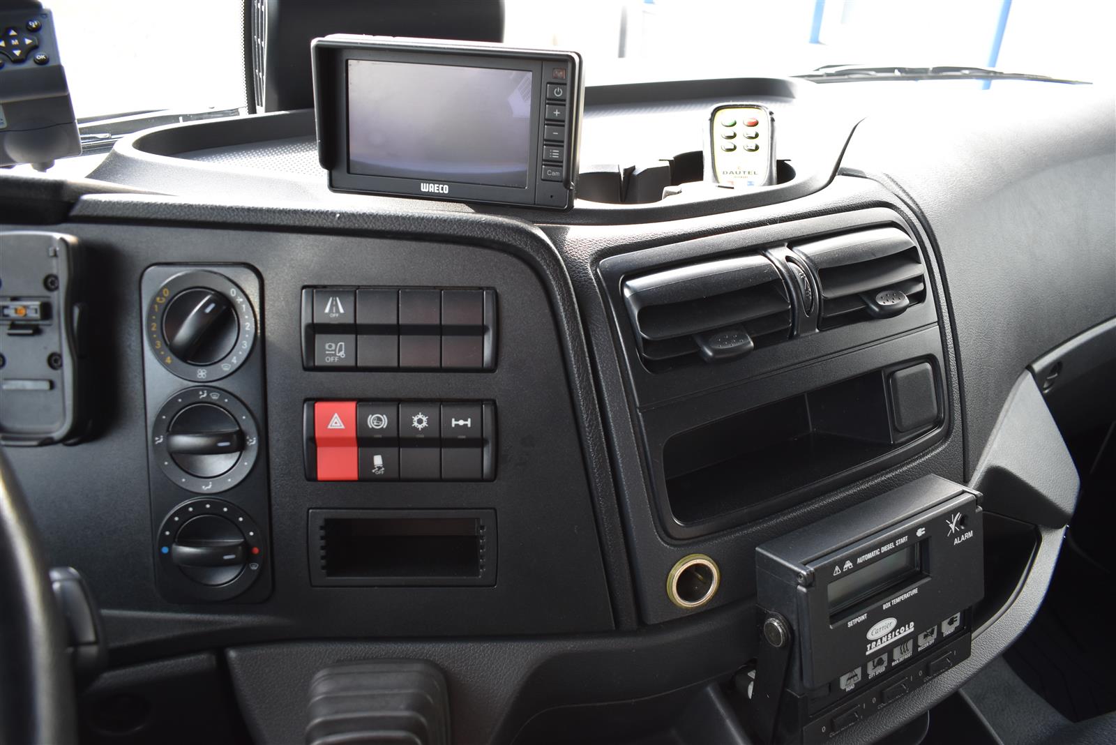 Klimaanlage, ABS, ASR, Radio/CD (mit Bluetooth), elektrische Fensterheber, Spiegel elektrisch verstellbar, Spiegelheizung, Luftfederung Hinterachse, HB-Blatt (1'800 mm mit Anti-Rutsch Belag und Funkfernbedienung), Kühlaggregat (Carrier Supra 1'250 Mt, Diesel- und Netzbetrieb), Scheibenbremsen, Differentialsperre, Dachspoiler, Zentralverriegelung (mit Funkfernbedienung), Wandstärke (50 mm), - (längs verschiebbare Trennwand in der kleinen Zone), 2-Zonen-Tiefkühlkasten mit 2 Verdampfern und verschiebbarer Trennwand , AdBlue-Tank, Anfahrassistent, Digital-Tacho, ESP, Hebebühne (Dautel mit 1'500 kg Tragkraft), je 1 Zurrschiene seitlich, Kunststoffboden, Multifunktionslenkrad, Rolltor, Rückfahrkamera, Sitzheizung |
