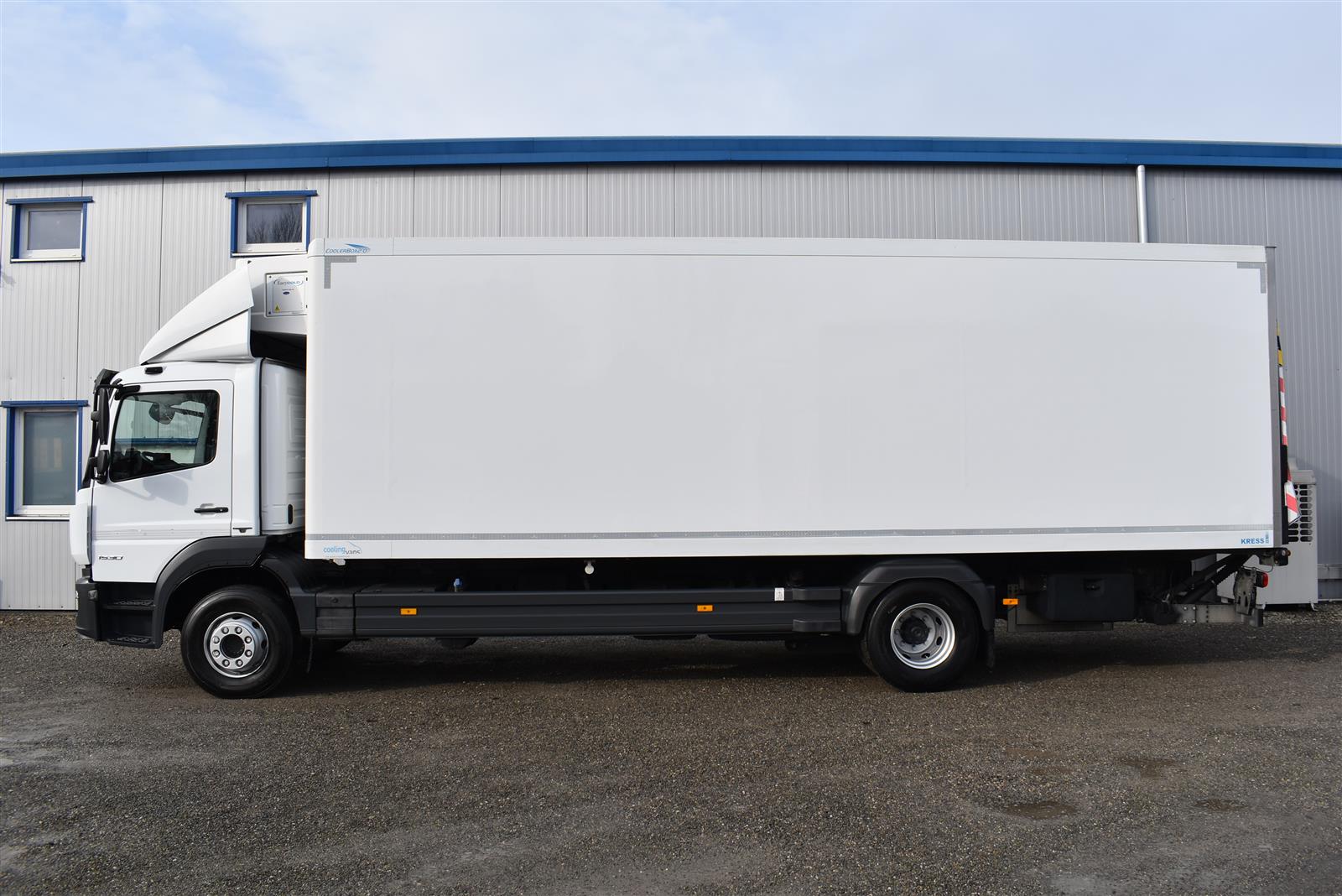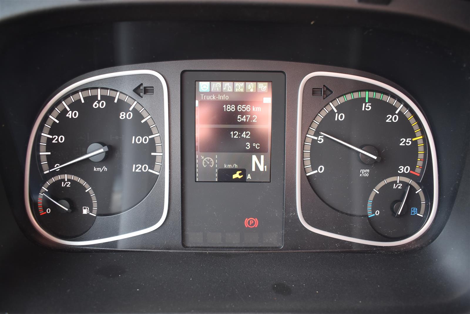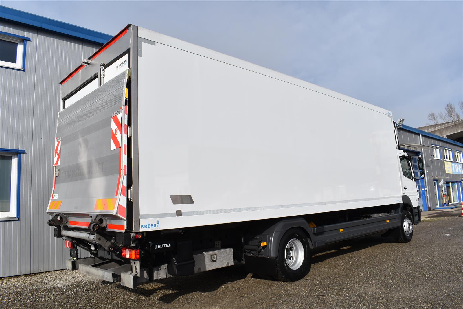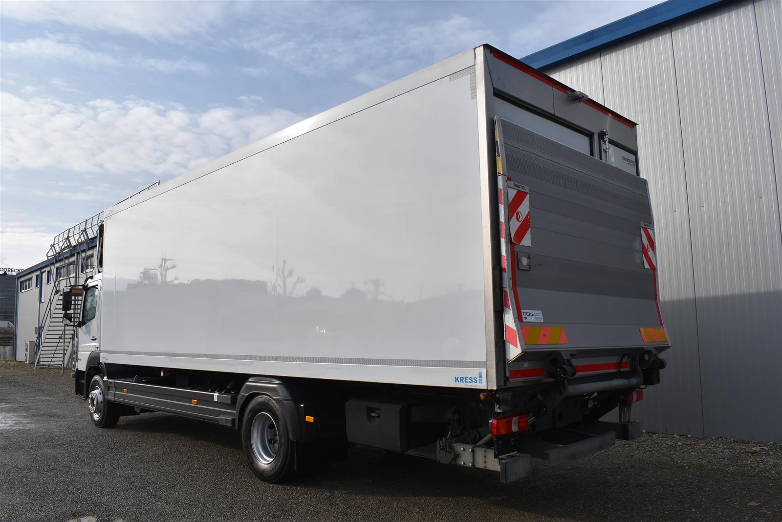 Klimaanlage, ABS, ASR, Radio/CD (mit Bluetooth), elektrische Fensterheber, Spiegel elektrisch verstellbar, Spiegelheizung, Luftfederung Hinterachse, HB-Blatt (1'800 mm mit Anti-Rutsch Belag und Funkfernbedienung), Kühlaggregat (Carrier Supra 1'250 Mt, Diesel- und Netzbetrieb), Scheibenbremsen, Differentialsperre, Dachspoiler, Zentralverriegelung (mit Funkfernbedienung), Wandstärke (50 mm), - (längs verschiebbare Trennwand in der kleinen Zone), 2-Zonen-Tiefkühlkasten mit 2 Verdampfern und verschiebbarer Trennwand , AdBlue-Tank, Anfahrassistent, Digital-Tacho, ESP, Hebebühne (Dautel mit 1'500 kg Tragkraft), je 1 Zurrschiene seitlich, Kunststoffboden, Multifunktionslenkrad, Rolltor, Rückfahrkamera, Sitzheizung |