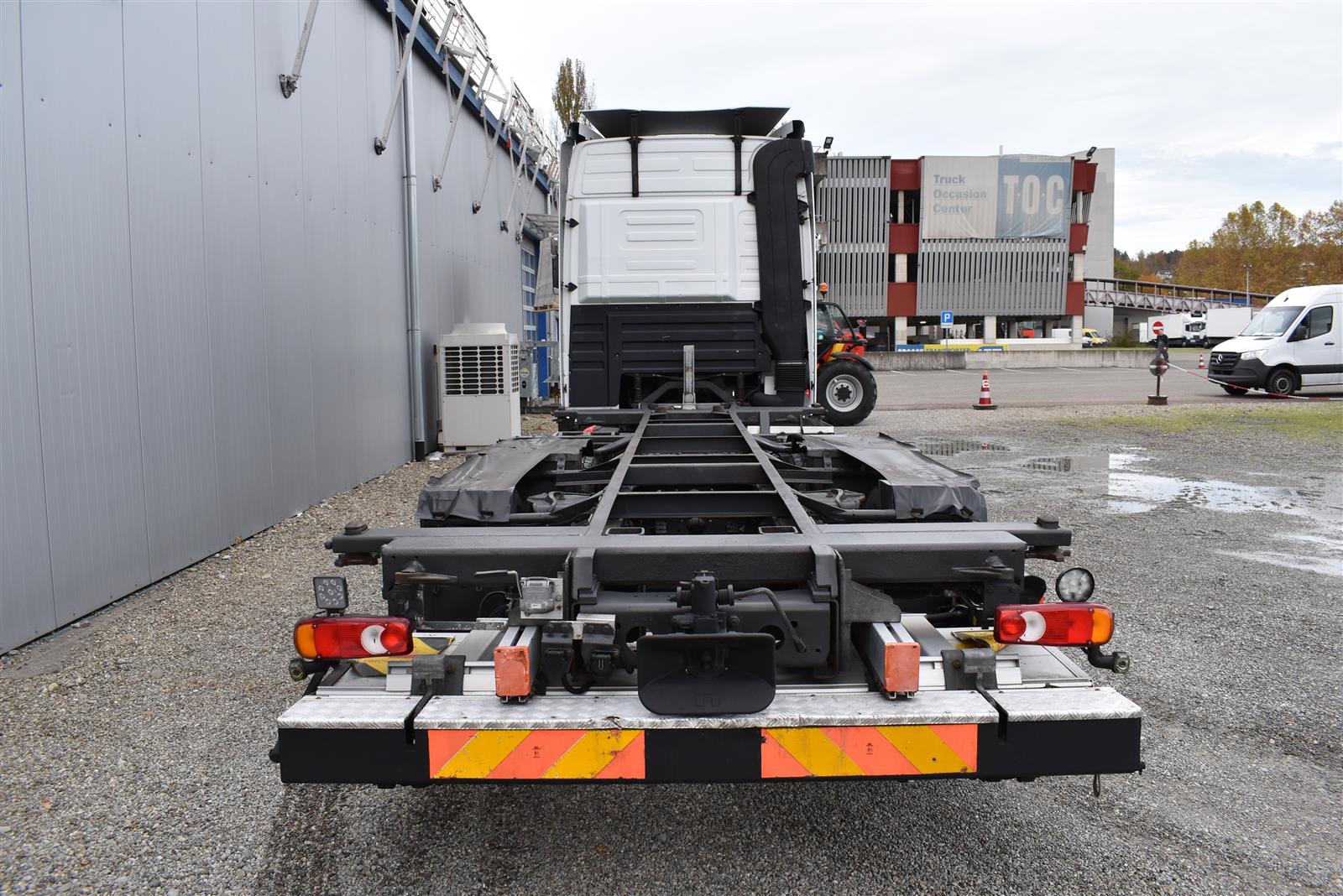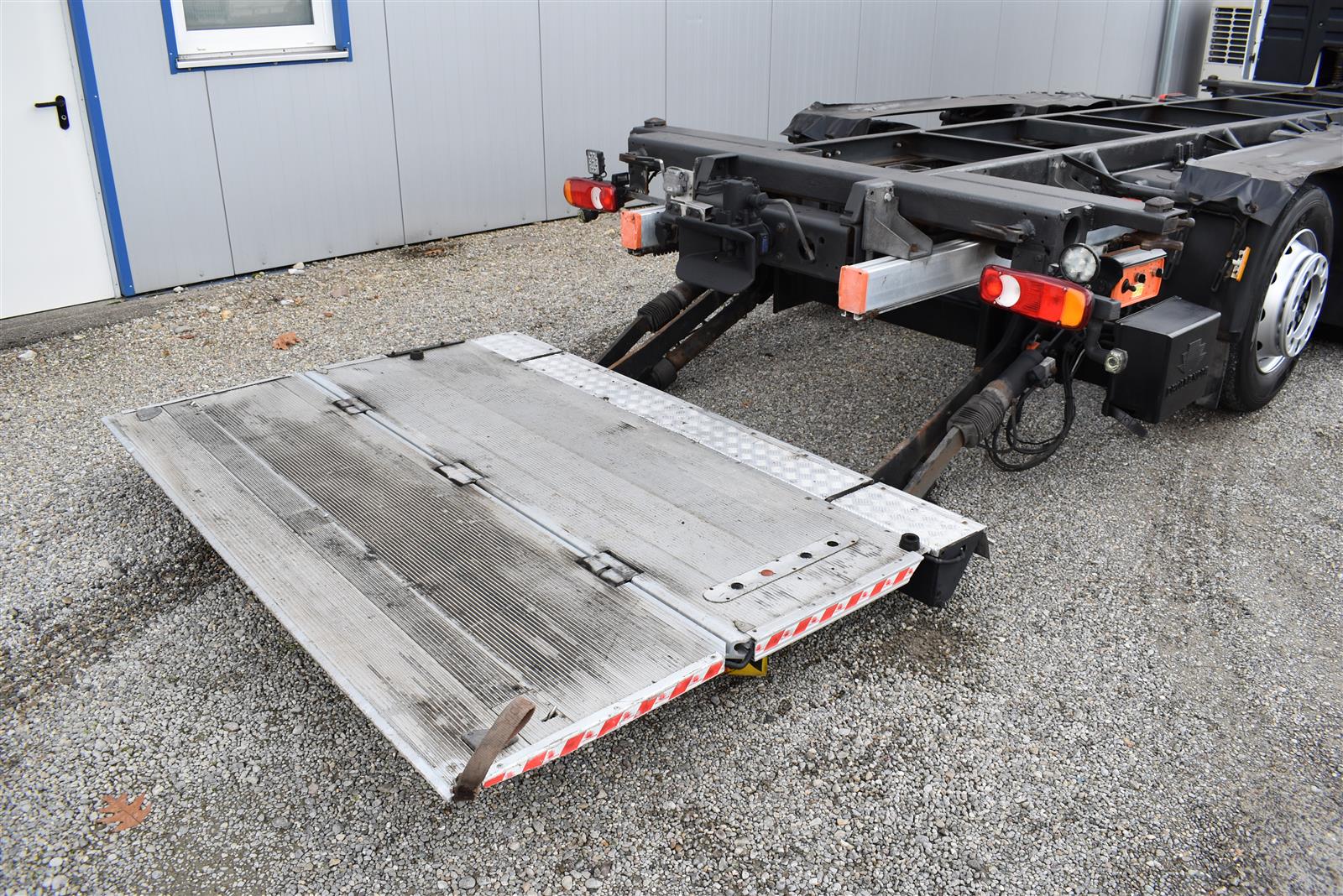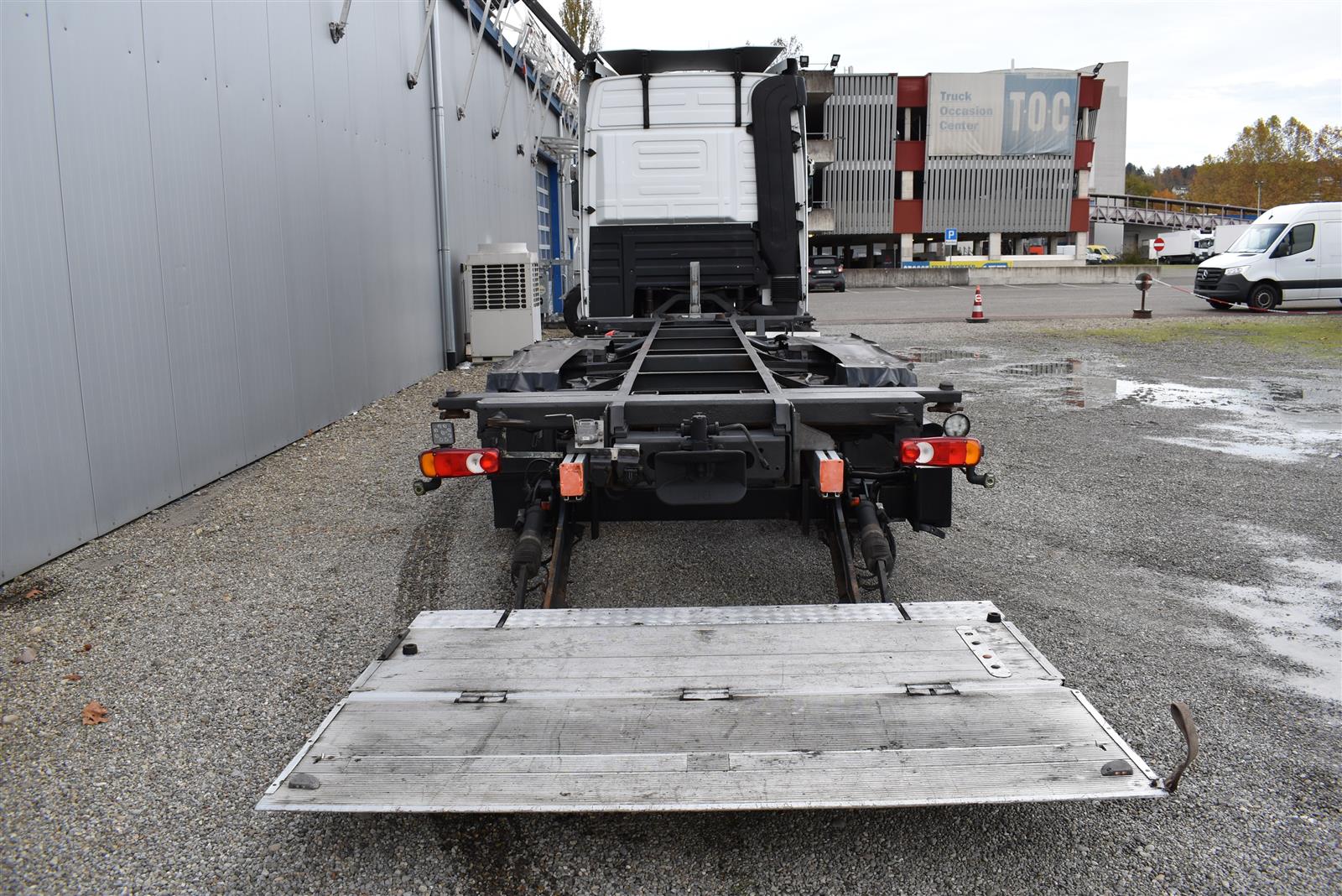 Retarder, Tempomat, Klimaanlage, Standheizung, EU-Bremsen, Duomatic-Anschluss, ABS, ASR, Radio/CD, elektrische Fensterheber, Spiegel elektrisch verstellbar, Spiegelheizung, Vollluftfederung, HB-Blatt (1'600 mm mit Funkfernbedienung), Scheibenbremsen, Differentialsperre, Zentralverriegelung, 2 Liegen, AdBlue-Tank, Anfahrassistent, Anhängerkupplung, Beifahrersitz (klappbar), Digital-Tacho, Hebebühne (Dhollandia mit 2'000 kg Tragkraft), Multifunktionslenkrad, Nachlaufachse, Sitzheizung, Werkzeugkiste |