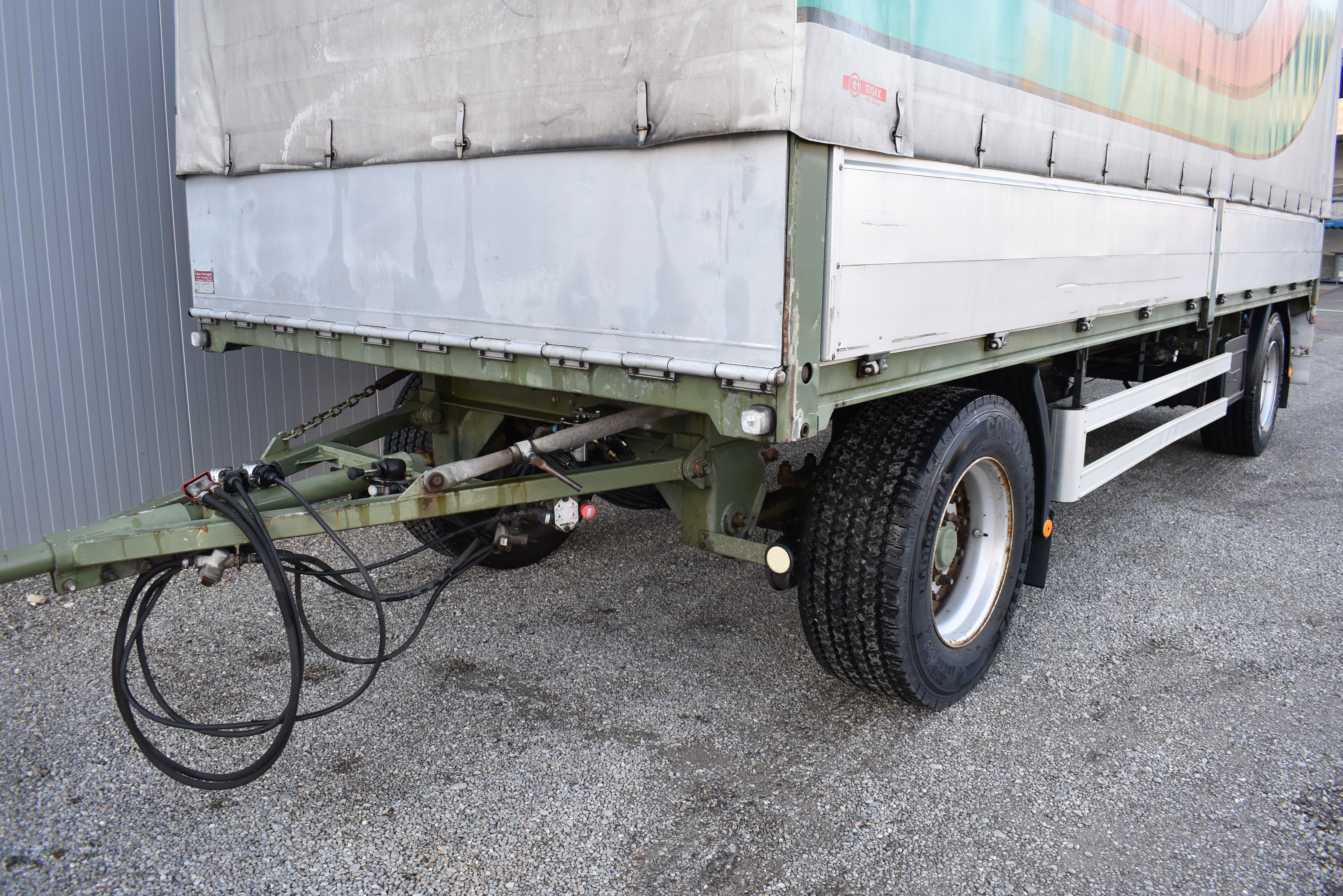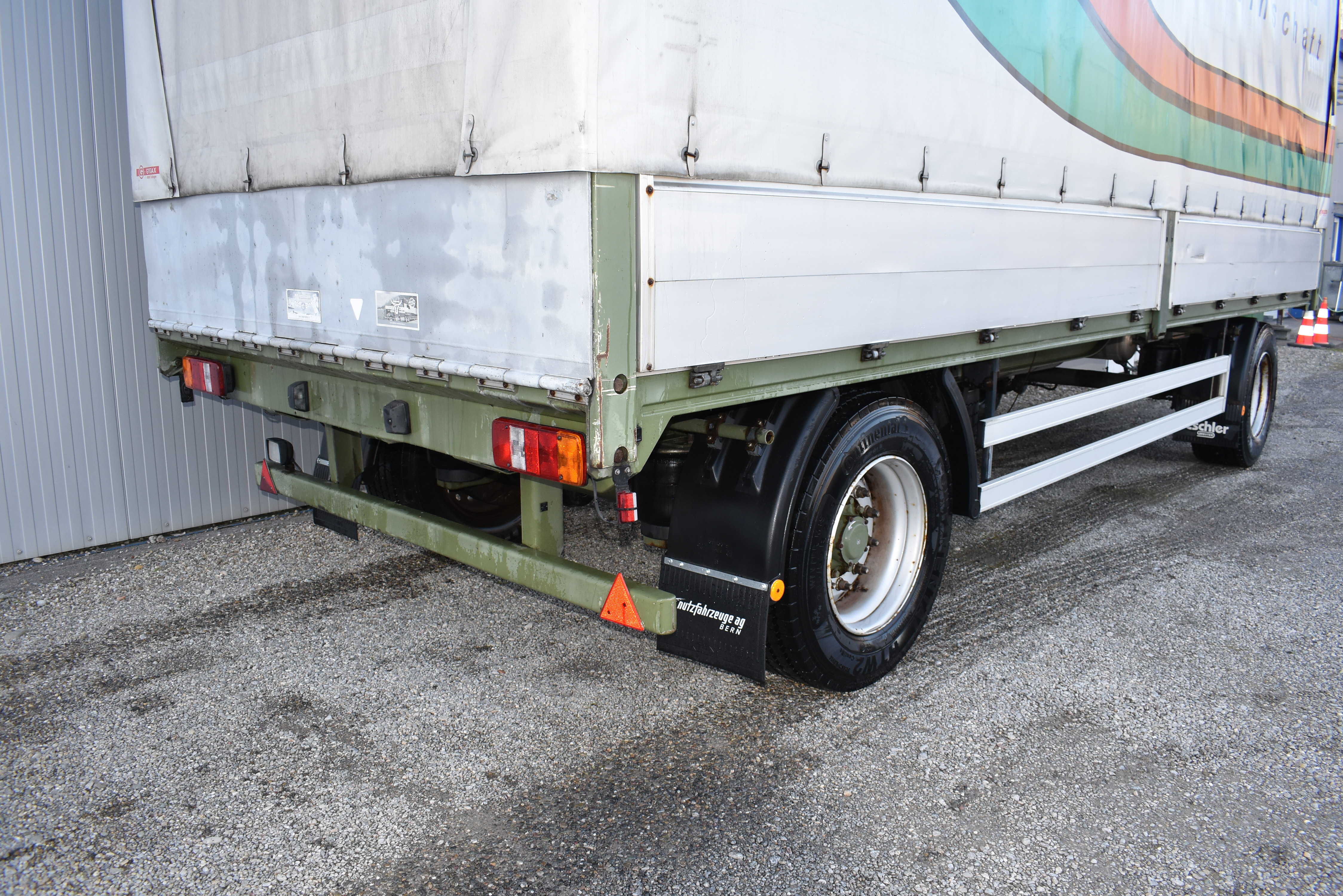 Duomatic-Anschluss, ABS, Vollluftfederung, Scheibenbremsen, Schiebeverdeck, ALB, Alu-Seitenläden (800 mm nach aussen klappbar), Bremsanlage EBS, Heckklappe (800 mm), Holzfussboden