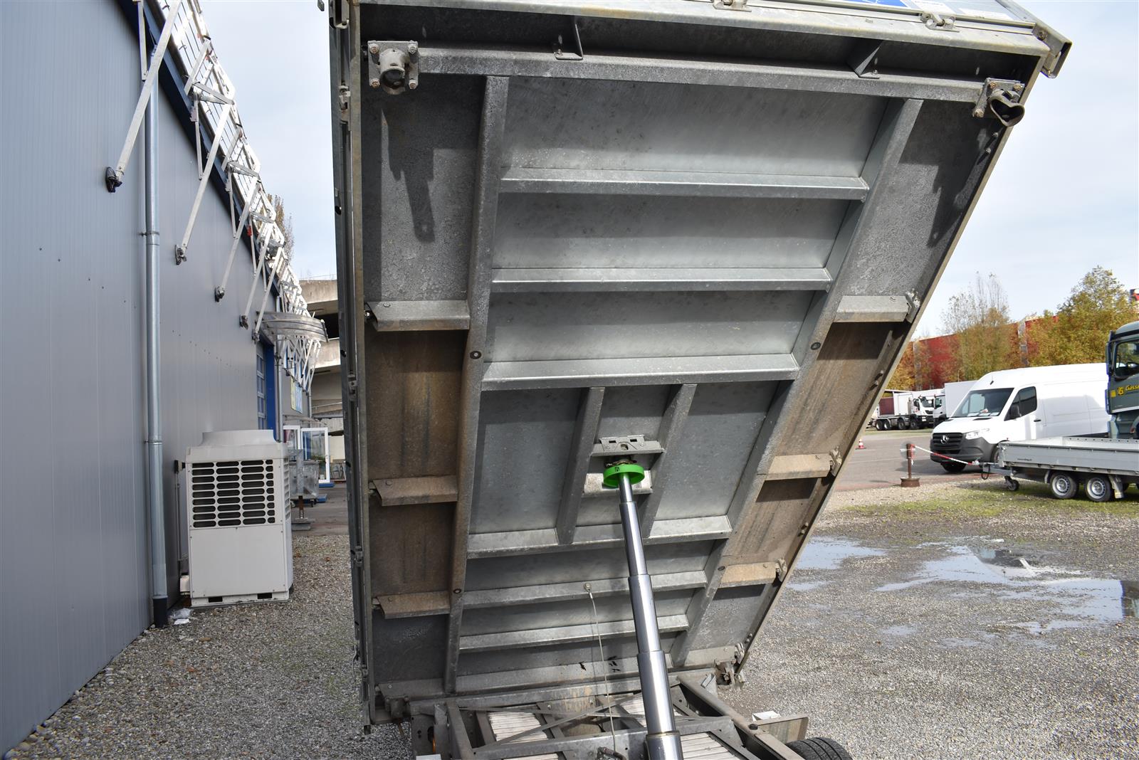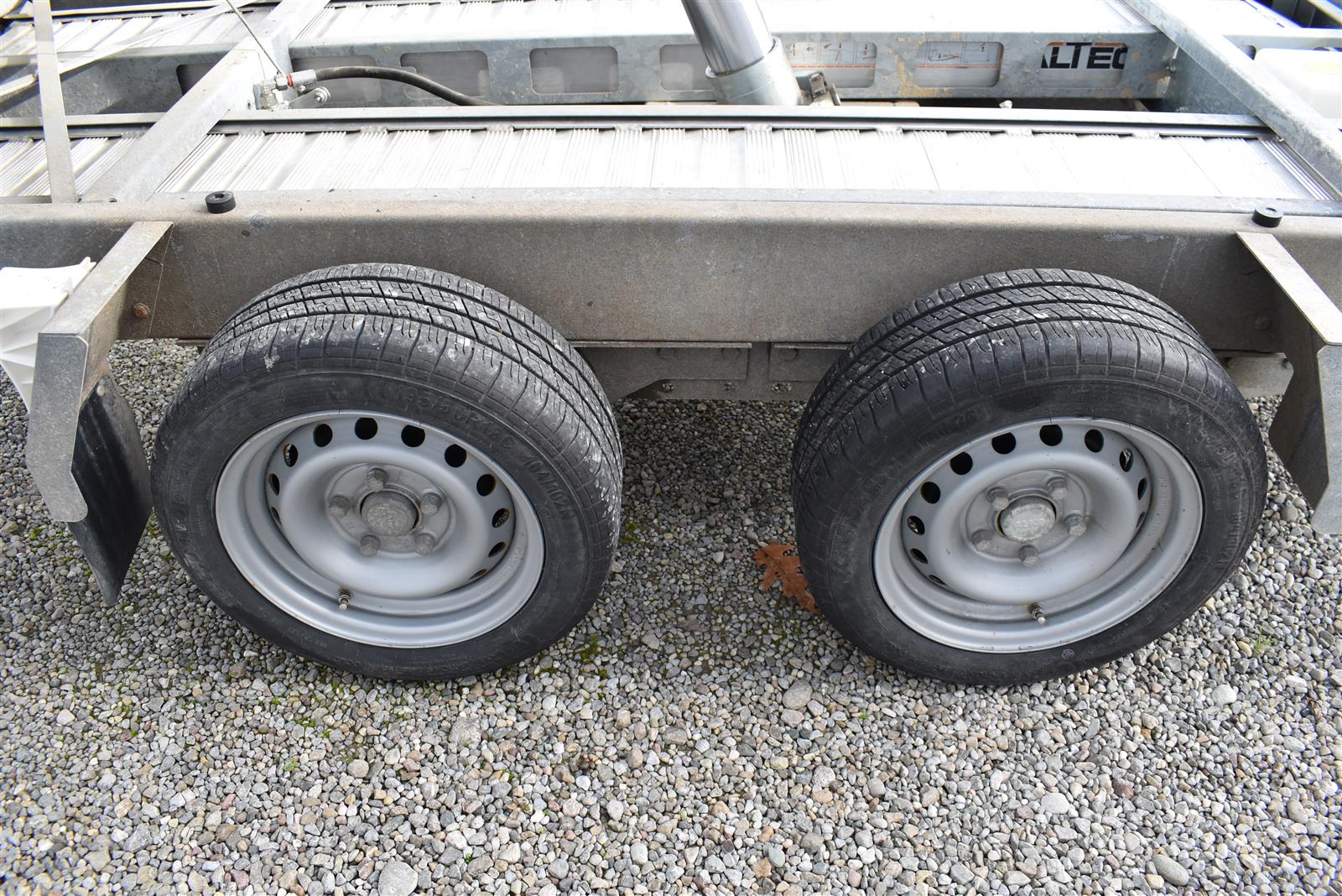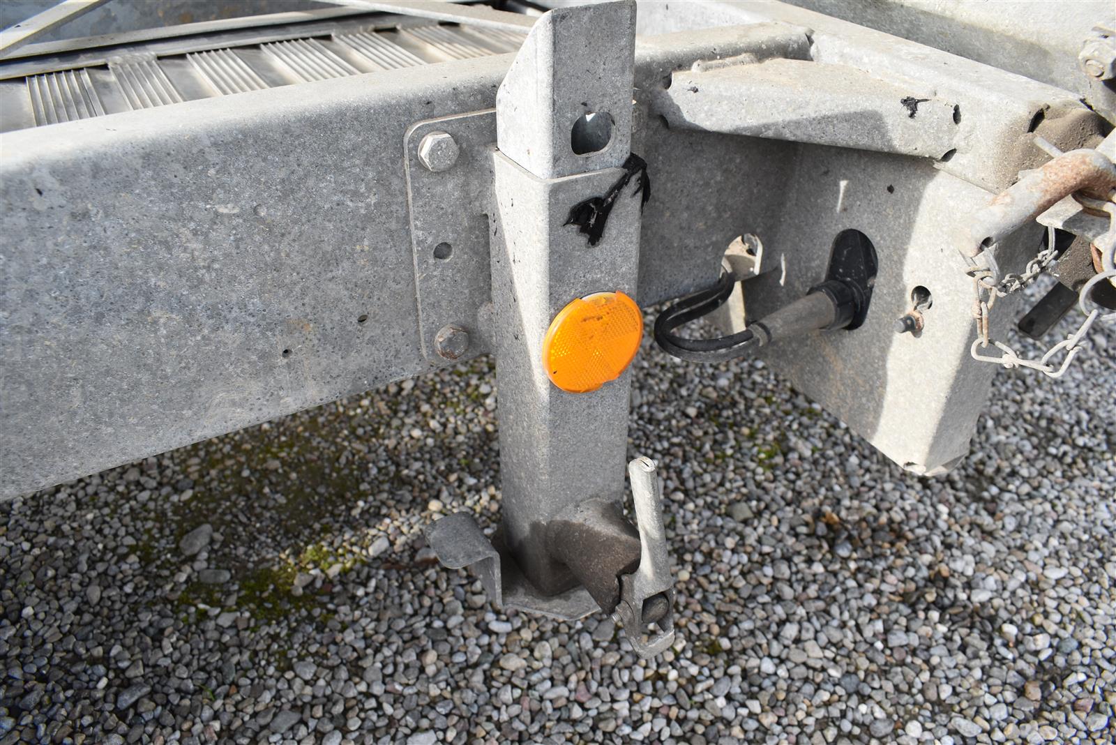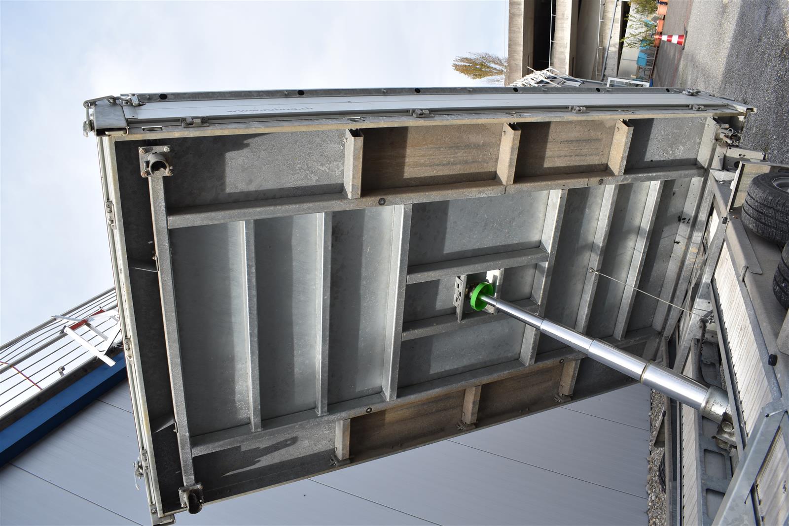 - (2 Alu-Auffahrrampen 2'560x280 mm, Tragkraft bei Achsabstand 1m=2'600kg und bei 1.5m =2'850kg, Einschubfach für Auffahrrampen, elektrische Pumpe mit Nothandpumpe und batterie, Ladeleitung mit Batterie, Abstellstützen am Heck,), Aluboden, Alu-Seitenläden (350 mm abklappbar), Binderinge (seitlich versenkbar), Heckladen pendelnd
