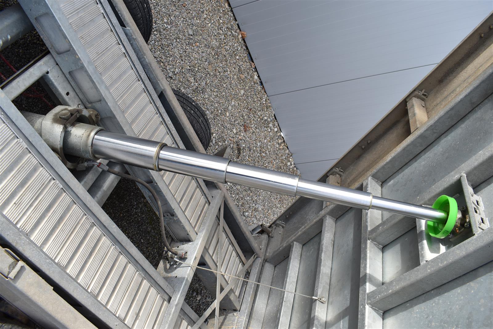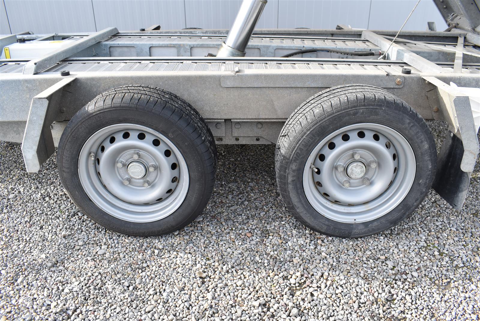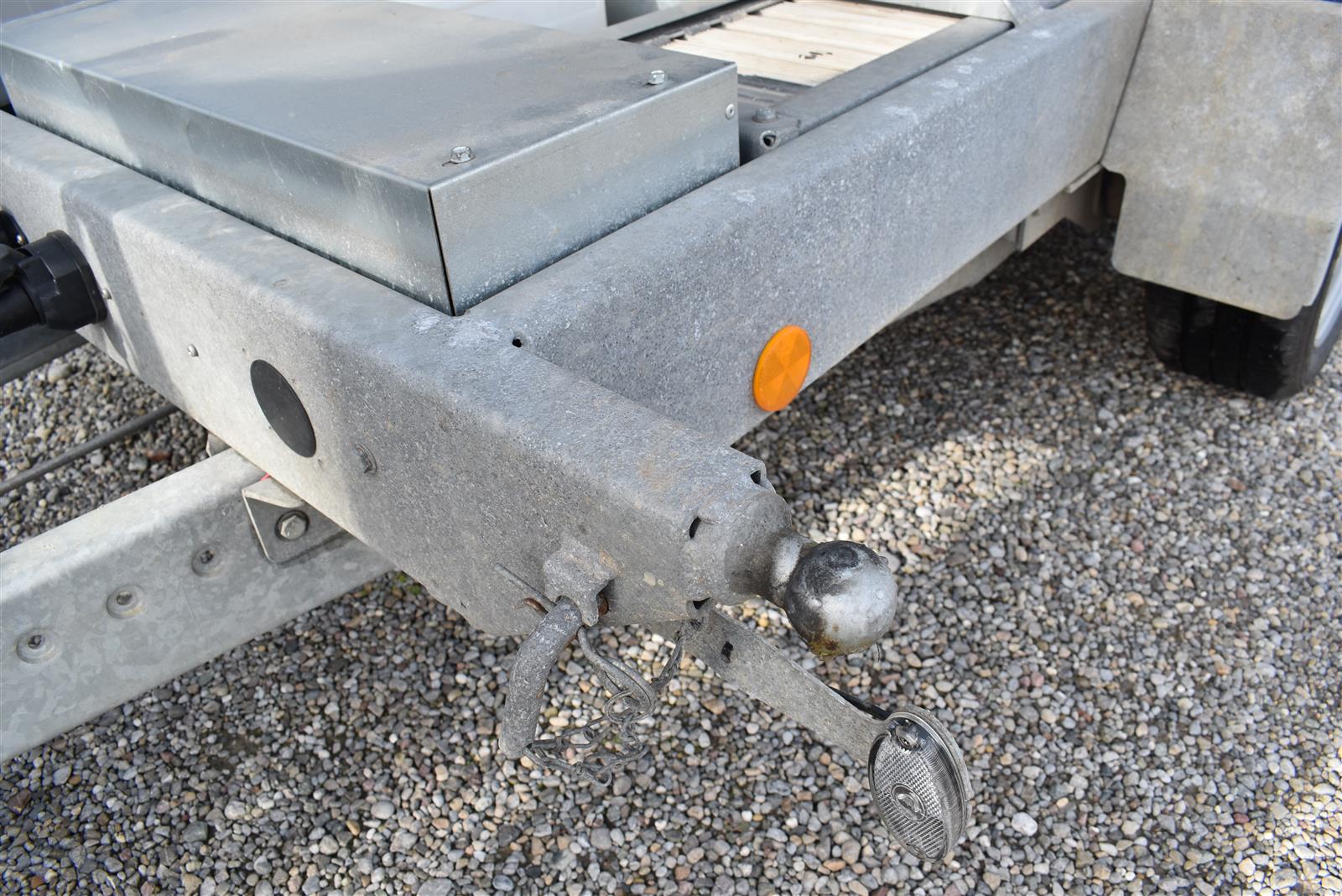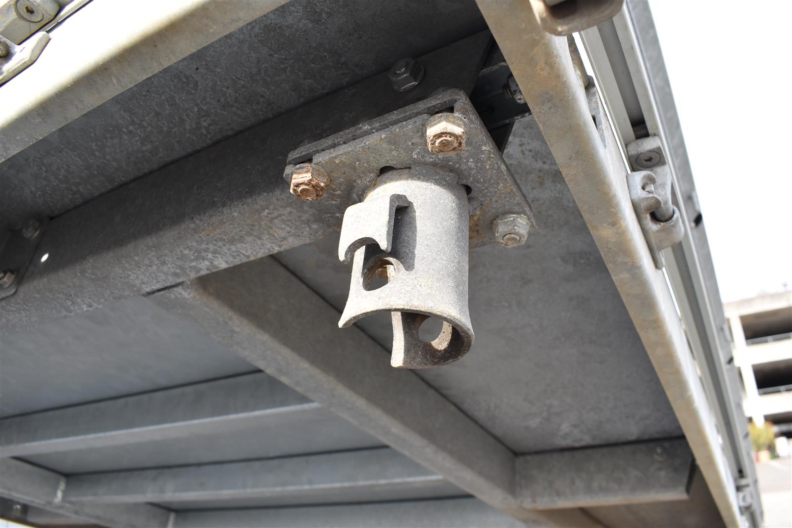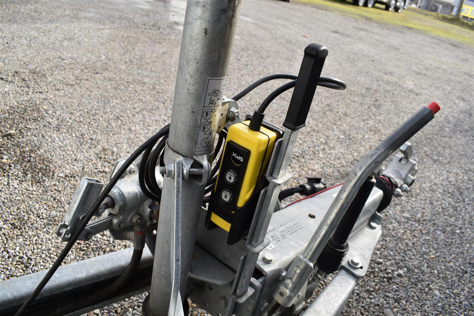 - (2 Alu-Auffahrrampen 2'560x280 mm, Tragkraft bei Achsabstand 1m=2'600kg und bei 1.5m =2'850kg, Einschubfach für Auffahrrampen, elektrische Pumpe mit Nothandpumpe und batterie, Ladeleitung mit Batterie, Abstellstützen am Heck,), Aluboden, Alu-Seitenläden (350 mm abklappbar), Binderinge (seitlich versenkbar), Heckladen pendelnd