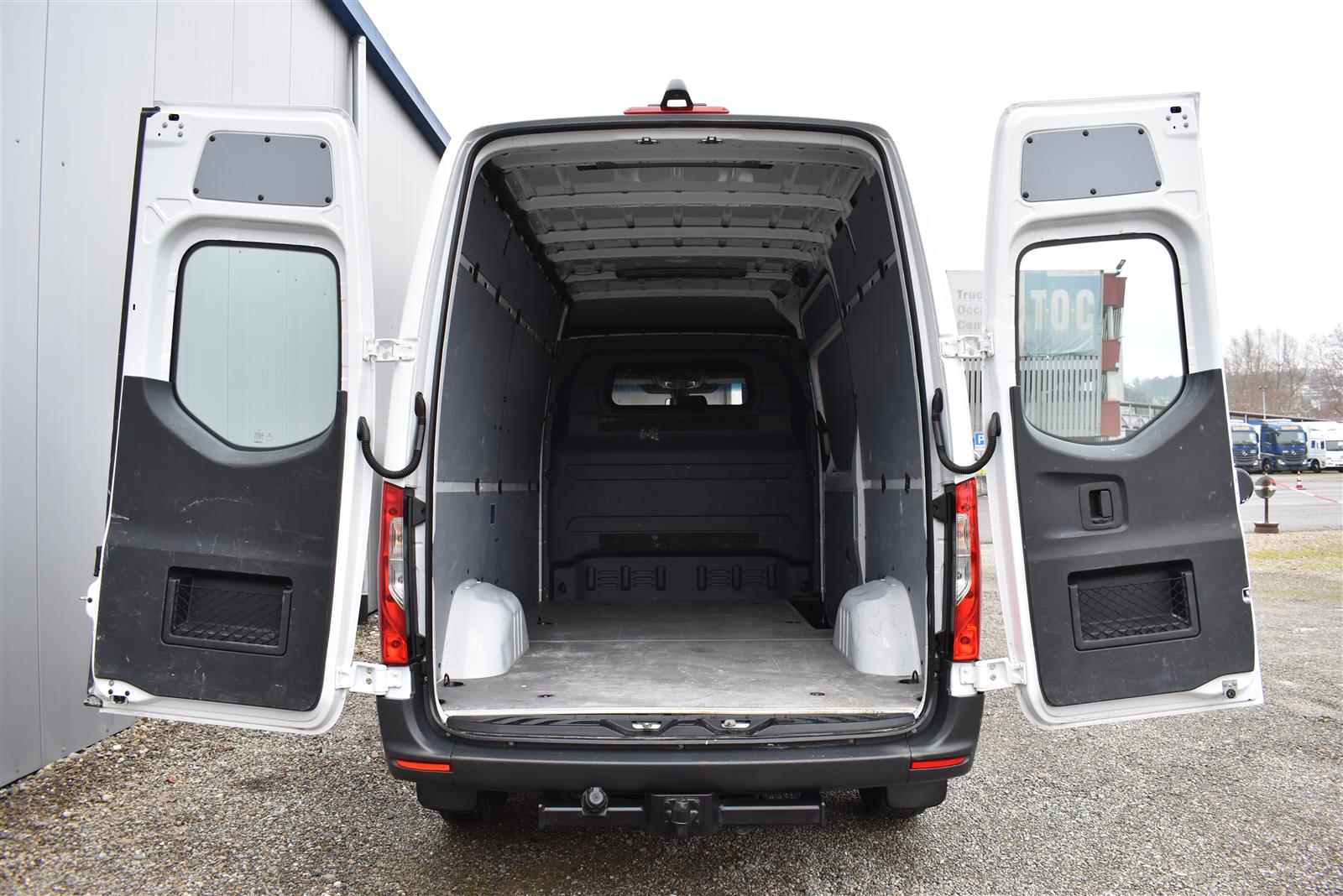 Klimaanlage, ABS, ASR, elektrische Fensterheber, Spiegel elektrisch verstellbar, Spiegelheizung, Zentralverriegelung (mit Funkfernbedienung), 3 Sitze vorne, Airbag Fahrer, Anhängerkupplung (mit 3'500 kg Anhängelast), ESP, Heckflügeltüren (mit Fenster), Holzfussboden, Multifunktionslenkrad, Rückfahrkamera, Schiebetüre rechts, Trennwand durchgehend (mit Fenster)