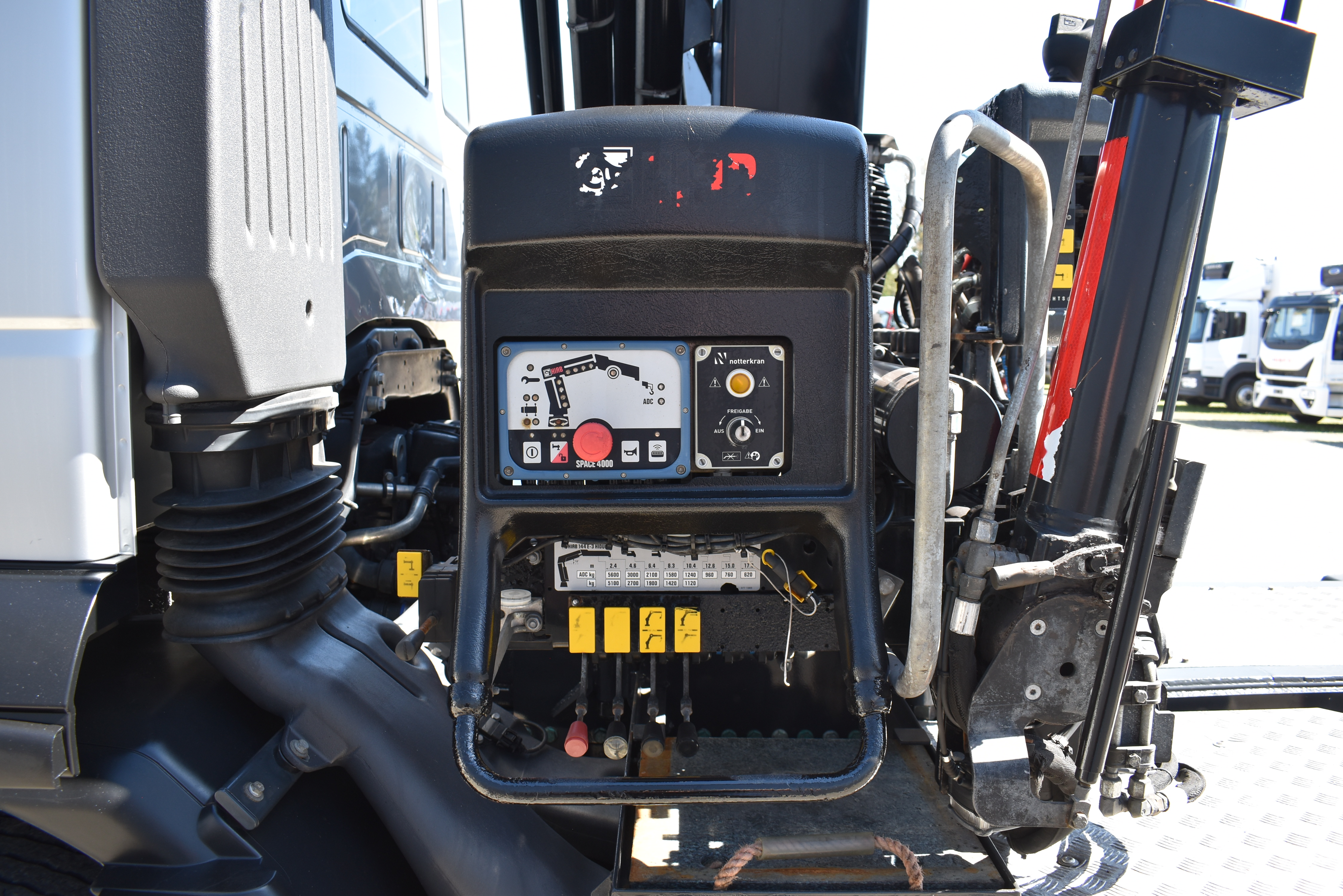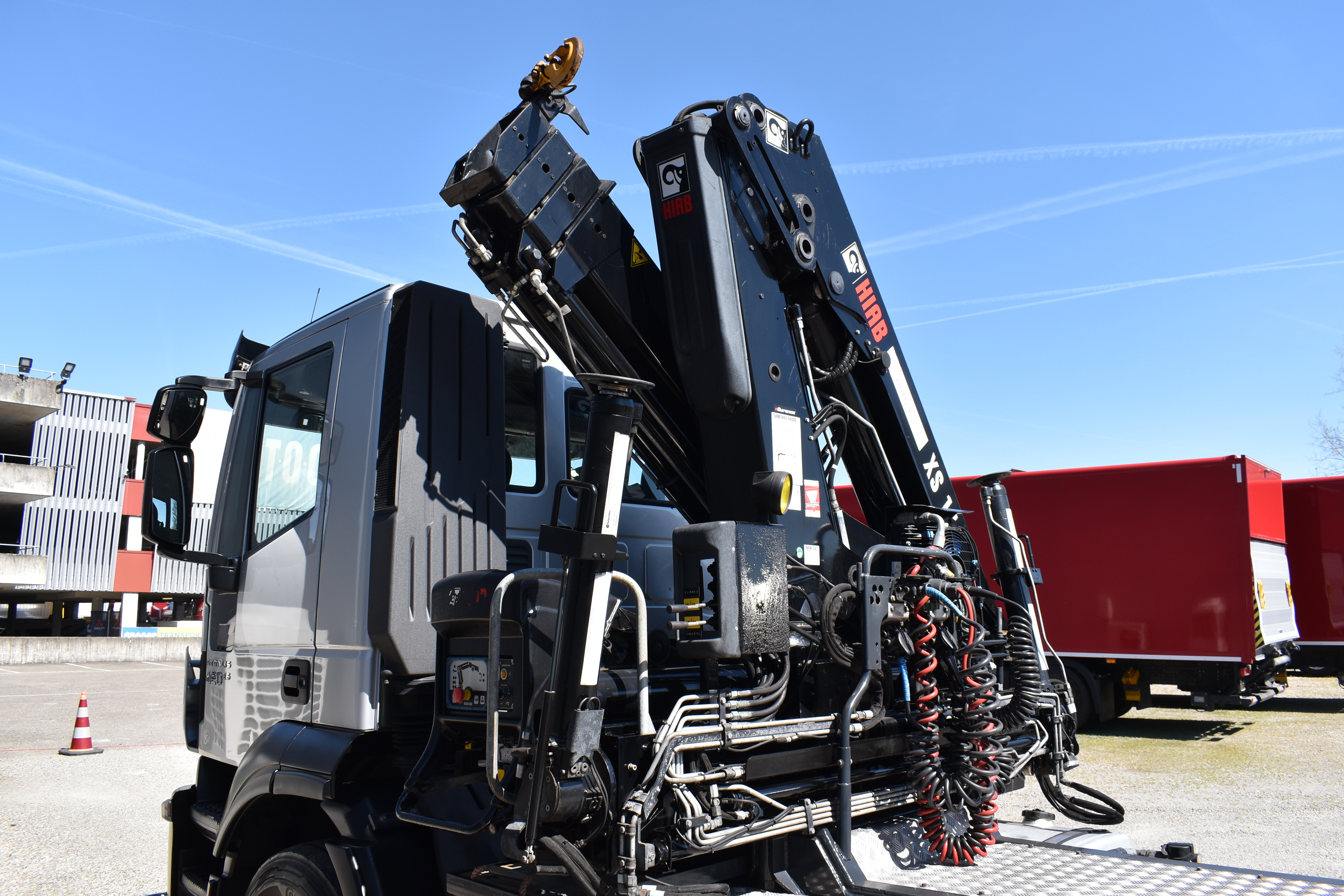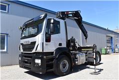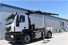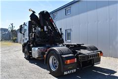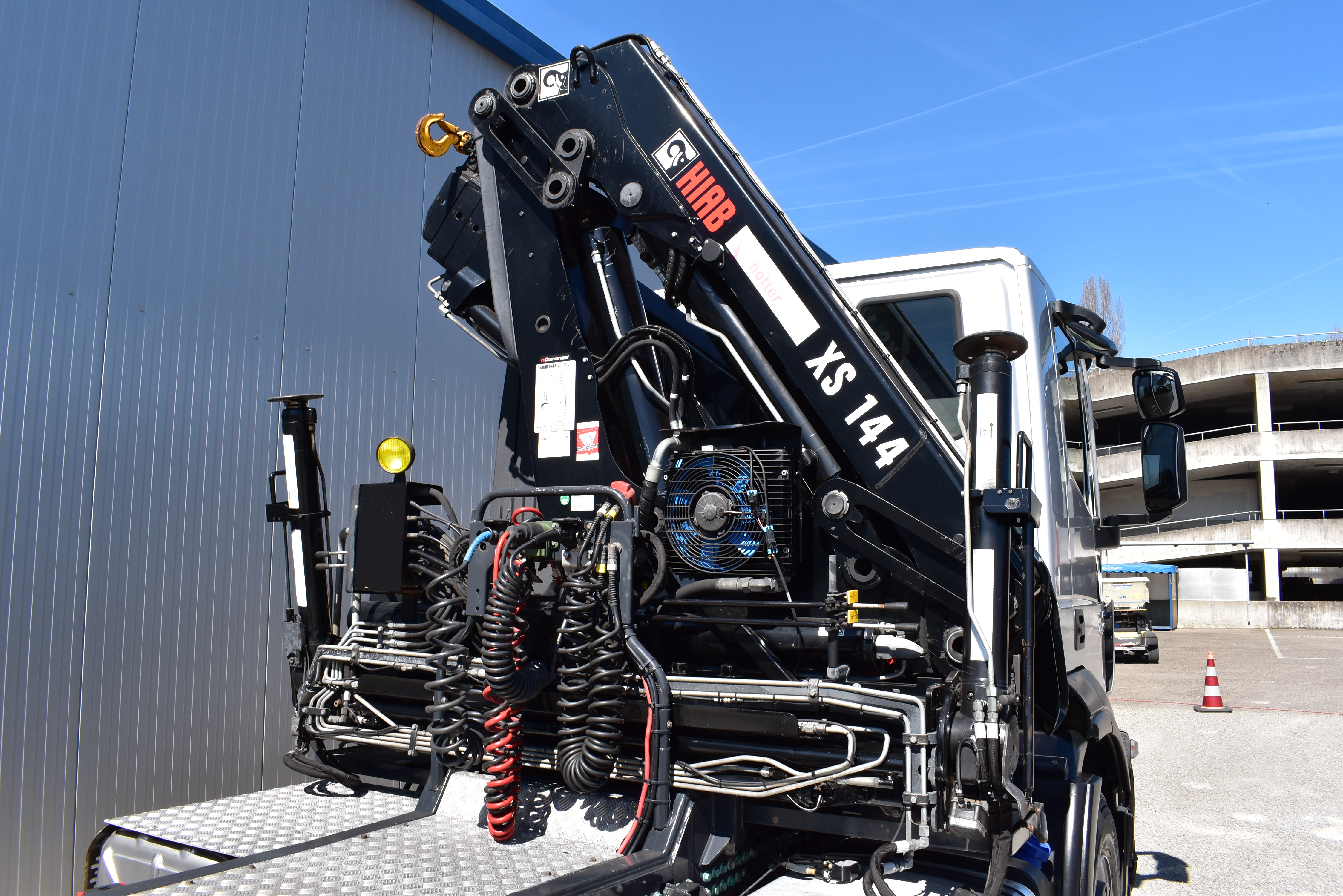 Retarder, Kran (Hiab 144 E-3 HiDuo mit Funkfernbedienung), Krandaten (2 hydr. Abstützungen,3 hydr. Ausschübe, max. Hubkraft 5'100 kg, max. Reichweite 10.40m), Hydraulik, Tempomat, Klimaanlage, Duomatic-Anschluss, ABS, ASR, elektrische Fensterheber, Spiegel elektrisch verstellbar, Spiegelheizung, Luftfederung Hinterachse, Nebenantrieb, Scheibenbremsen, Differentialsperre, Zentralverriegelung (mit Funkfernbedienung), AdBlue-Tank, Aluminiumtank, Anfahrassistent, Digital-Tacho, Fenster in Kabinenrückwand, Multifunktionslenkrad, Radio Media mit Bluetooth, Sitzheizung |