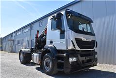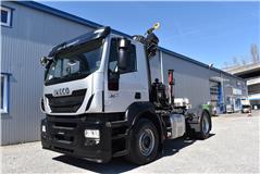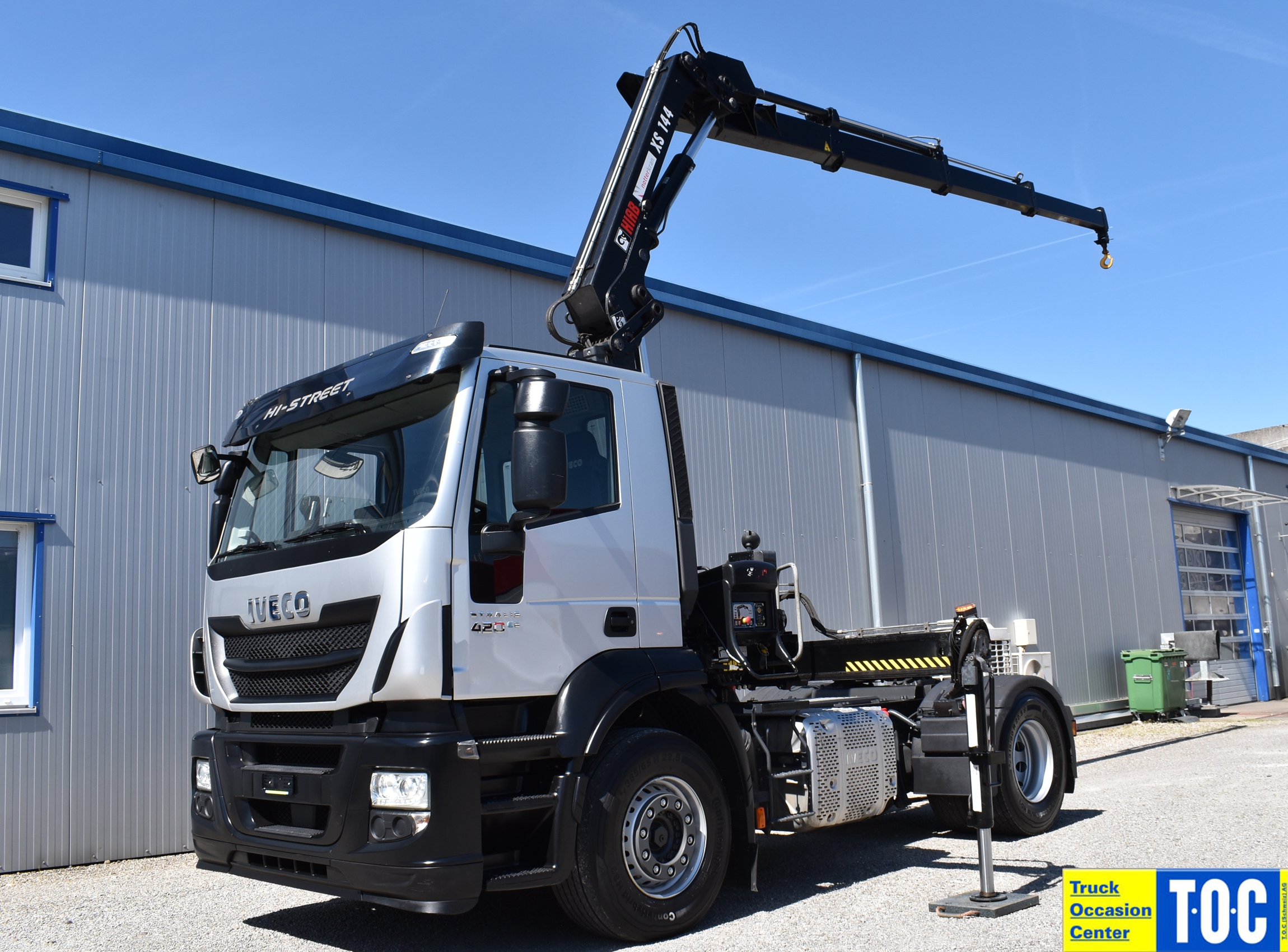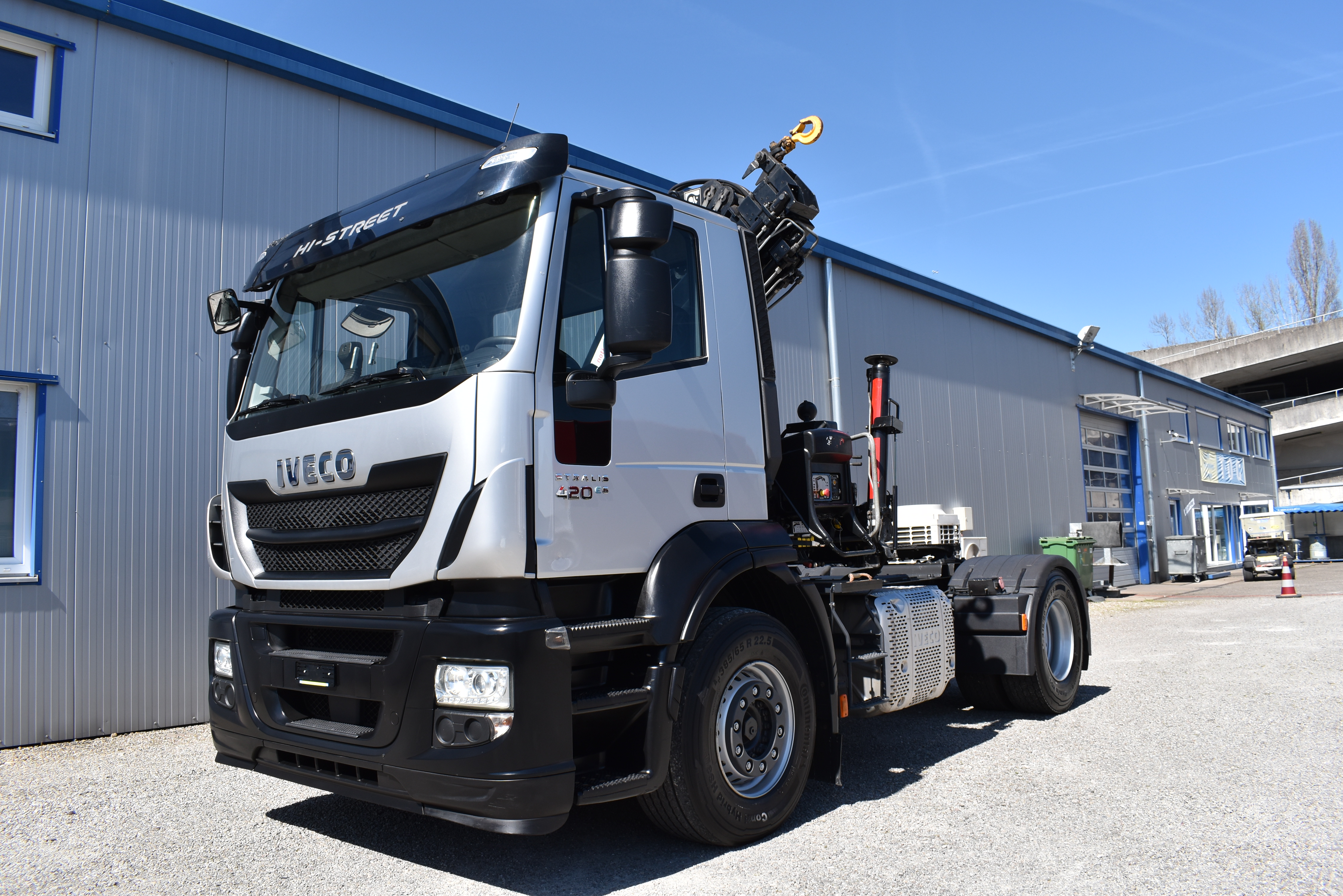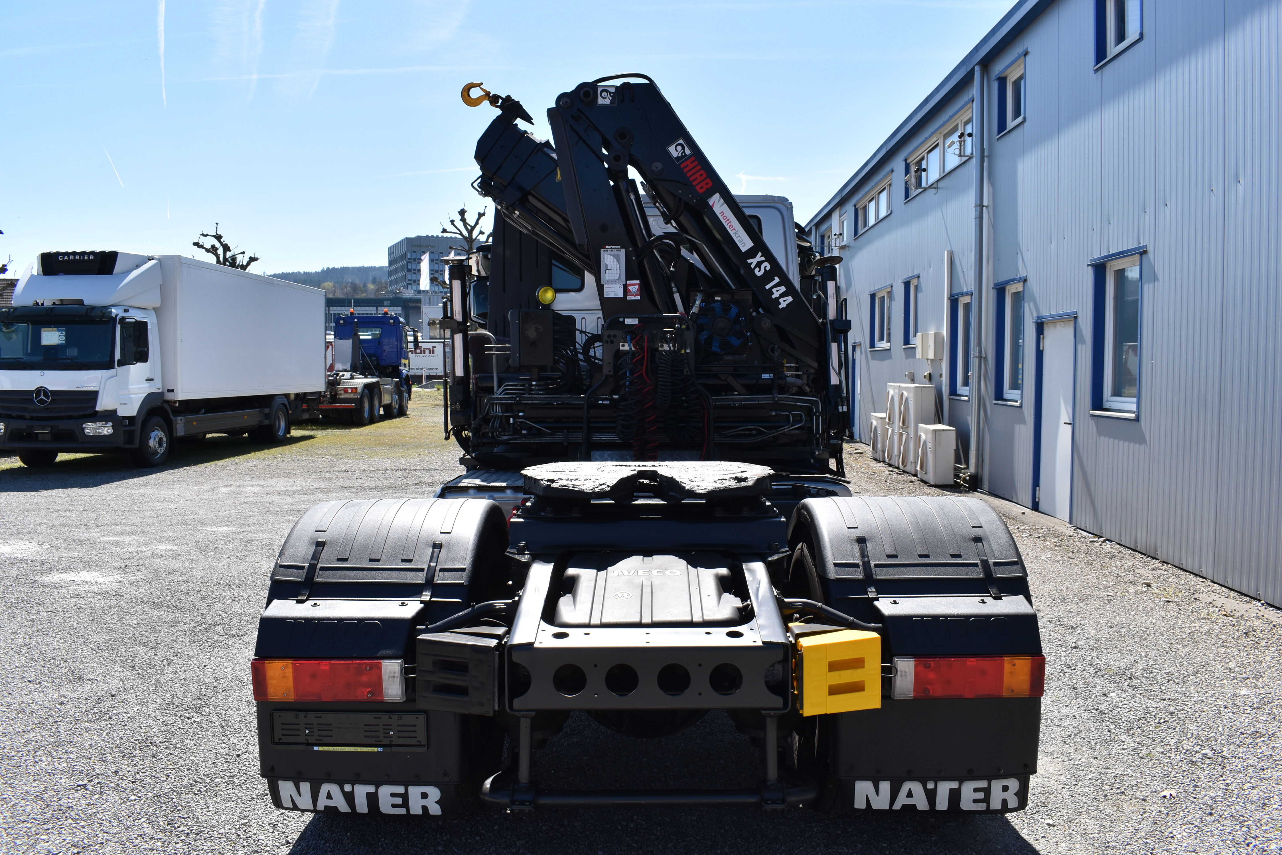 Retarder, Kran (Hiab 144 E-3 HiDuo mit Funkfernbedienung), Krandaten (2 hydr. Abstützungen,3 hydr. Ausschübe, max. Hubkraft 5'100 kg, max. Reichweite 10.40m), Hydraulik, Tempomat, Klimaanlage, Duomatic-Anschluss, ABS, ASR, elektrische Fensterheber, Spiegel elektrisch verstellbar, Spiegelheizung, Luftfederung Hinterachse, Nebenantrieb, Scheibenbremsen, Differentialsperre, Zentralverriegelung (mit Funkfernbedienung), AdBlue-Tank, Aluminiumtank, Anfahrassistent, Digital-Tacho, Fenster in Kabinenrückwand, Multifunktionslenkrad, Radio Media mit Bluetooth, Sitzheizung |