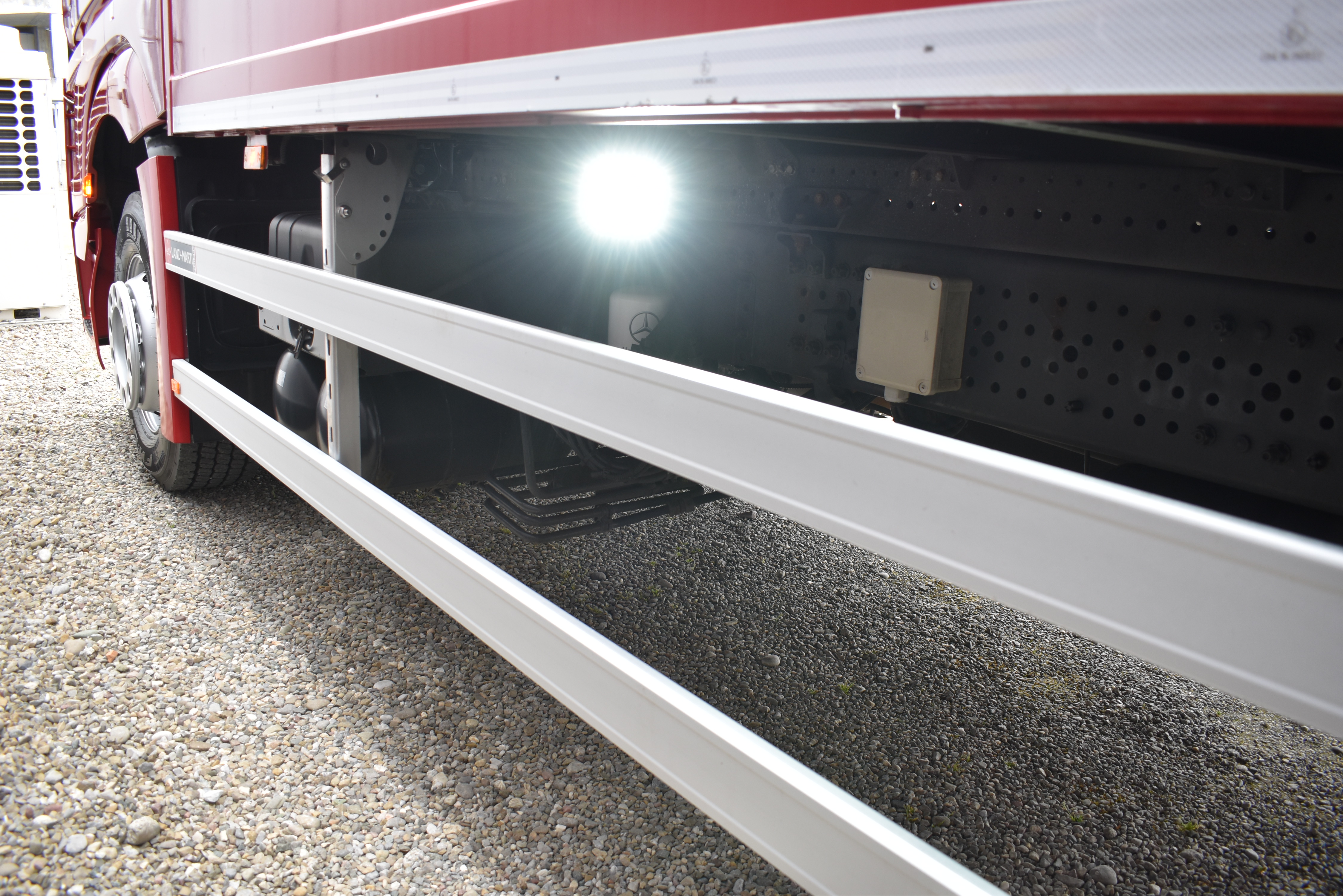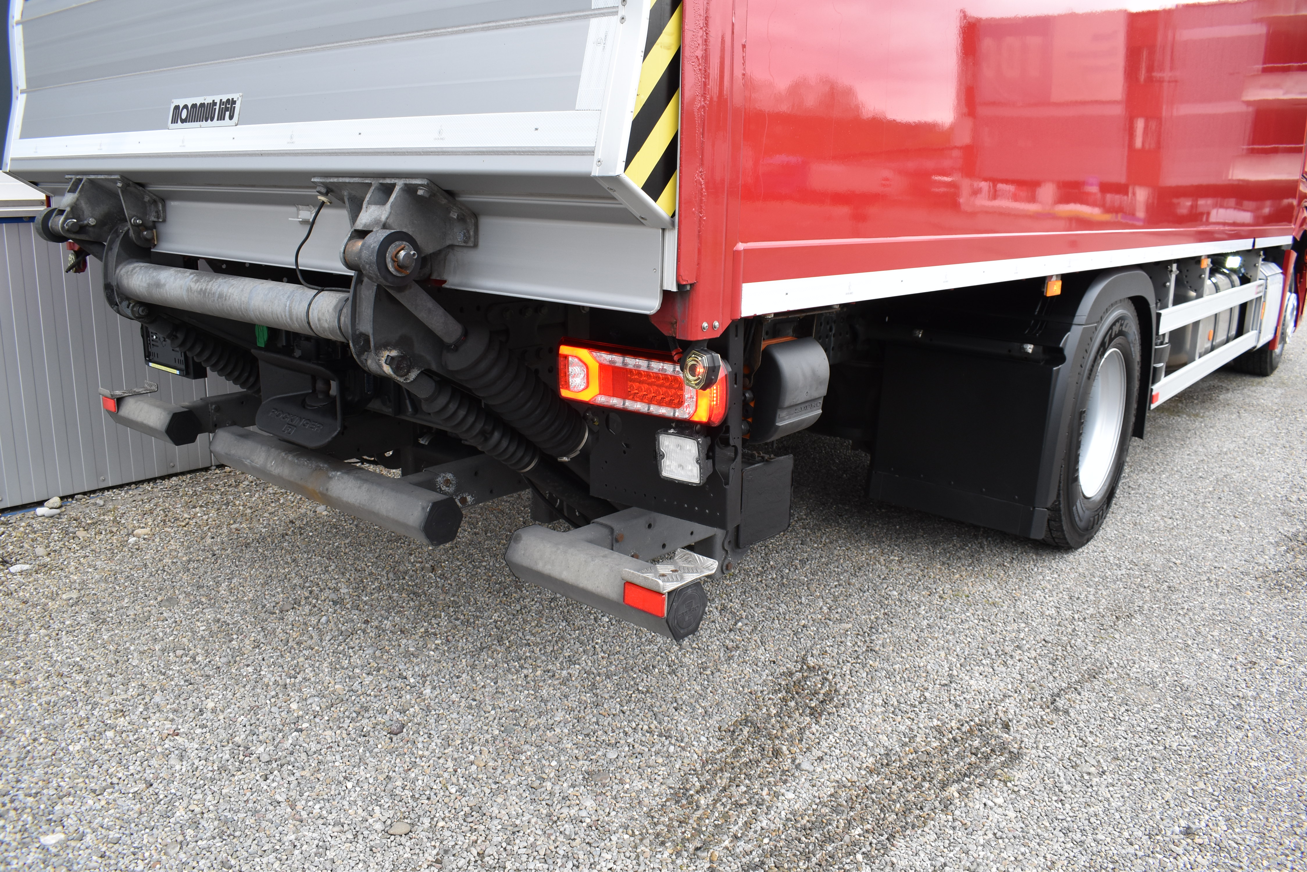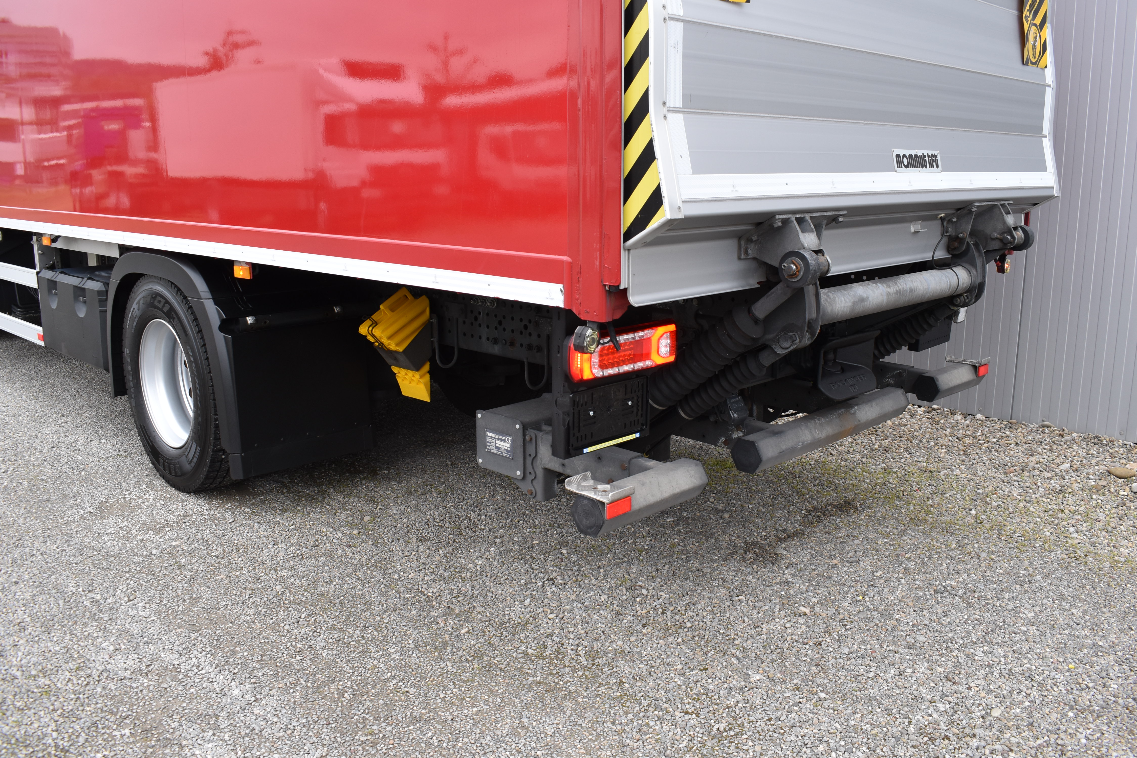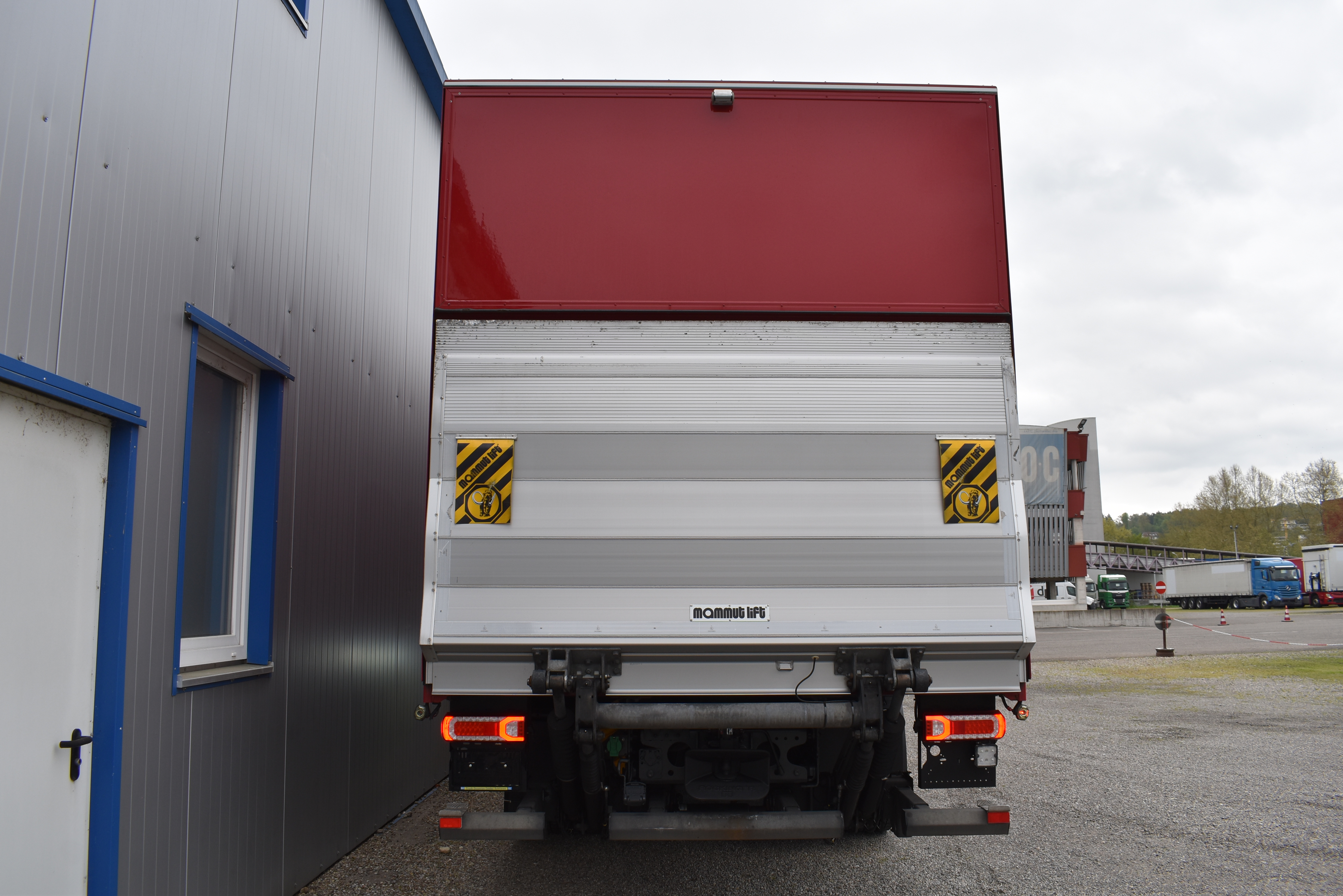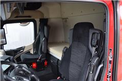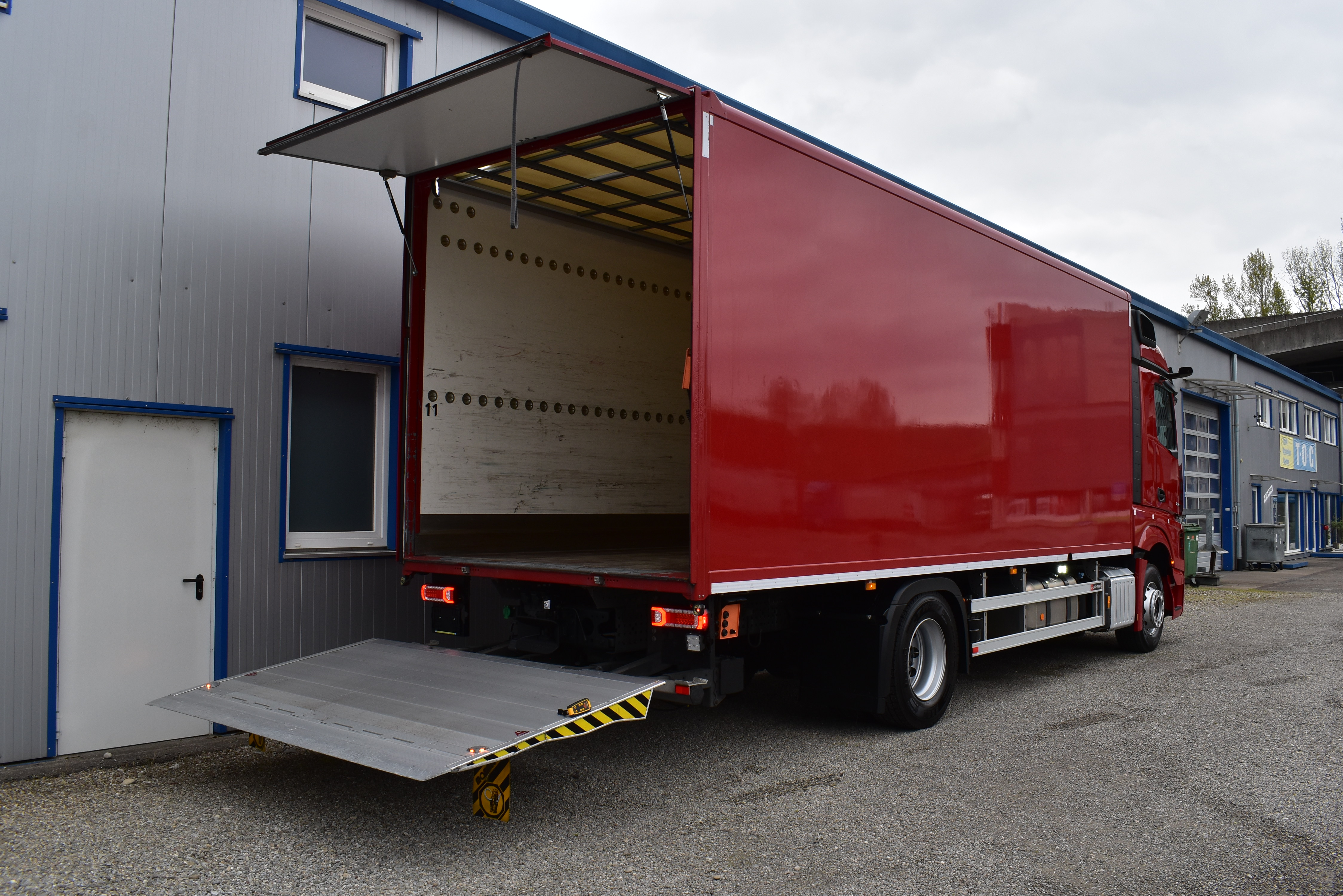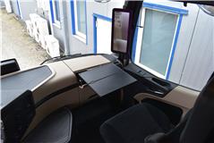 Klimaautomatik, Standheizung, EU-Bremsen, Duomatic-Anschluss, ABS, ASR, elektrische Fensterheber, Motorbremse, Vollluftfederung, HB-Blatt (1'600 mm mit Funkfernbedienung), Scheibenbremsen, Zentralverriegelung (mit Funkfernbedienung), 1 Liege, Abstandsregeltempomat, AdBlue-Tank, Airbag Fahrer, Aluminiumtank, Anfahrassistent, Anhängerkupplung (Rockinger), Beifahrersitz (klappbar), Digital-Tacho, ESP, Hebebühne (Mammut mit 2'000 kg Tragkraft), Holzfussboden, Licht- und Regensensor, Lochschienen (5 Stück in Reihe längsgerichtet unter dem Dach), Multifunktionslenkrad, Navigationssystem, Sitzheizung, Spurassistent, Werkzeugkiste, Xenonscheinwerfer |