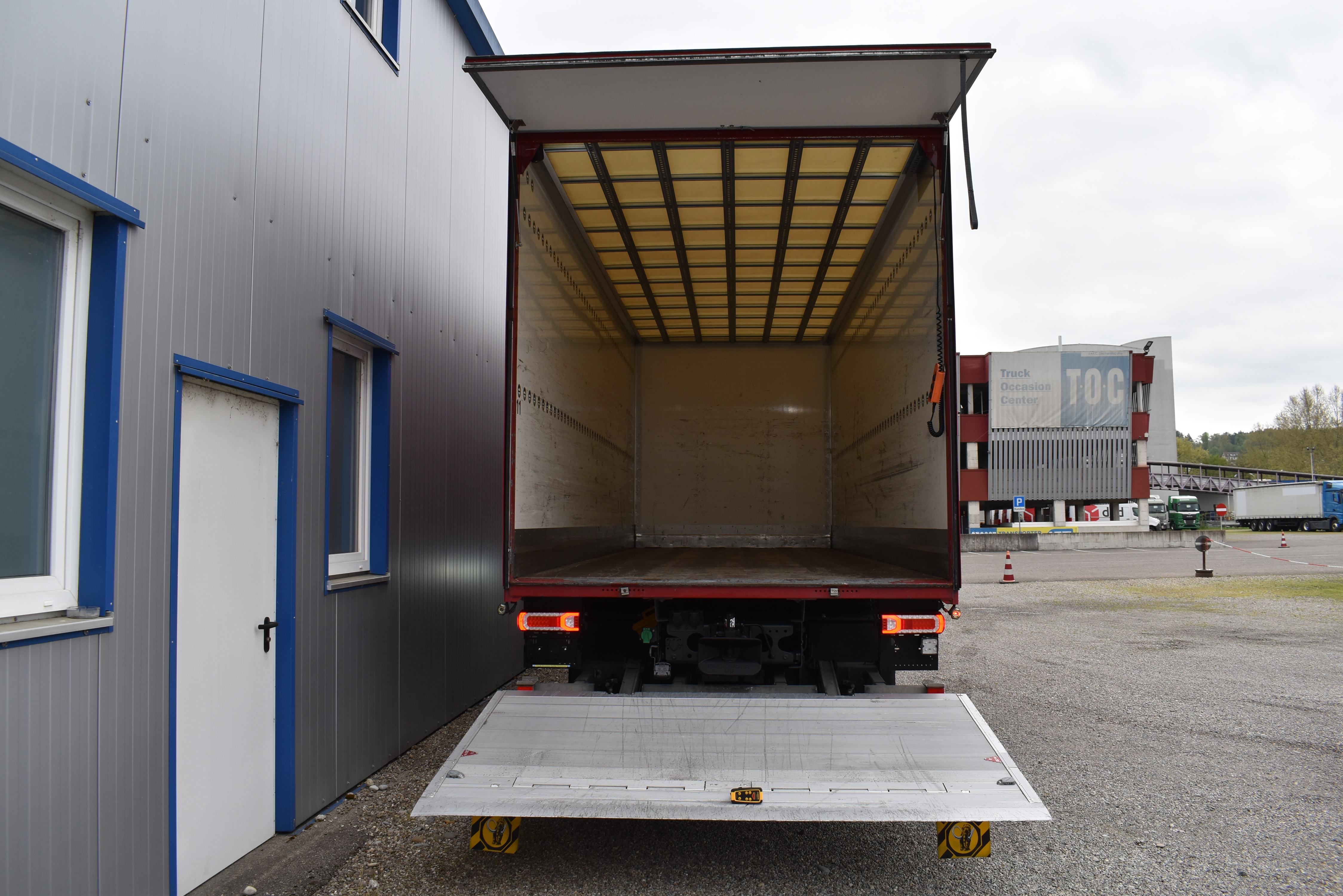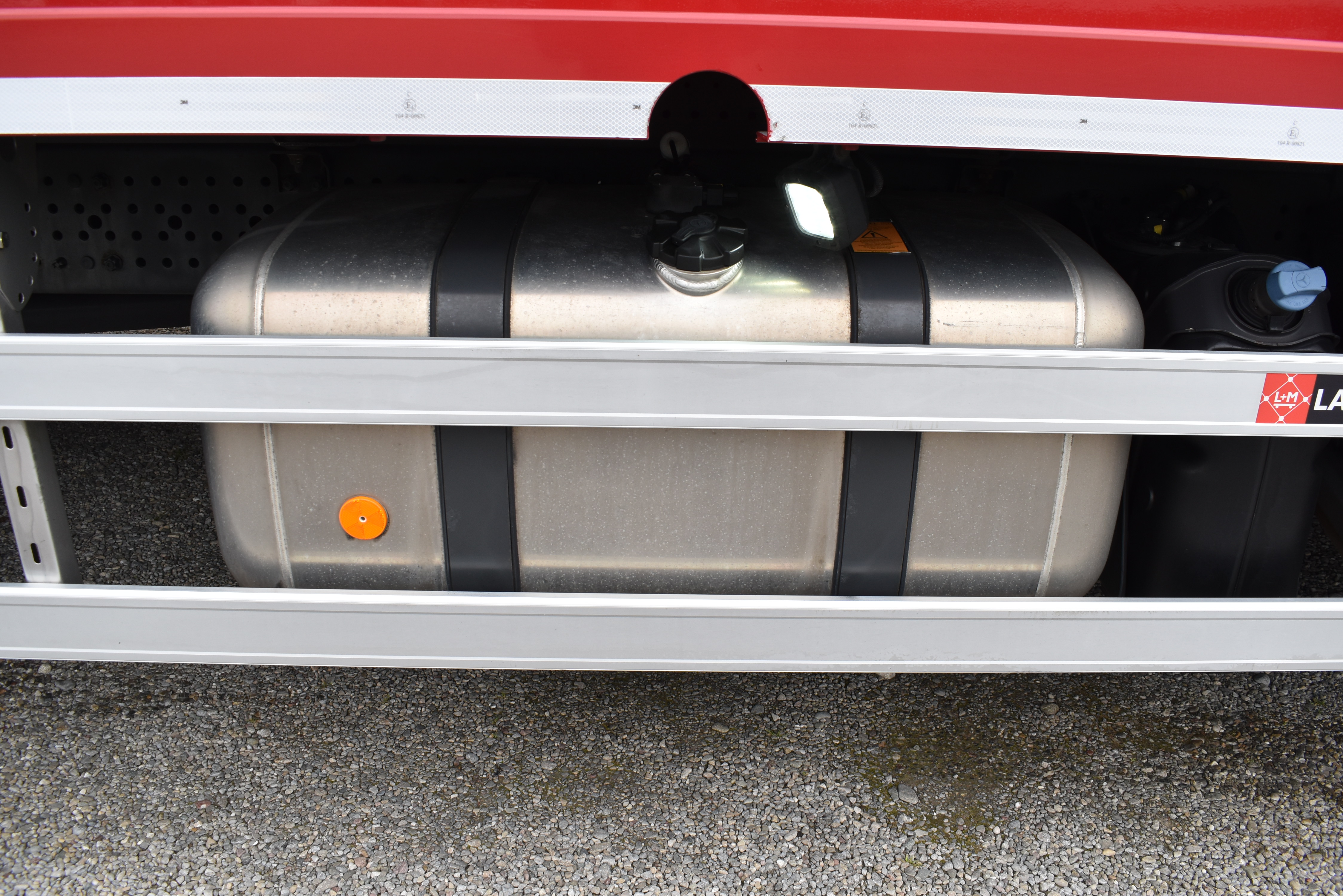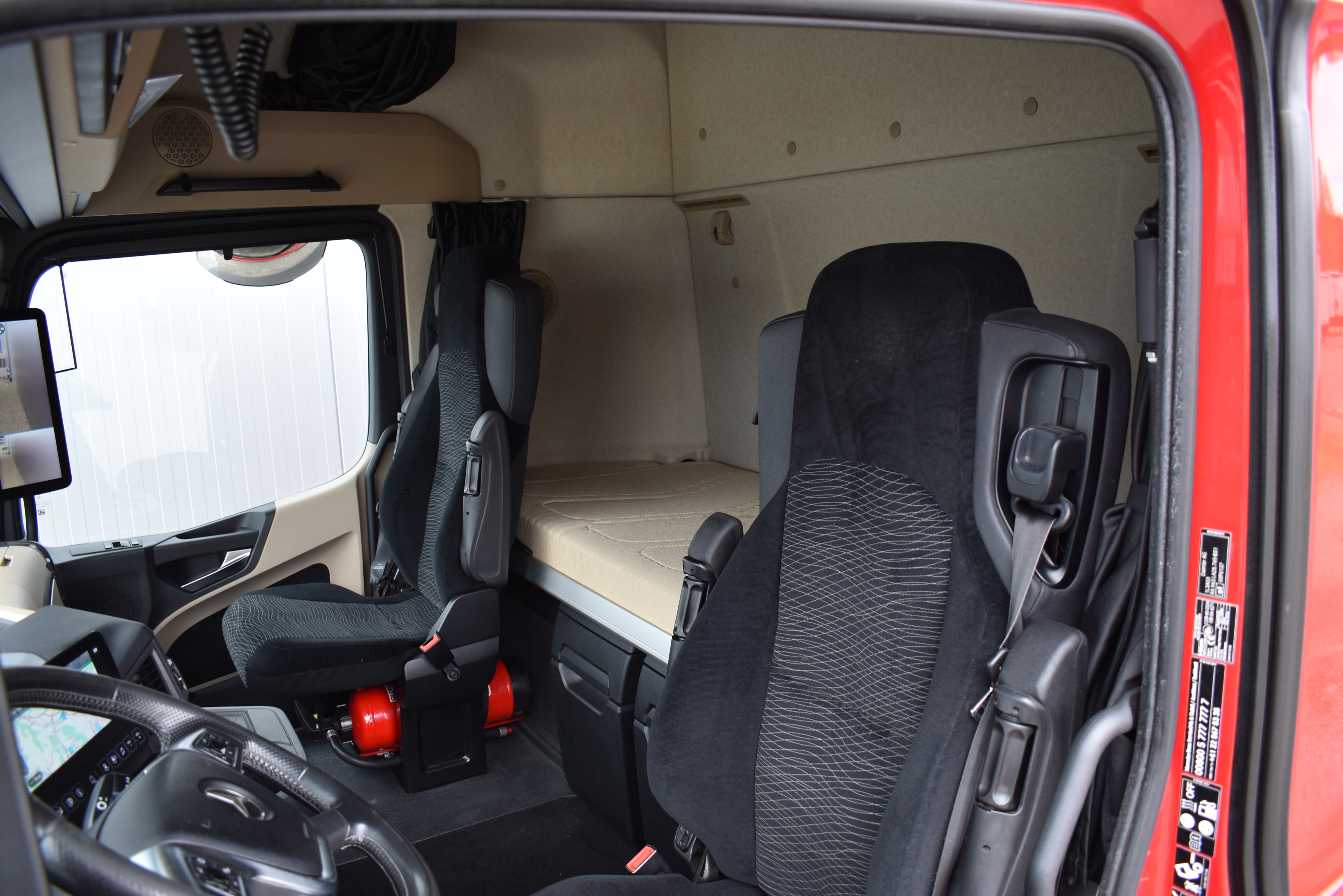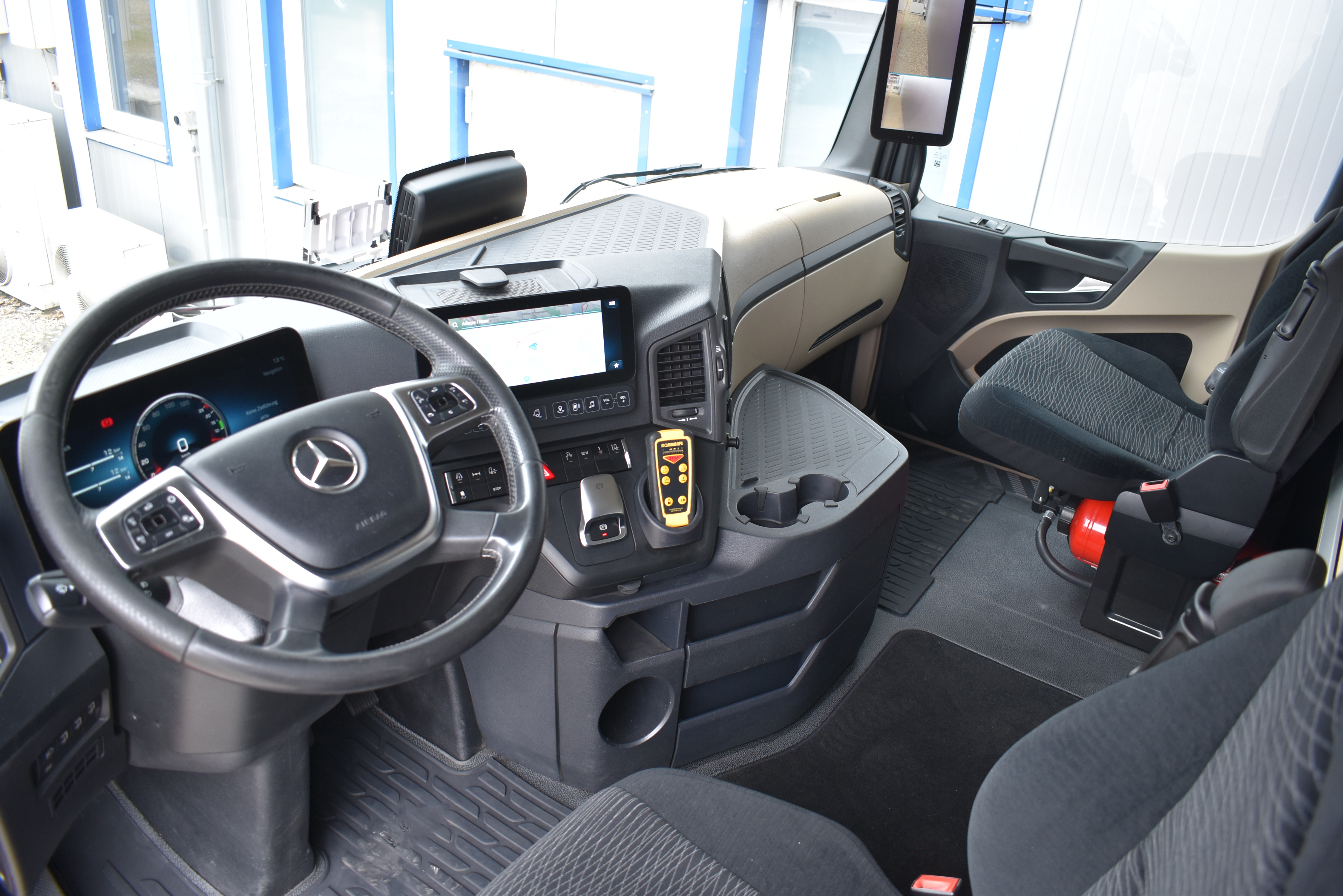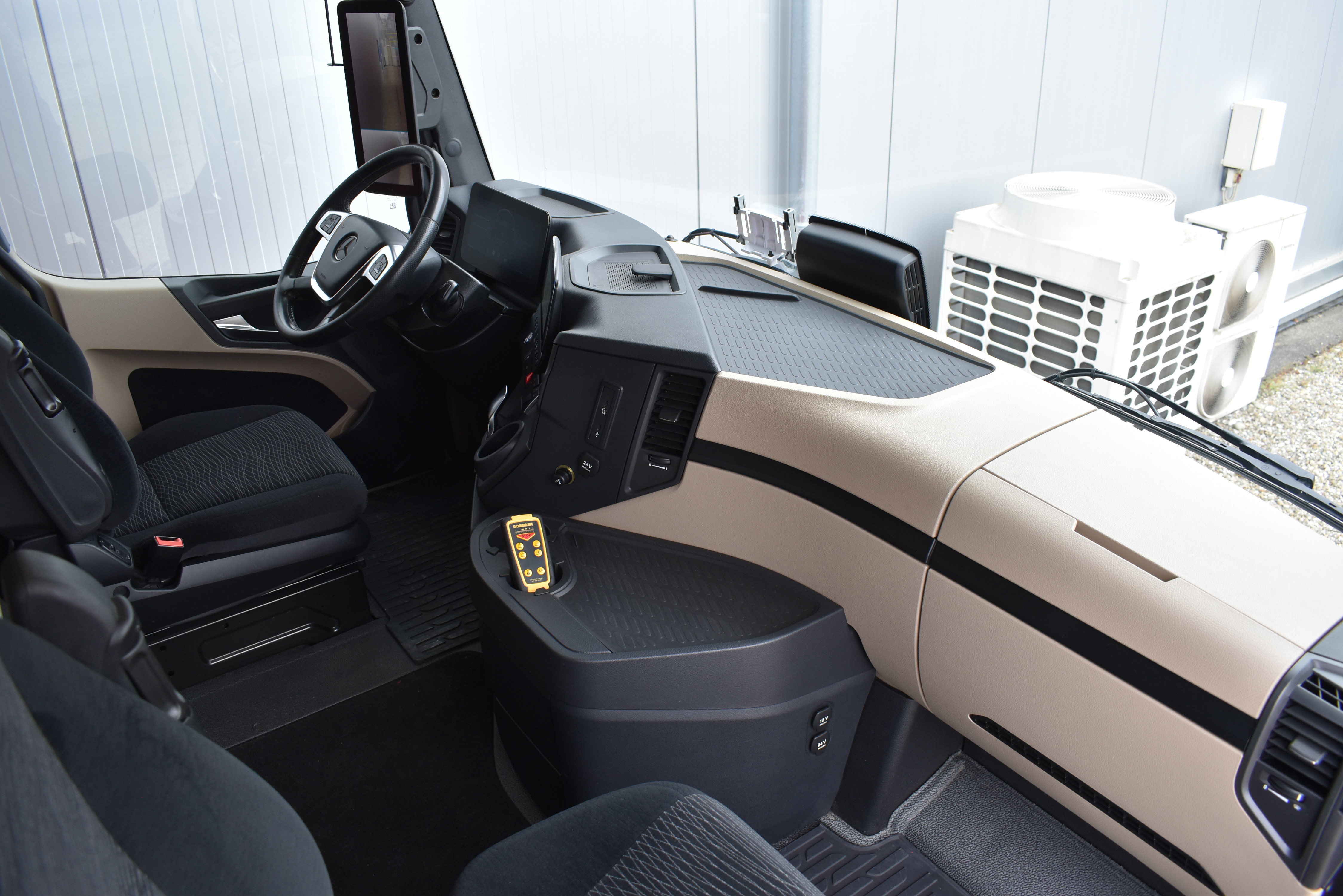 Klimaautomatik, Standheizung, EU-Bremsen, Duomatic-Anschluss, ABS, ASR, elektrische Fensterheber, Motorbremse, Vollluftfederung, HB-Blatt (1'600 mm mit Funkfernbedienung), Scheibenbremsen, Zentralverriegelung (mit Funkfernbedienung), 1 Liege, Abstandsregeltempomat, AdBlue-Tank, Airbag Fahrer, Aluminiumtank, Anfahrassistent, Anhängerkupplung (Rockinger), Beifahrersitz (klappbar), Digital-Tacho, ESP, Hebebühne (Mammut mit 2'000 kg Tragkraft), Holzfussboden, Licht- und Regensensor, Lochschienen (5 Stück in Reihe längsgerichtet unter dem Dach), Multifunktionslenkrad, Navigationssystem, Sitzheizung, Spurassistent, Werkzeugkiste, Xenonscheinwerfer |