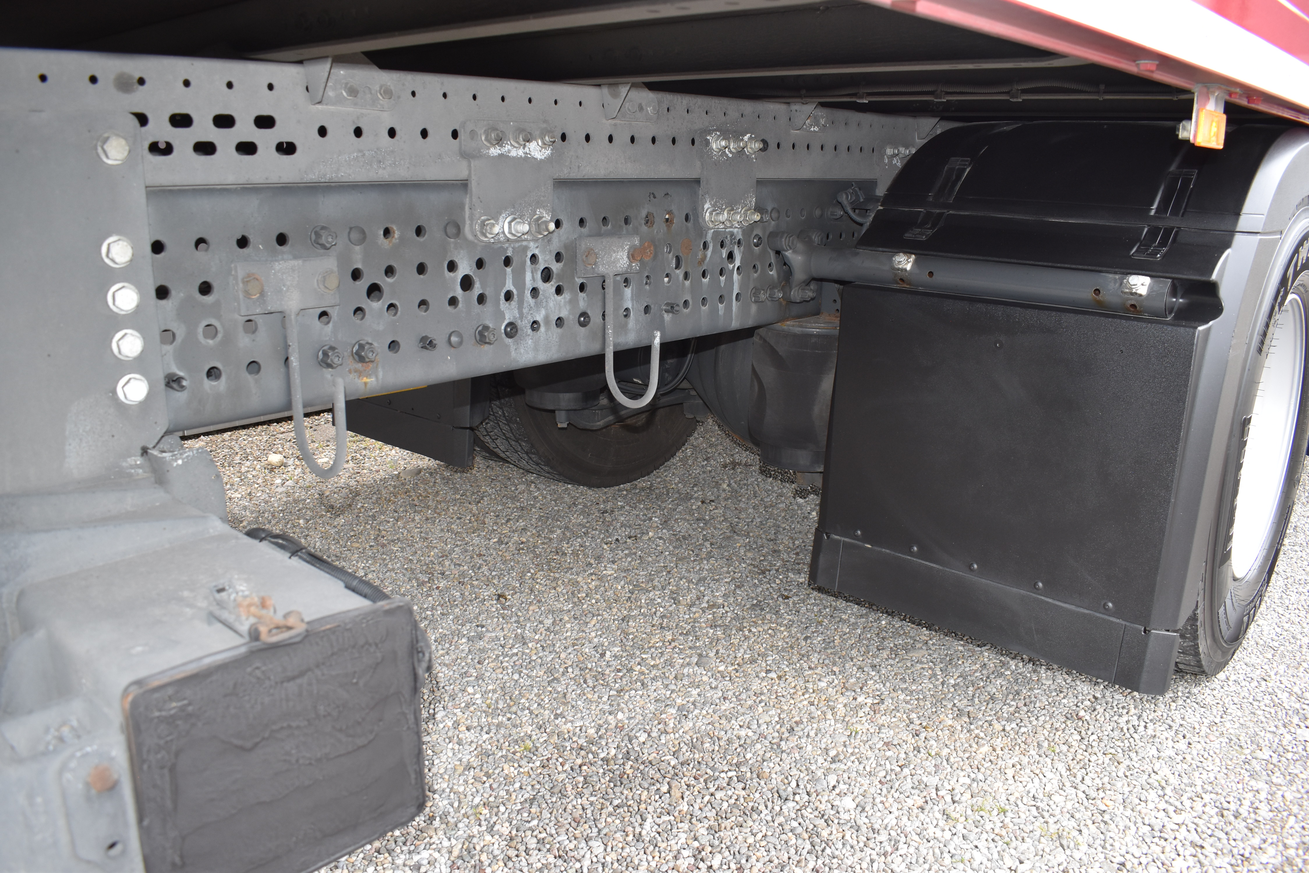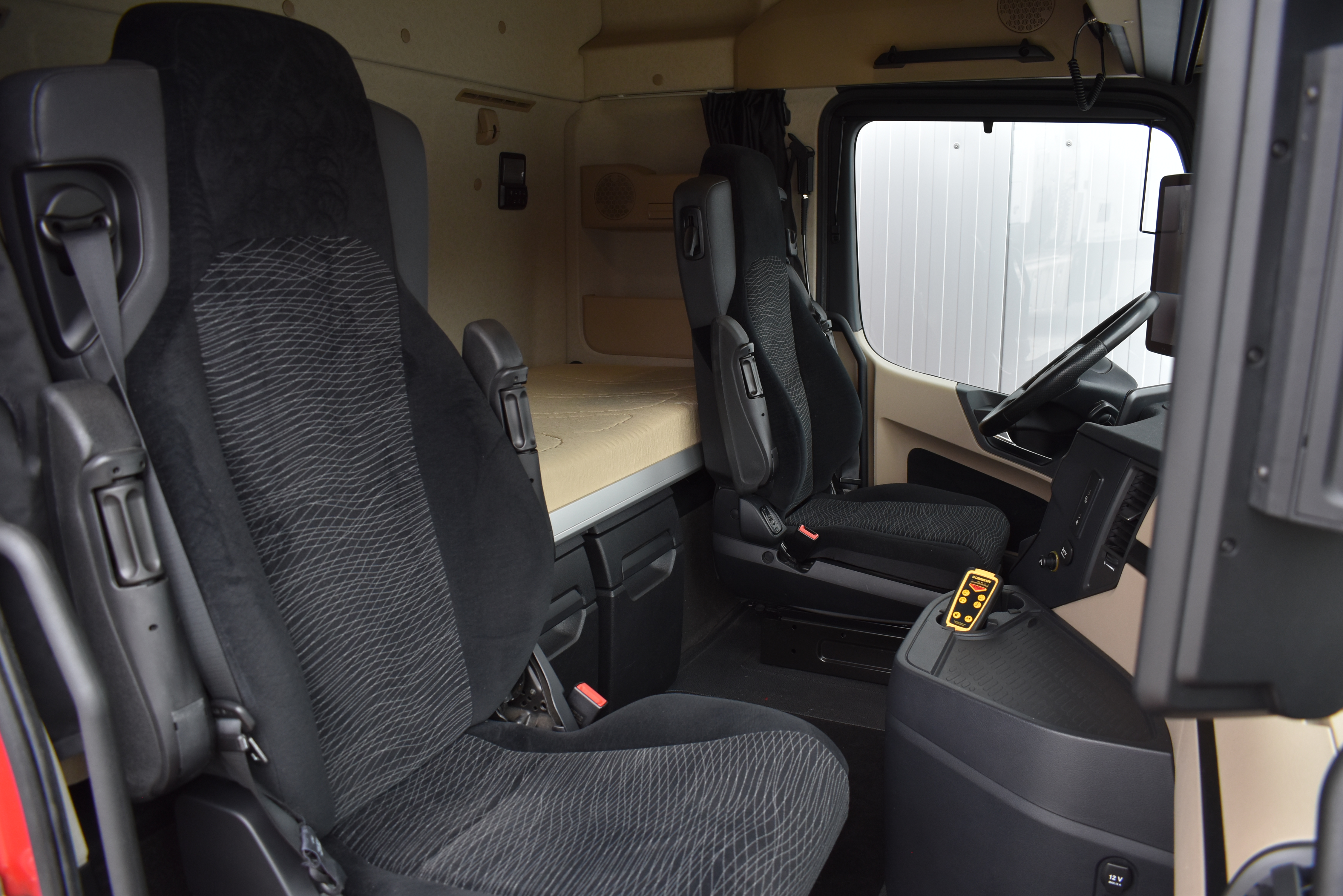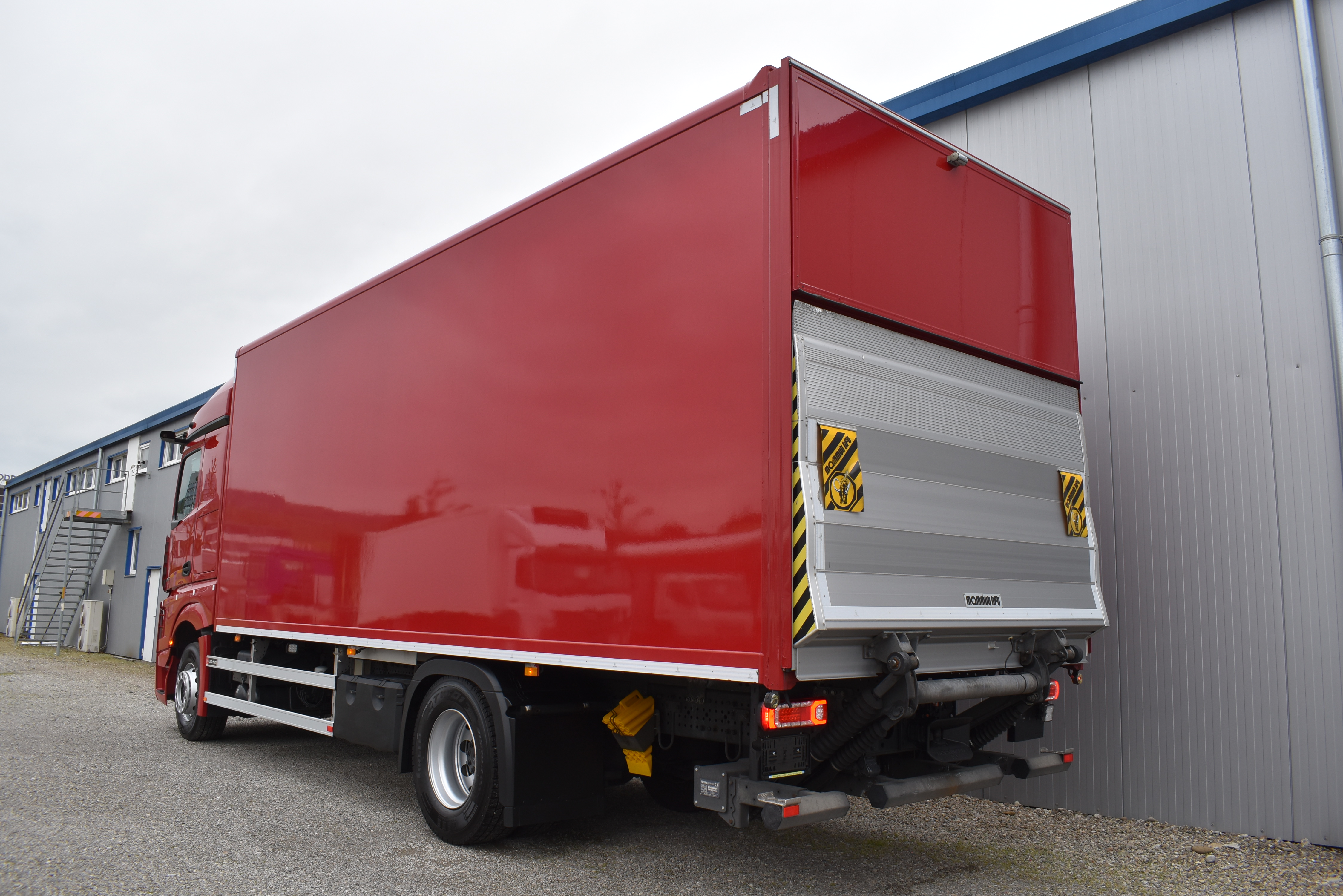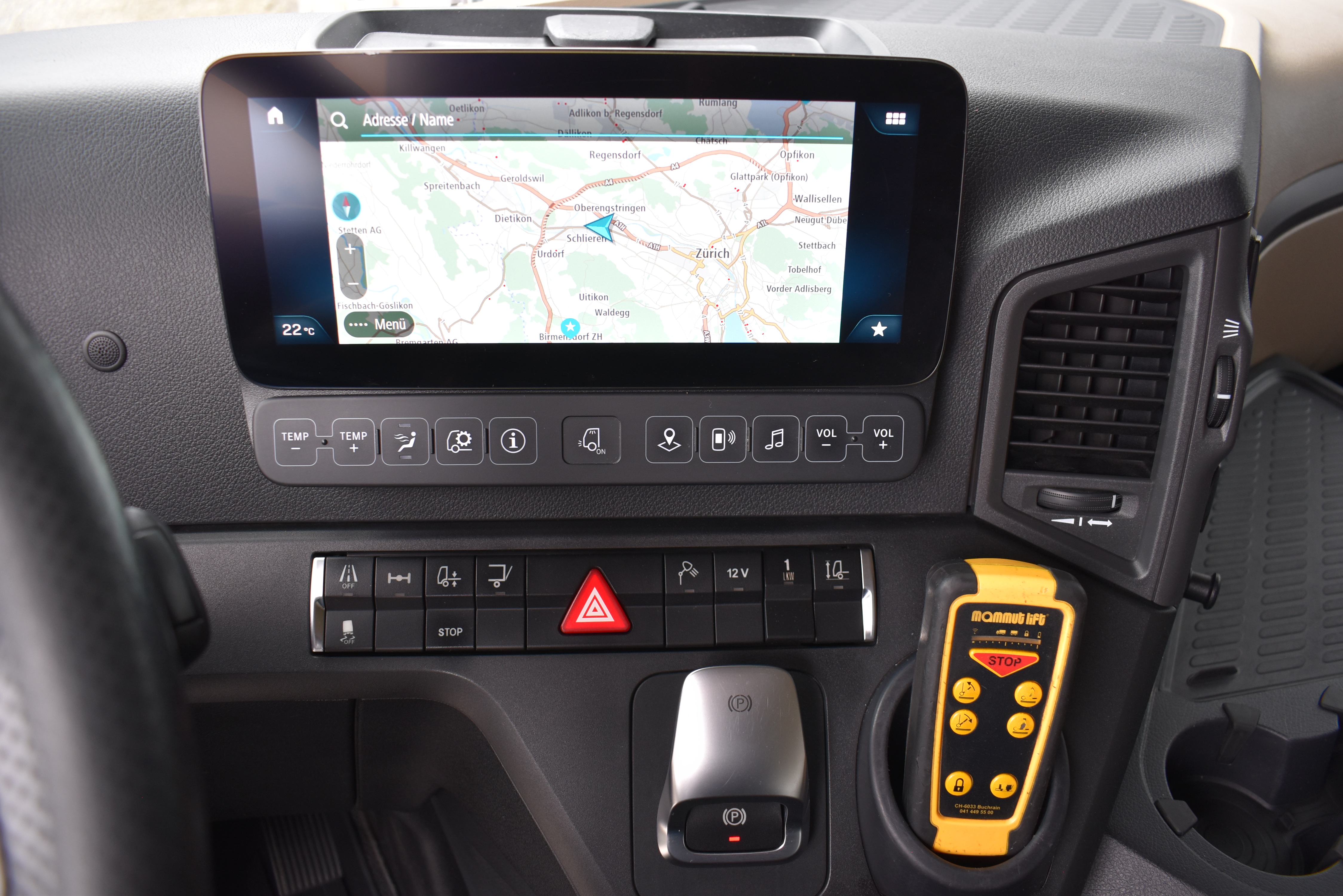 Klimaautomatik, Standheizung, EU-Bremsen, Duomatic-Anschluss, ABS, ASR, elektrische Fensterheber, Motorbremse, Vollluftfederung, HB-Blatt (1'600 mm mit Funkfernbedienung), Scheibenbremsen, Zentralverriegelung (mit Funkfernbedienung), 1 Liege, Abstandsregeltempomat, AdBlue-Tank, Airbag Fahrer, Aluminiumtank, Anfahrassistent, Anhängerkupplung (Rockinger), Beifahrersitz (klappbar), Digital-Tacho, ESP, Hebebühne (Mammut mit 2'000 kg Tragkraft), Holzfussboden, Licht- und Regensensor, Lochschienen (5 Stück in Reihe längsgerichtet unter dem Dach), Multifunktionslenkrad, Navigationssystem, Sitzheizung, Spurassistent, Werkzeugkiste, Xenonscheinwerfer |