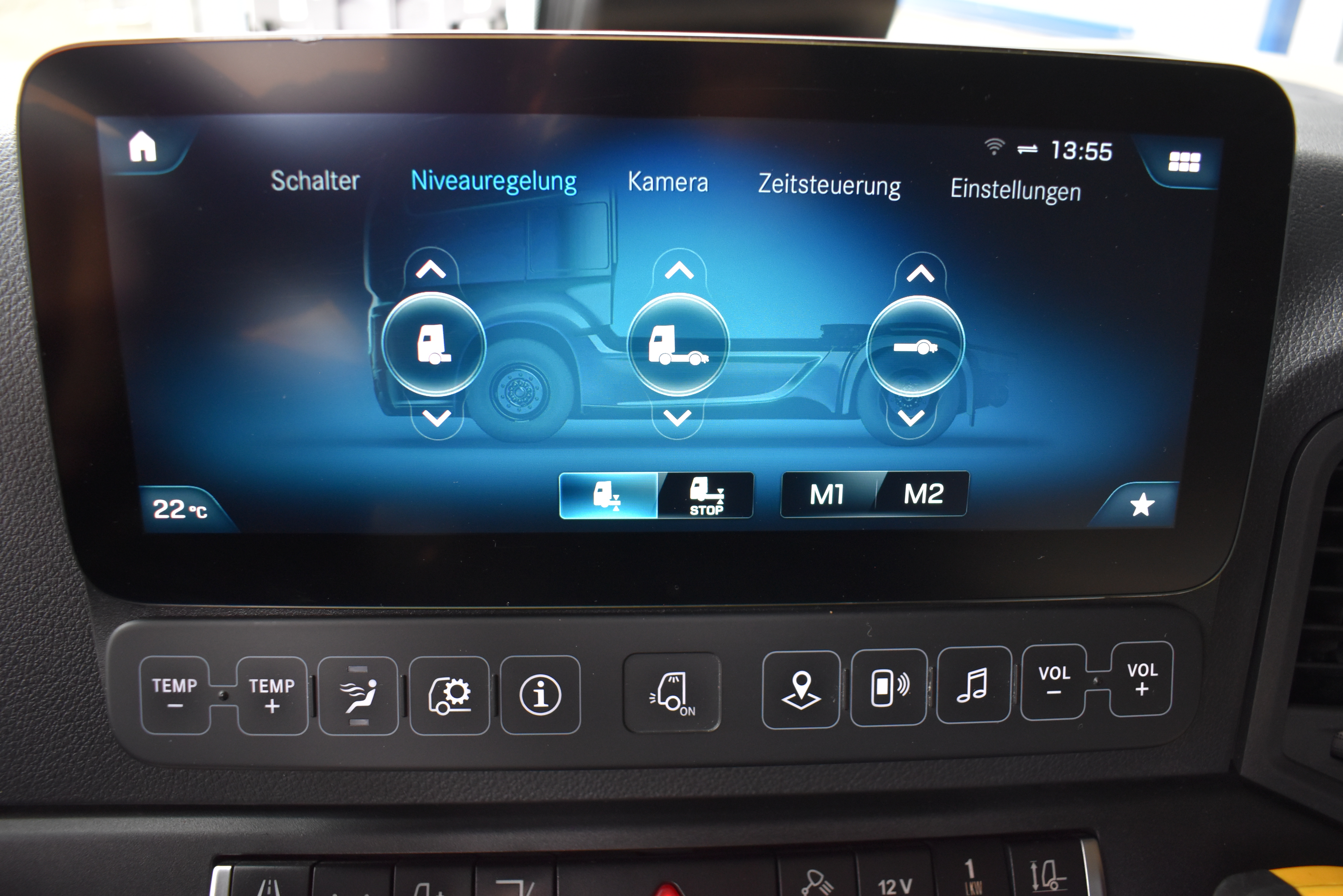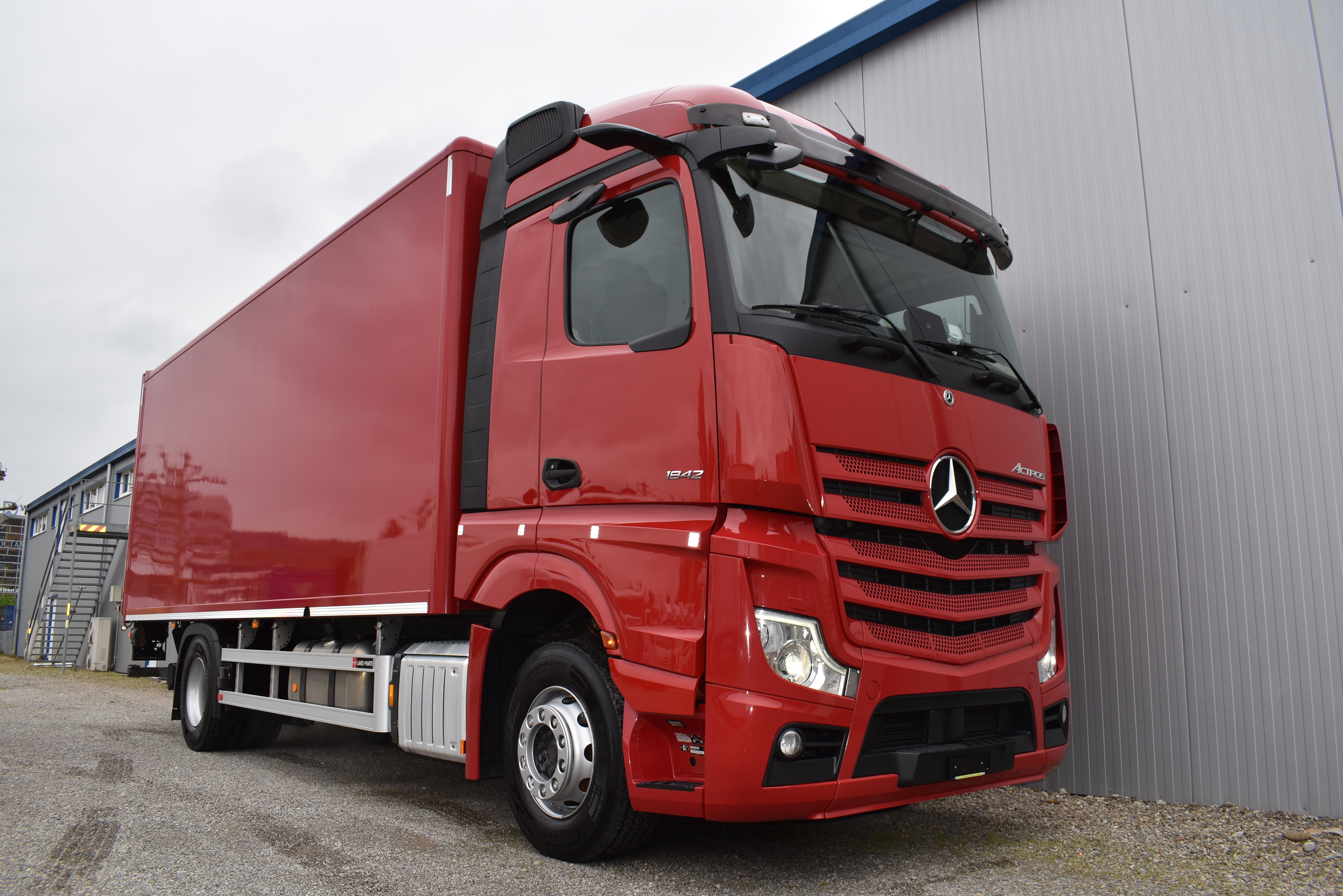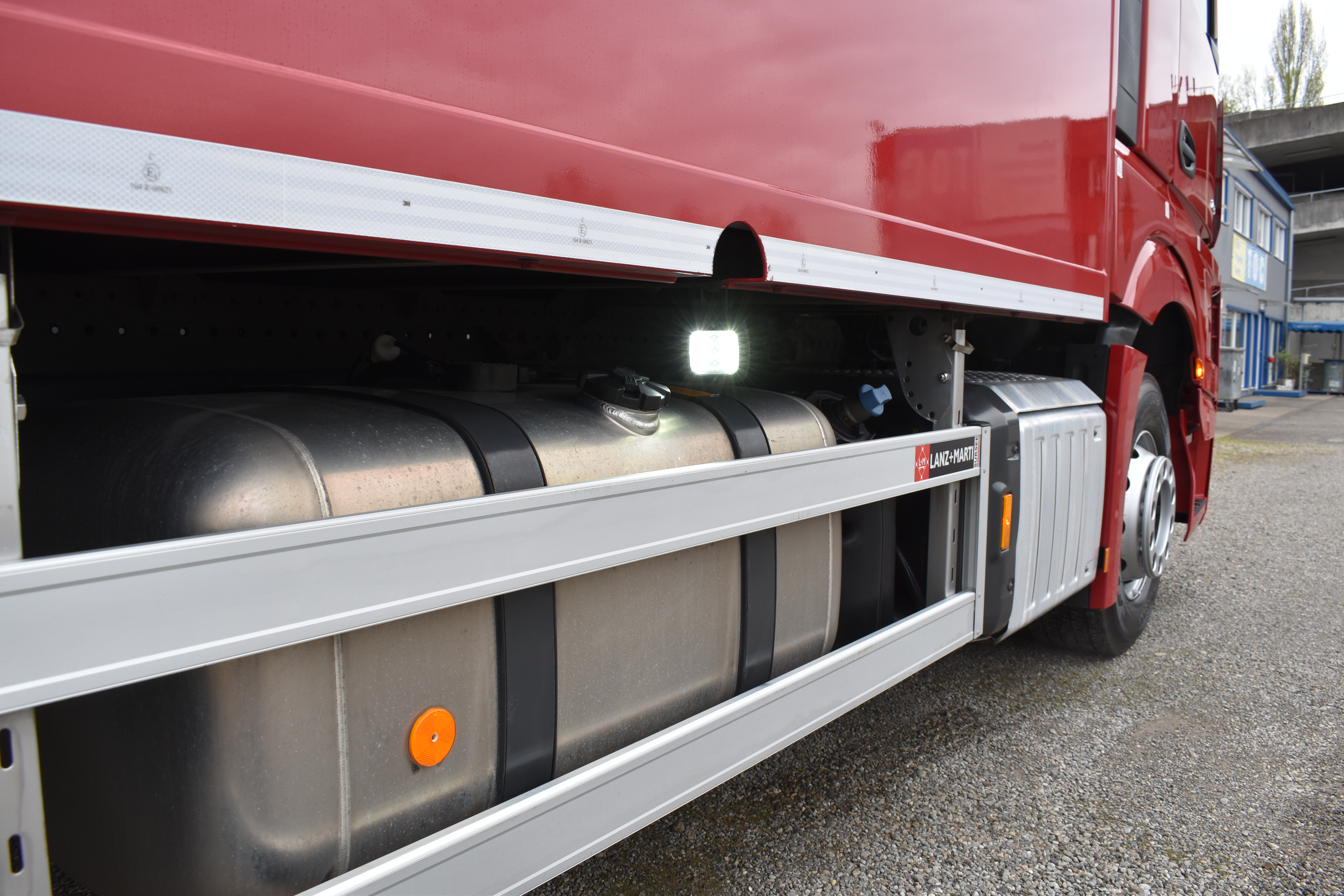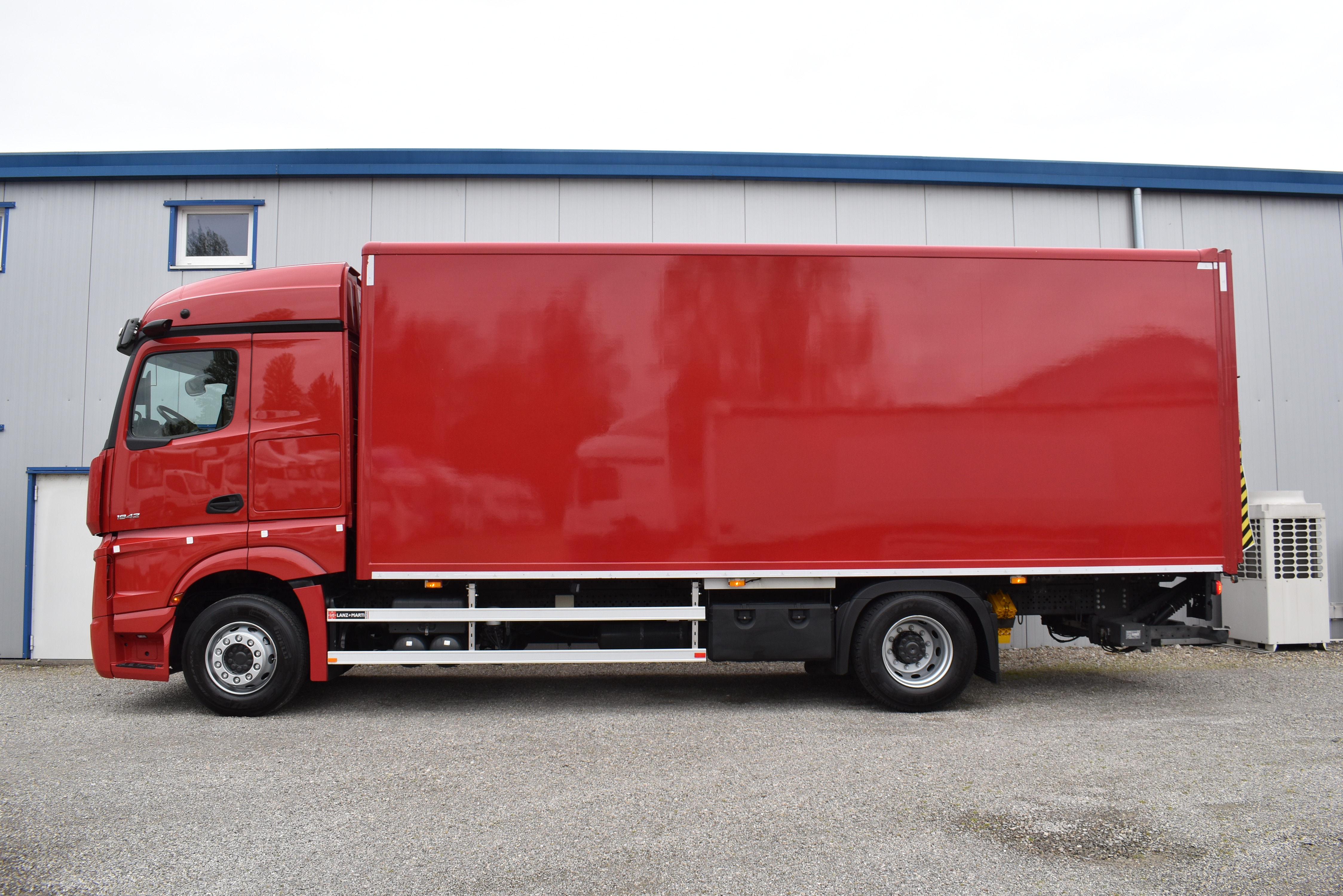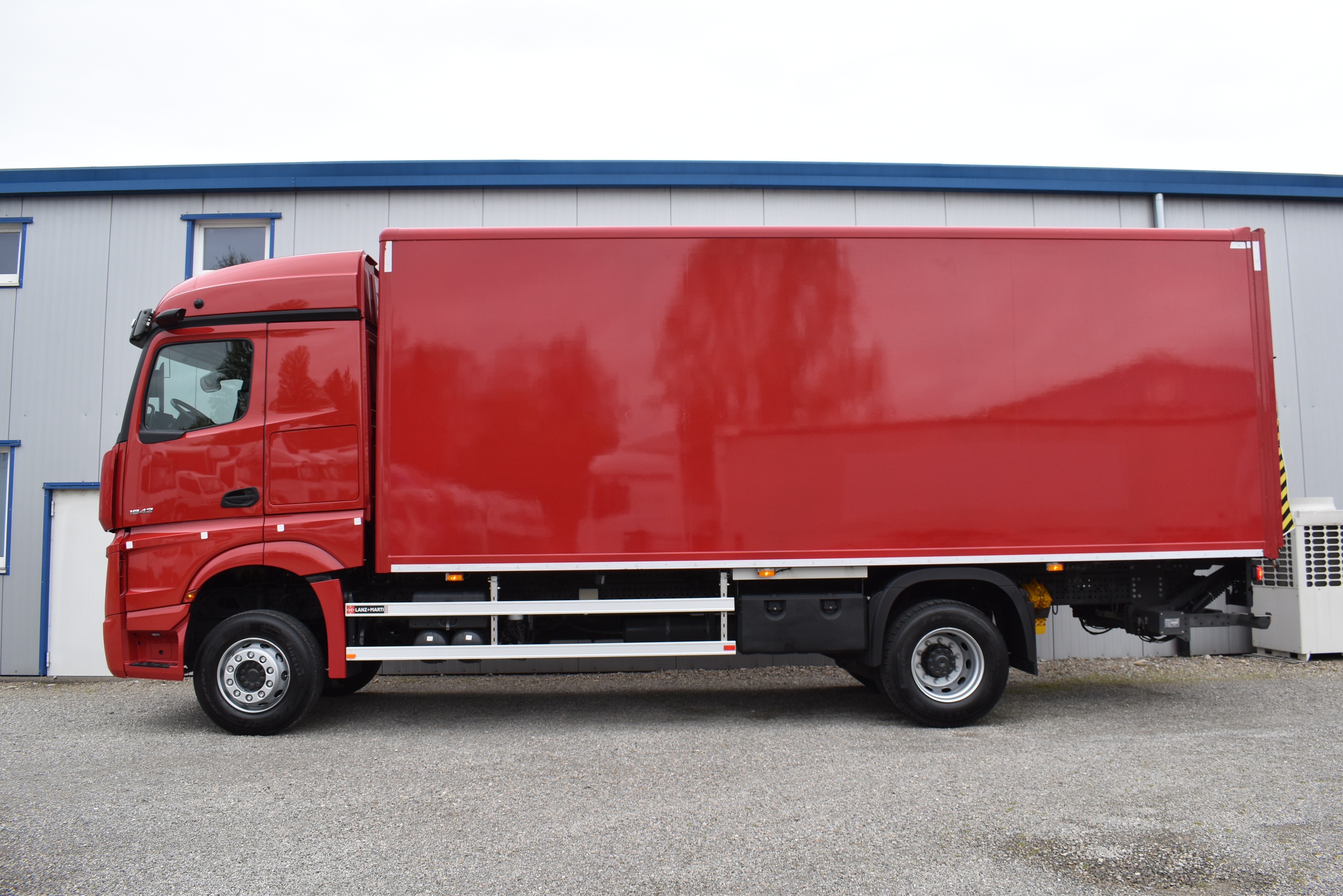 Klimaautomatik, Standheizung, EU-Bremsen, Duomatic-Anschluss, ABS, ASR, elektrische Fensterheber, Motorbremse, Vollluftfederung, HB-Blatt (1'600 mm mit Funkfernbedienung), Scheibenbremsen, Zentralverriegelung (mit Funkfernbedienung), 1 Liege, Abstandsregeltempomat, AdBlue-Tank, Airbag Fahrer, Aluminiumtank, Anfahrassistent, Anhängerkupplung (Rockinger), Beifahrersitz (klappbar), Digital-Tacho, ESP, Hebebühne (Mammut mit 2'000 kg Tragkraft), Holzfussboden, Licht- und Regensensor, Lochschienen (5 Stück in Reihe längsgerichtet unter dem Dach), Multifunktionslenkrad, Navigationssystem, Sitzheizung, Spurassistent, Werkzeugkiste, Xenonscheinwerfer |