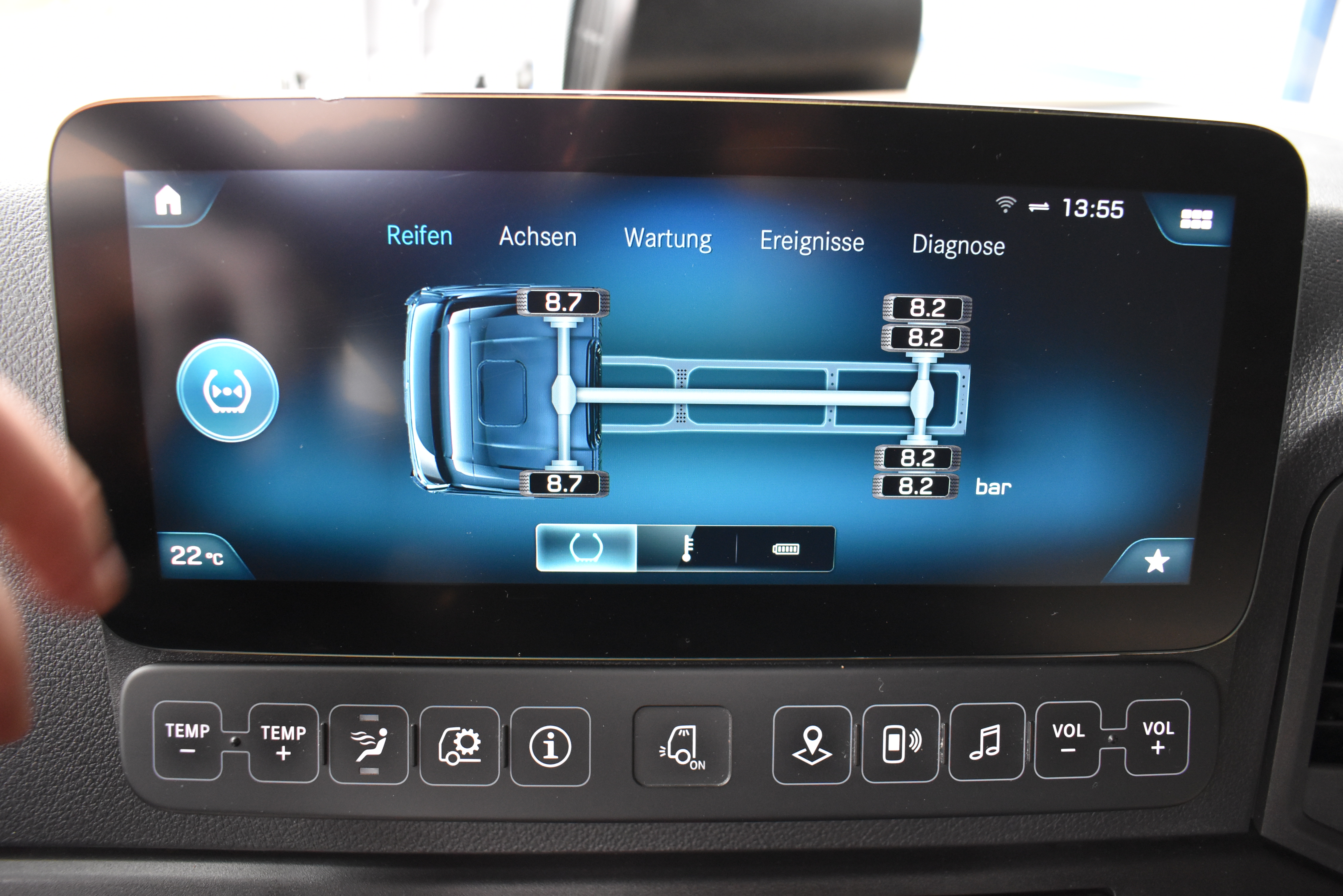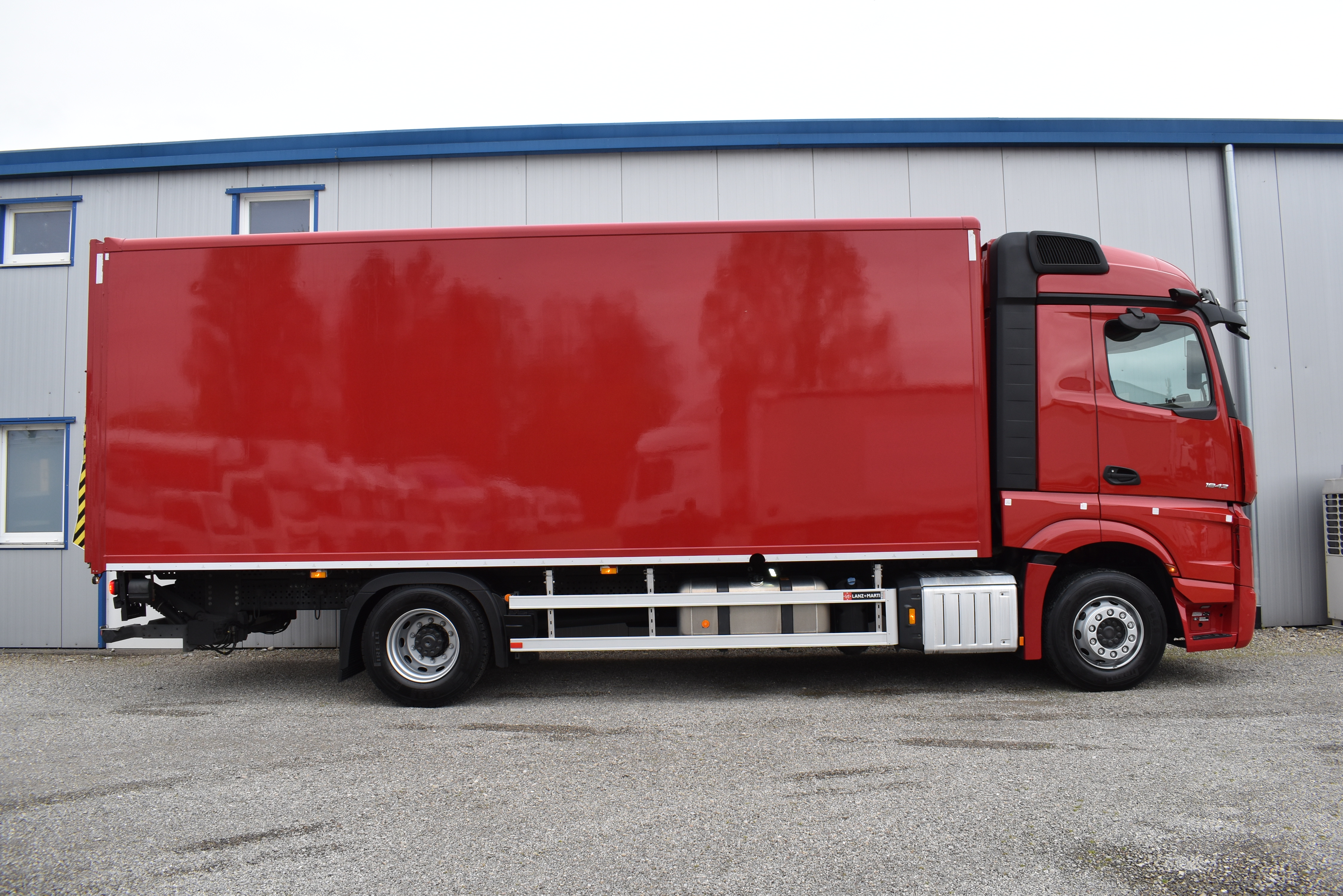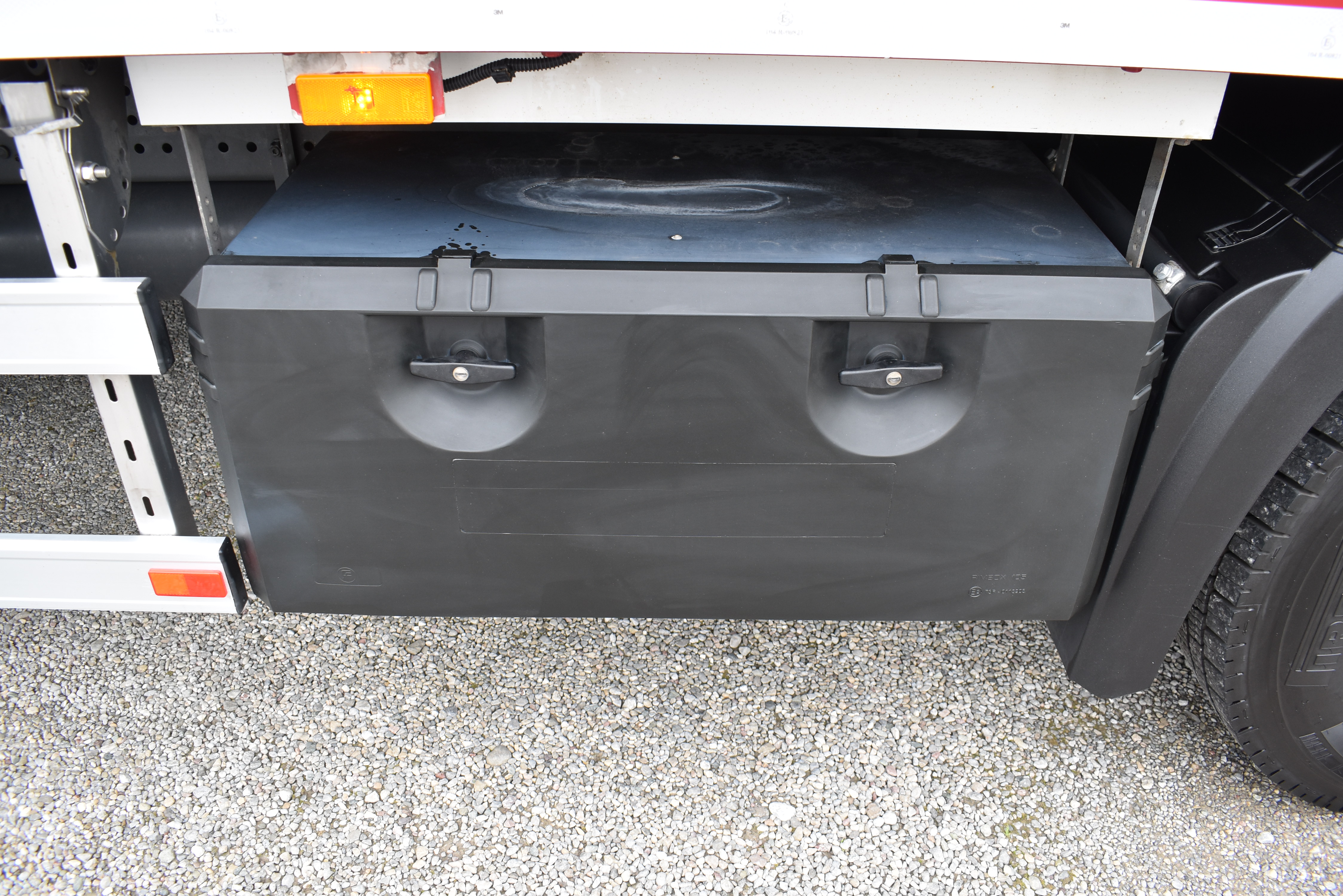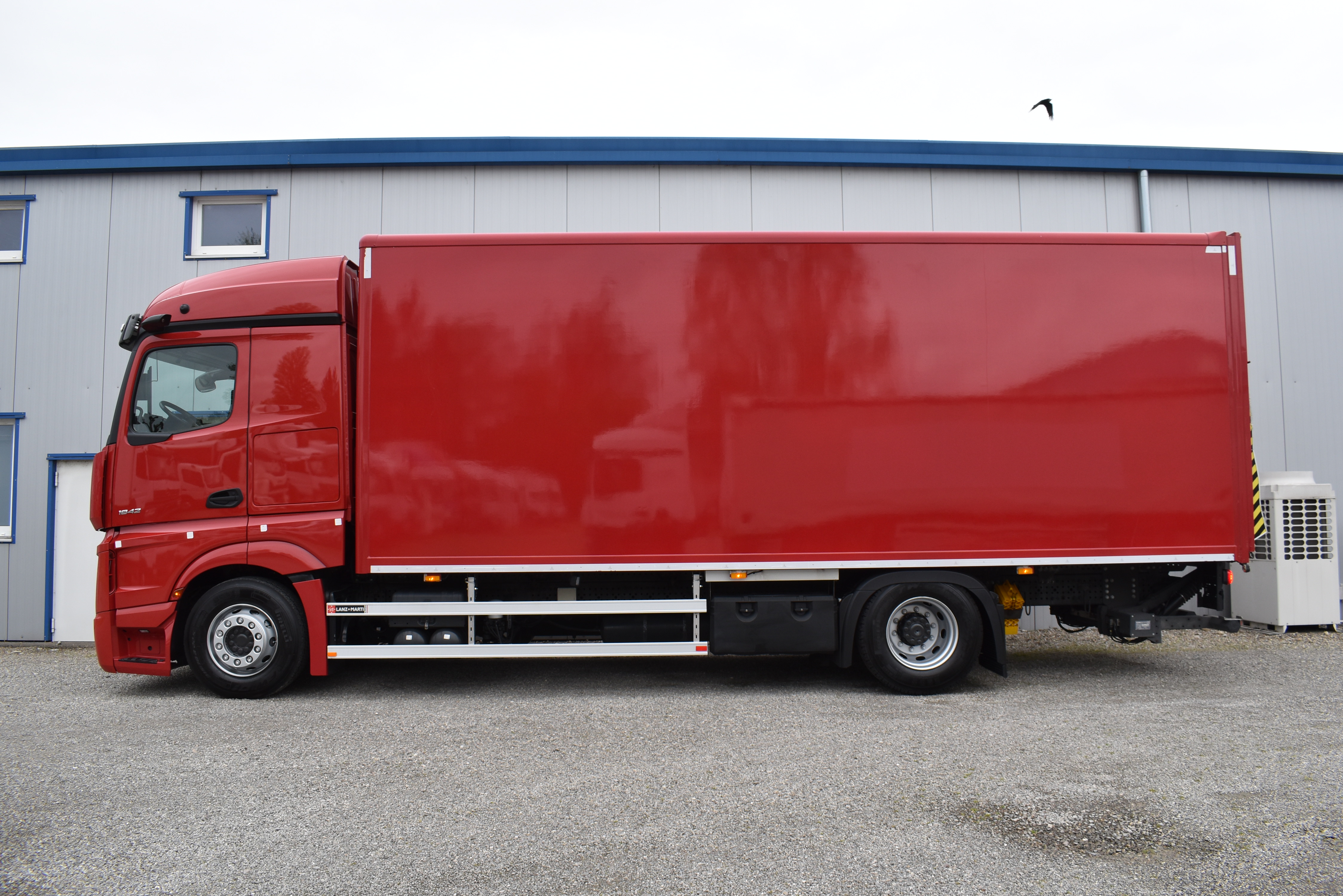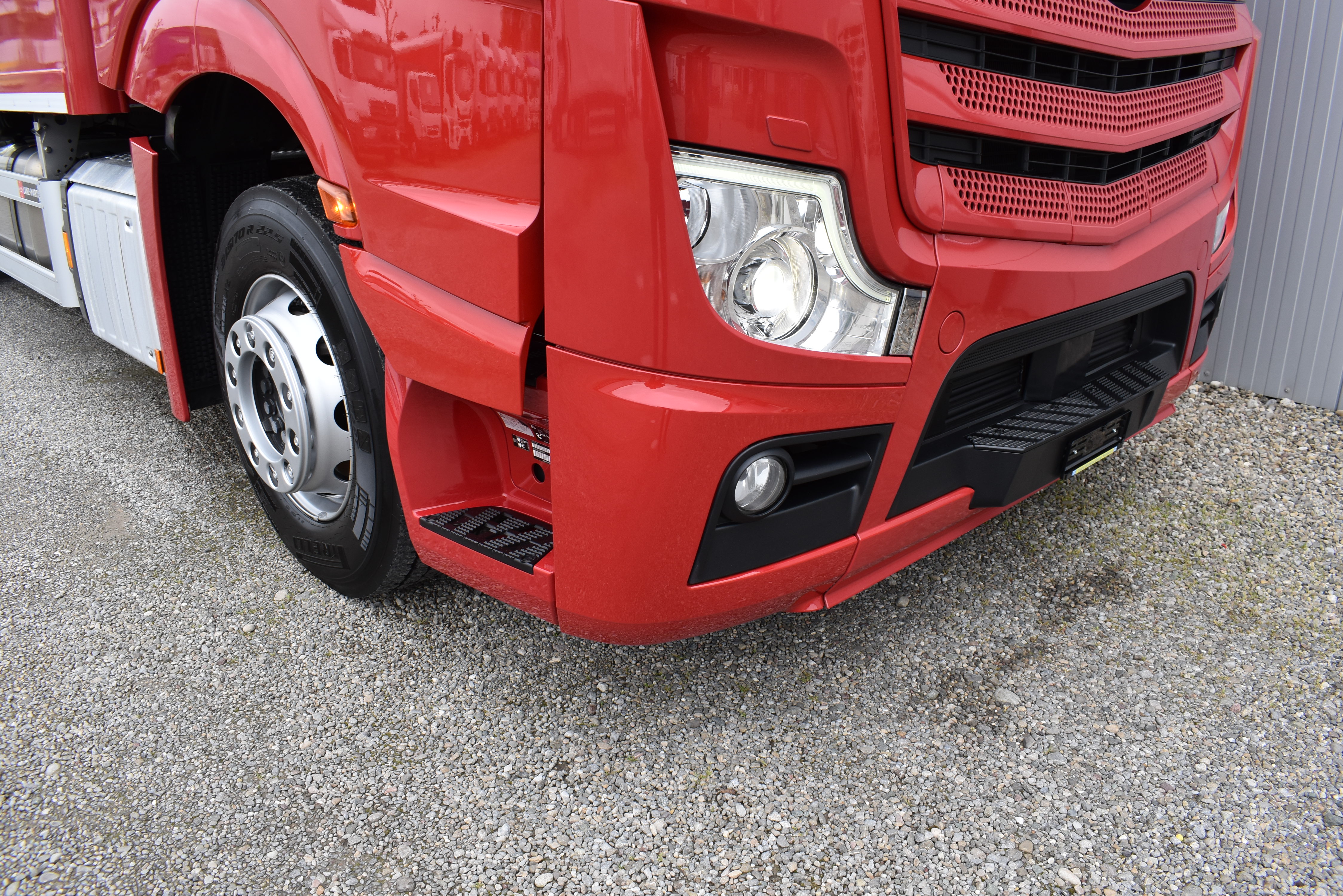 Klimaautomatik, Standheizung, EU-Bremsen, Duomatic-Anschluss, ABS, ASR, elektrische Fensterheber, Motorbremse, Vollluftfederung, HB-Blatt (1'600 mm mit Funkfernbedienung), Scheibenbremsen, Zentralverriegelung (mit Funkfernbedienung), 1 Liege, Abstandsregeltempomat, AdBlue-Tank, Airbag Fahrer, Aluminiumtank, Anfahrassistent, Anhängerkupplung (Rockinger), Beifahrersitz (klappbar), Digital-Tacho, ESP, Hebebühne (Mammut mit 2'000 kg Tragkraft), Holzfussboden, Licht- und Regensensor, Lochschienen (5 Stück in Reihe längsgerichtet unter dem Dach), Multifunktionslenkrad, Navigationssystem, Sitzheizung, Spurassistent, Werkzeugkiste, Xenonscheinwerfer |