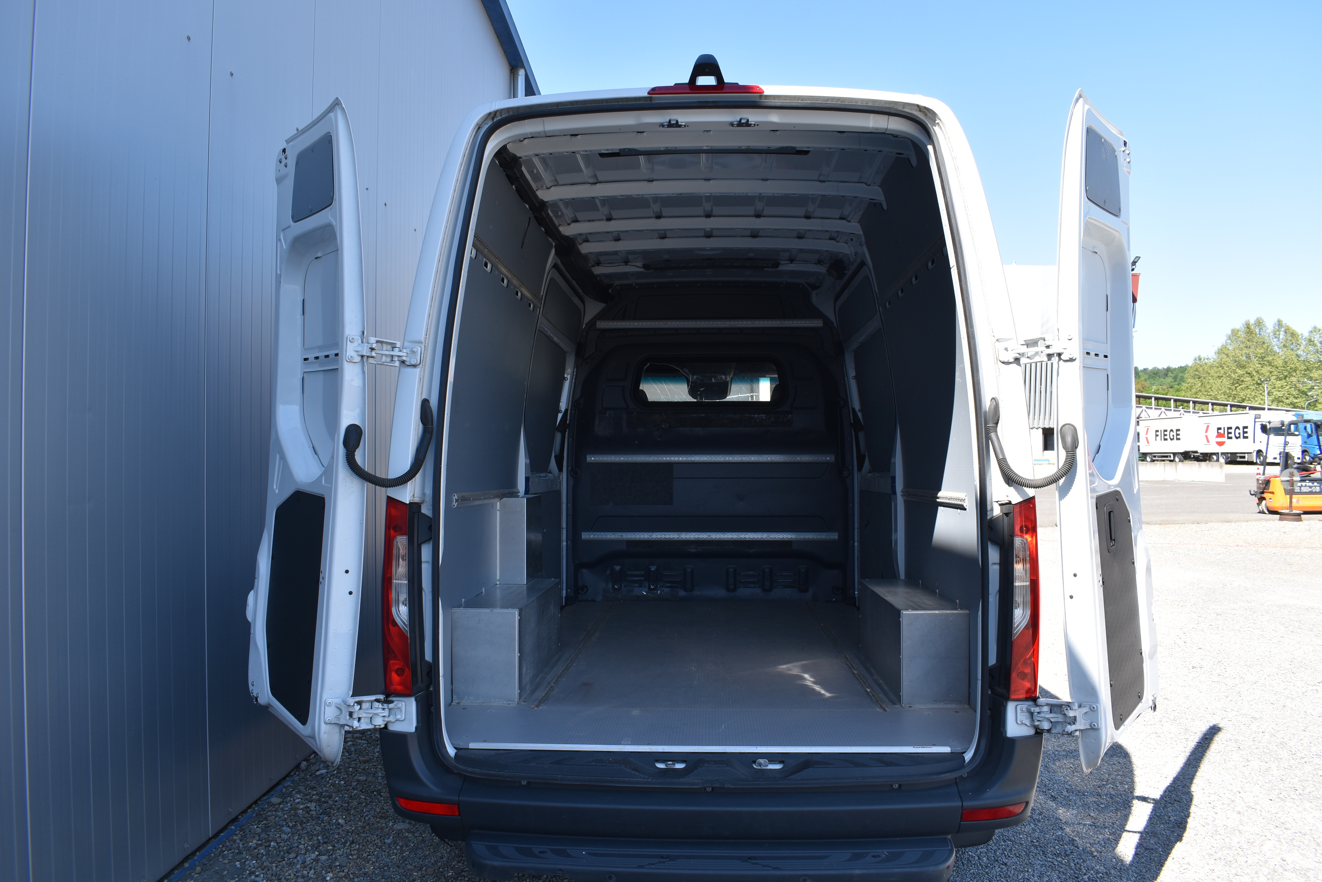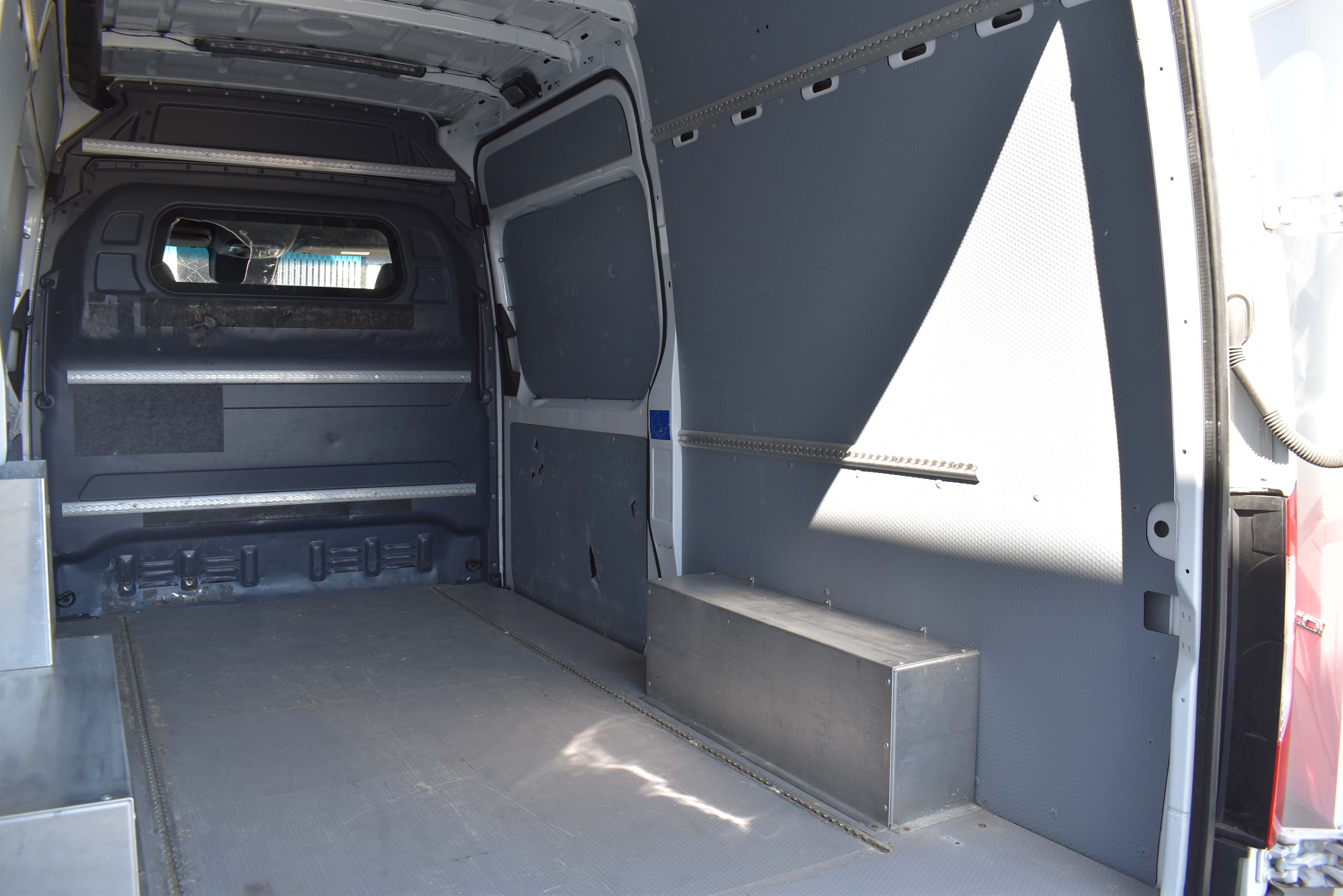 Klimaanlage, ABS, ASR, elektrische Fensterheber, Spiegel elektrisch verstellbar, Spiegelheizung, Scheibenbremsen, Zentralverriegelung (mit Funkfernbedienung), Abstandsregeltempomat, Airbag Fahrer, Auftritt hinten, ESP, Heckflügeltüren (bis Seitenwand öffnend), Hochdach, Holzfussboden, Multifunktionslenkrad, Radio Media mit Bluetooth, Rückfahrkamera, Schiebetüre links und rechts, Seitenverkleidung im Laderaum (bis Dachhöhe), Trennwand durchgehend (mit Fenster)
